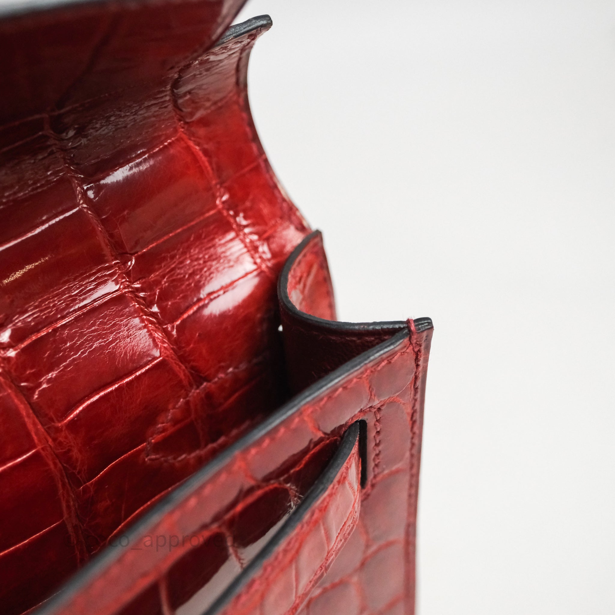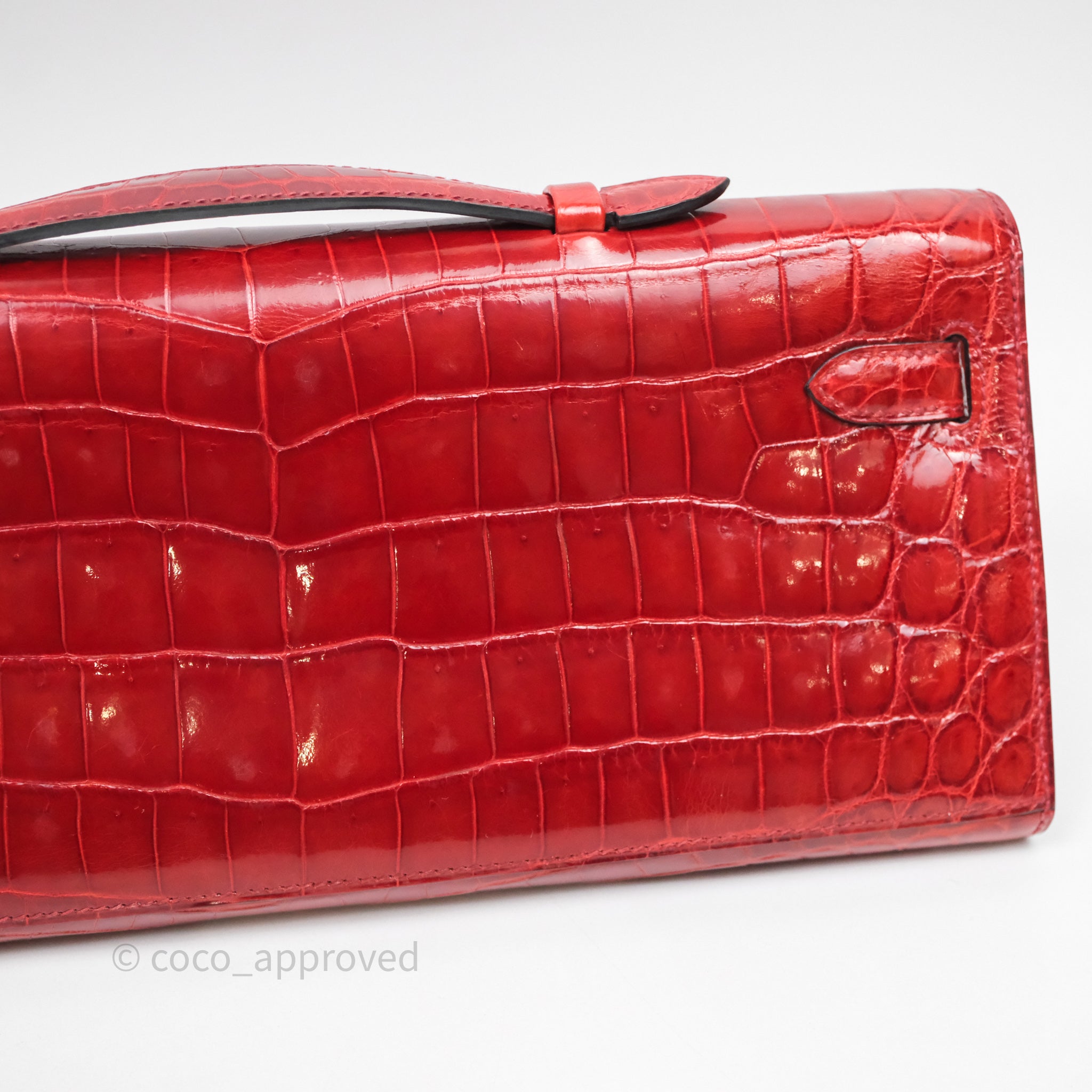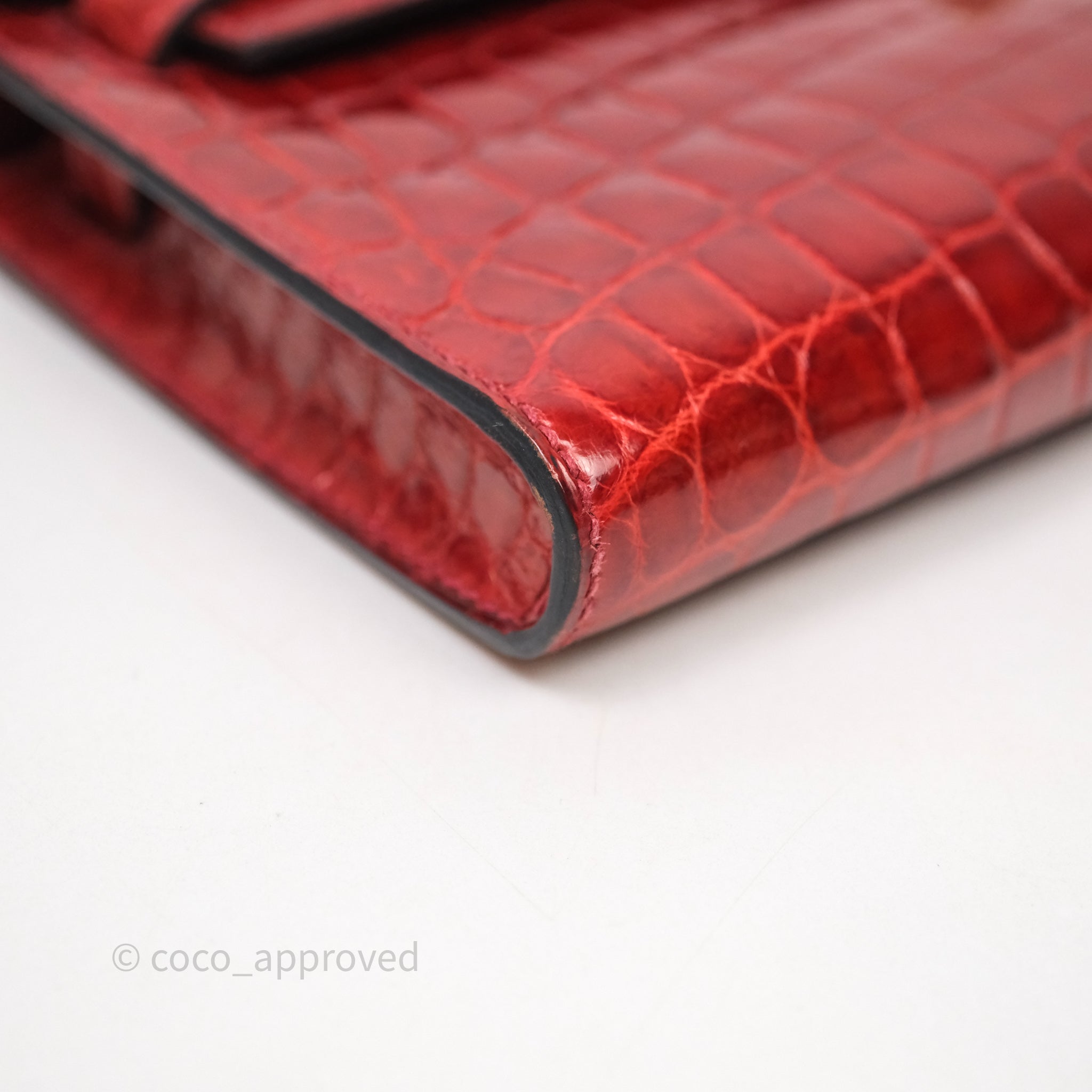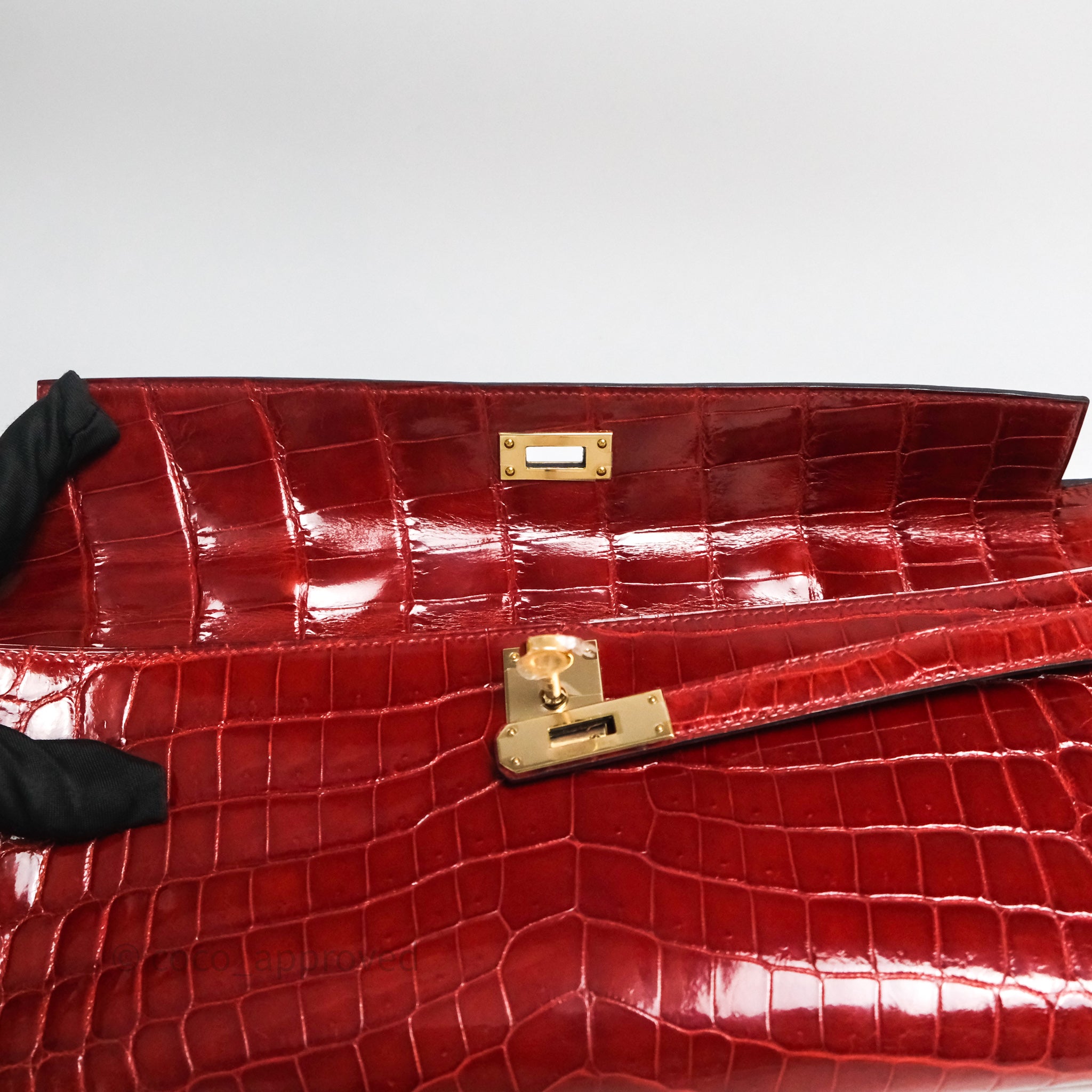 - DM/Email To Purchase - Hermes Kelly Cut Rouge H Shiny Niloticus Crocodile Gold Hardware