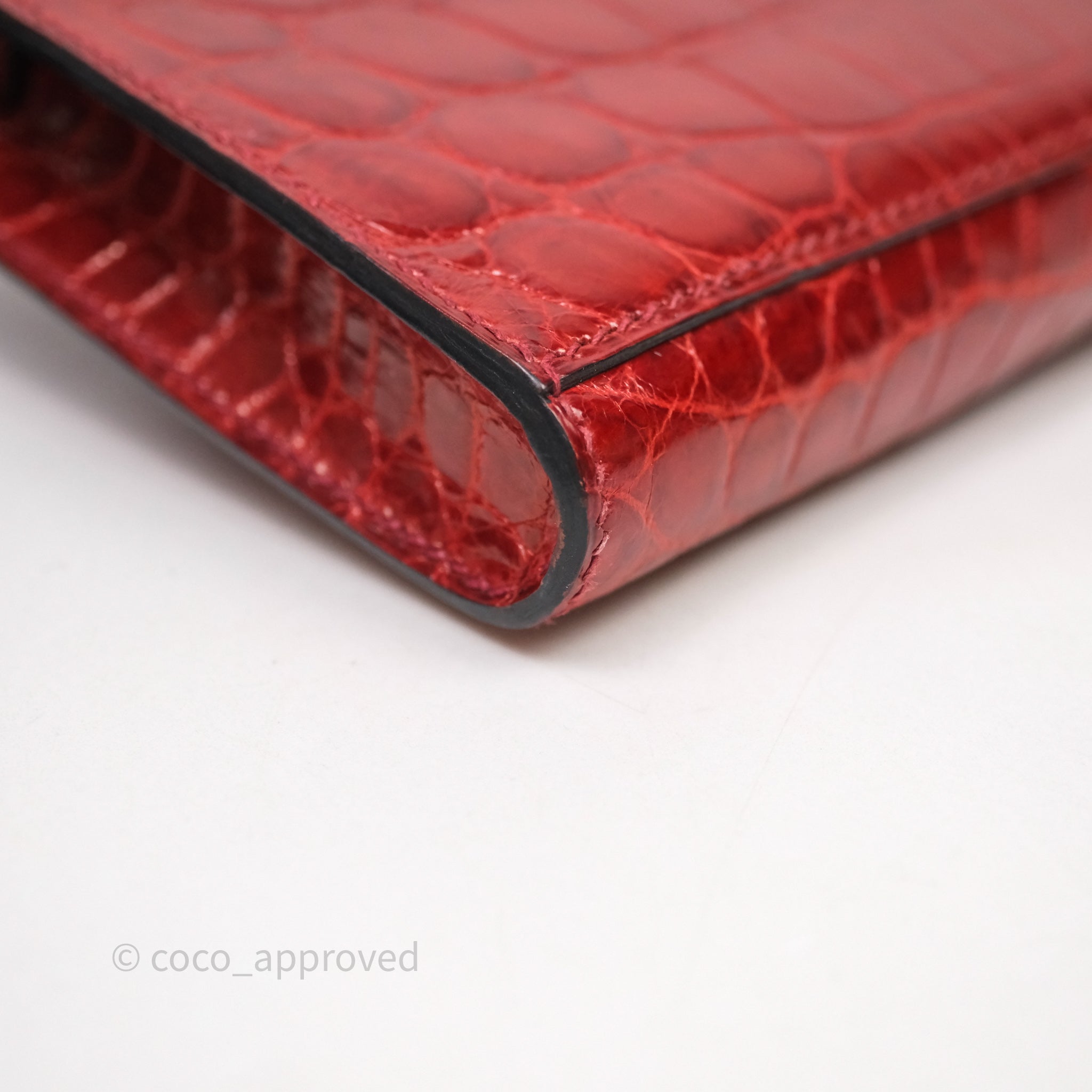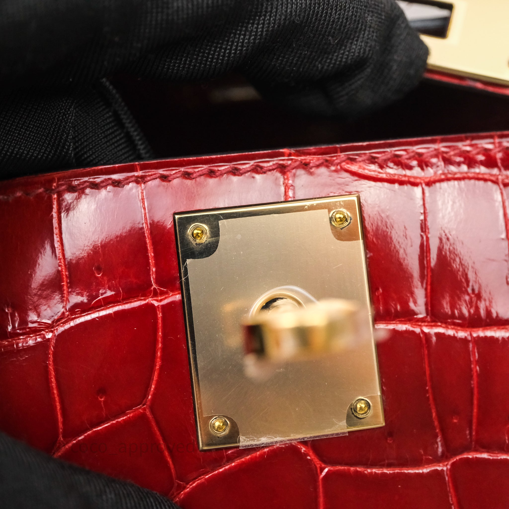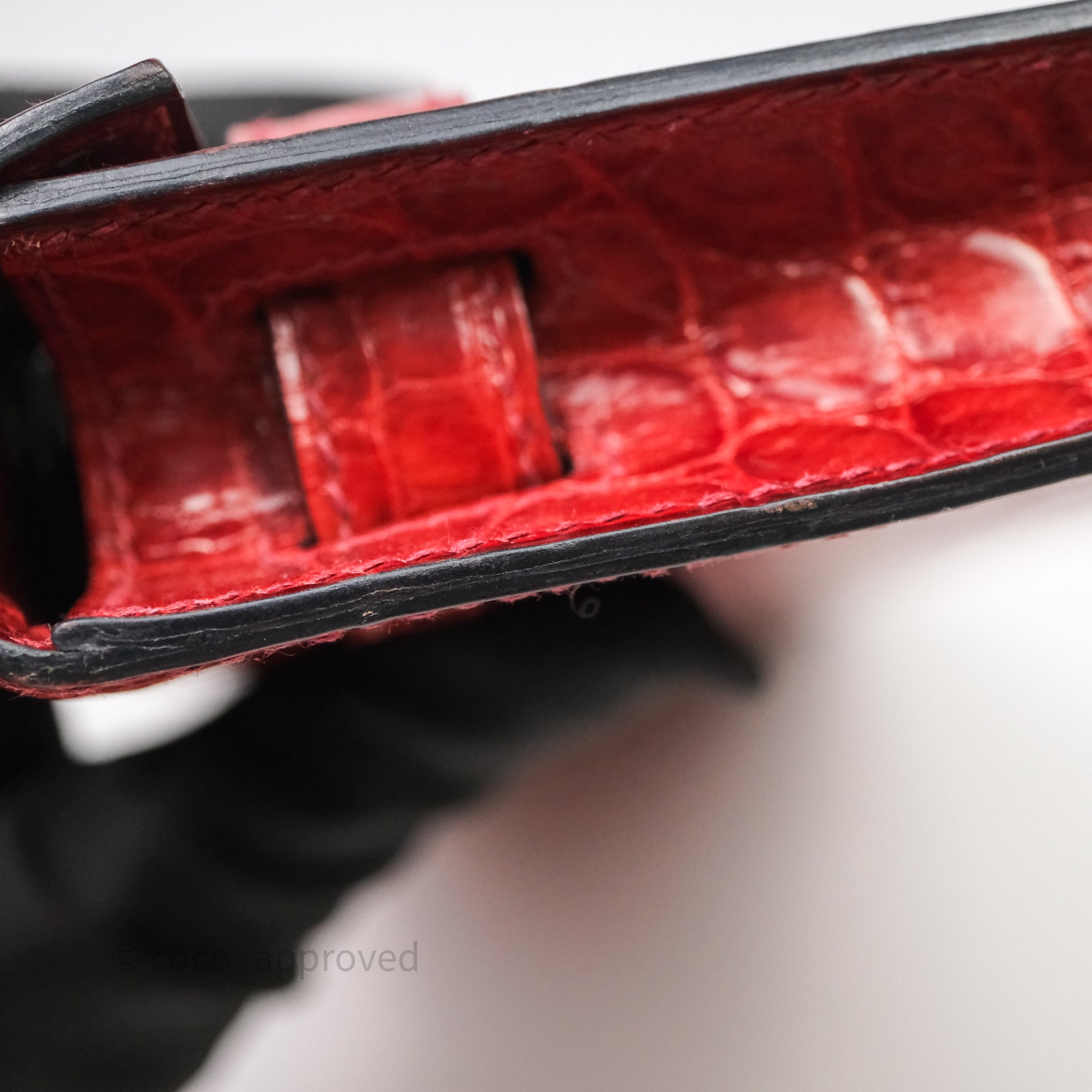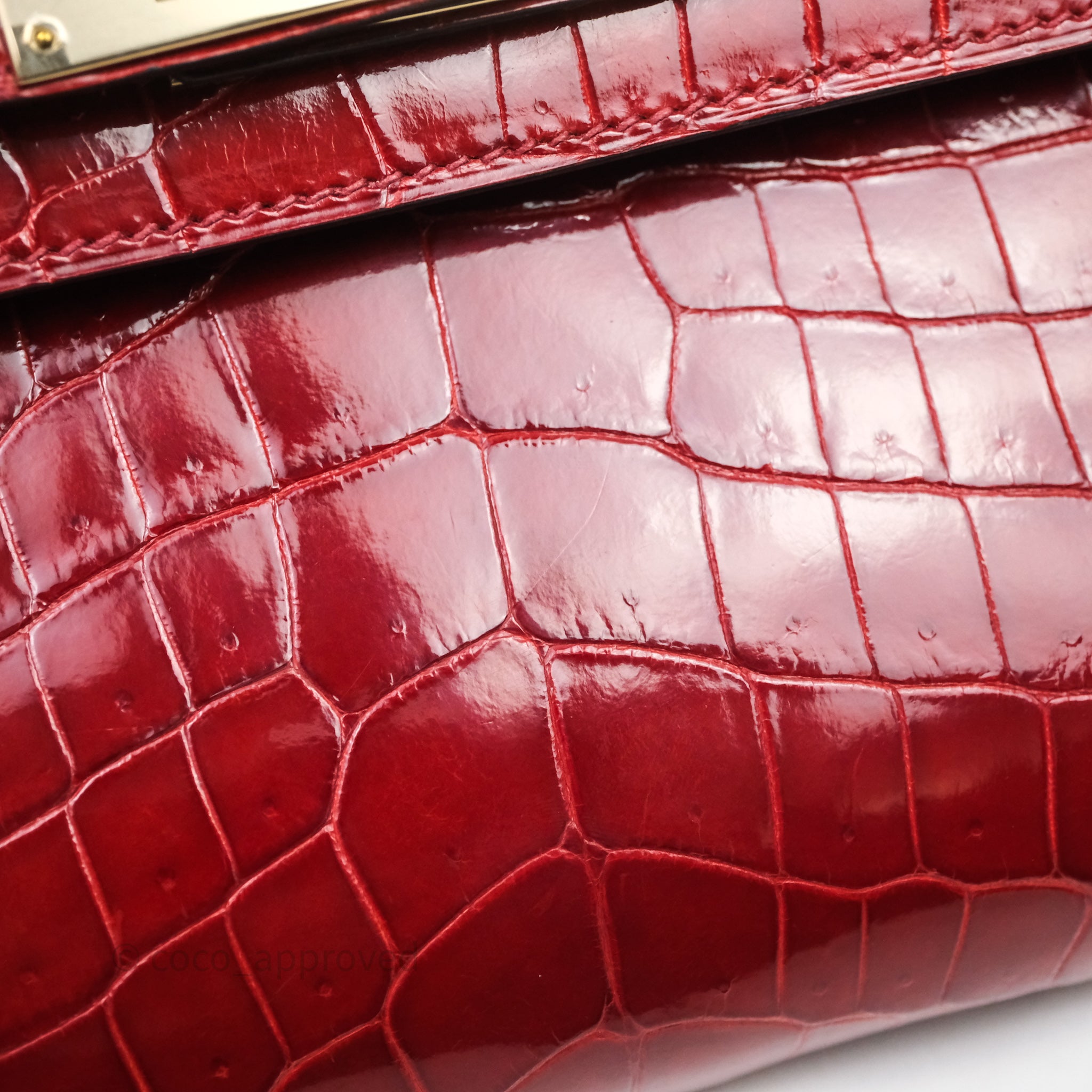 - DM/Email To Purchase - Hermes Kelly Cut Rouge H Shiny Niloticus Crocodile Gold Hardware