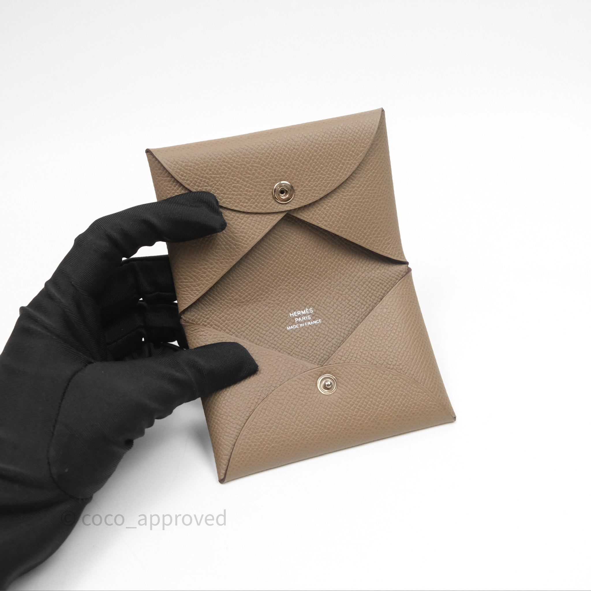 Hermès Calvi Card Holder Etoupe 18 Epsom