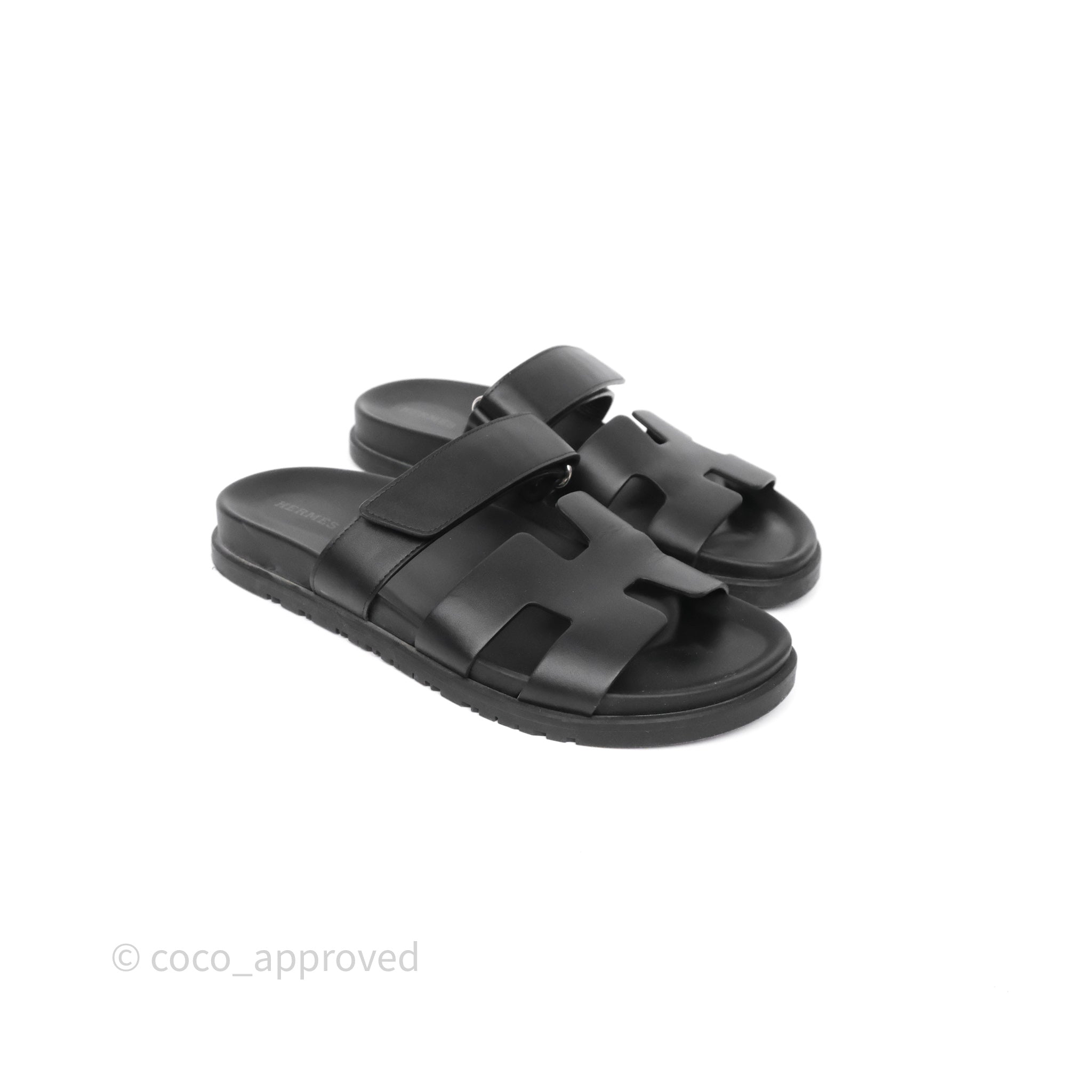 Hermès Chypre Sandal Calfskin Black Size 39