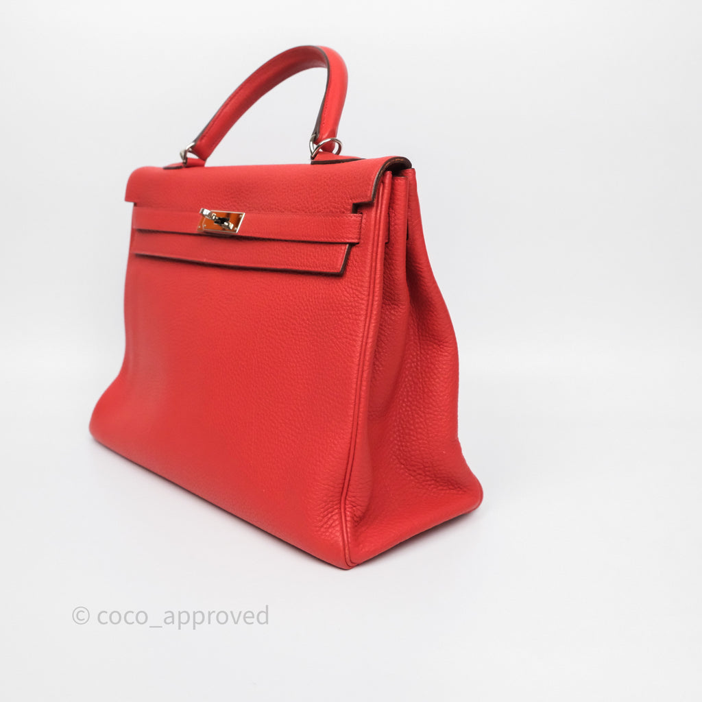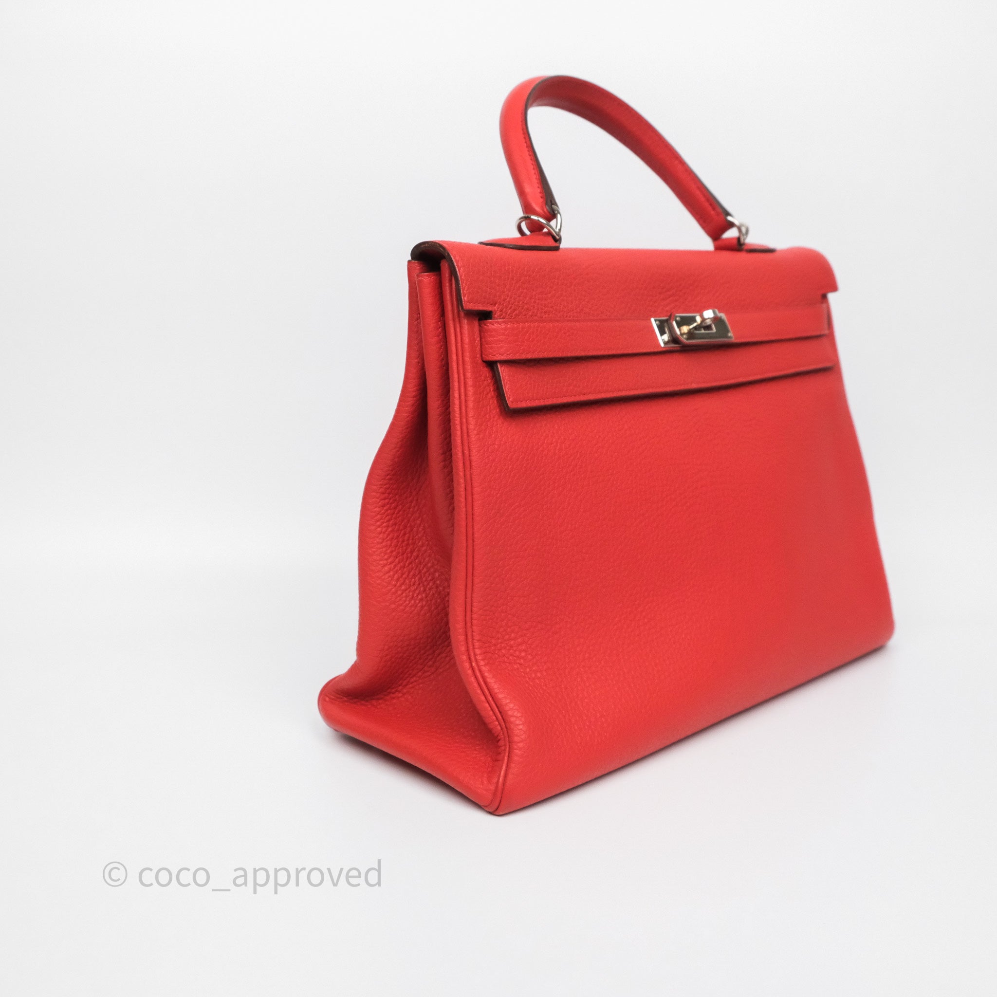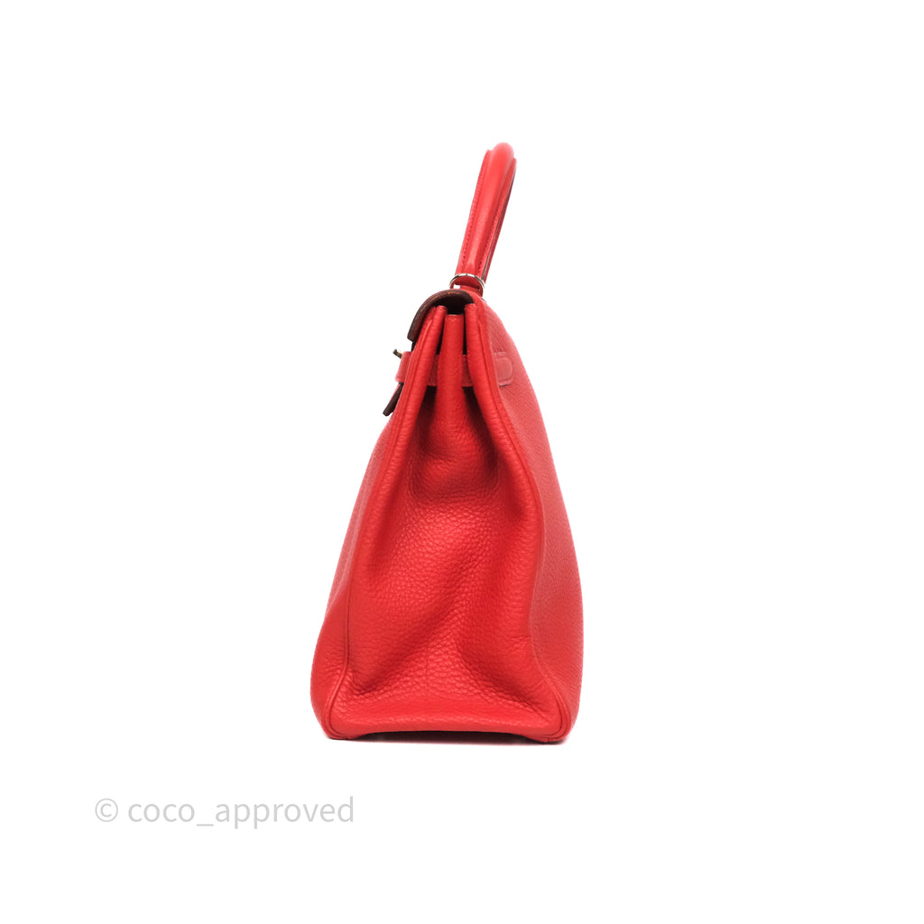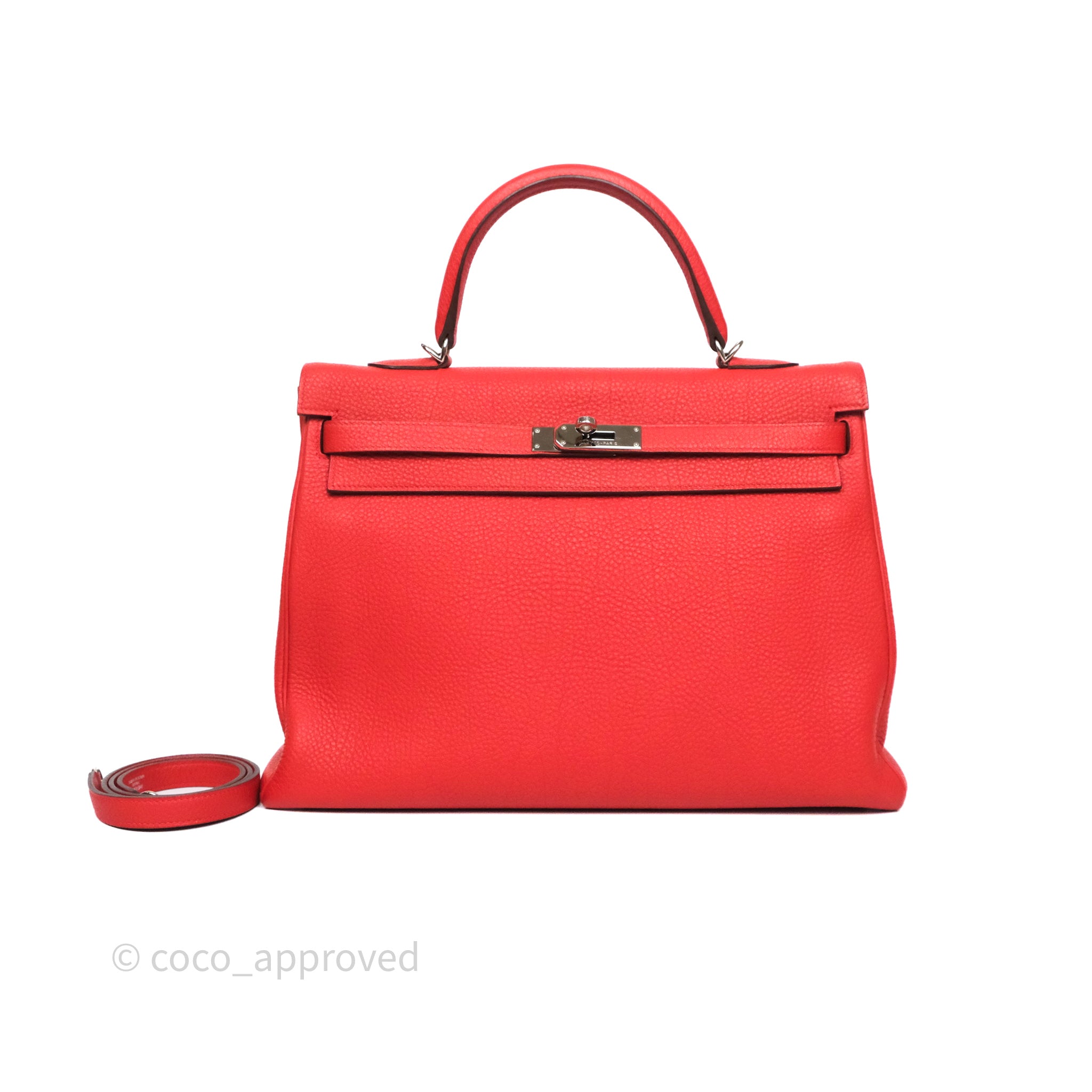 Hermès Kelly 35 Retourne Red Togo Palladium Hardware