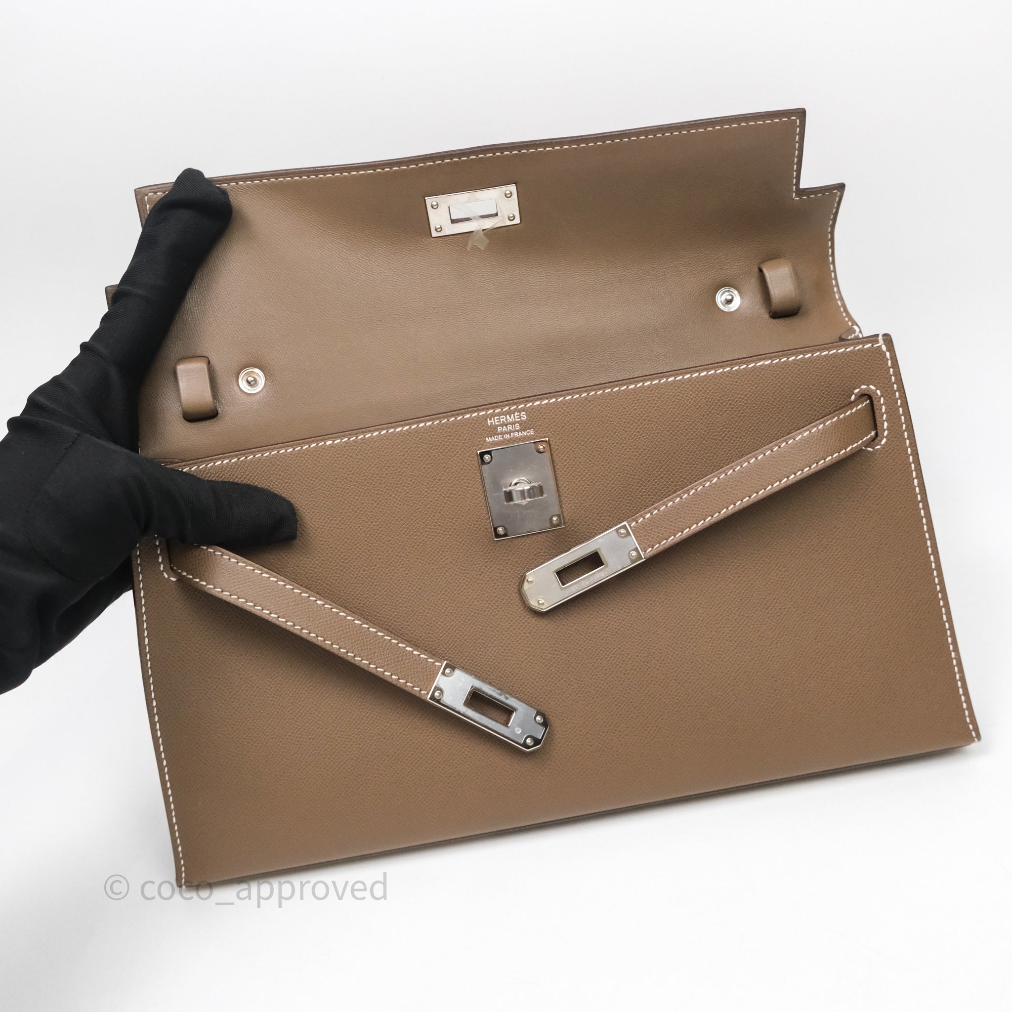 Hermes Kelly Elan Etoupe Madame Palladium Hardware