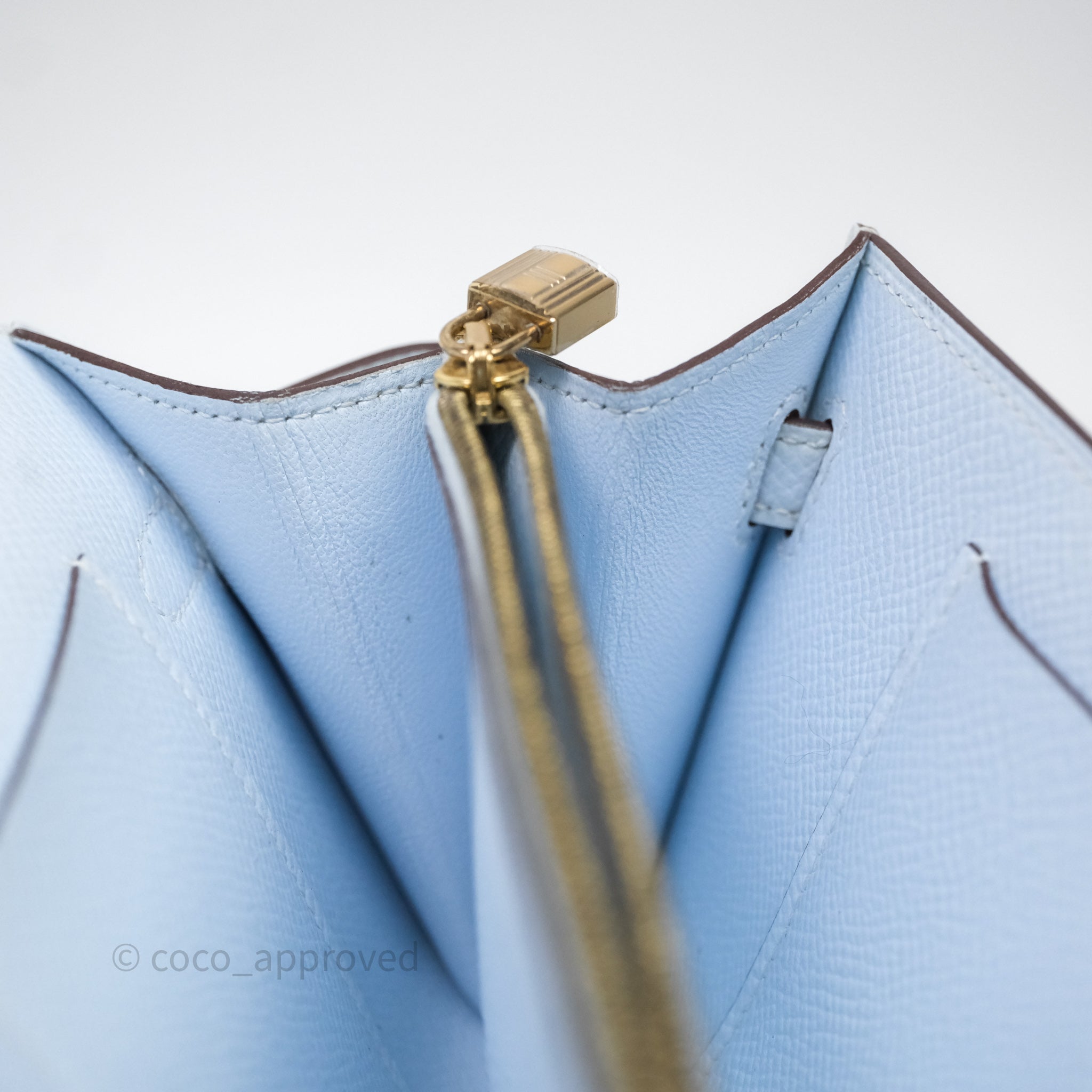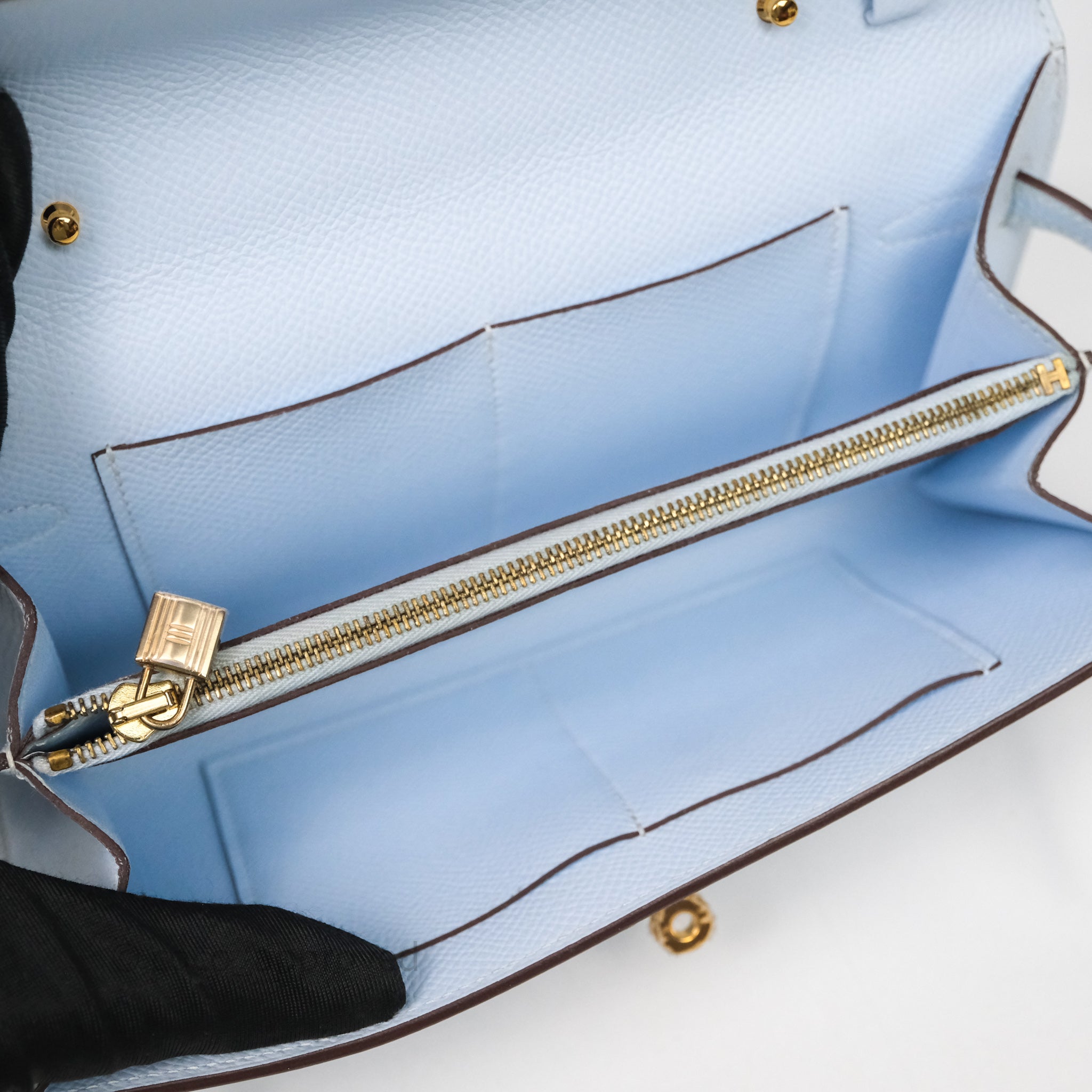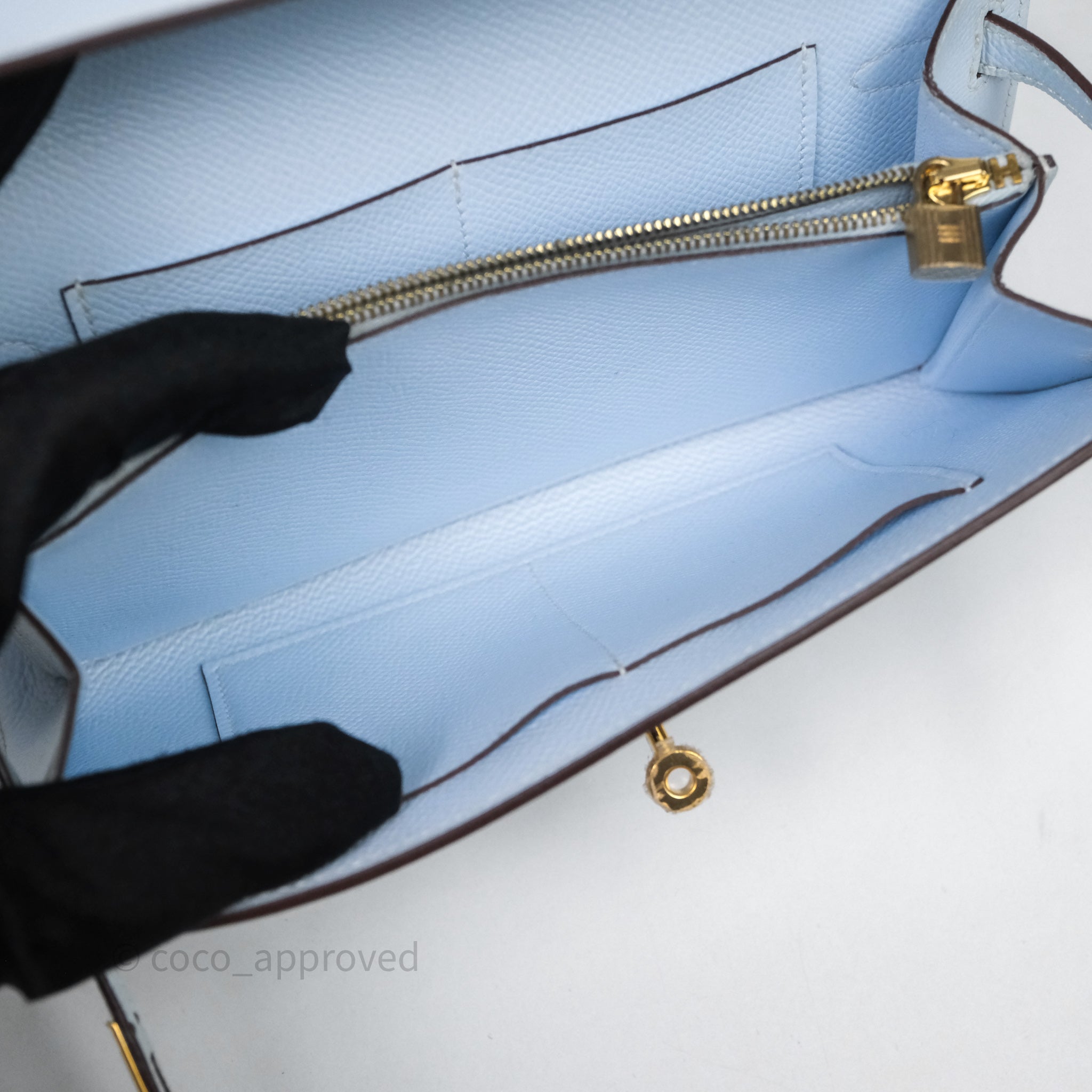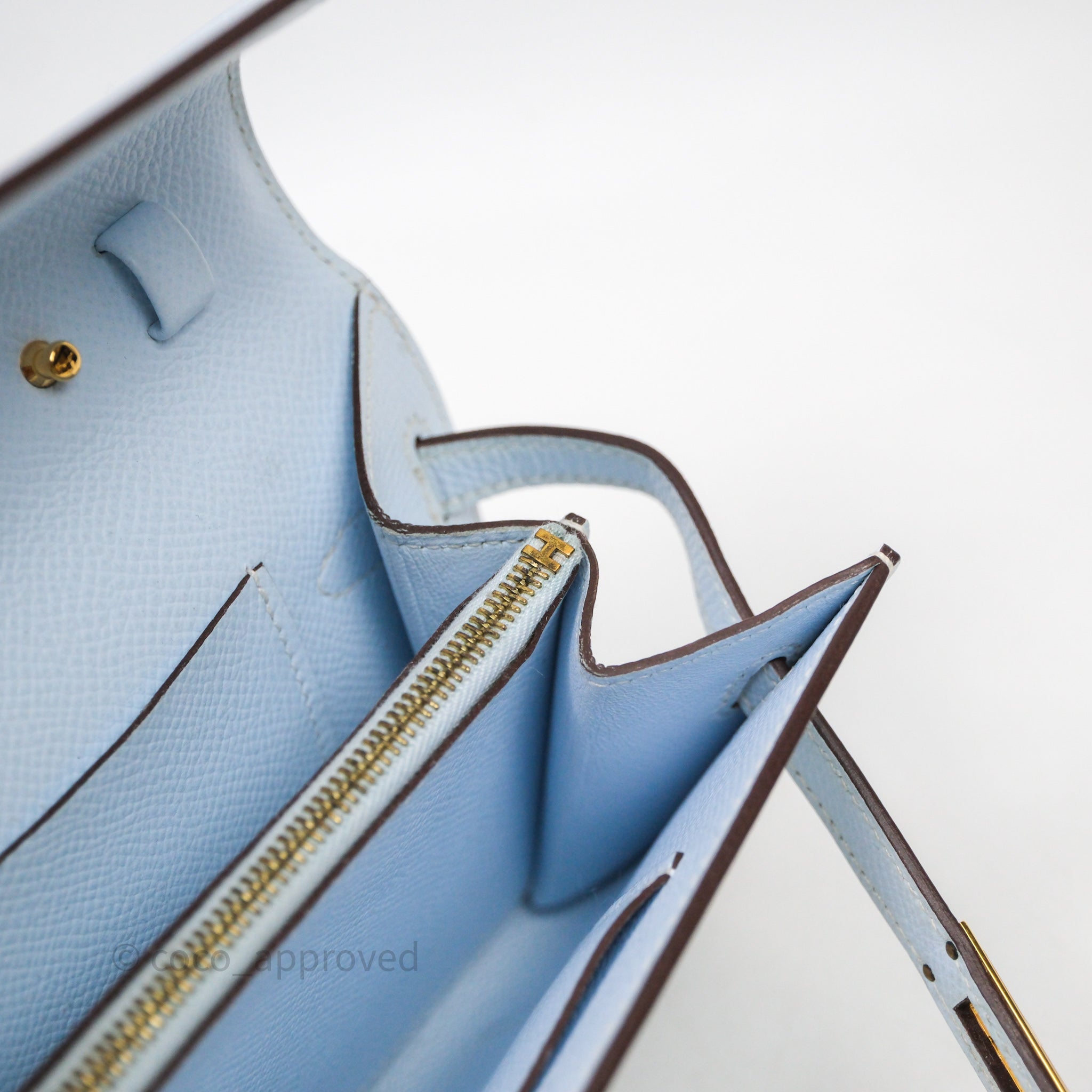 Hermes Kelly To Go Bleu Brume Epsom Gold Hardware