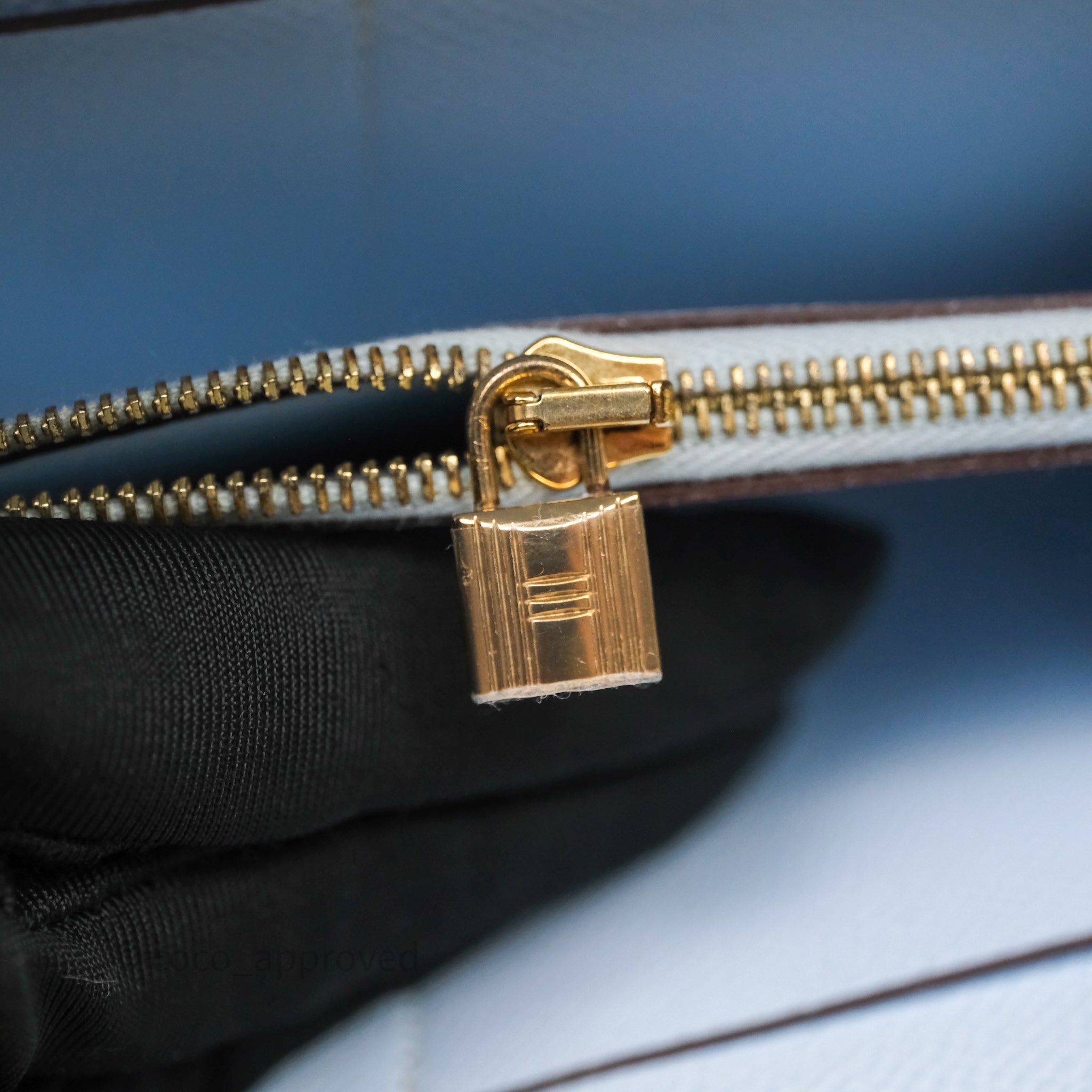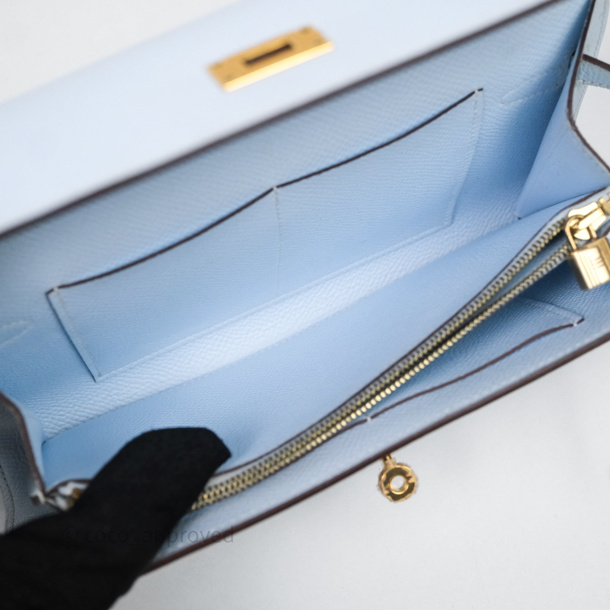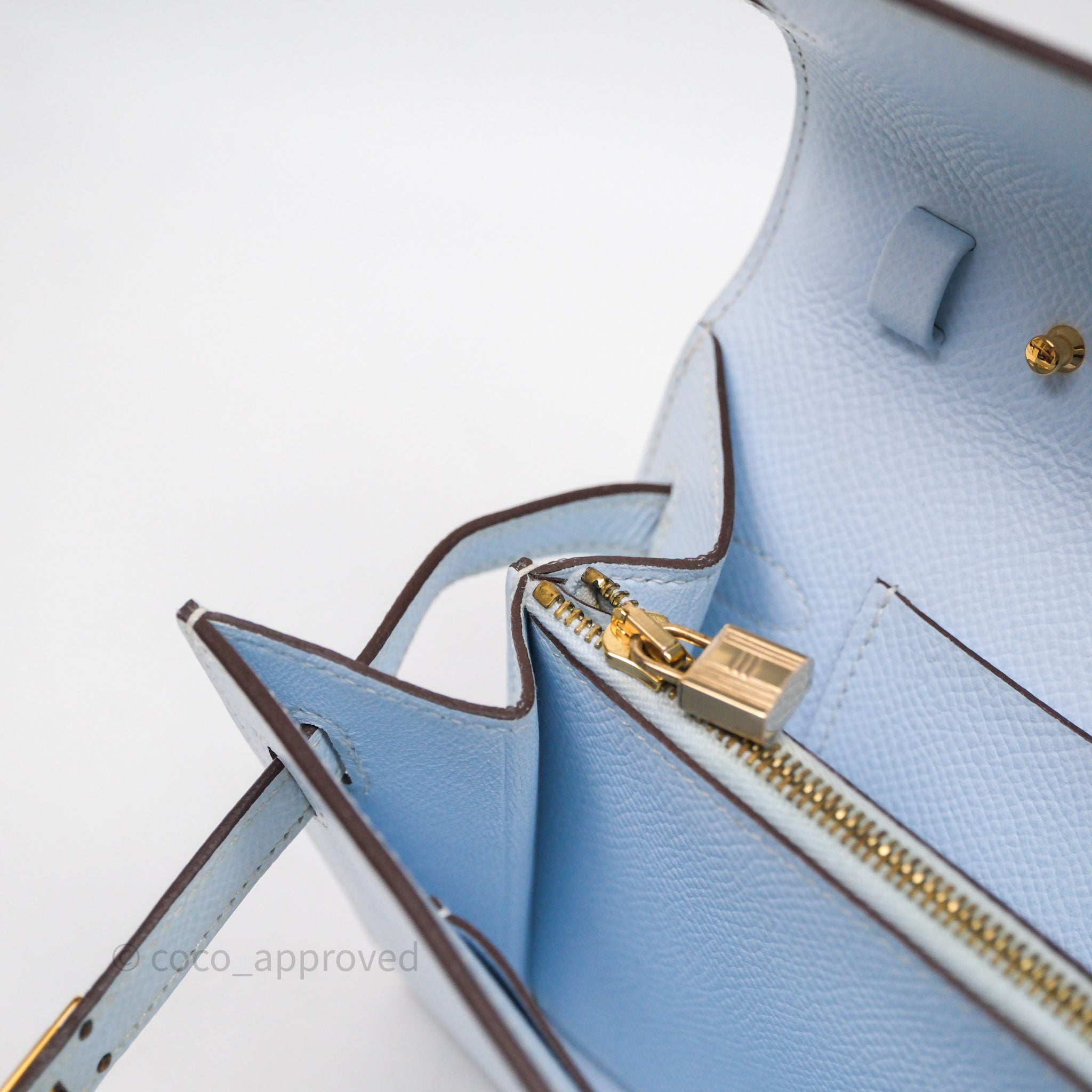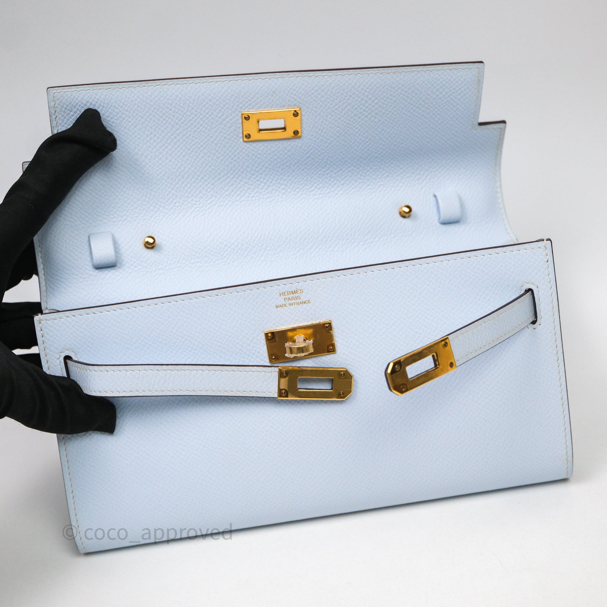 Hermes Kelly To Go Bleu Brume Epsom Gold Hardware