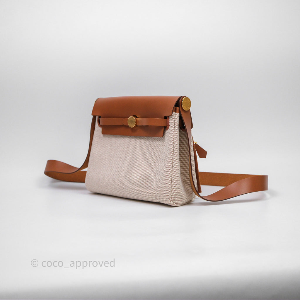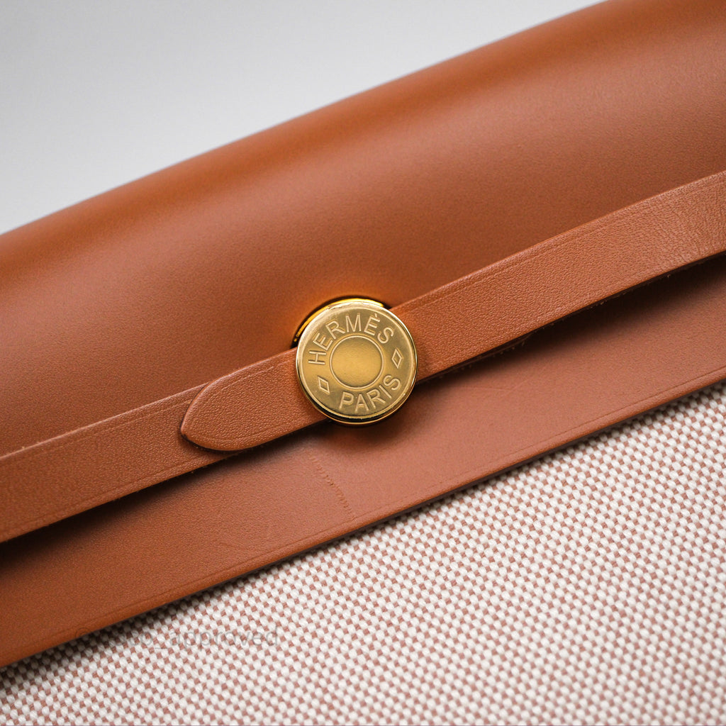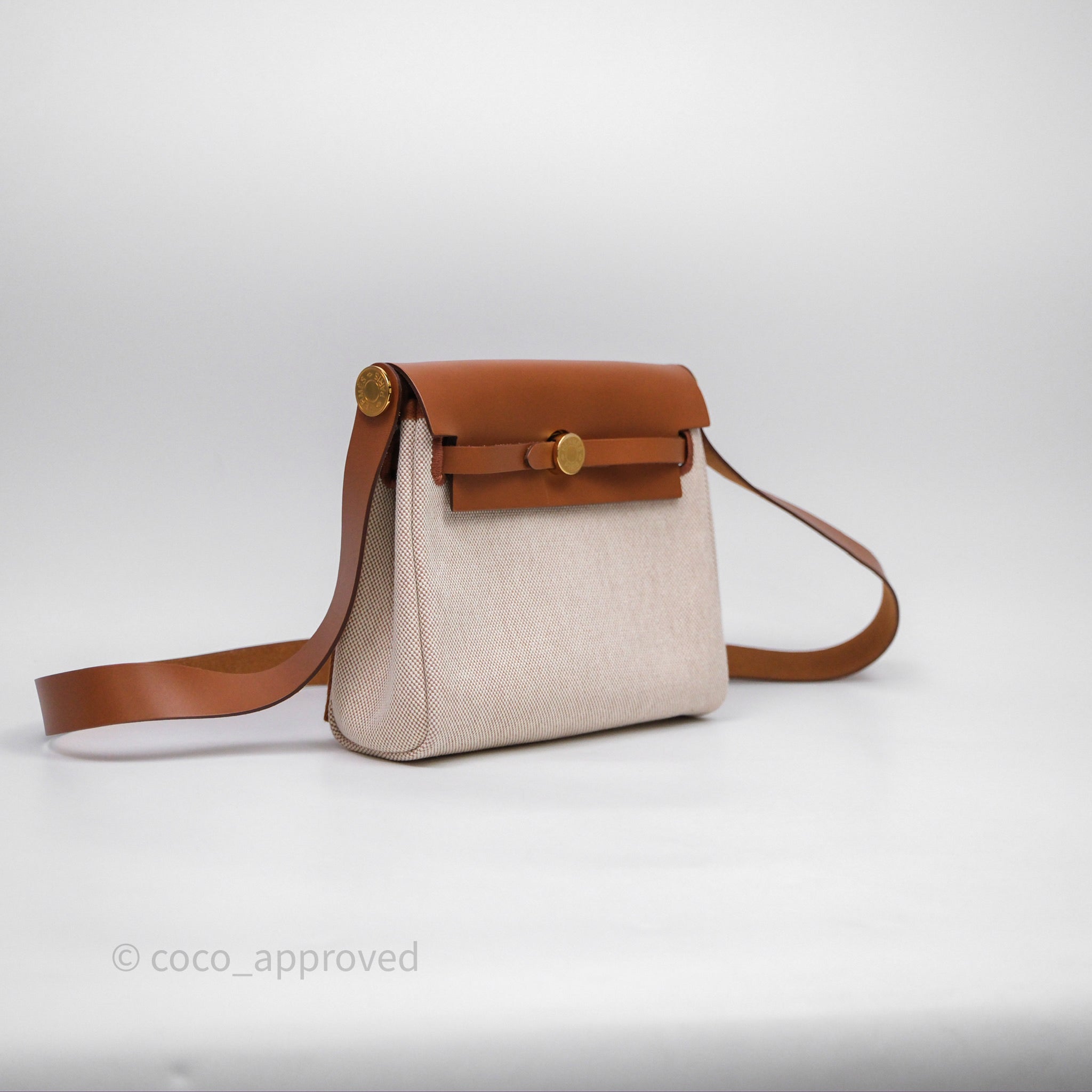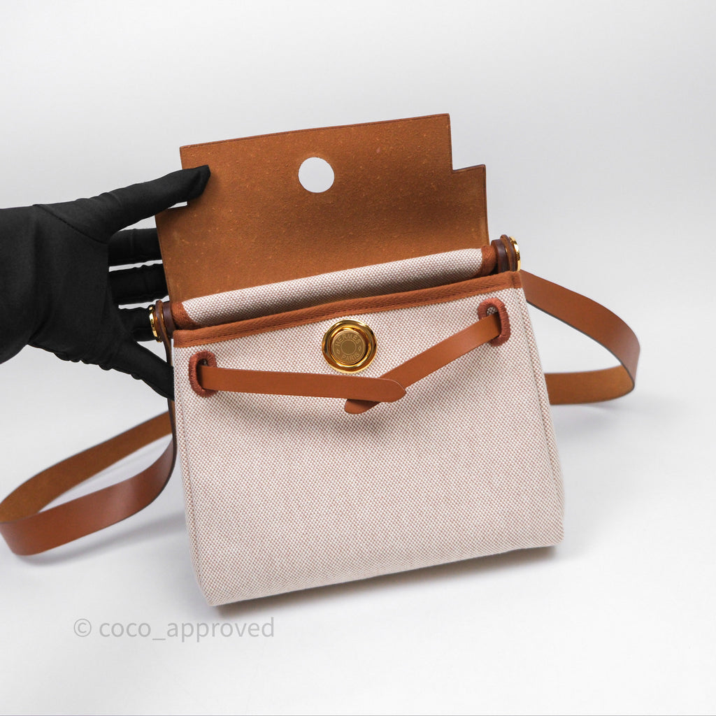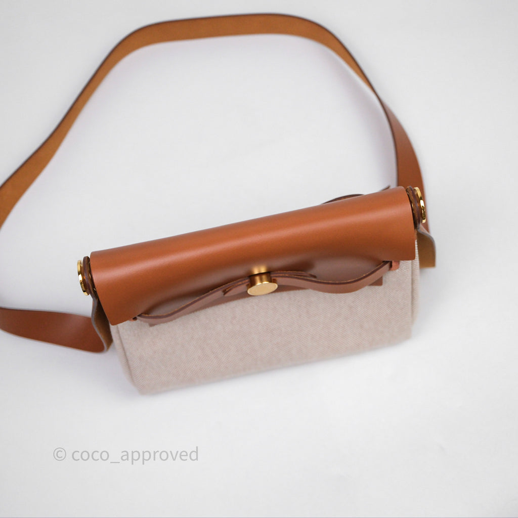 Hermes Mini Herbag 20 Ecru Beige/ Fauve 34 Gold Hardware