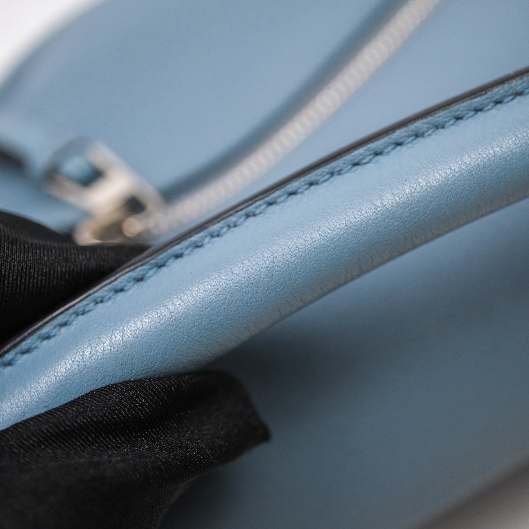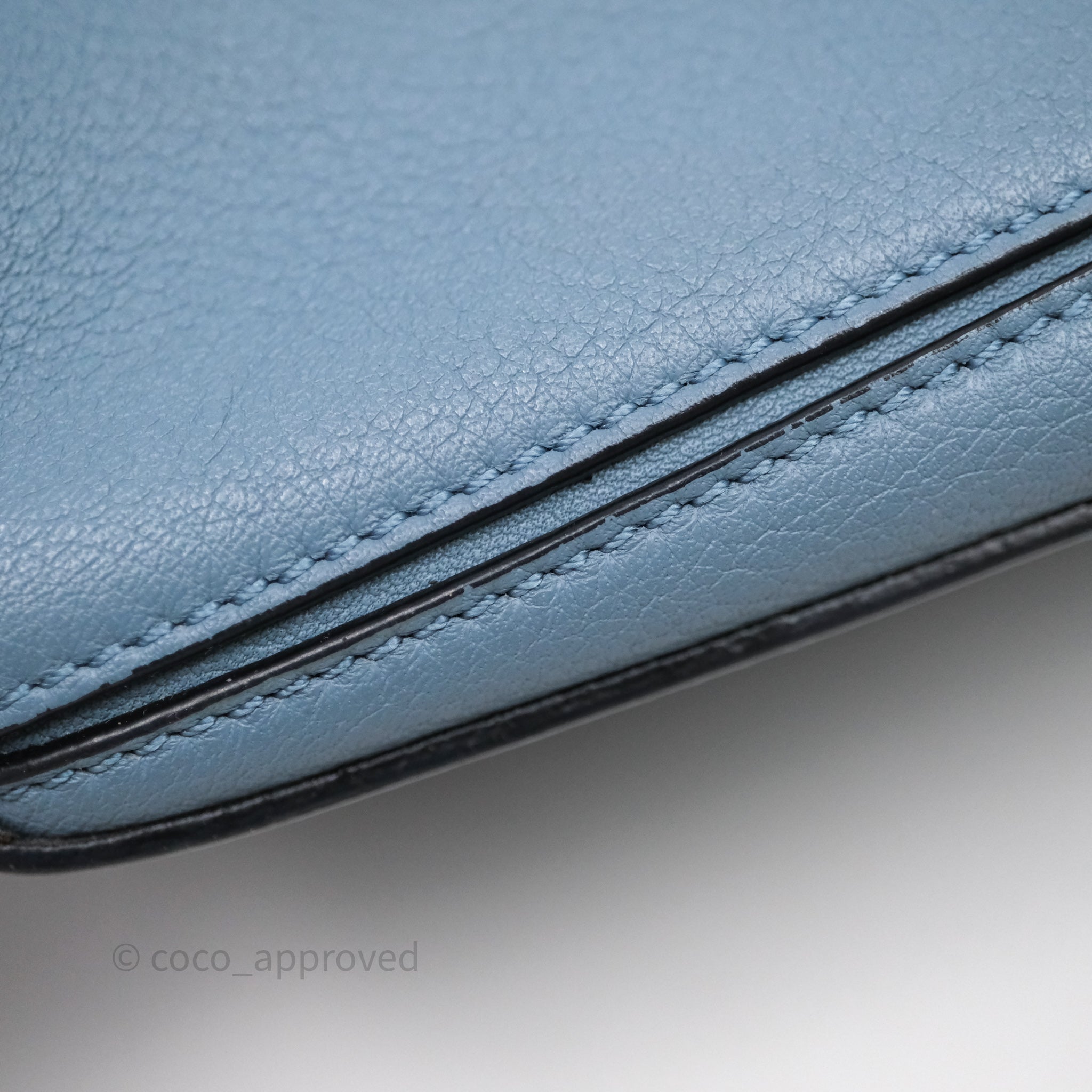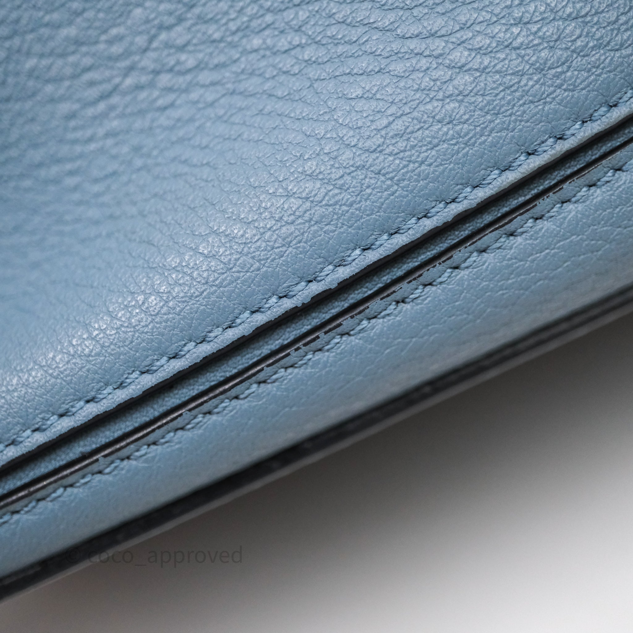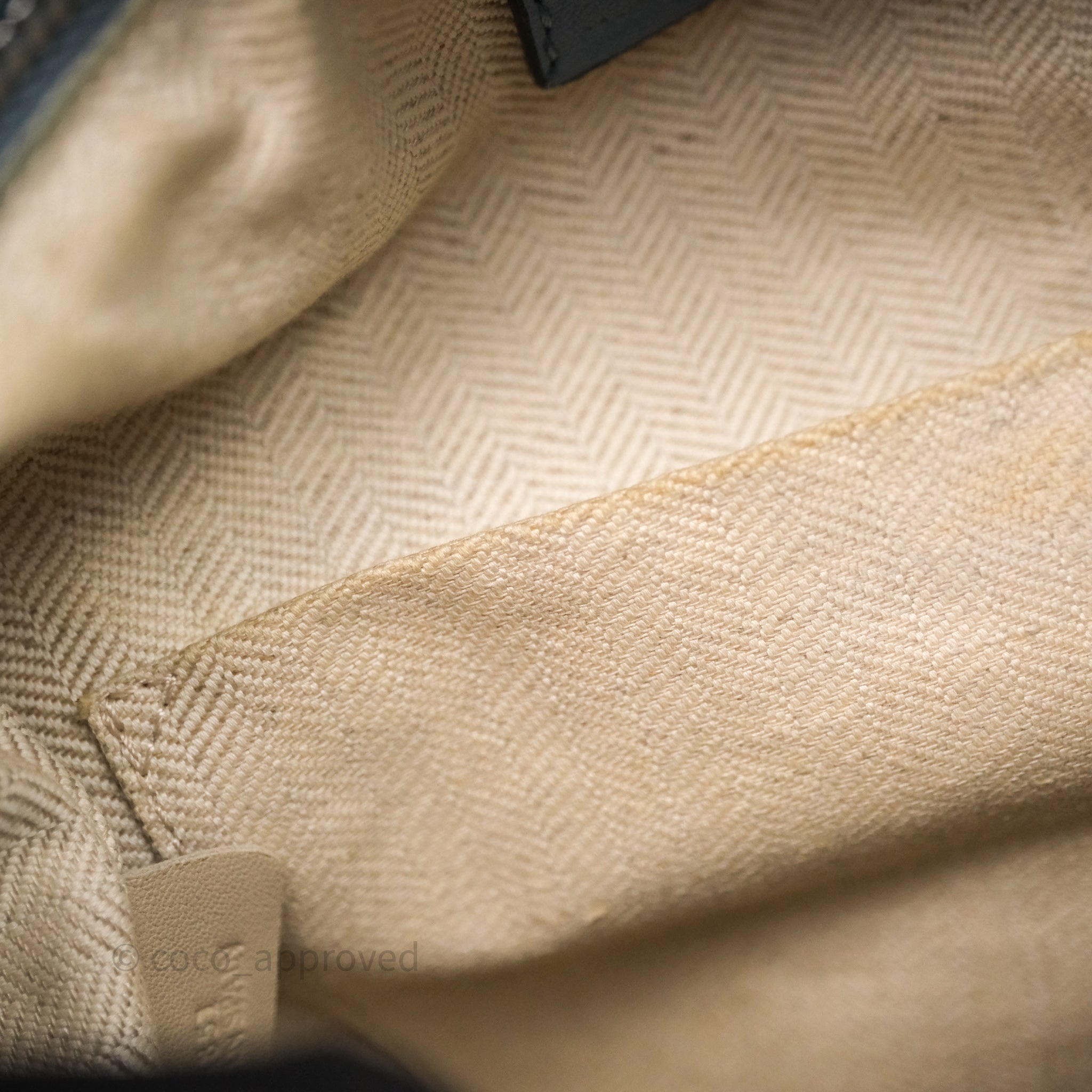 8.8/10 very good condition. Marks on surface, interior and strap. Broken seam on interior top right.