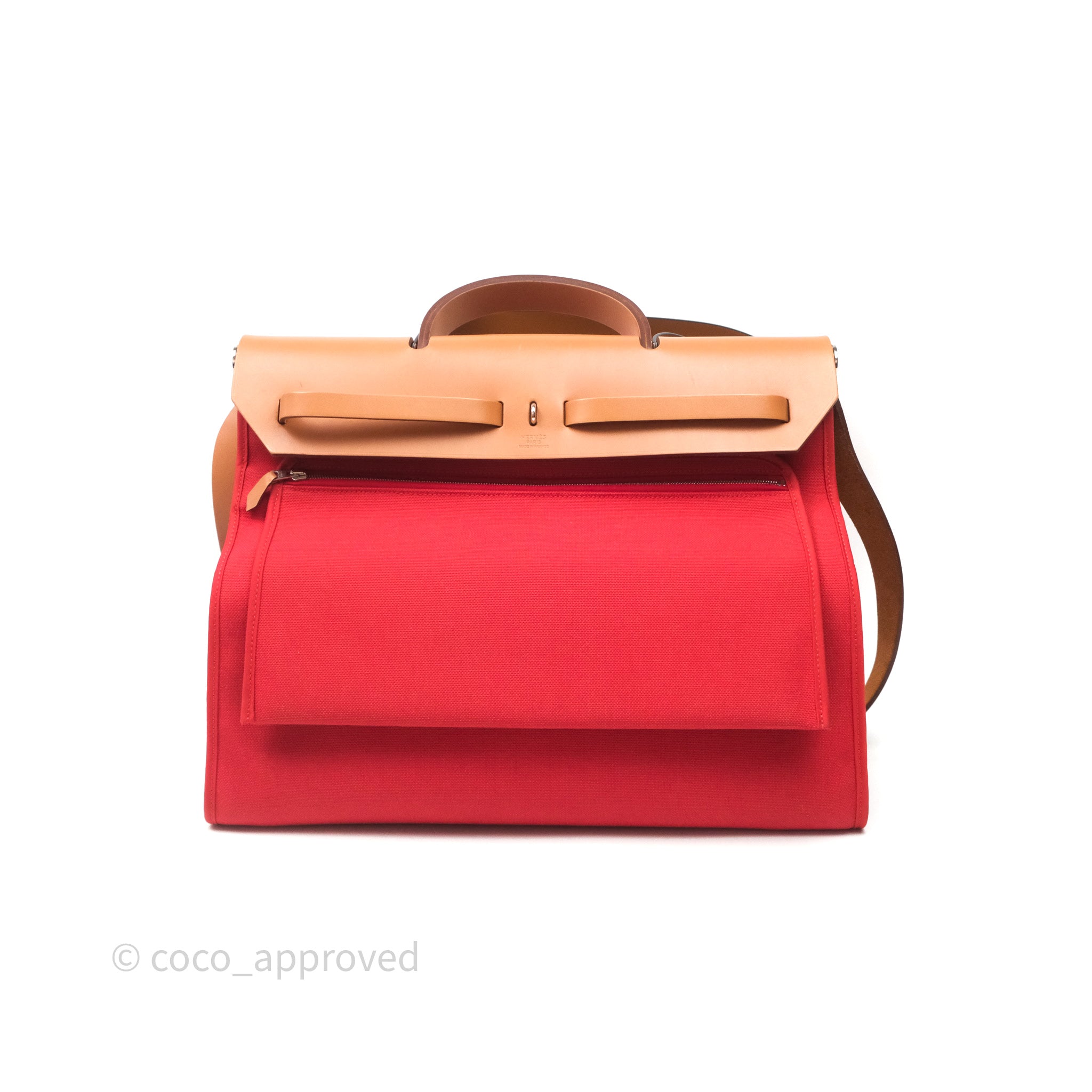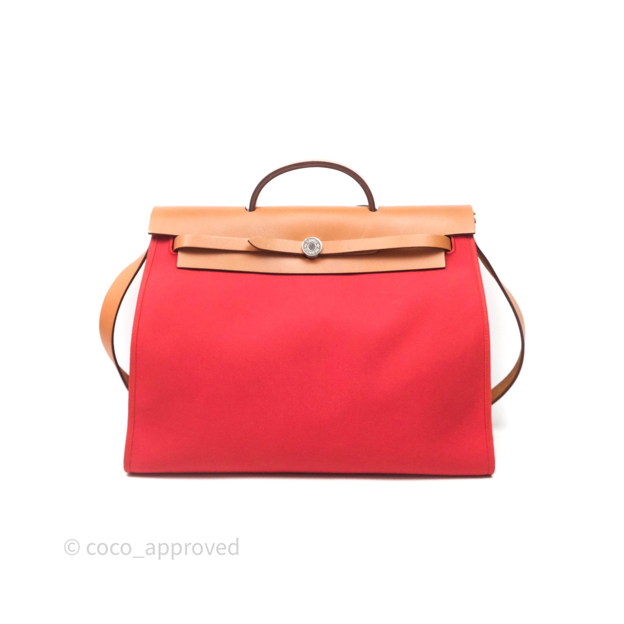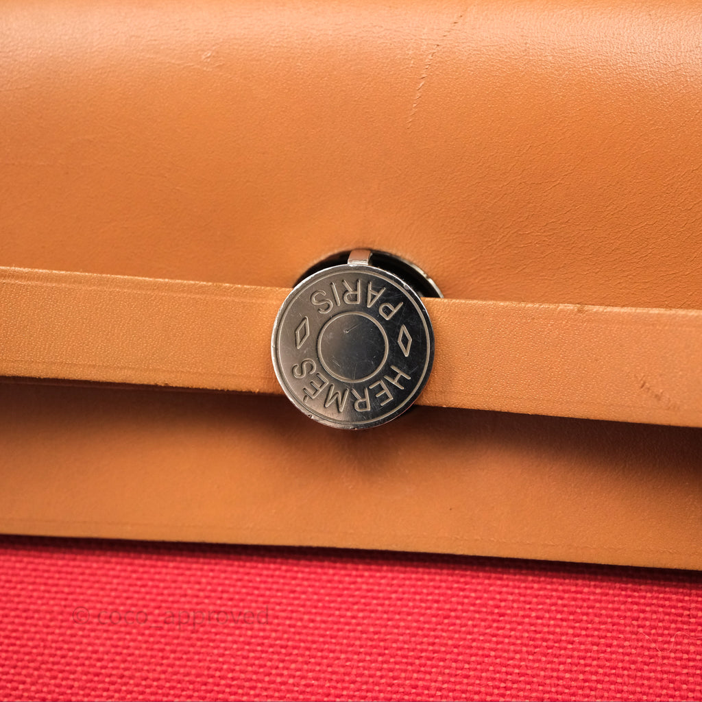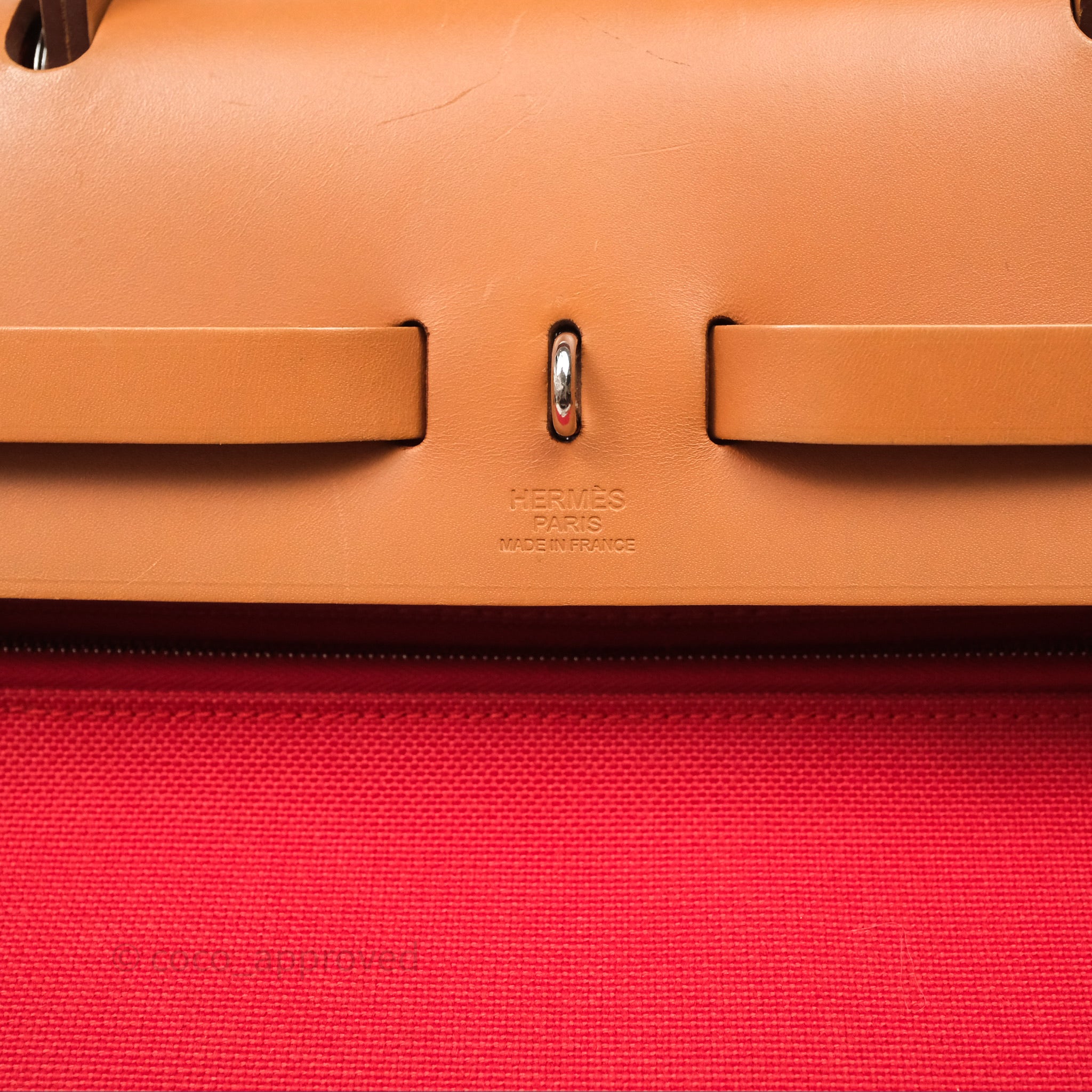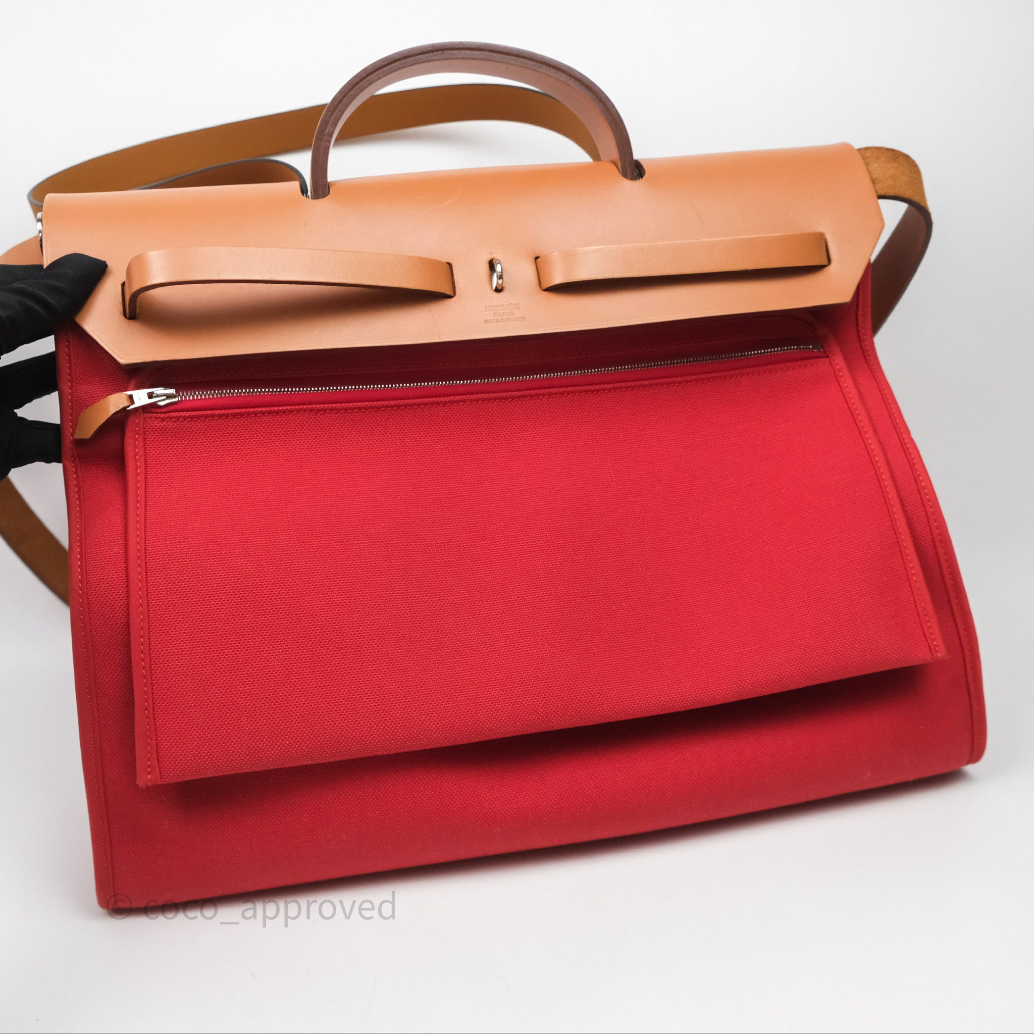 Hermès Herbag Zip 39 Red/Natural Canvas Palladium Hardware