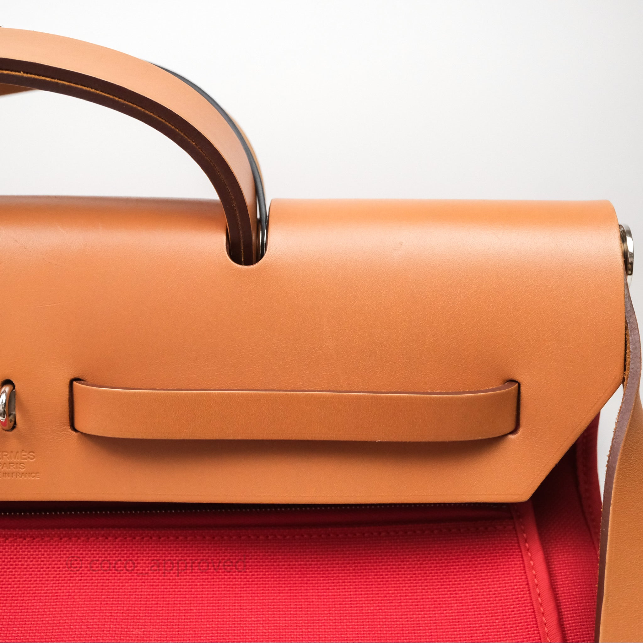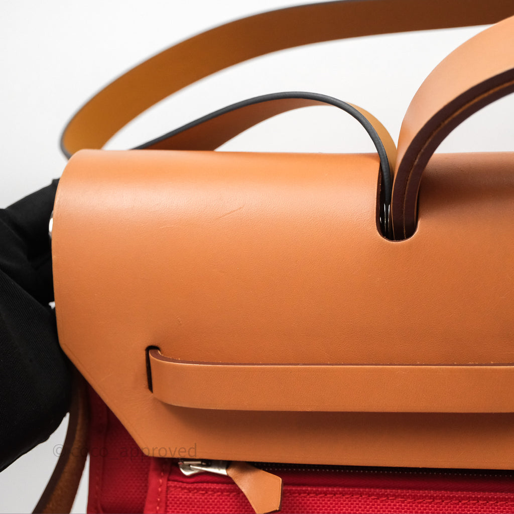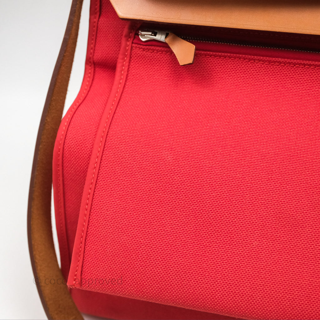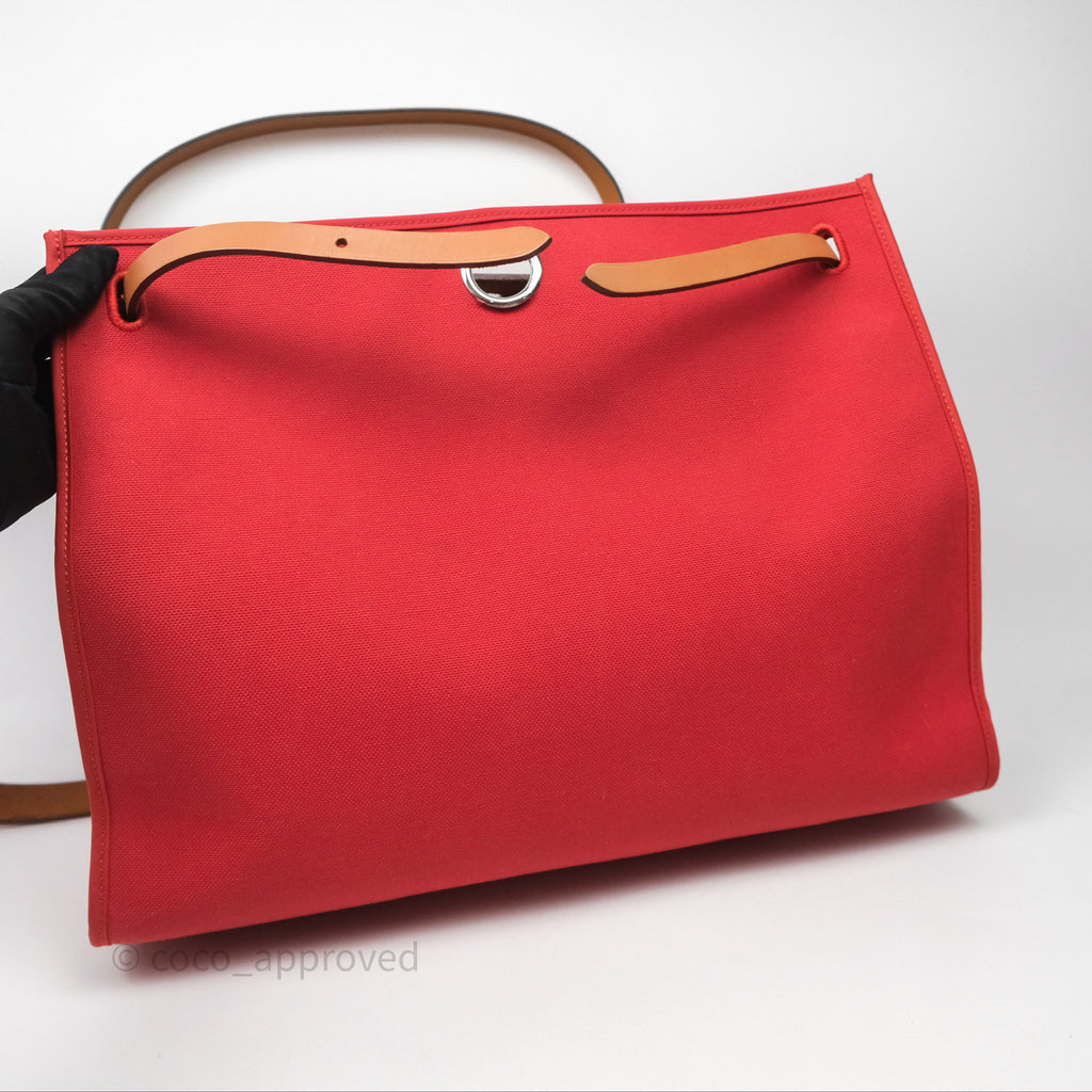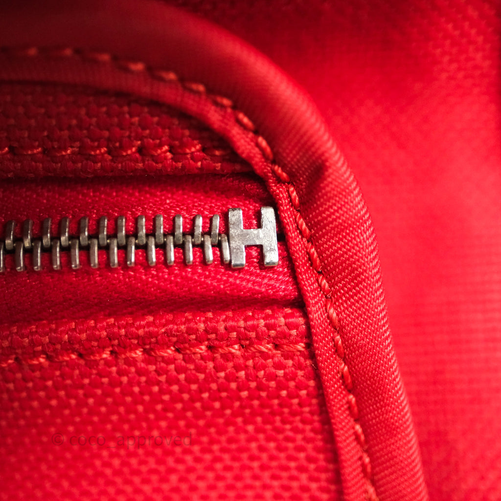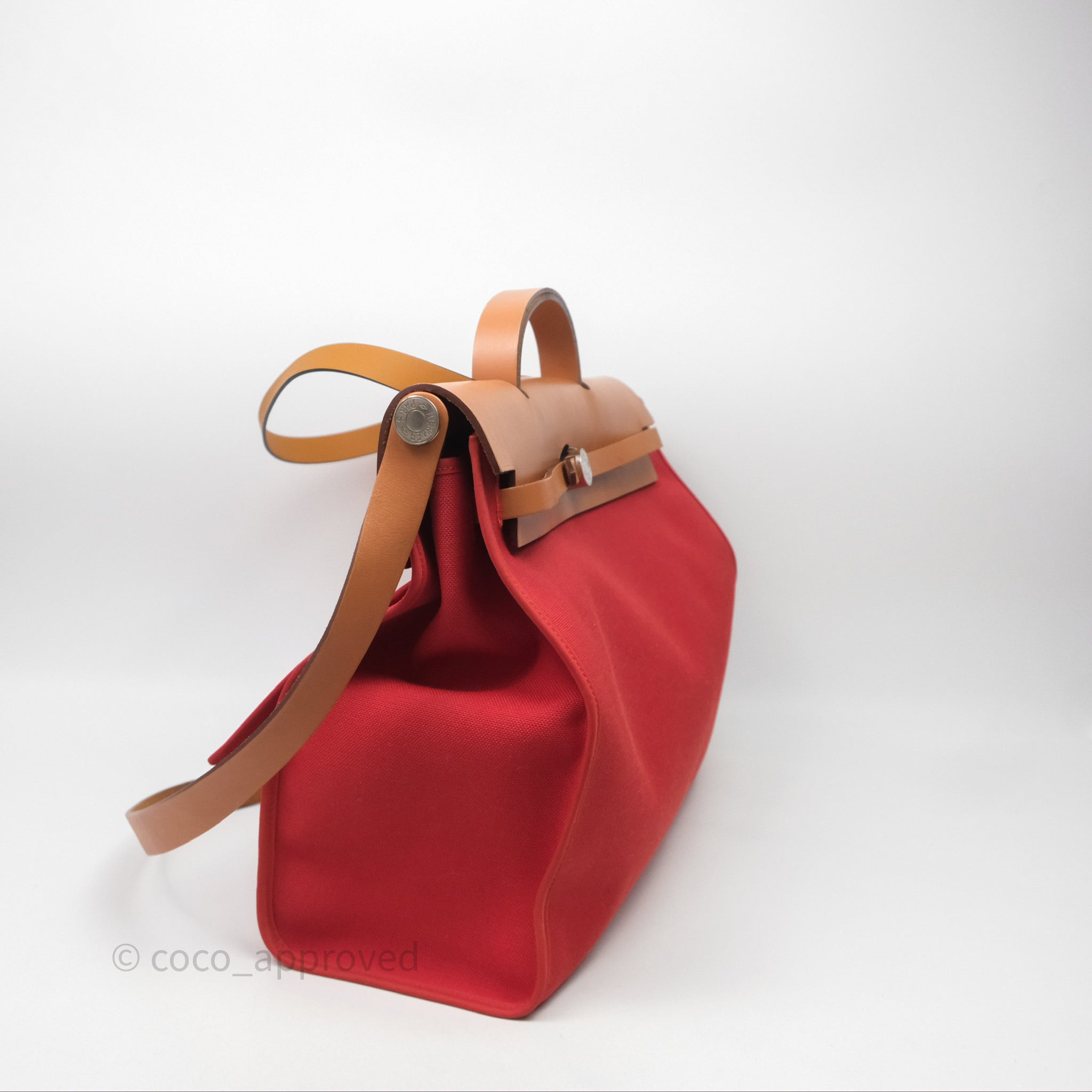 Hermès Herbag Zip 39 Red/Natural Canvas Palladium Hardware