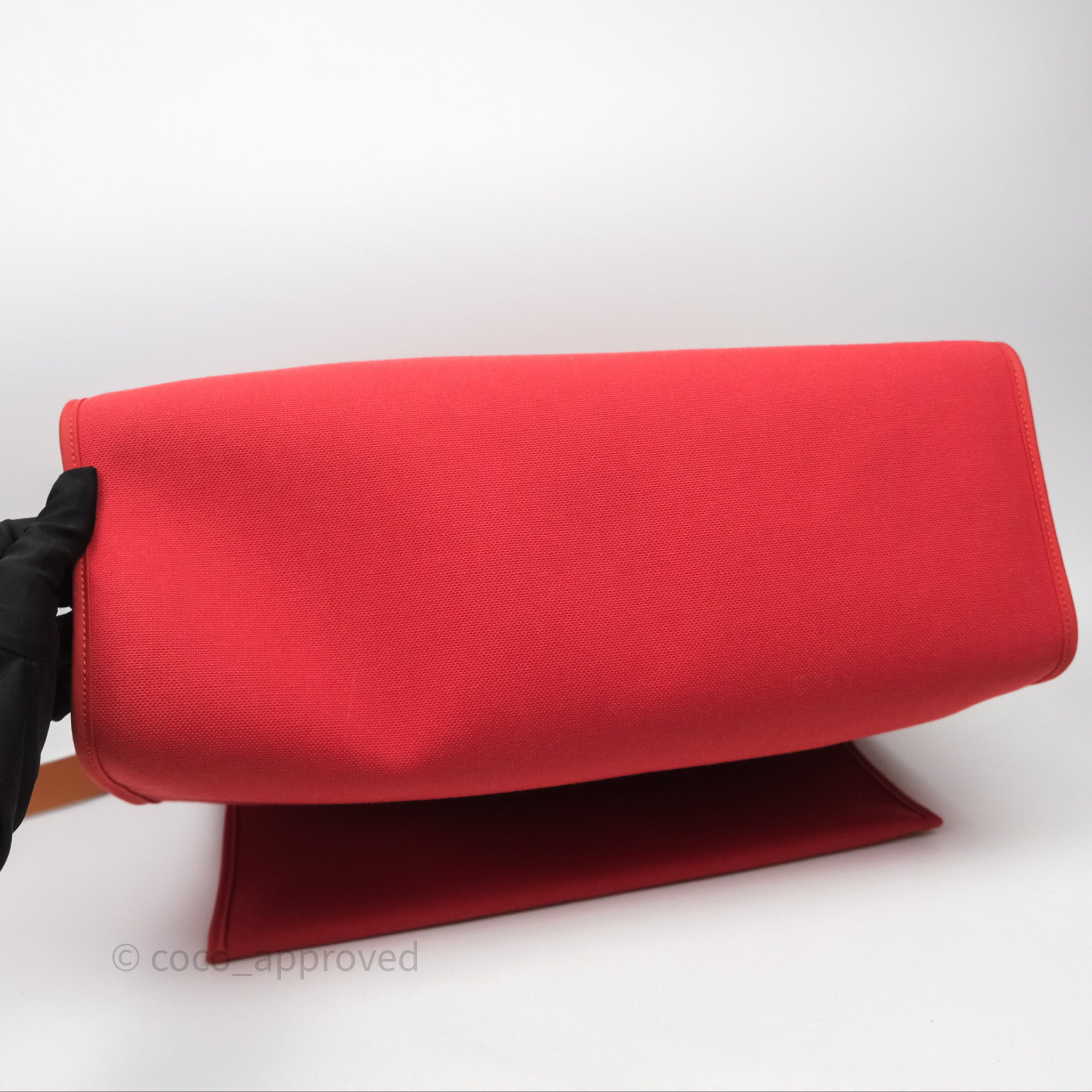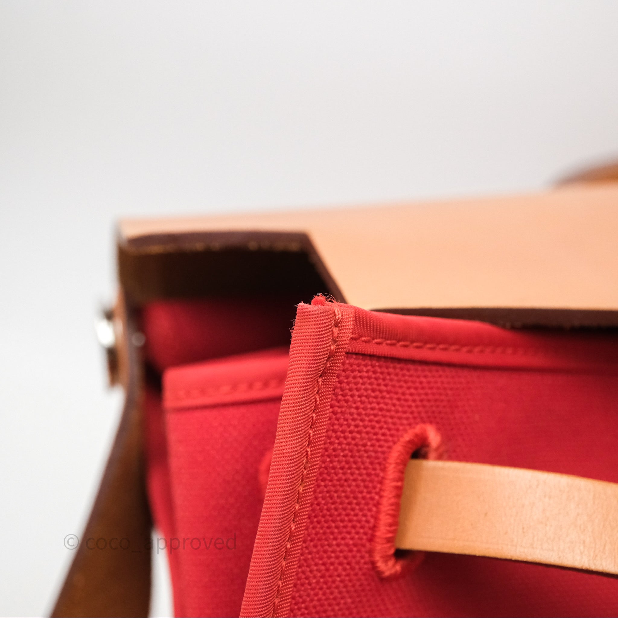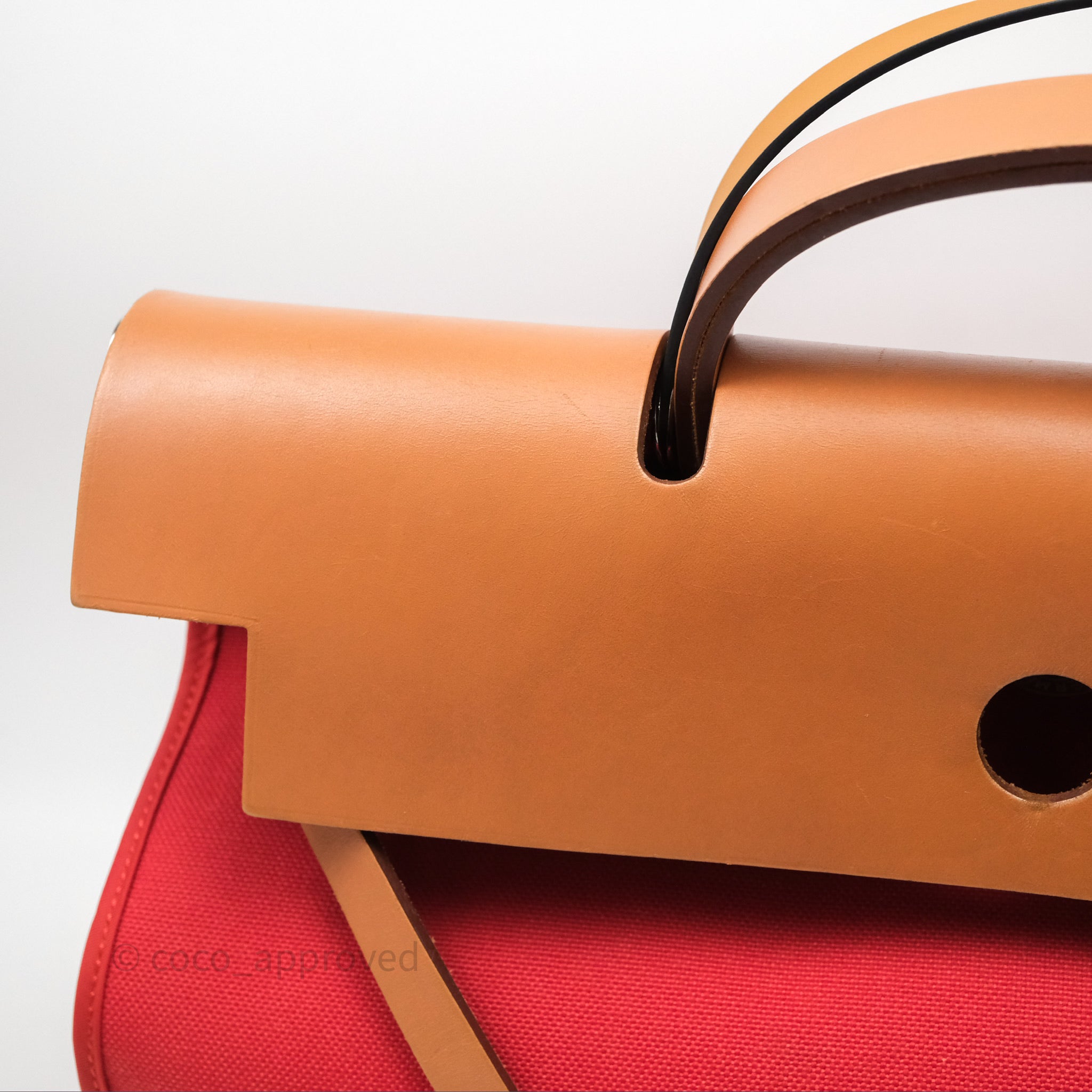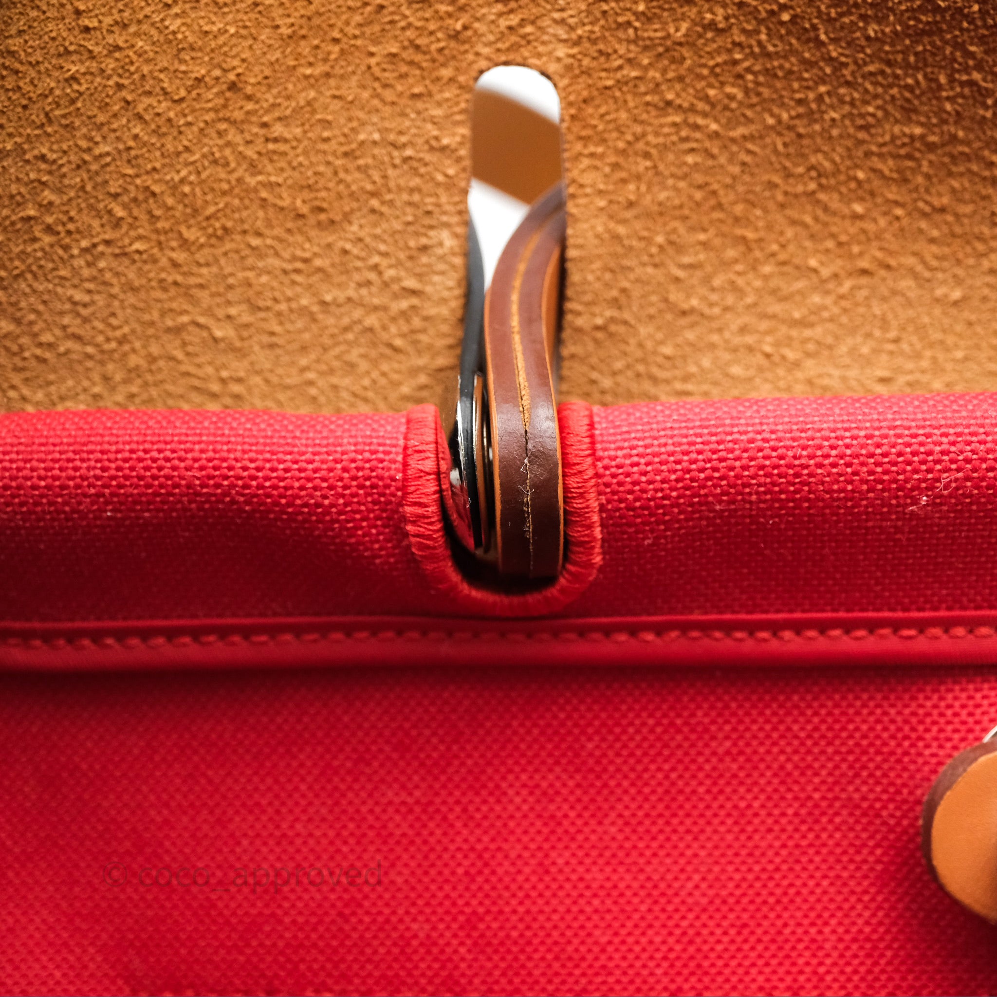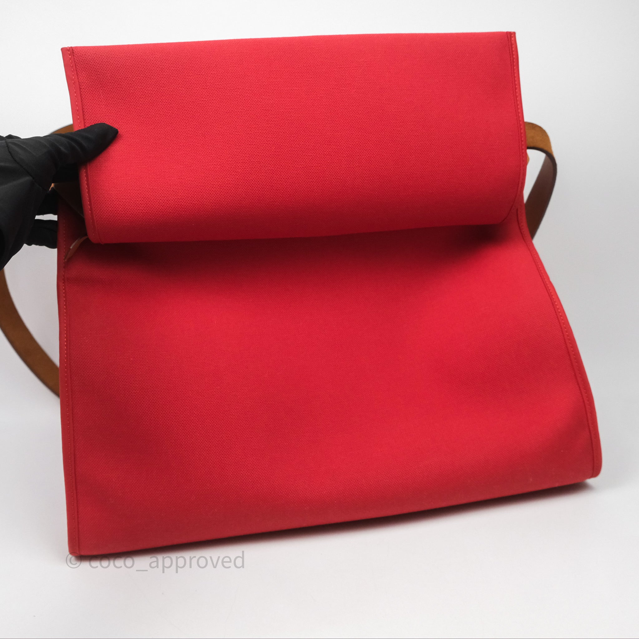 Hermès Herbag Zip 39 Red/Natural Canvas Palladium Hardware