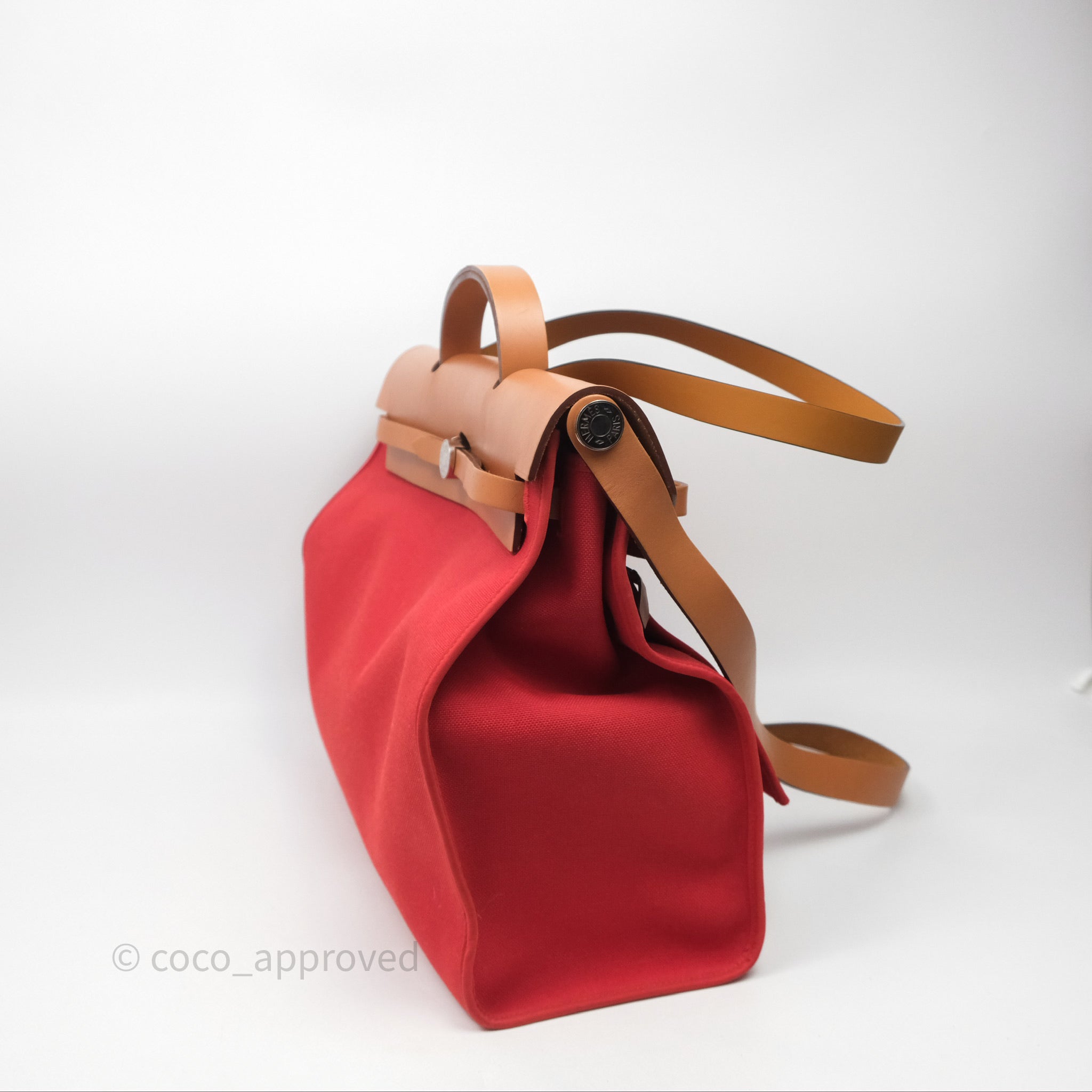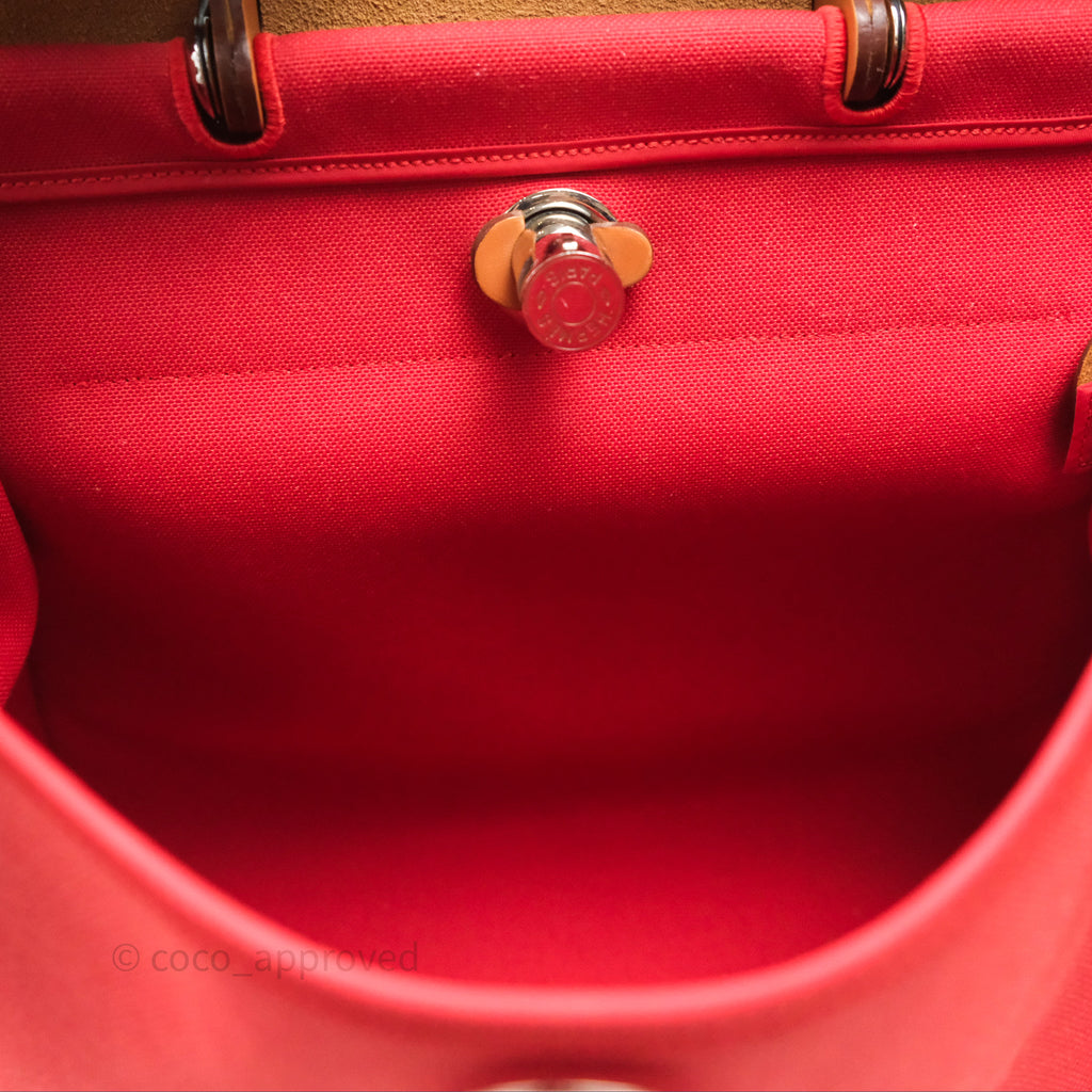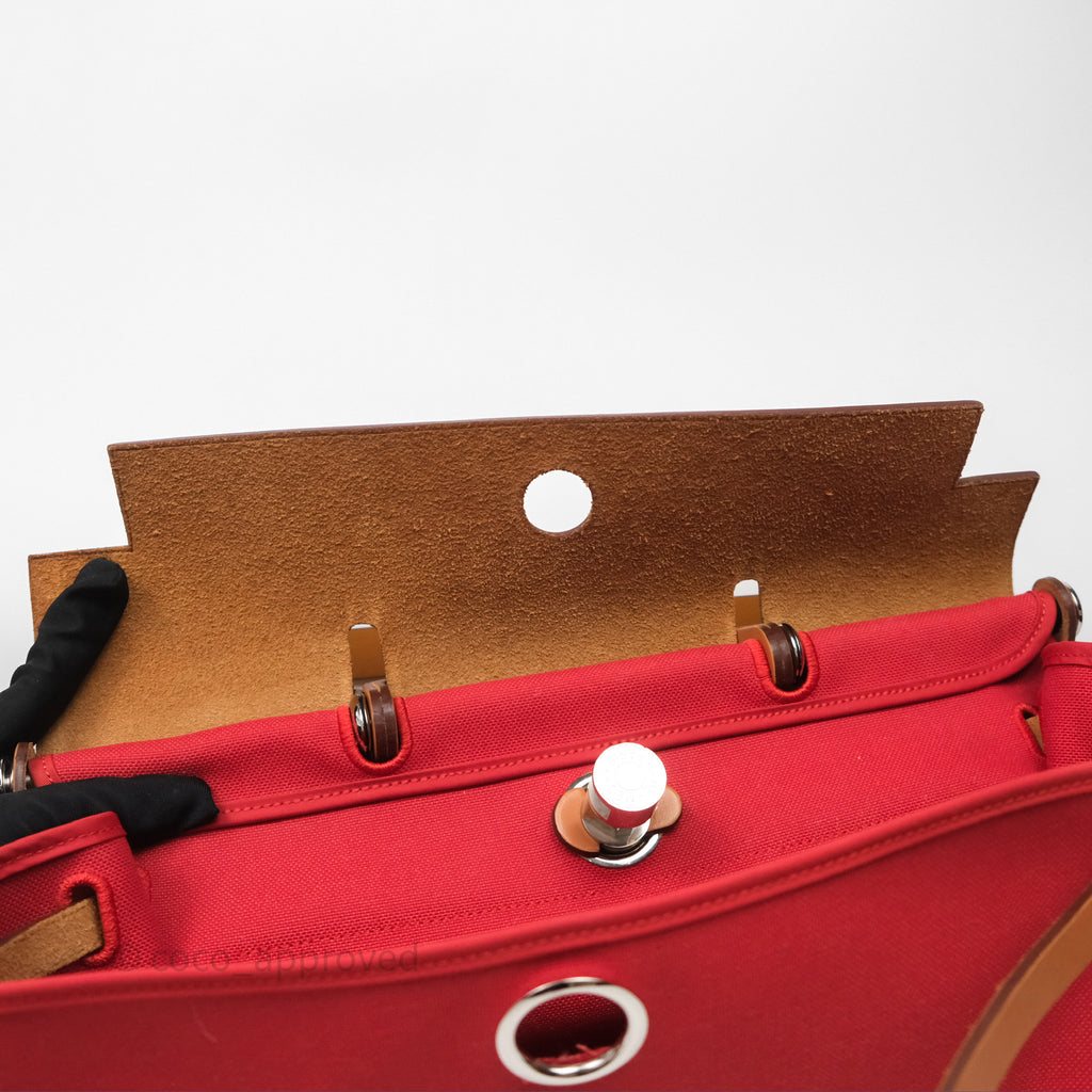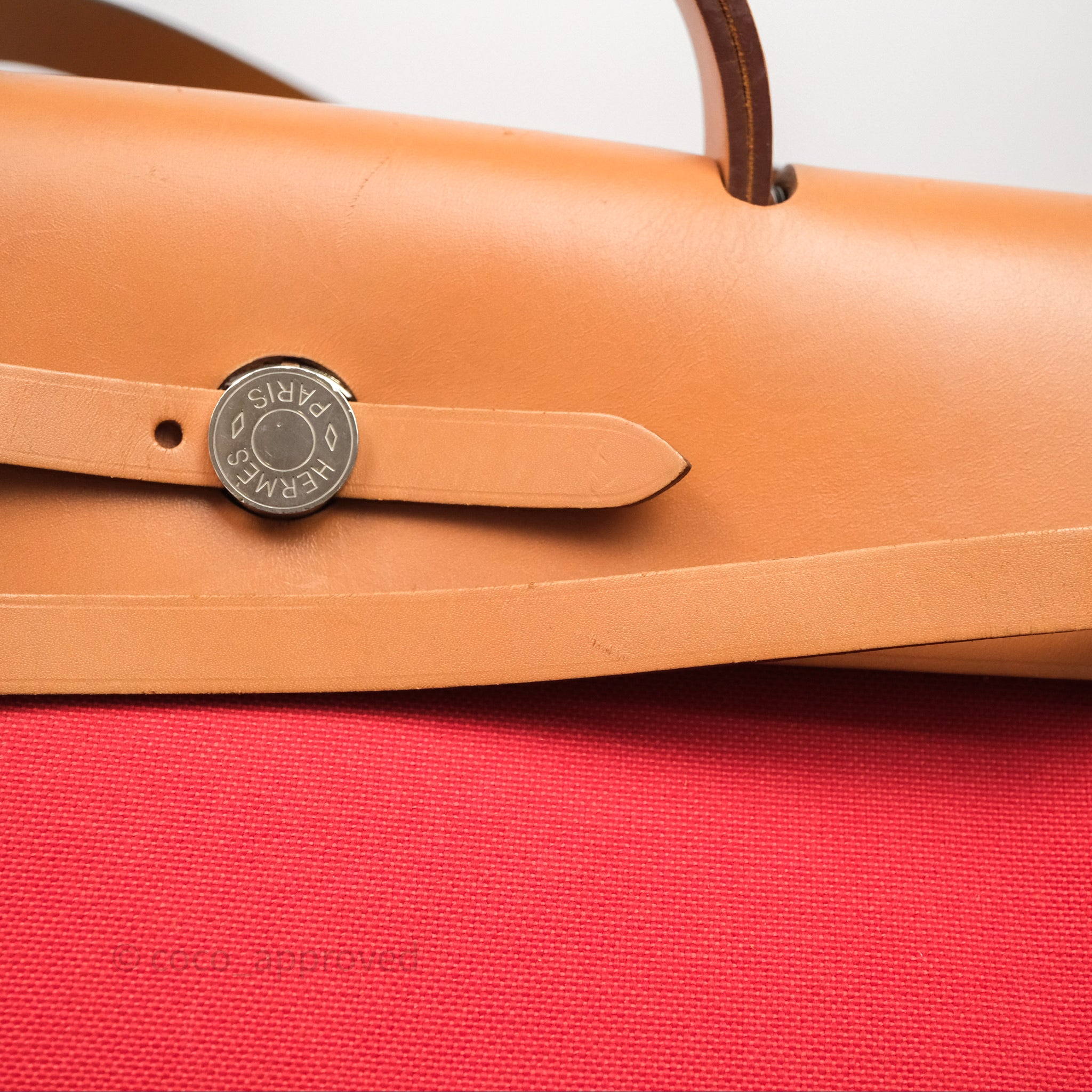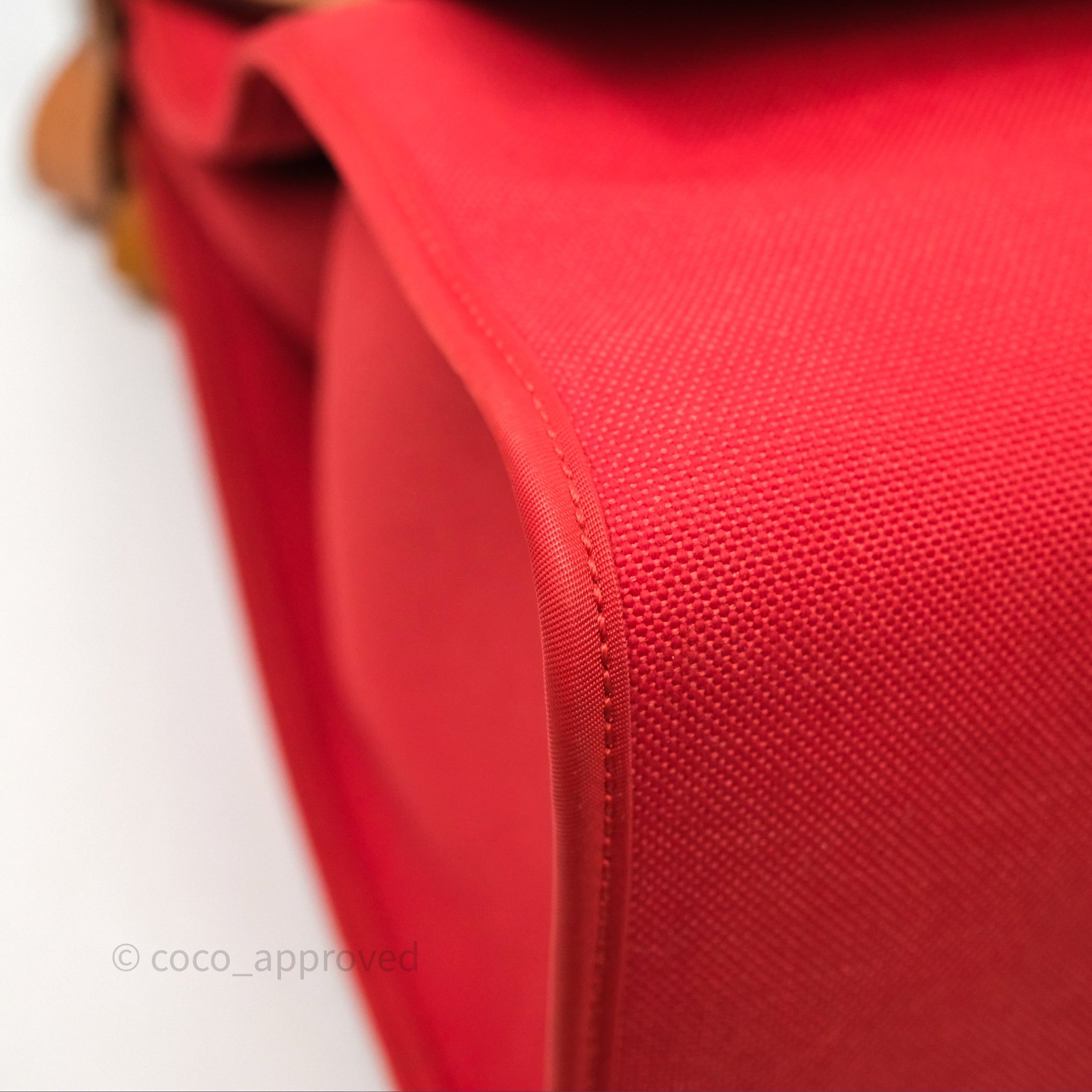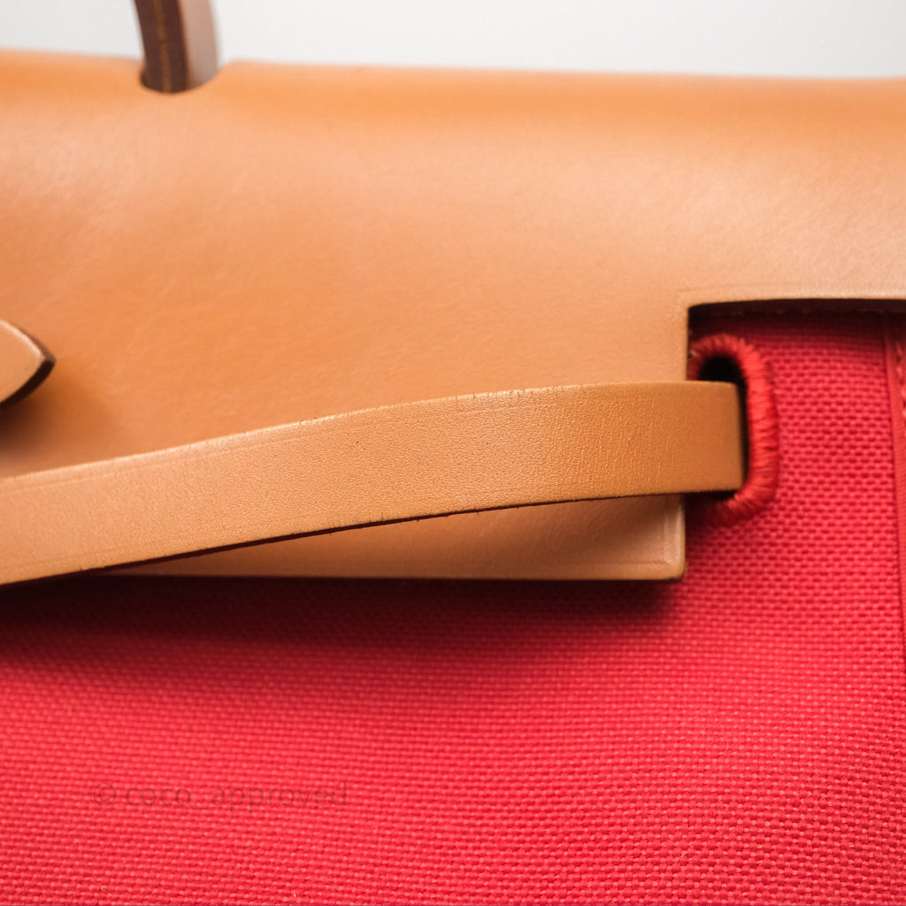 Hermès Herbag Zip 39 Red/Natural Canvas Palladium Hardware