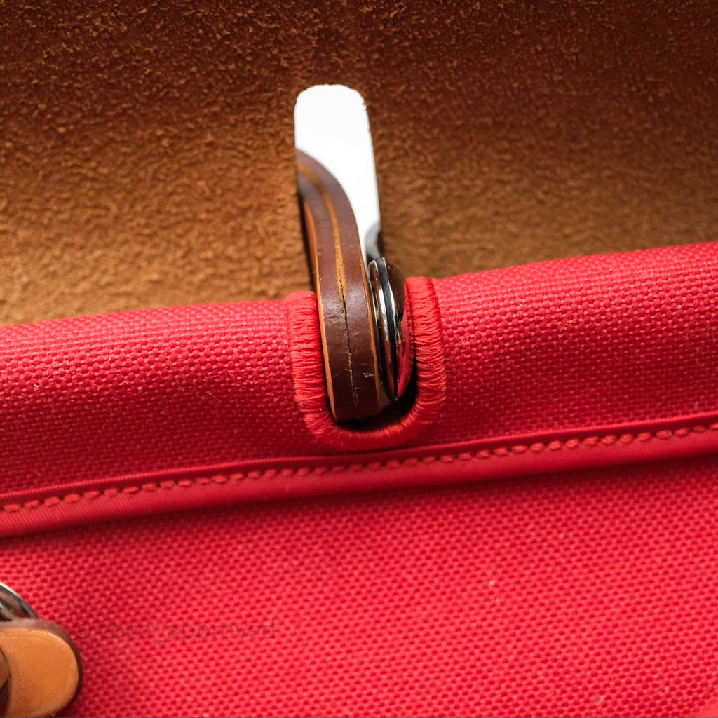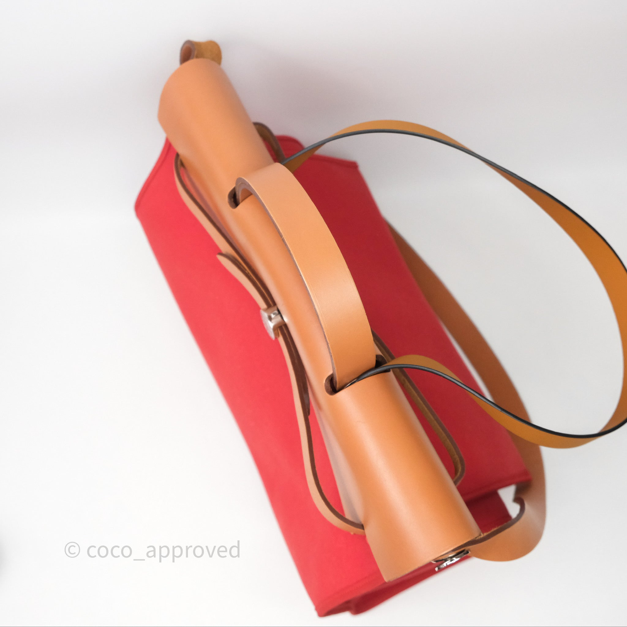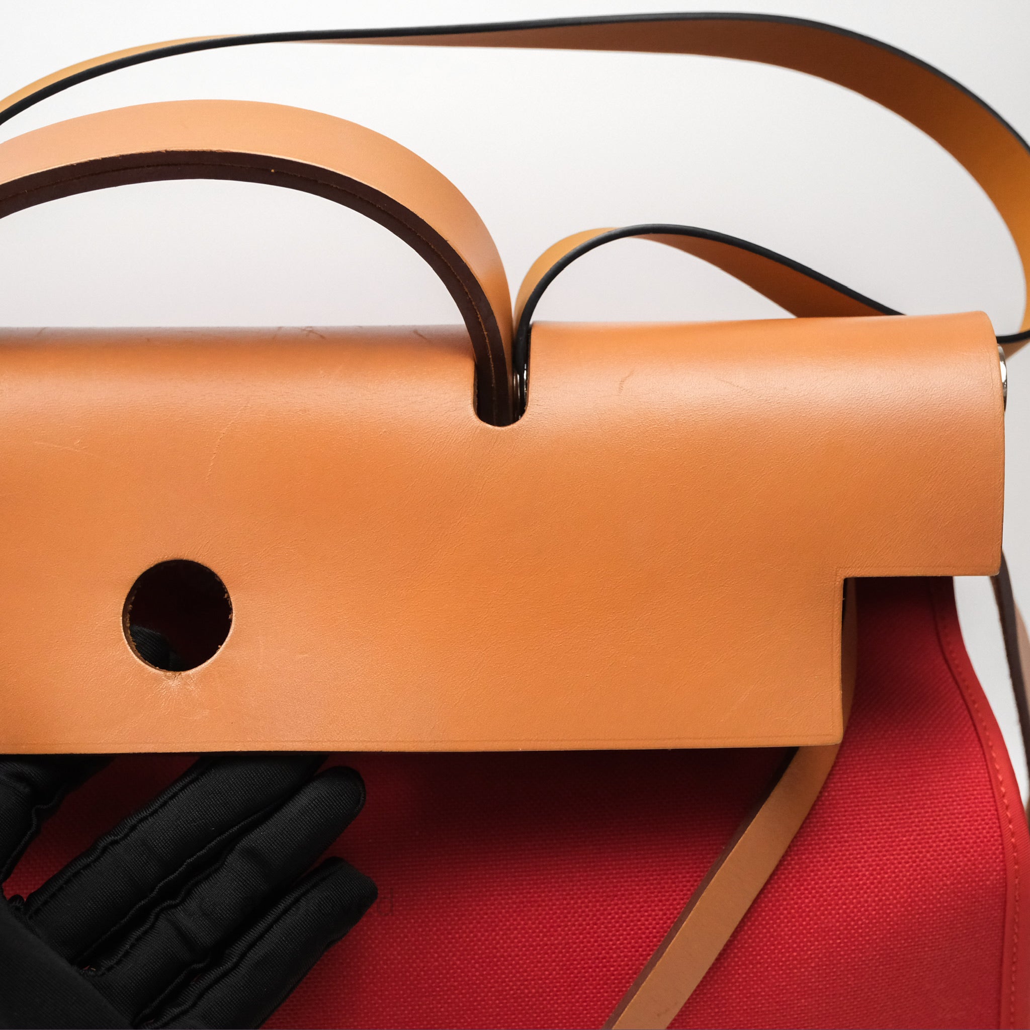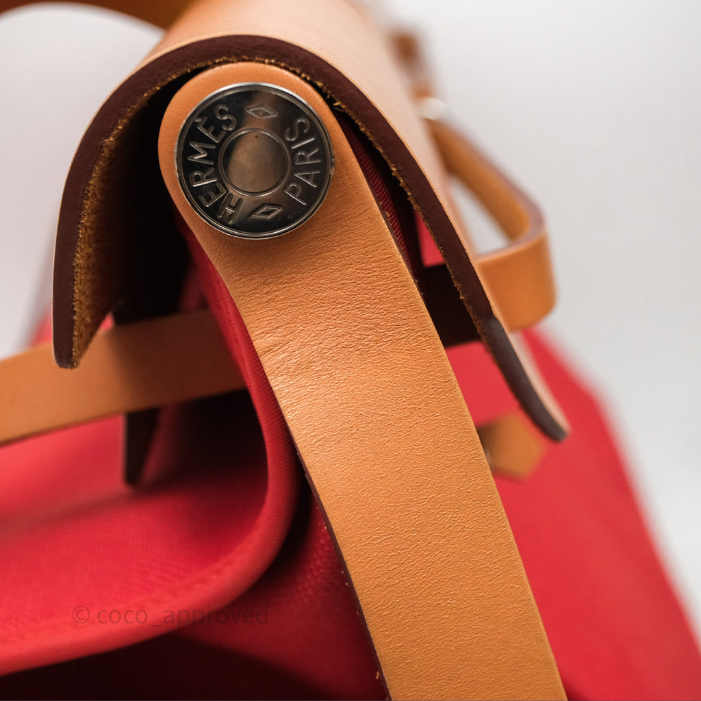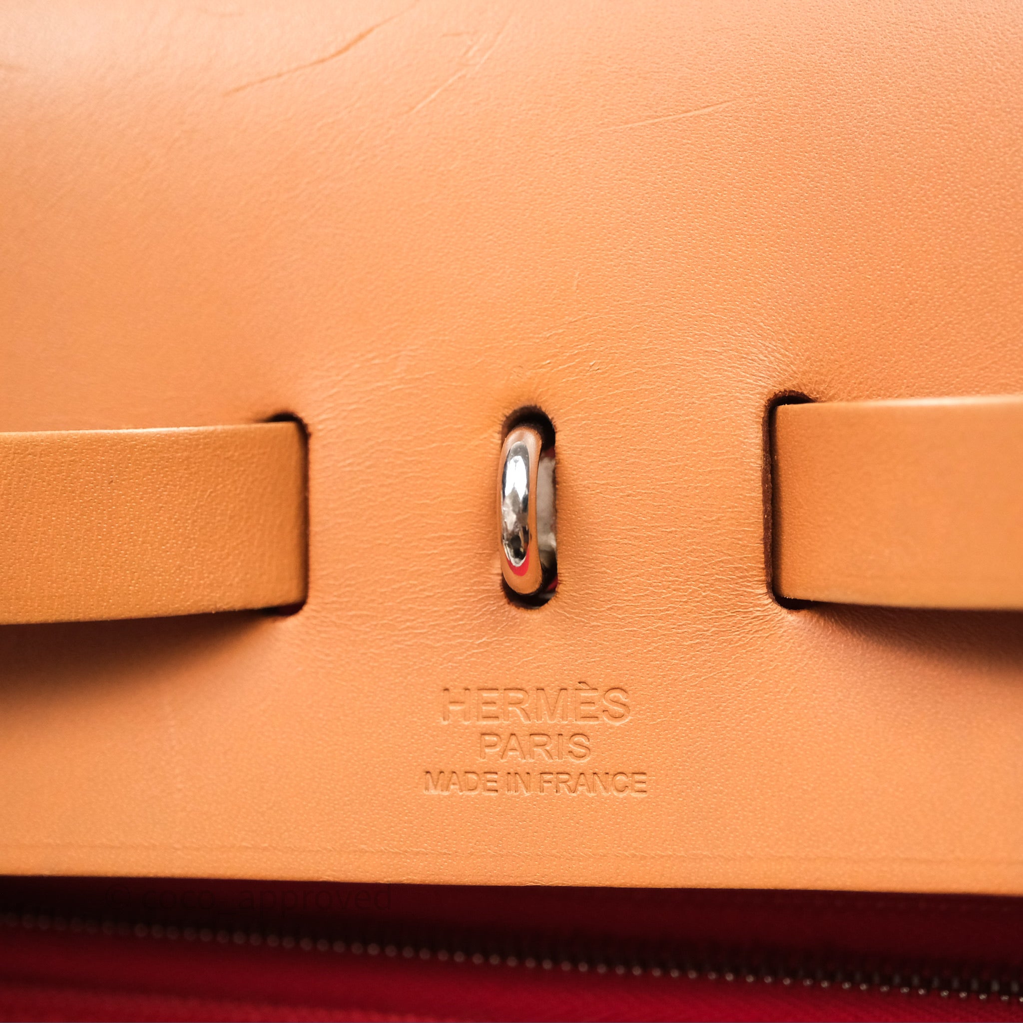 Hermès Herbag Zip 39 Red/Natural Canvas Palladium Hardware