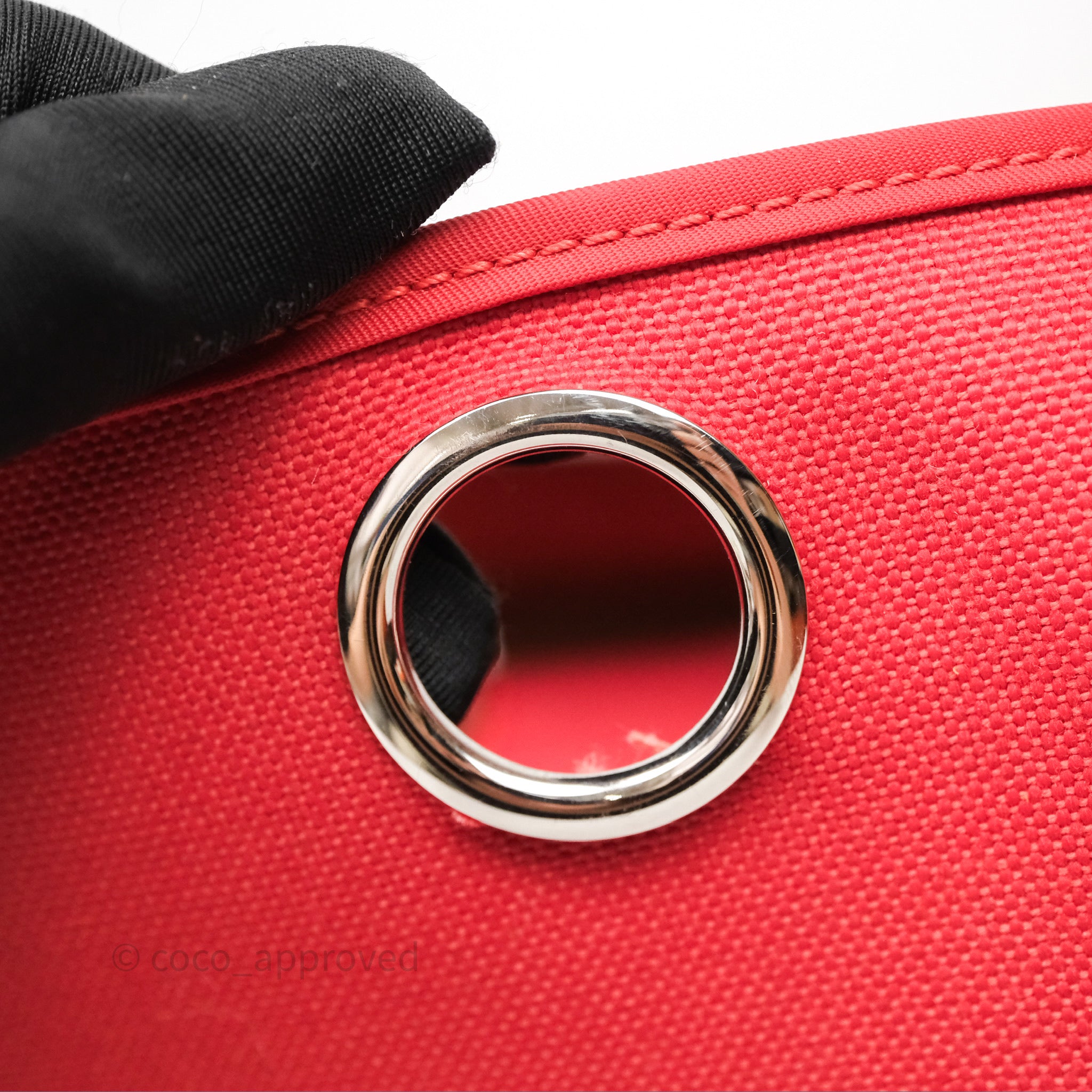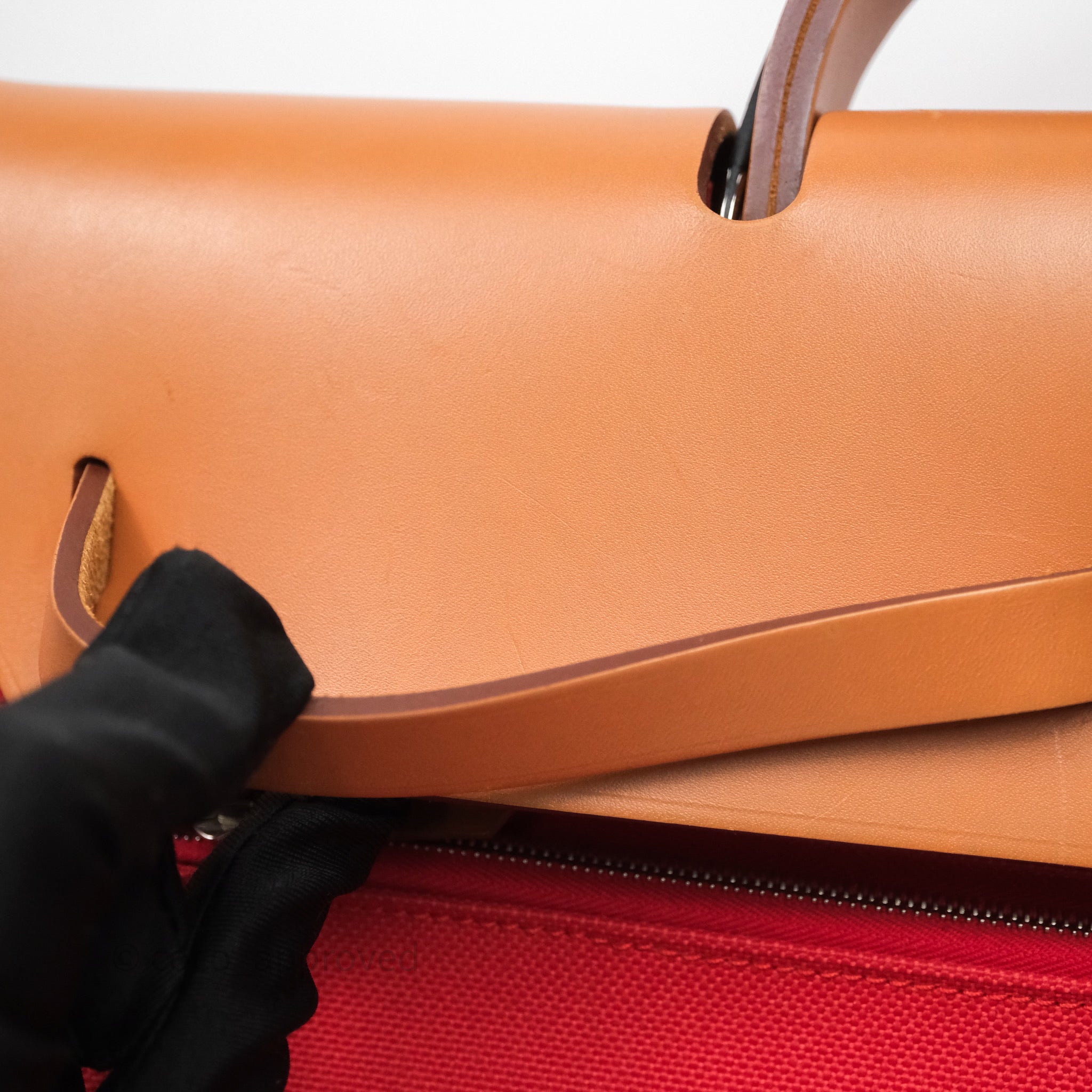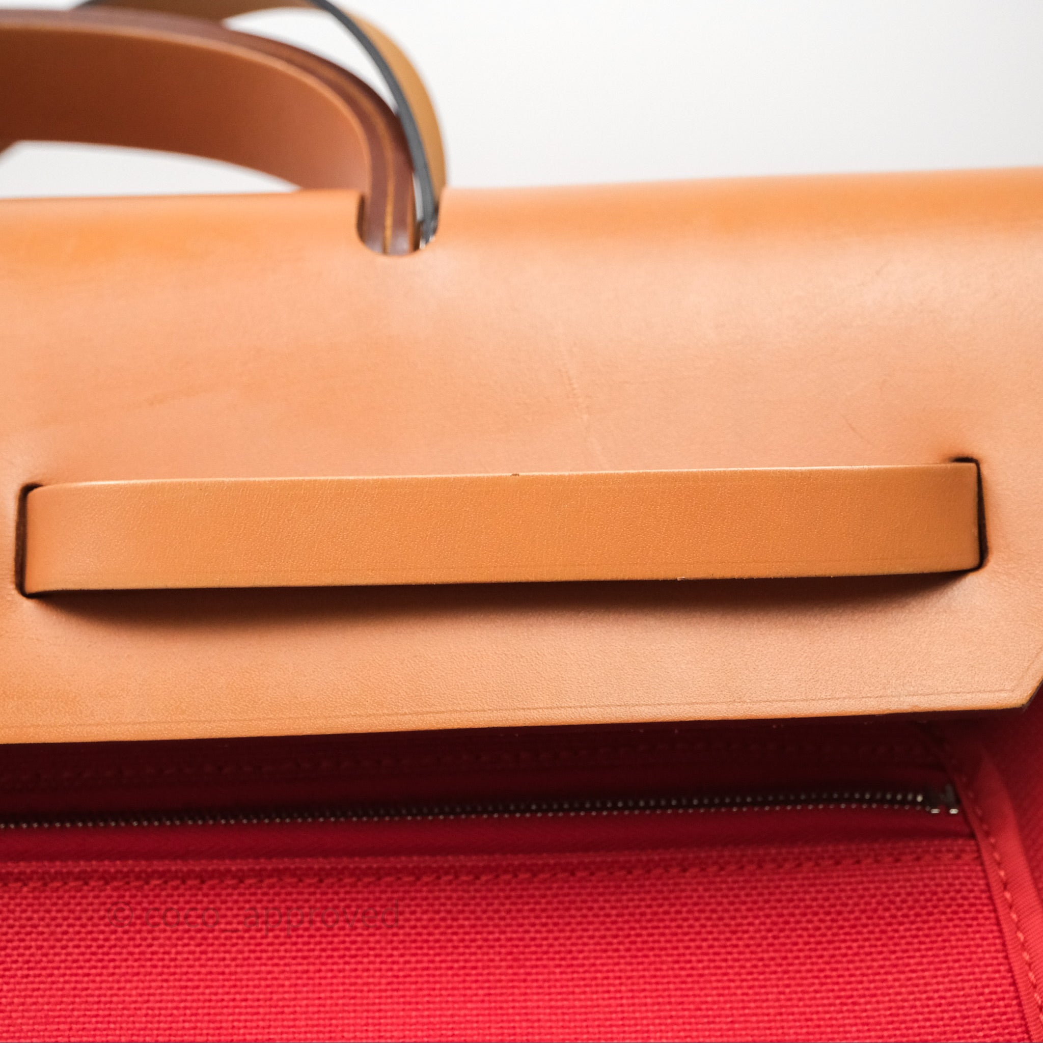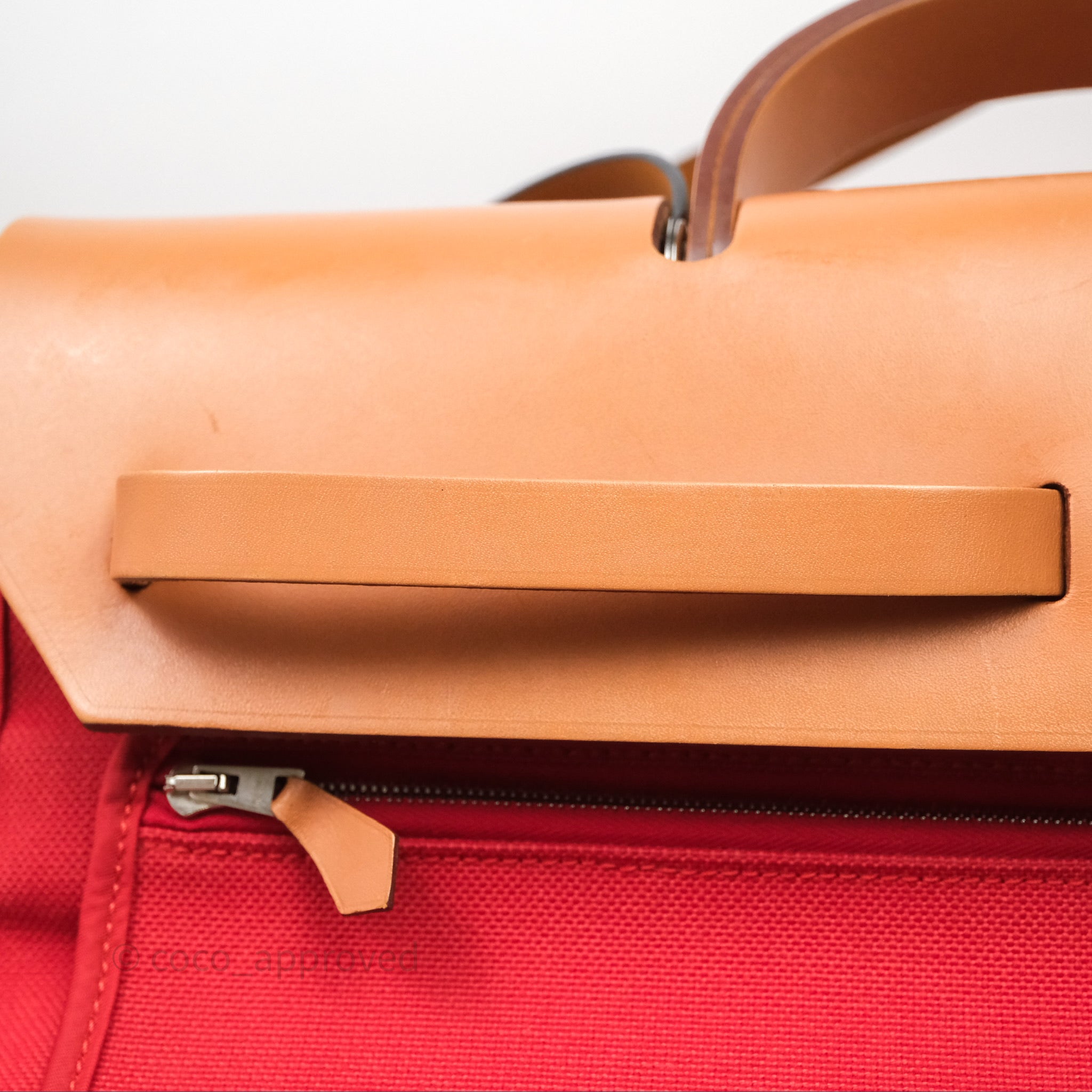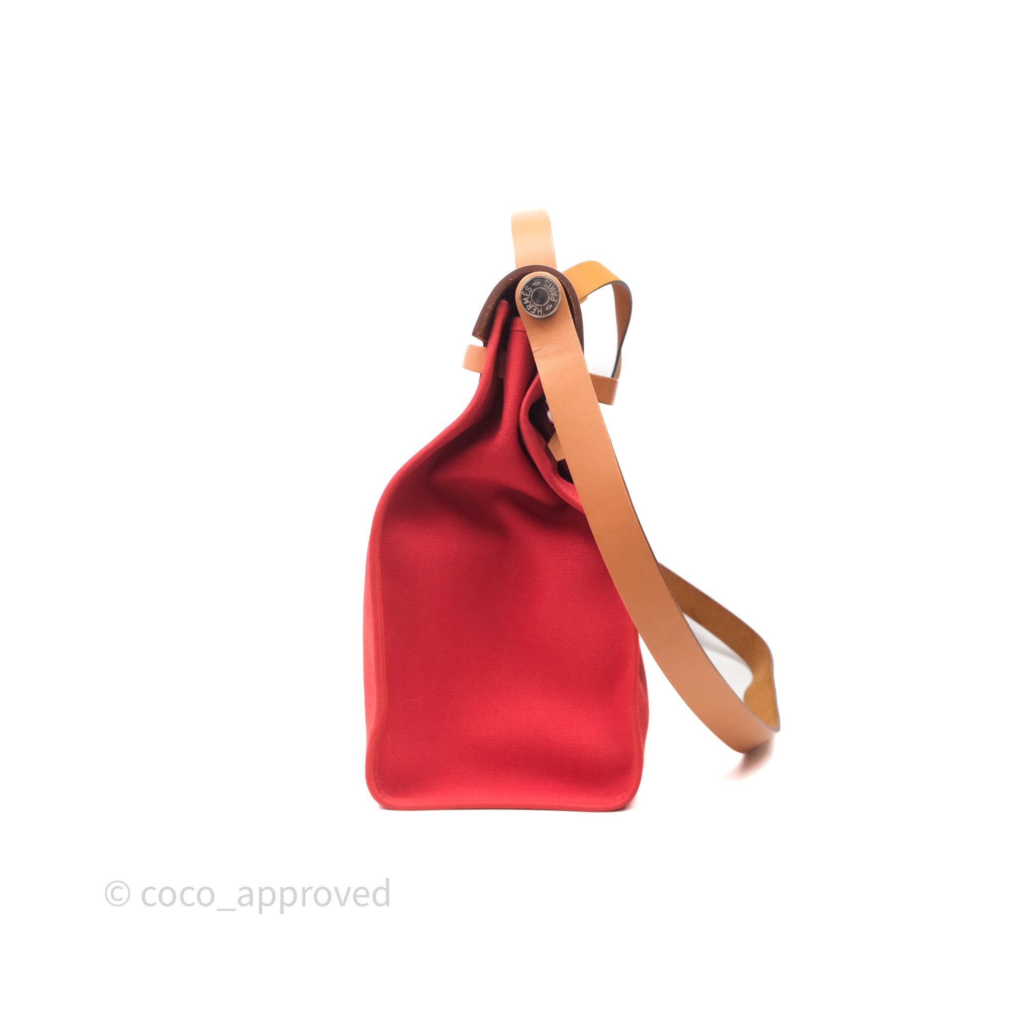Hermès Herbag Zip 39 Red/Natural Canvas Palladium Hardware