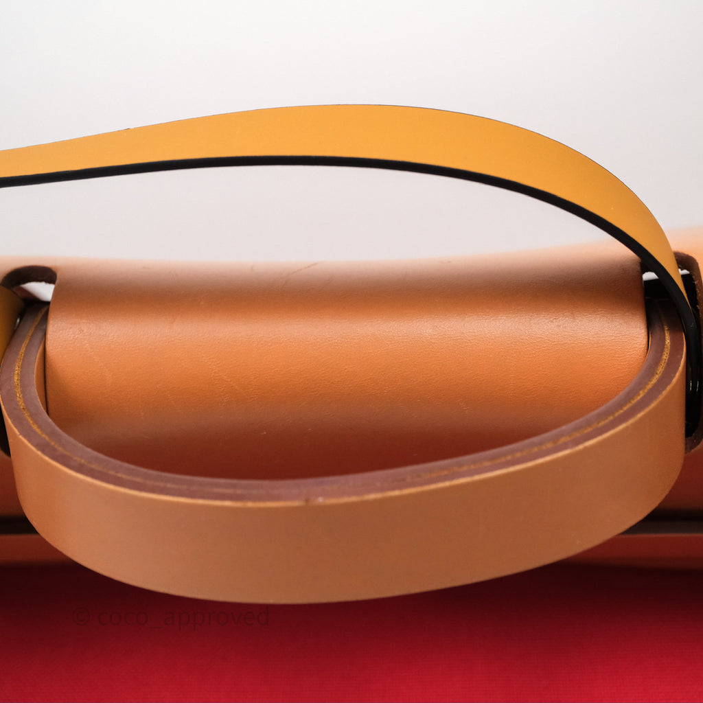 9/10 excellent condition. Hairlines on leather, handle, bottom and strap. Scratches on hardware. Darkening on corners.
