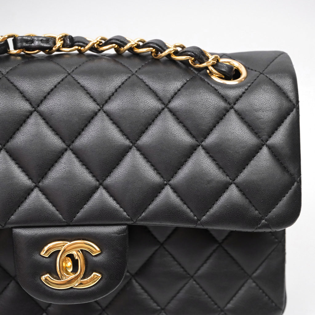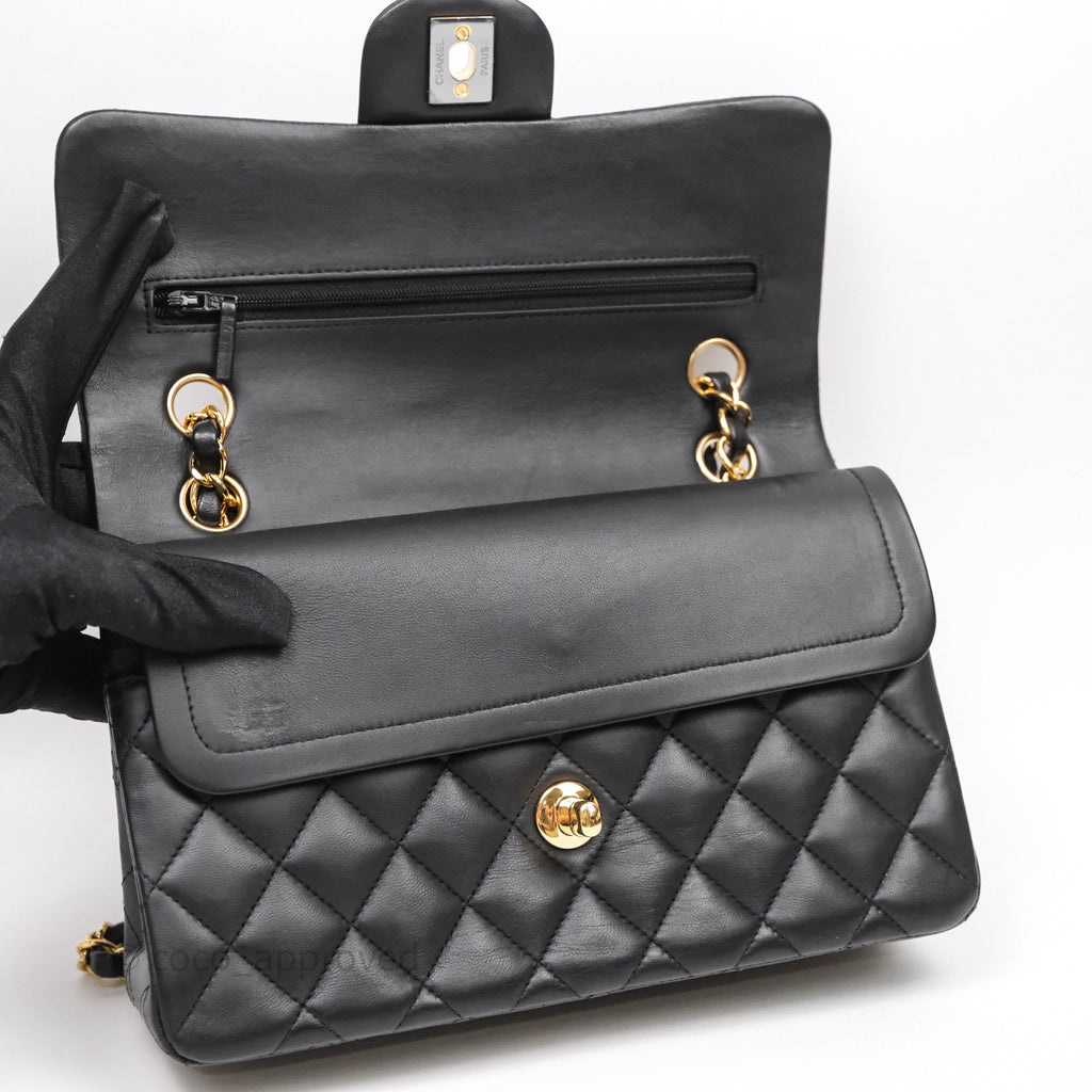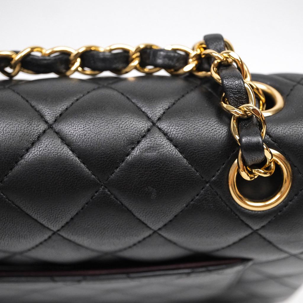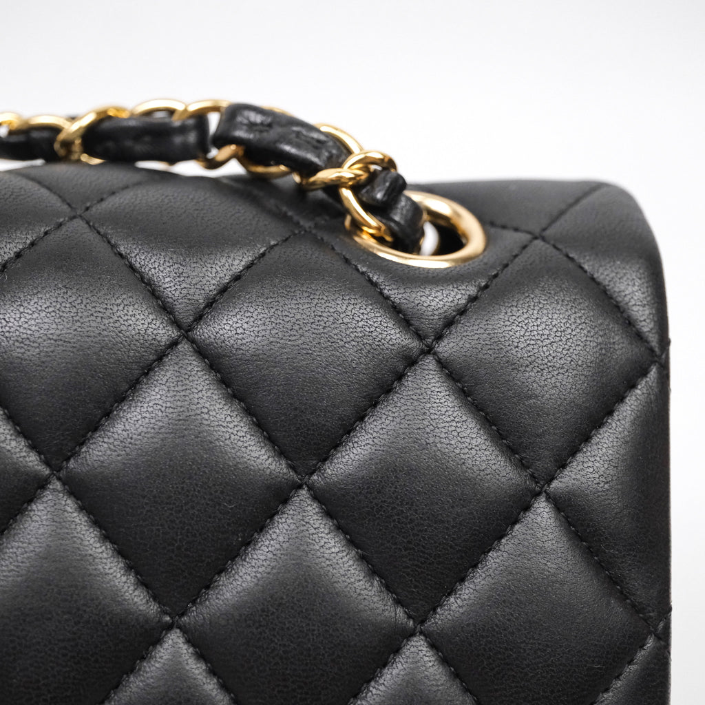Chanel Small Classic Flap Quilted Black Lambskin Gold Hardware