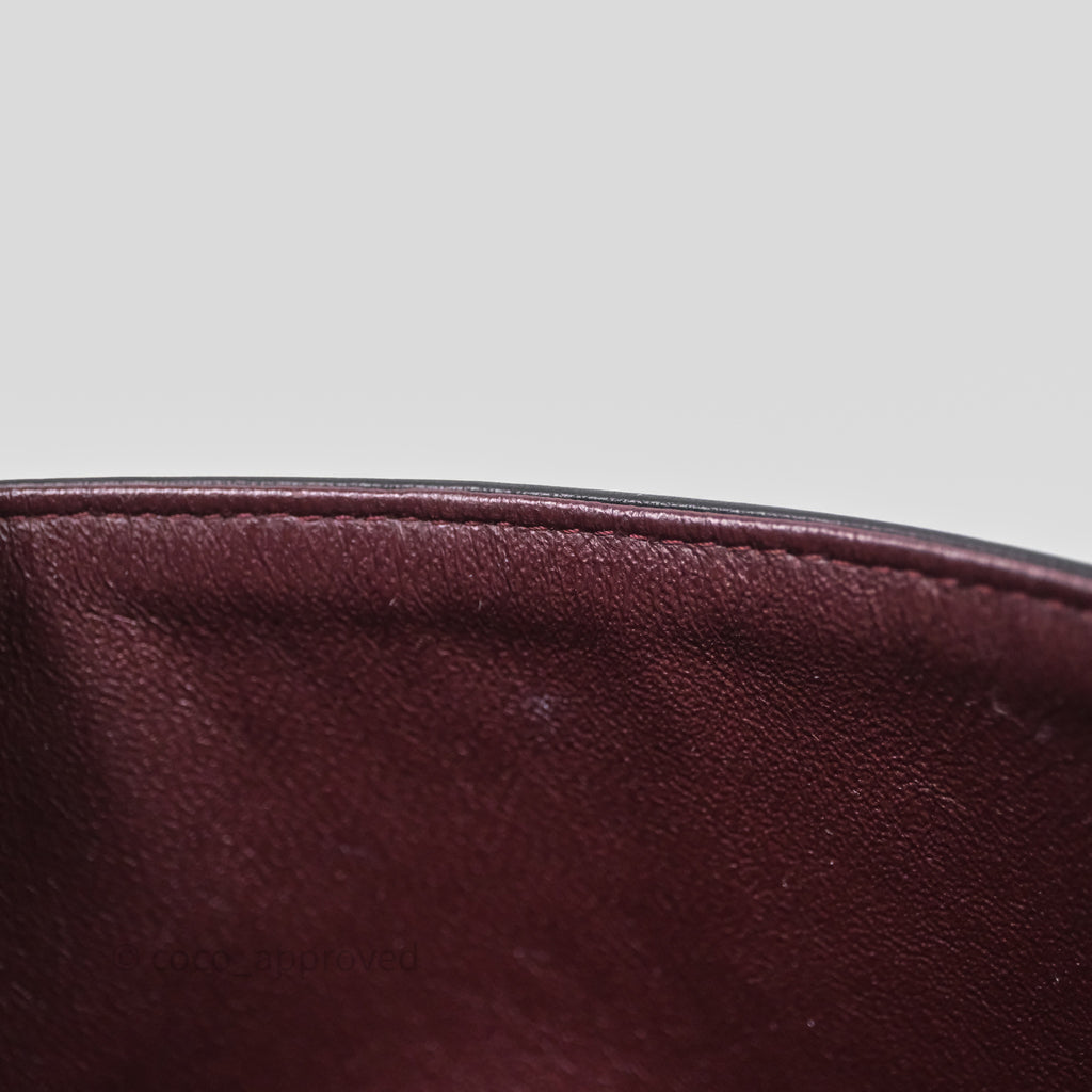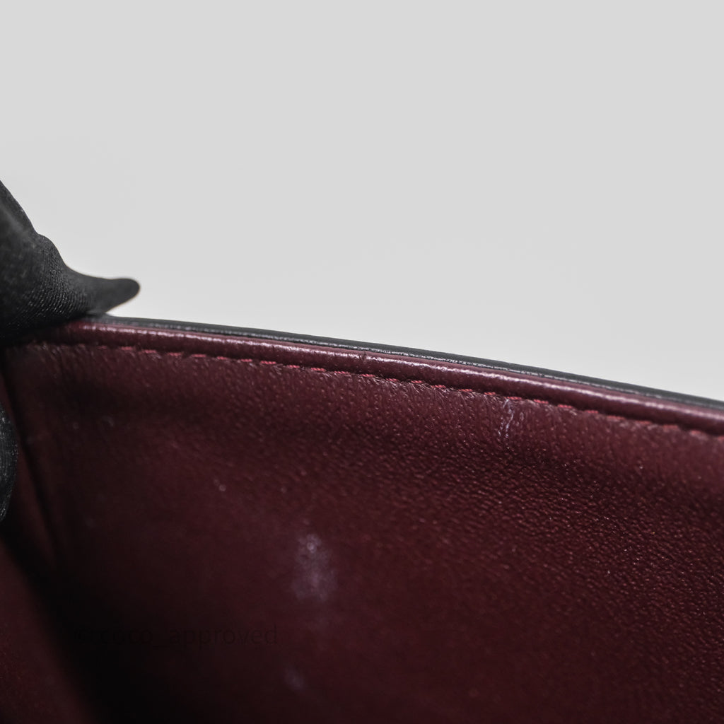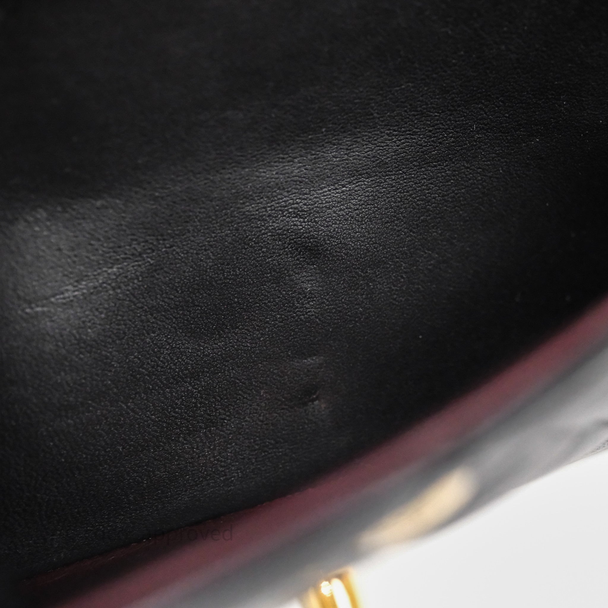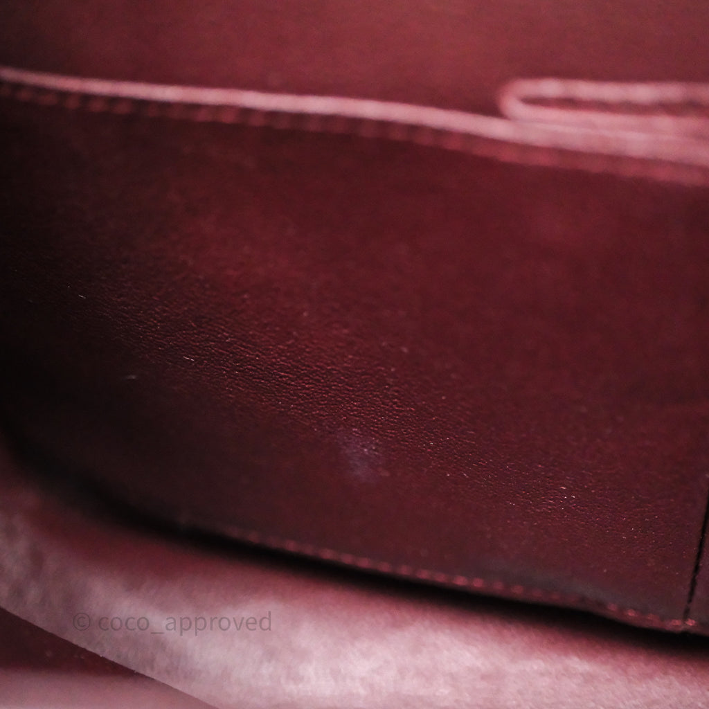 9.3/10 excellent condition. Hairlines on surface, under flap, and interior. Dent on flap. Marks on top and interior.