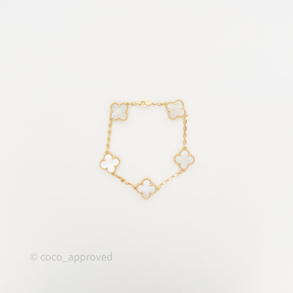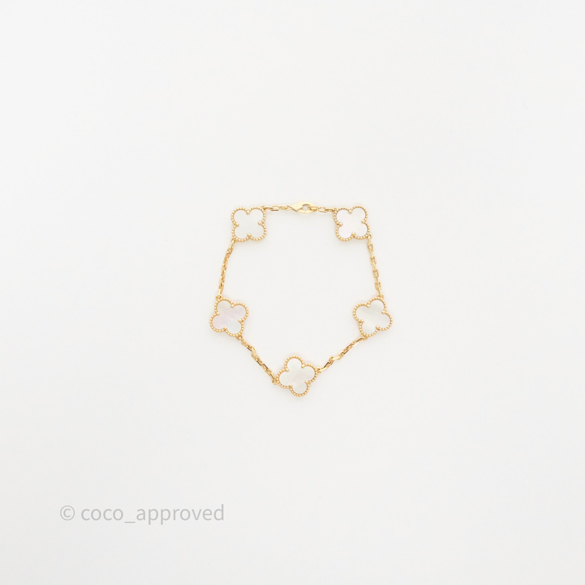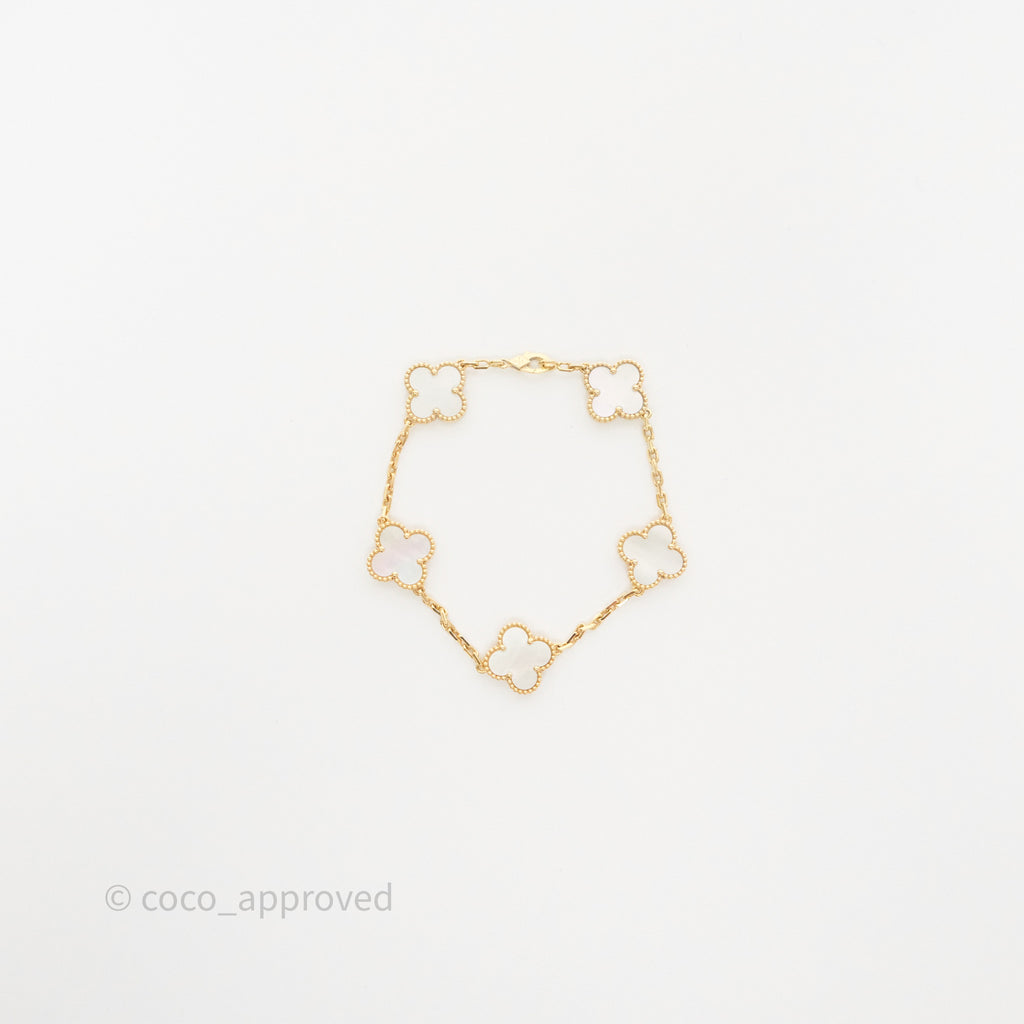Van Cleef & Arpels Vintage Alhambra 5 Motifs Bracelet White Mother-of-pearl Yellow Gold