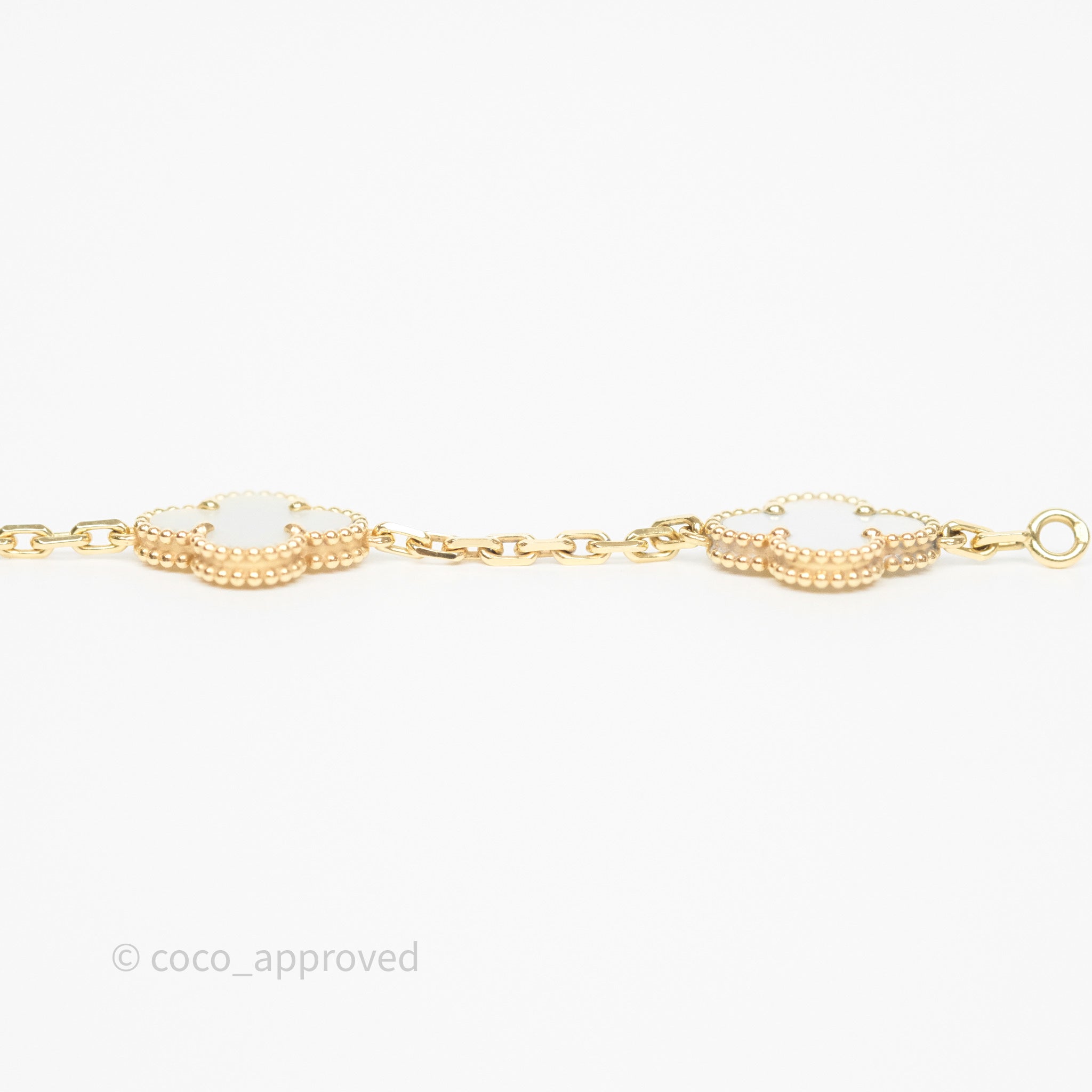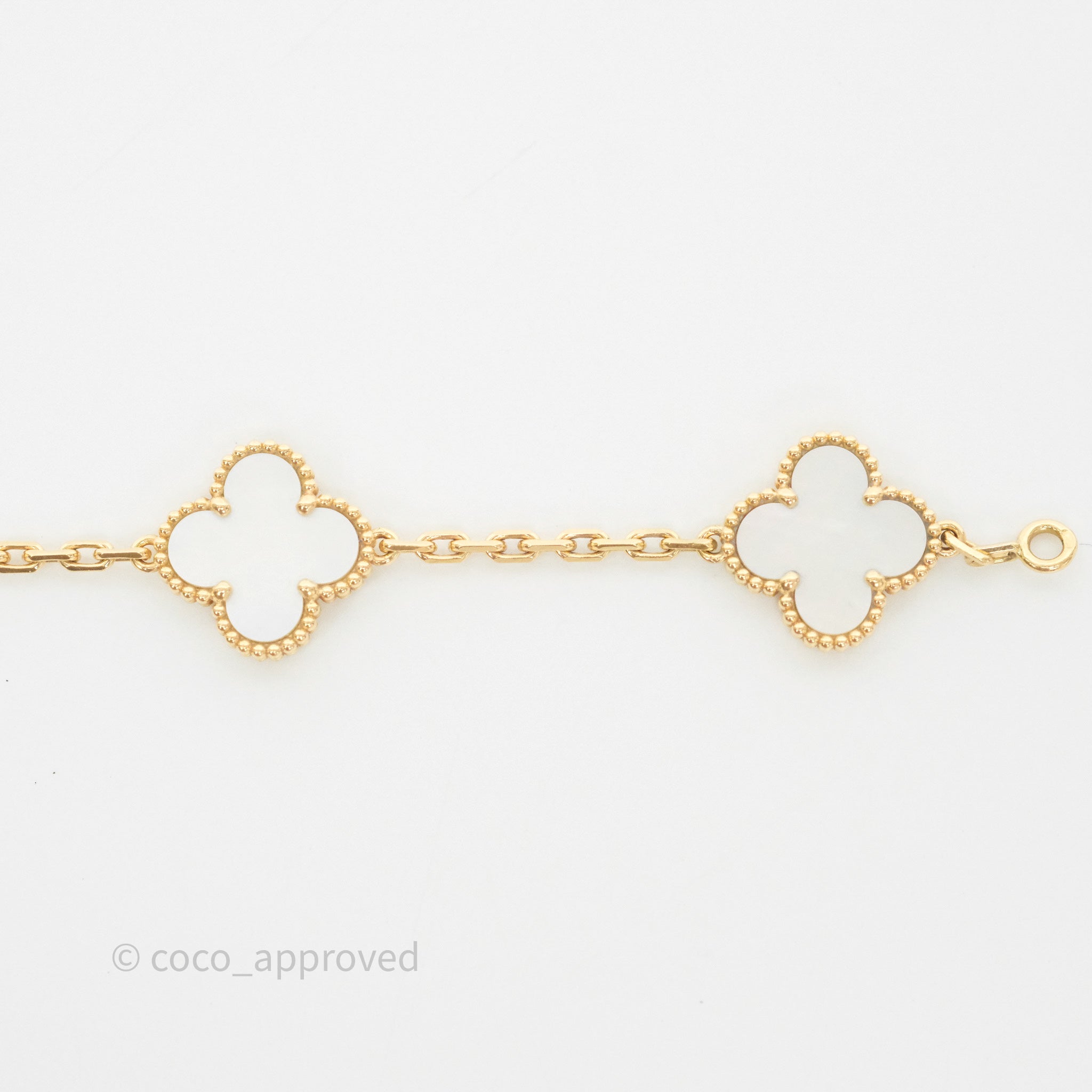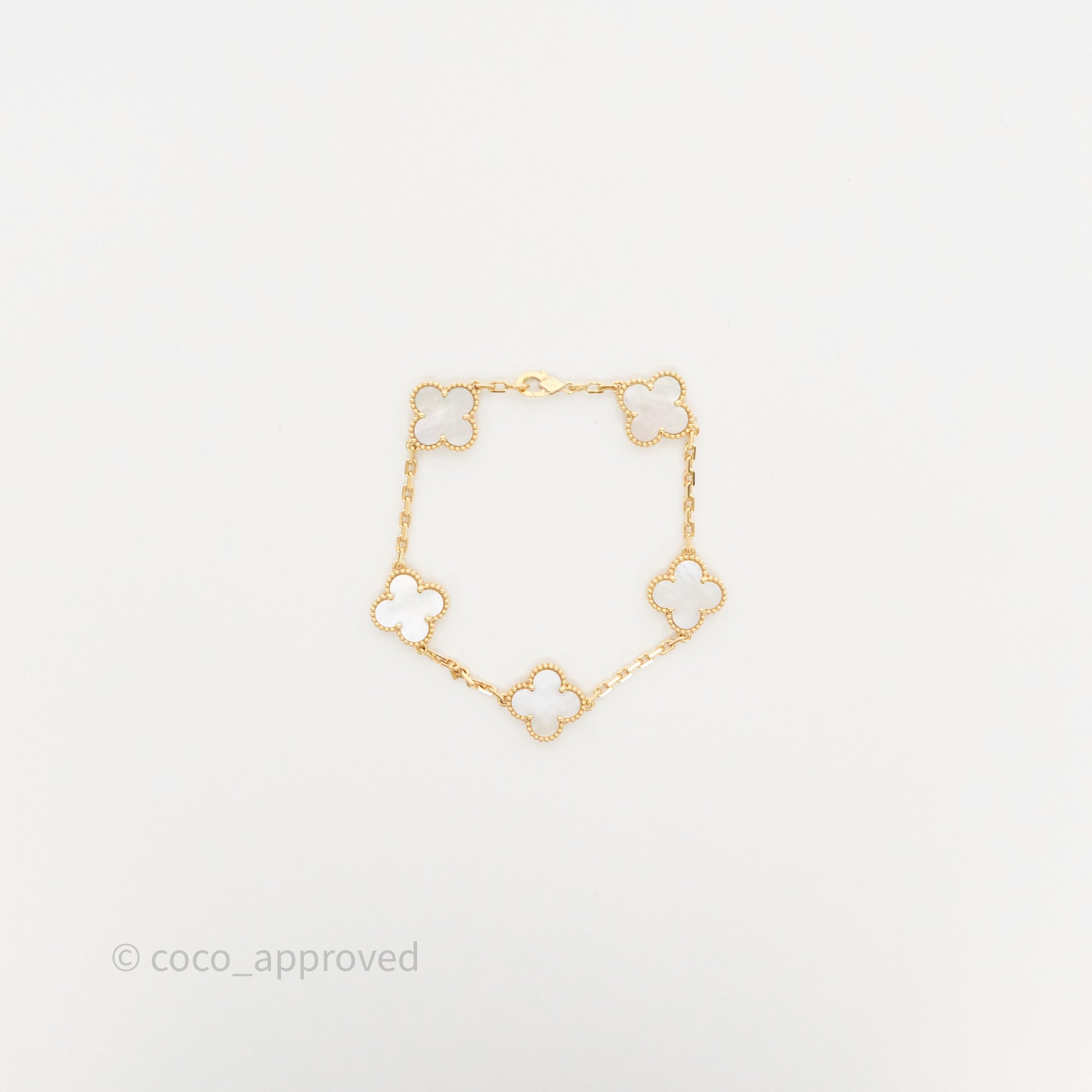 Van Cleef & Arpels Vintage Alhambra 5 Motifs Bracelet White Mother-of-pearl Yellow Gold