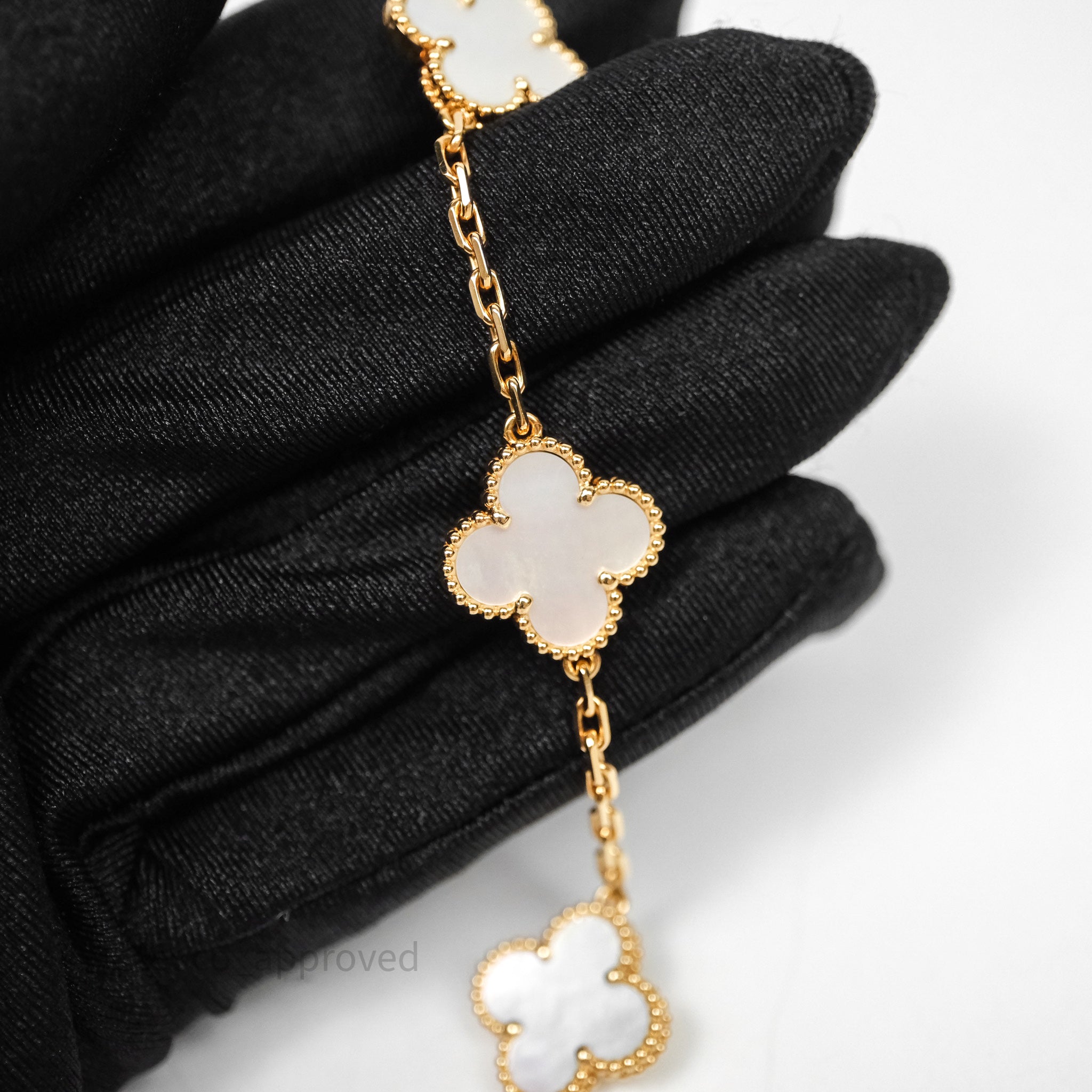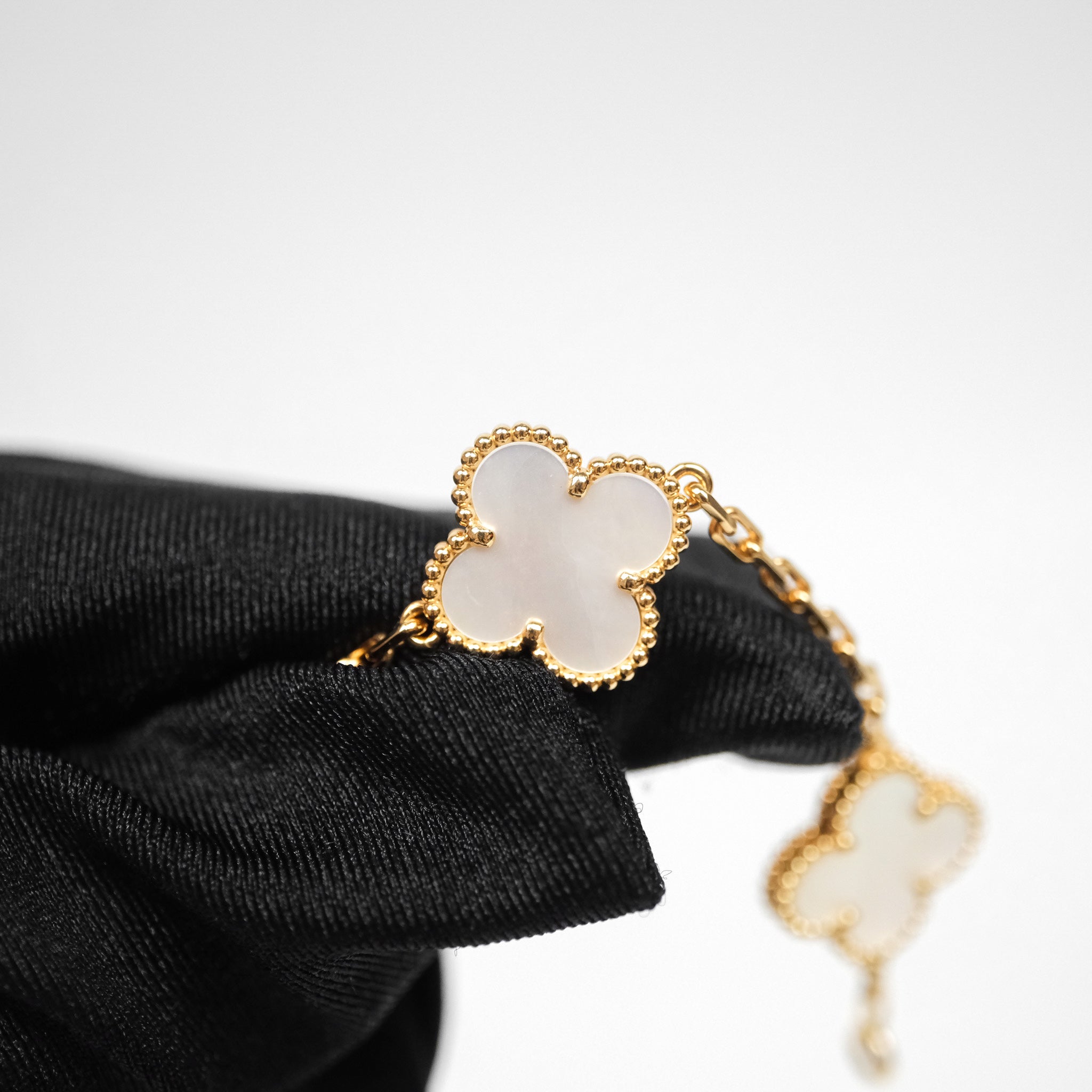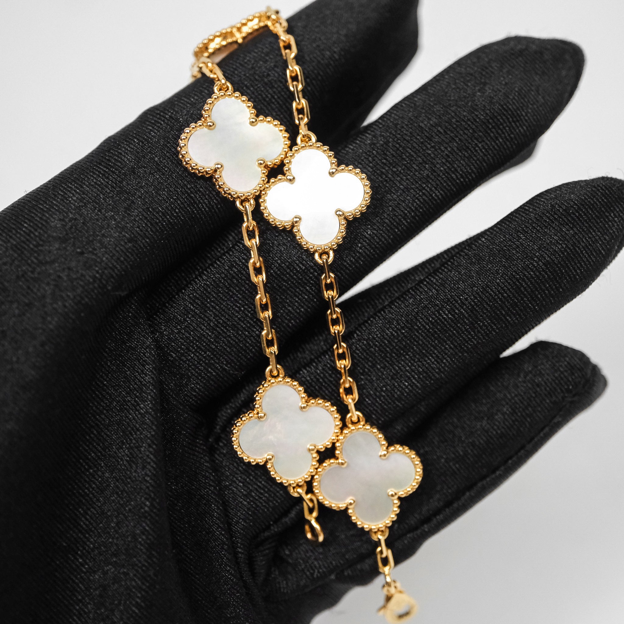 Van Cleef & Arpels Vintage Alhambra 5 Motifs White Mother-of-pearl Yellow Gold Bracelet