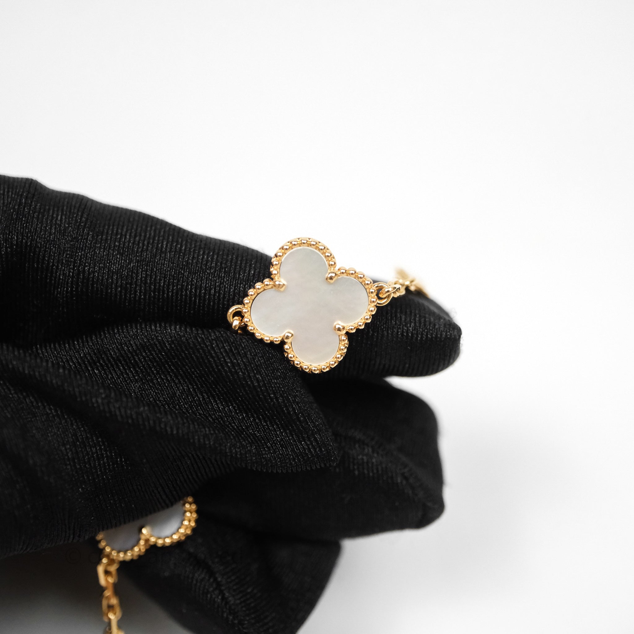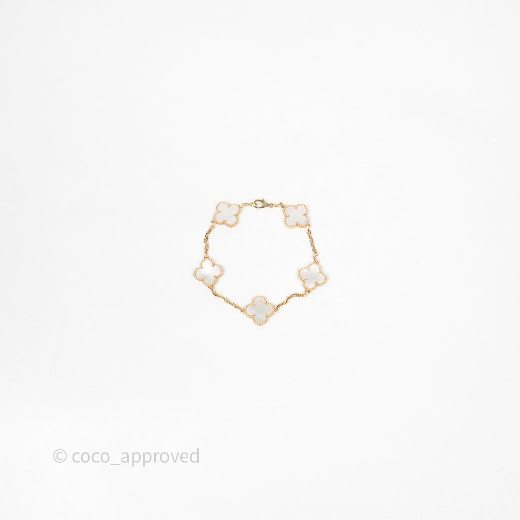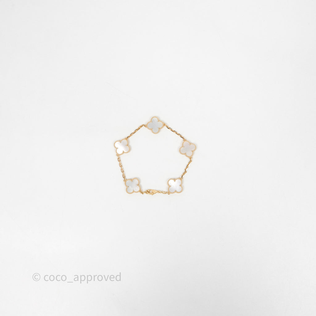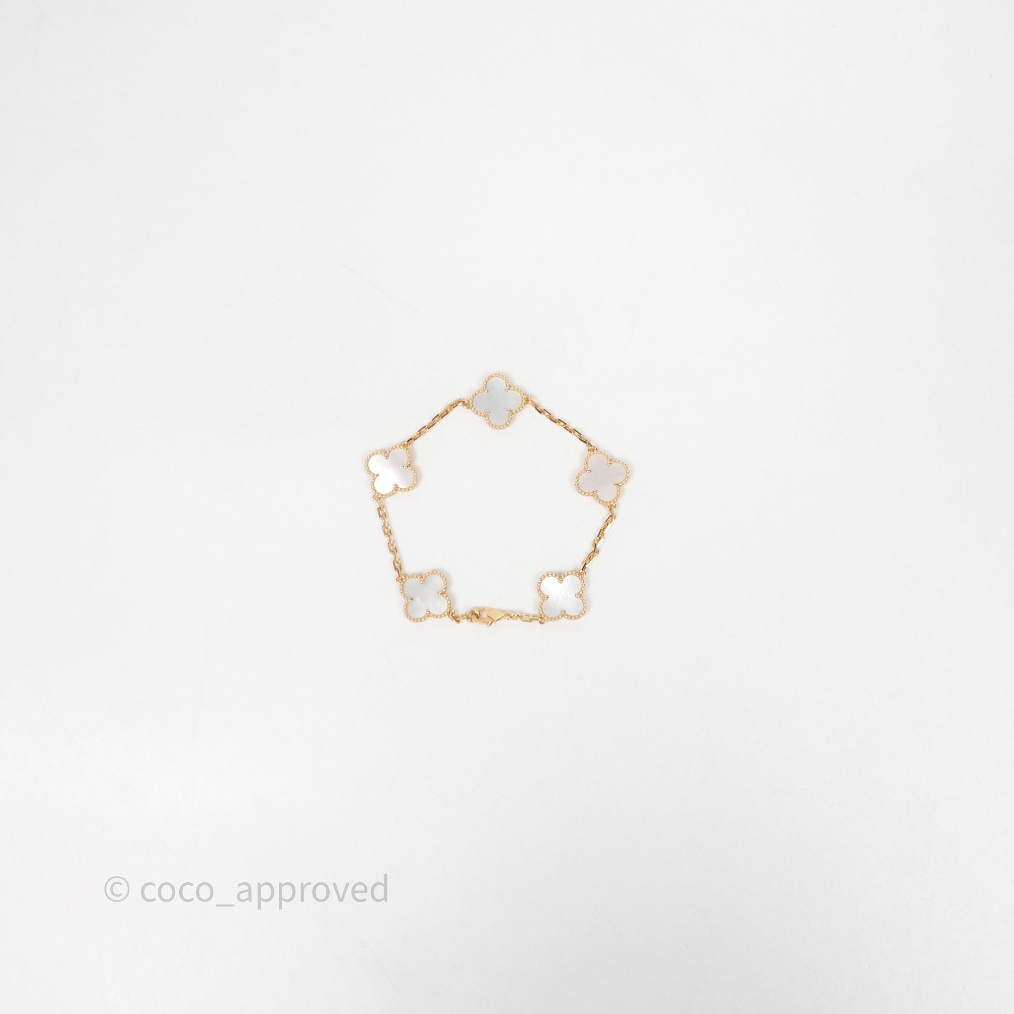 Van Cleef & Arpels Vintage Alhambra 5 Motifs White Mother-of-pearl Yellow Gold Bracelet