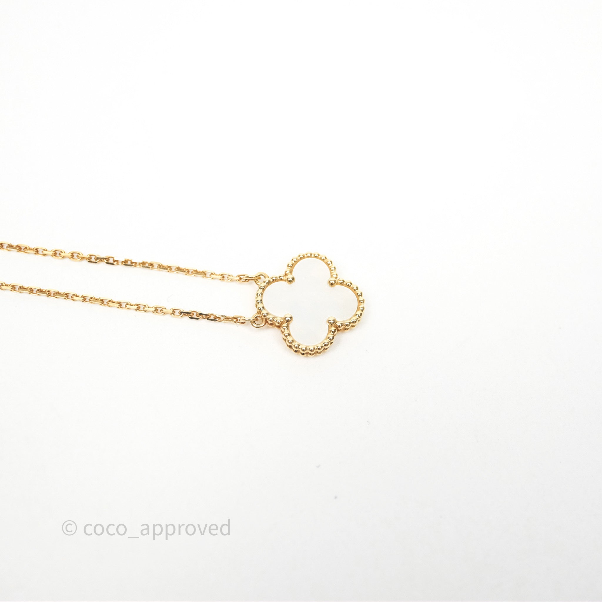 Van Cleef & Arpels Vintage Alhambra Pendant White Mother-of-pearl Yellow Gold is now sold. Please subscribe for any updates if similar item becomes available.