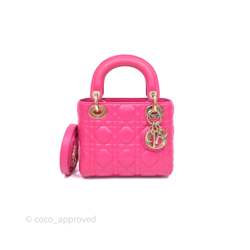 Christian Dior Mini Lady Dior Hot Pink Patent Gold Hardware