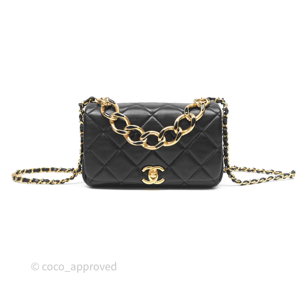 Chanel Quilted Color Match Chain Flap Black Lambskin Gold Hardware