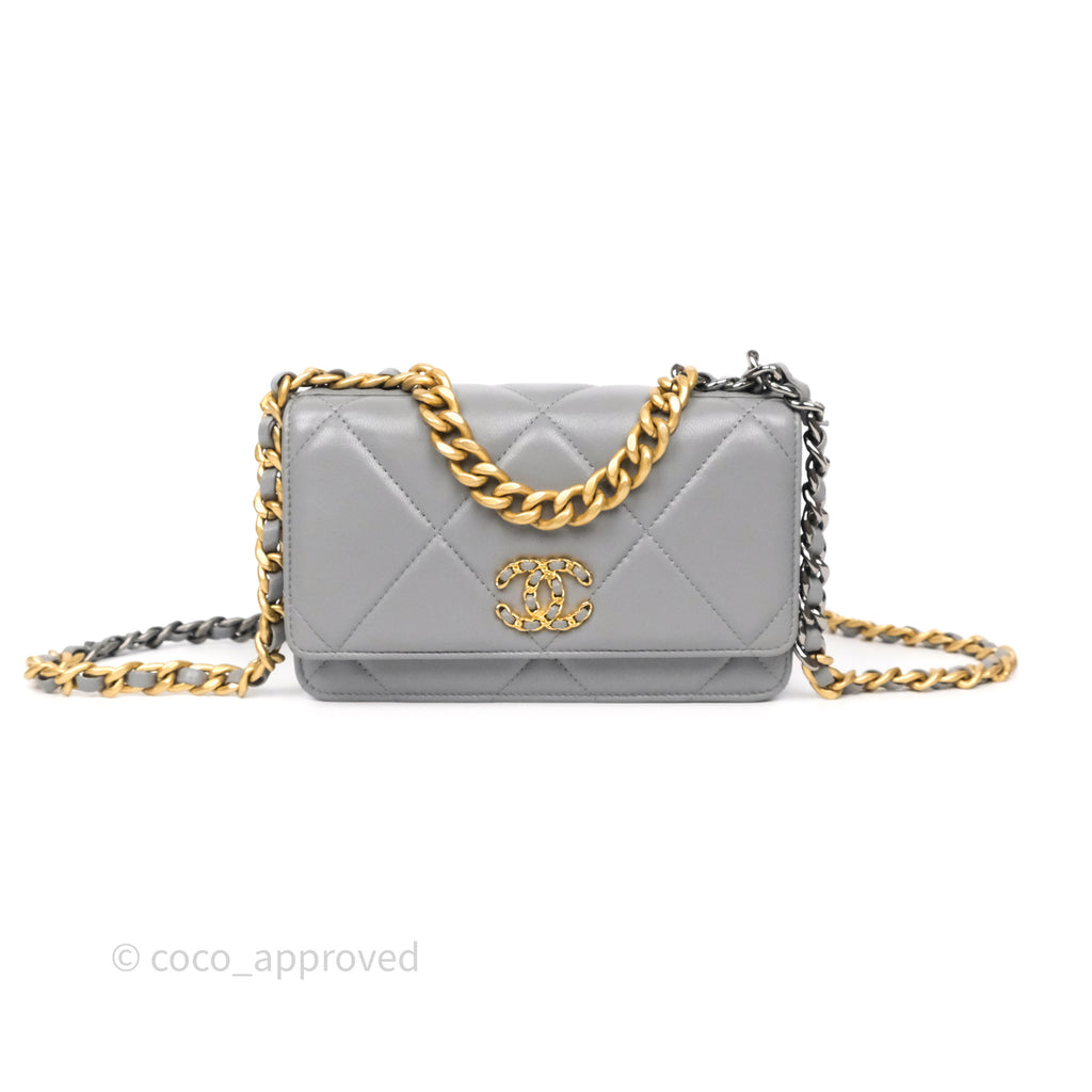 Chanel 19 Wallet on Chain WOC Grey Lambskin Mixed Hardware
