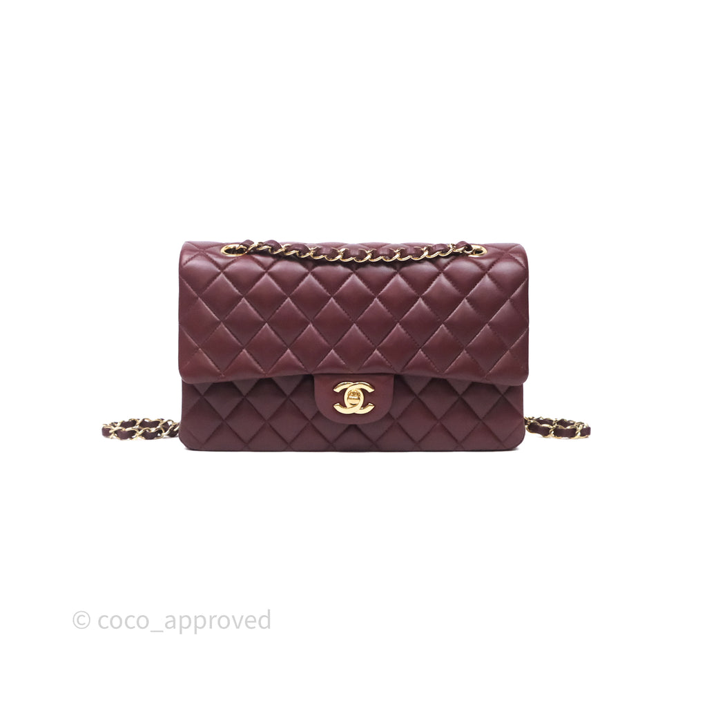 Chanel Classic M/L Medium Flap Quilted Burgundy Lambskin Gold Hardware