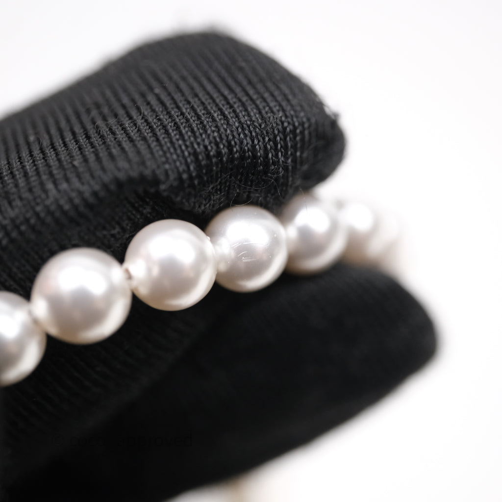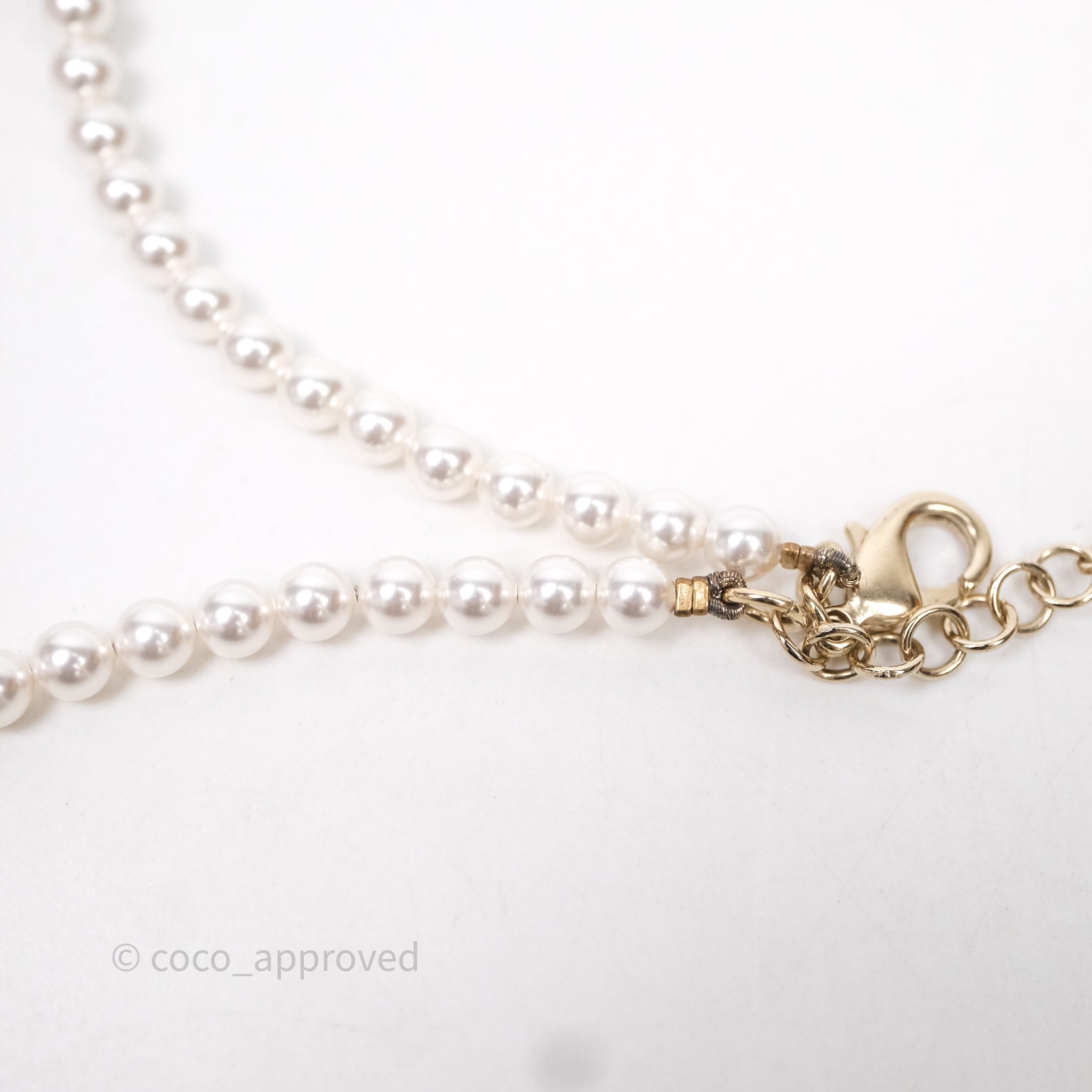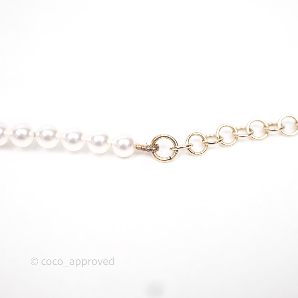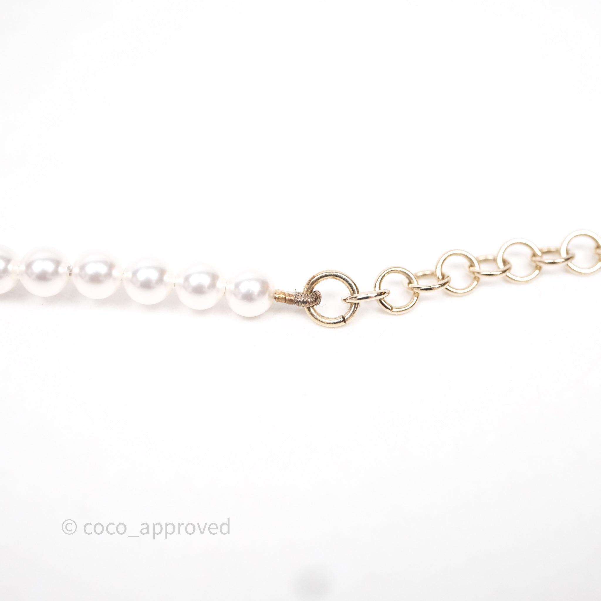 Chanel Ribbon Black Leather Pearl Chain Choker Gold Tone 22S