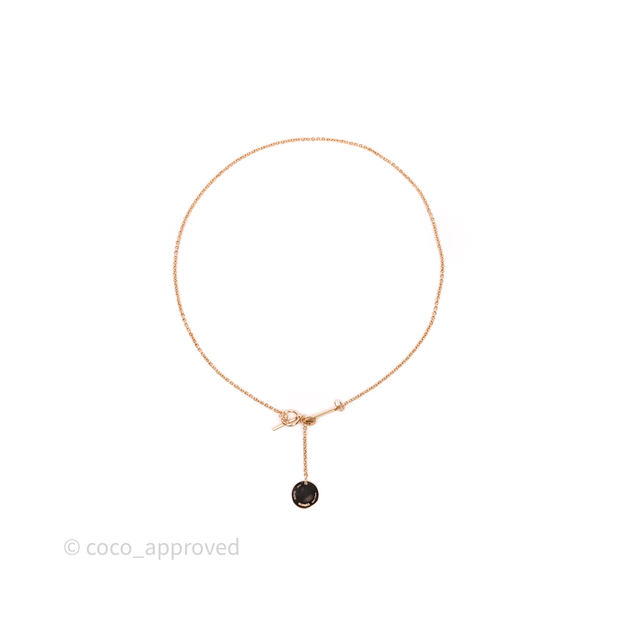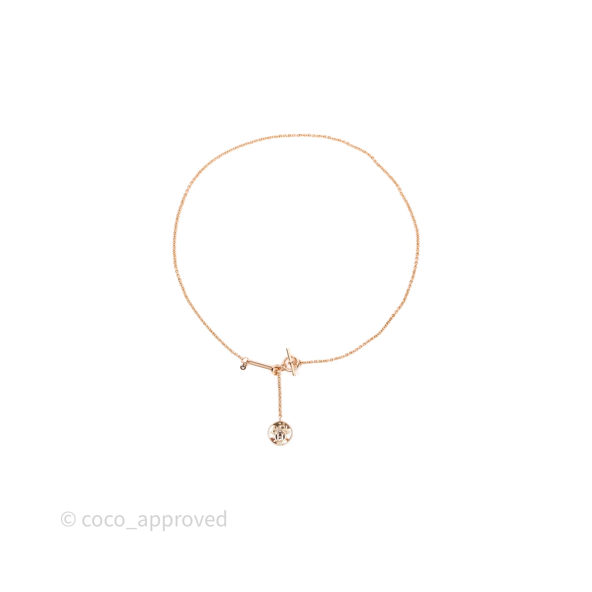 Hermes Ex-Libris Pendant Necklace Diamond Rose Gold Hardware