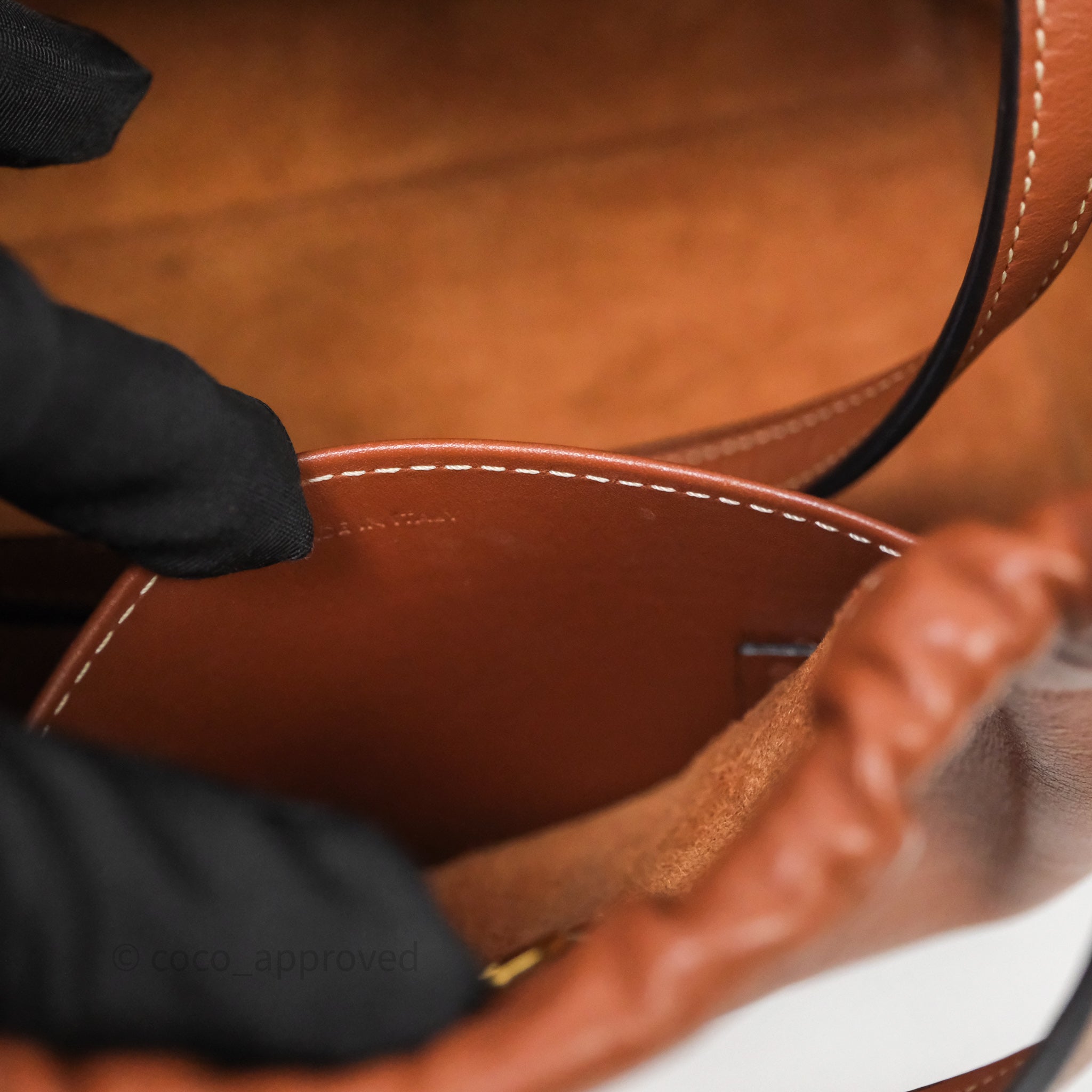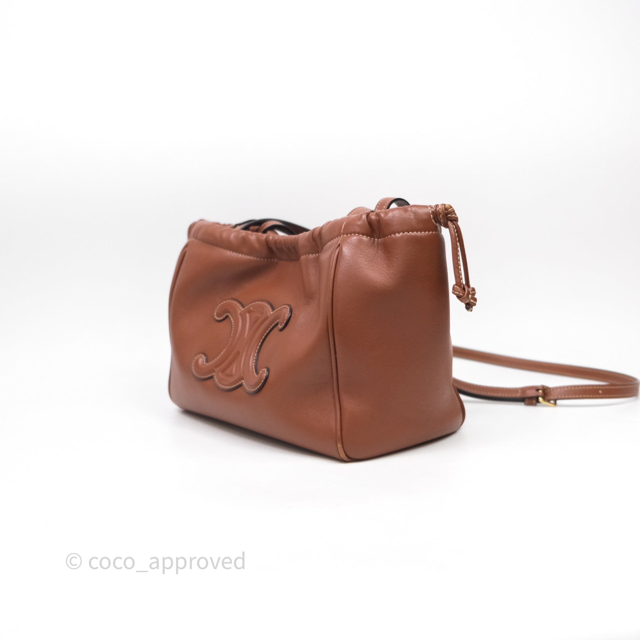 Celine Drawstring Cabas Tote Bag Triomphe in Grained Calfskin Tan
