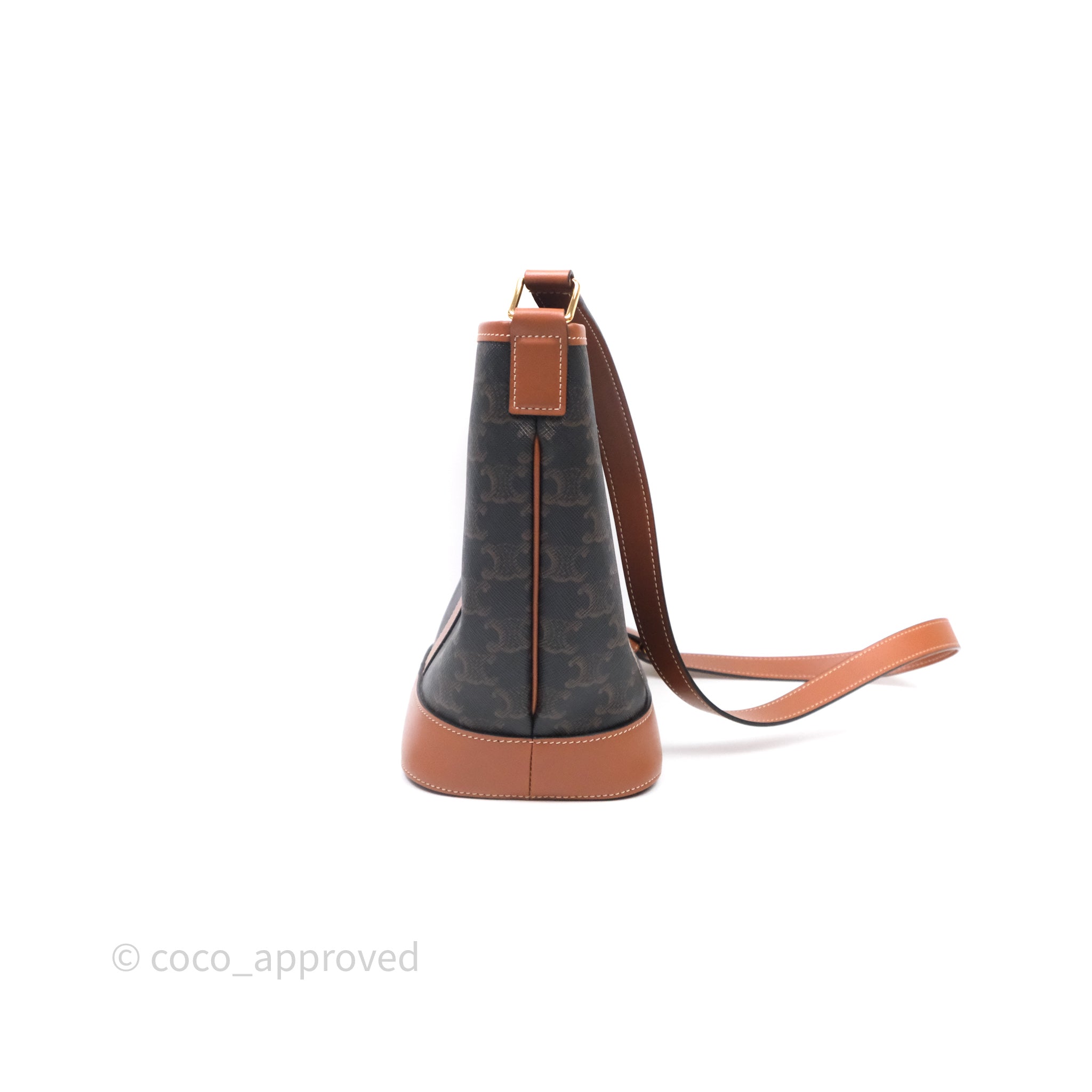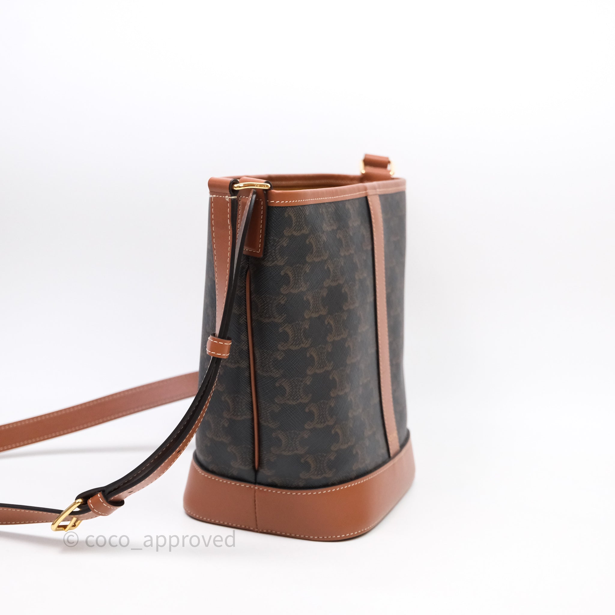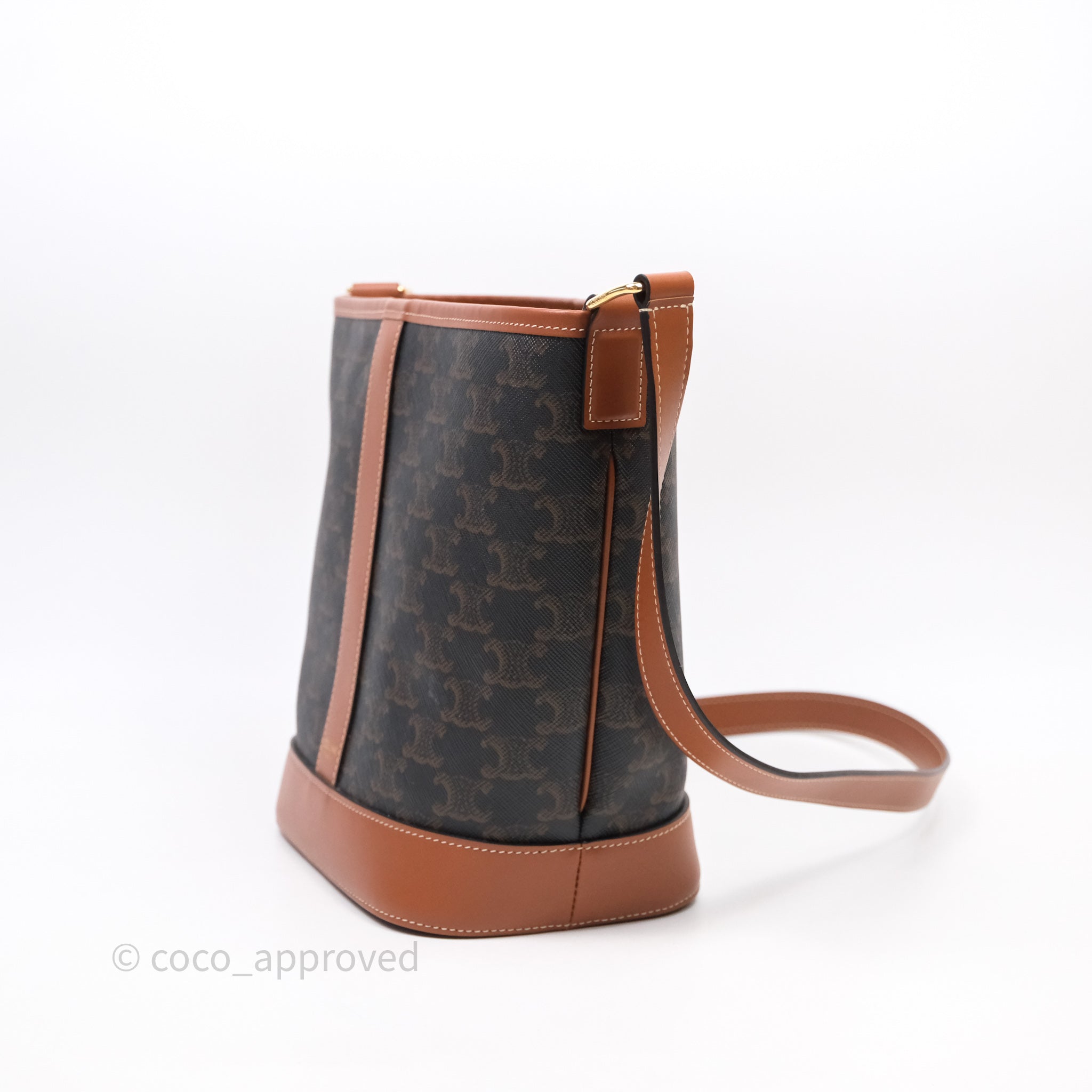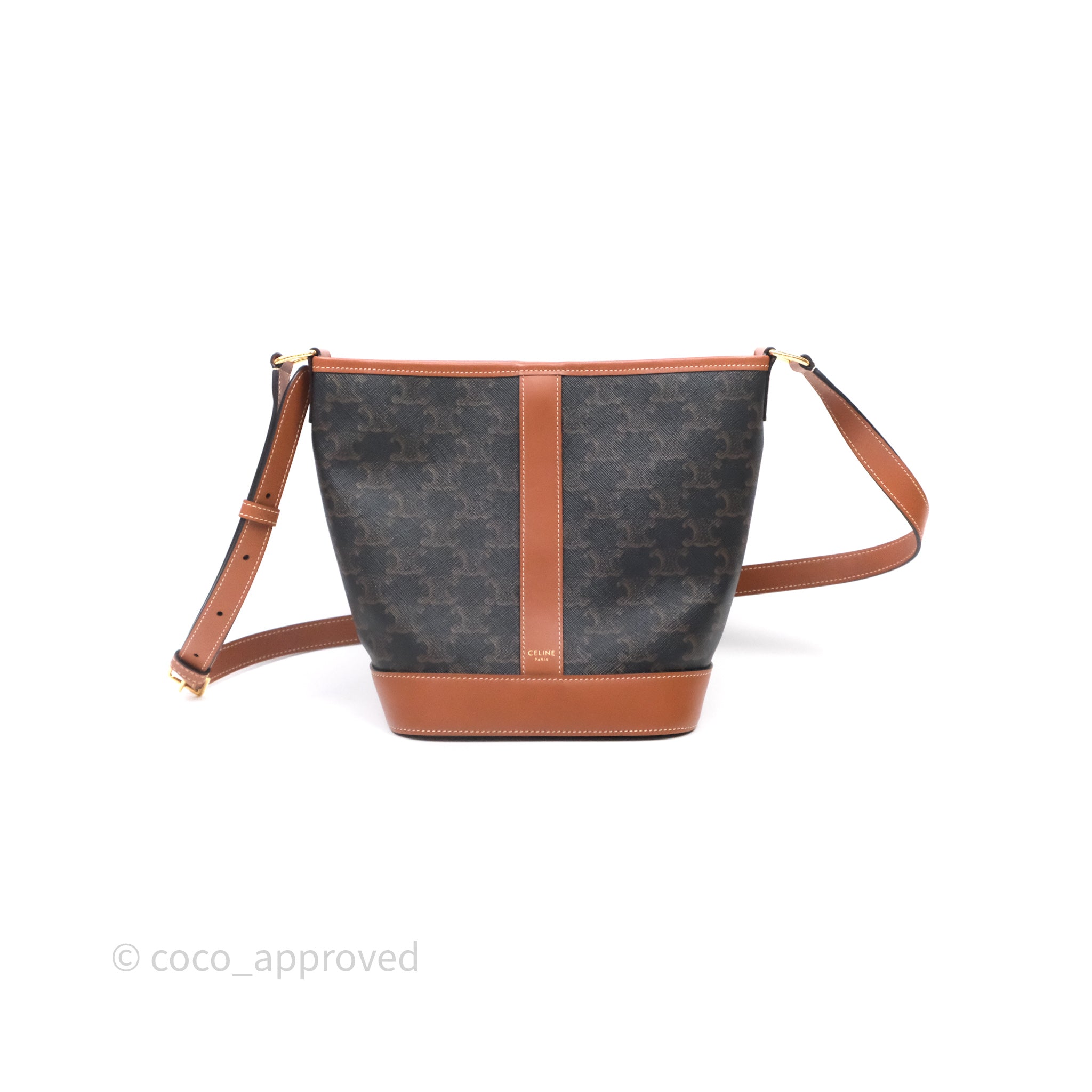 Celine Small Bucket Triomphe Canvas Tan Calfskin is now sold. Please subscribe for any updates if similar item becomes available.