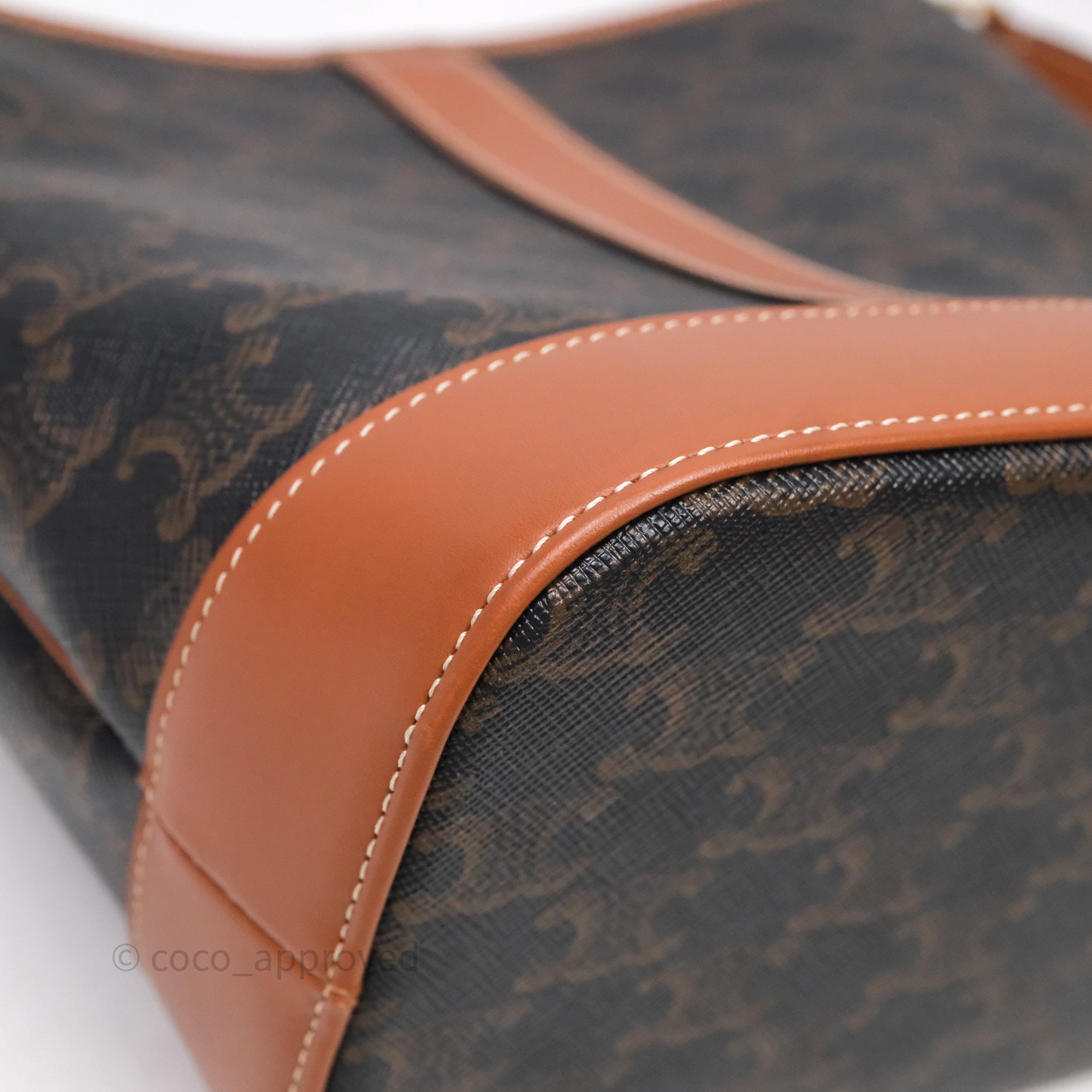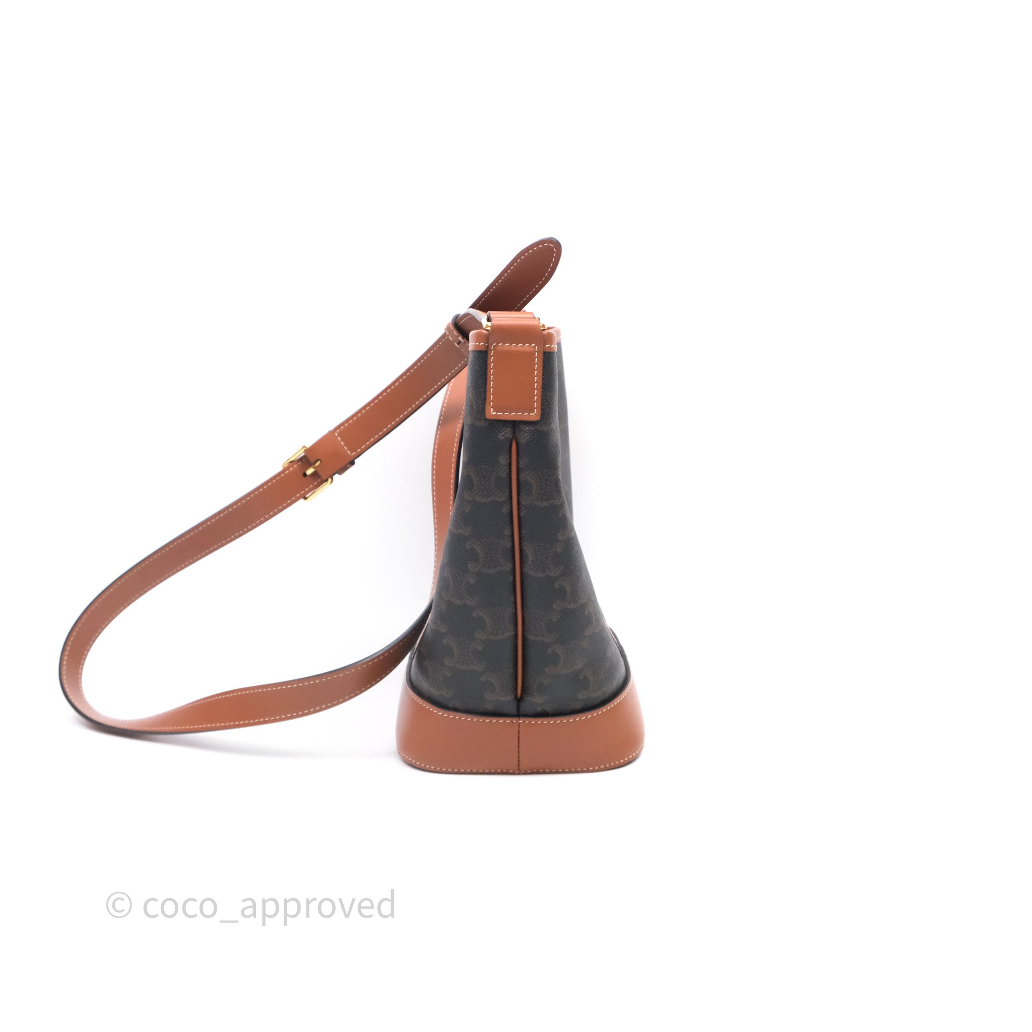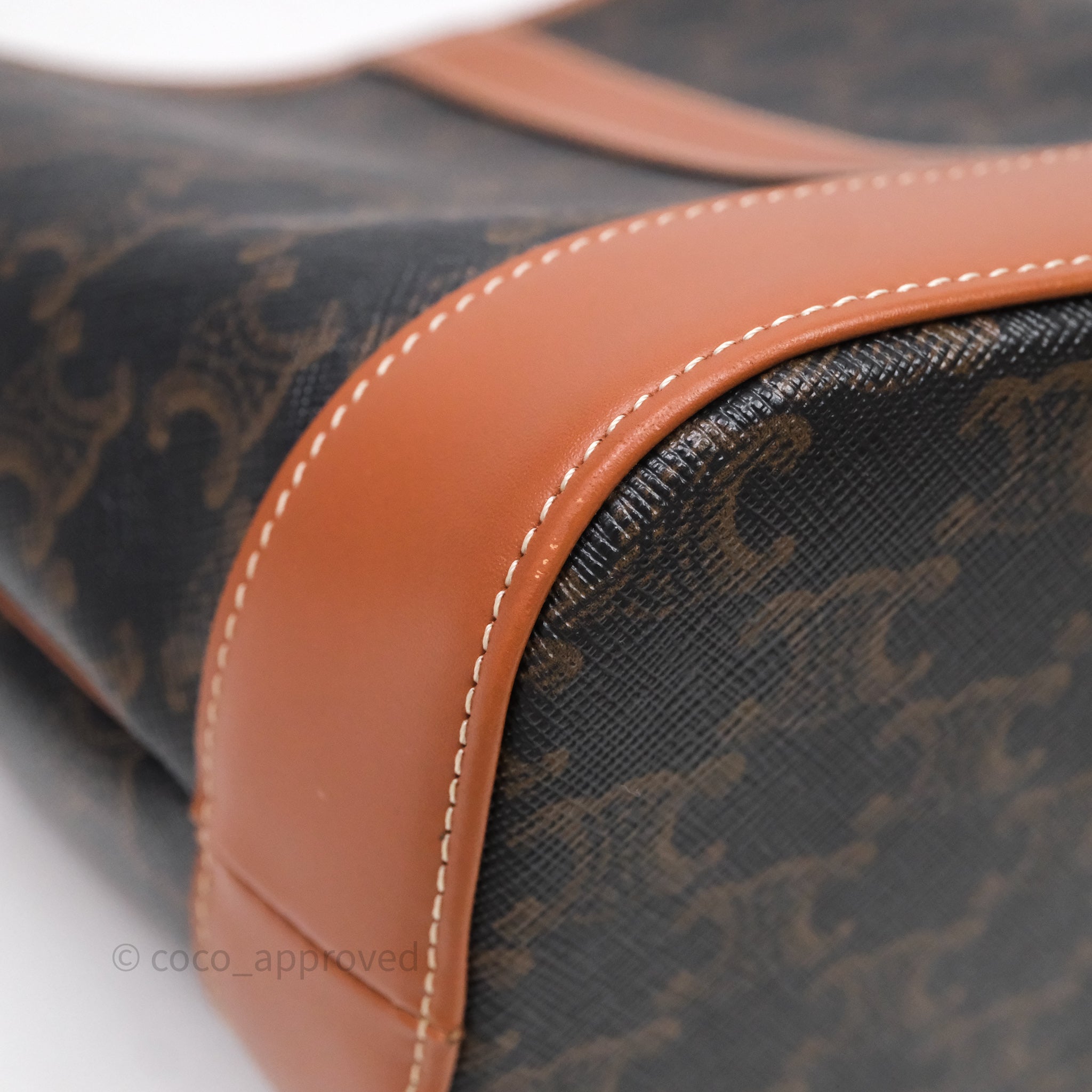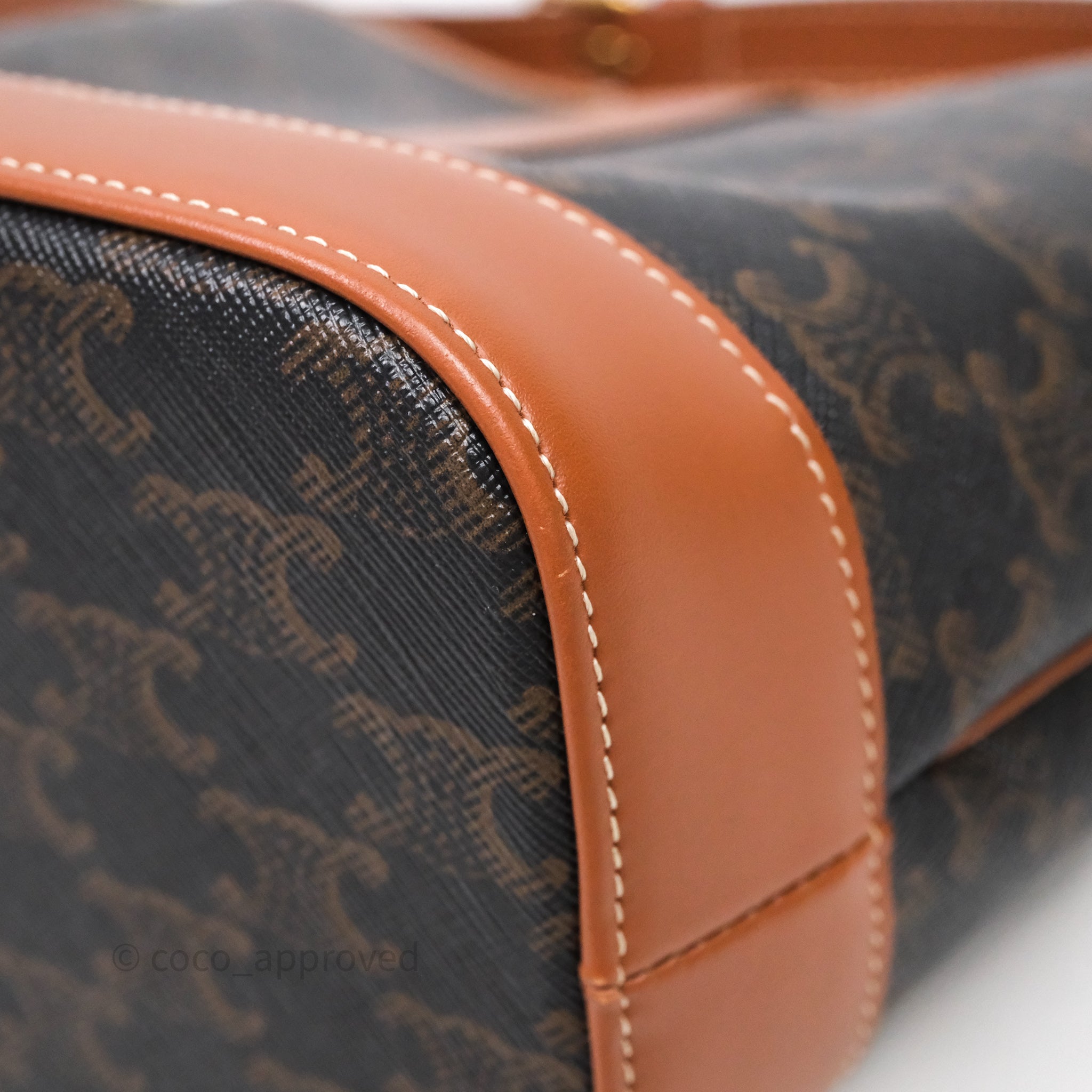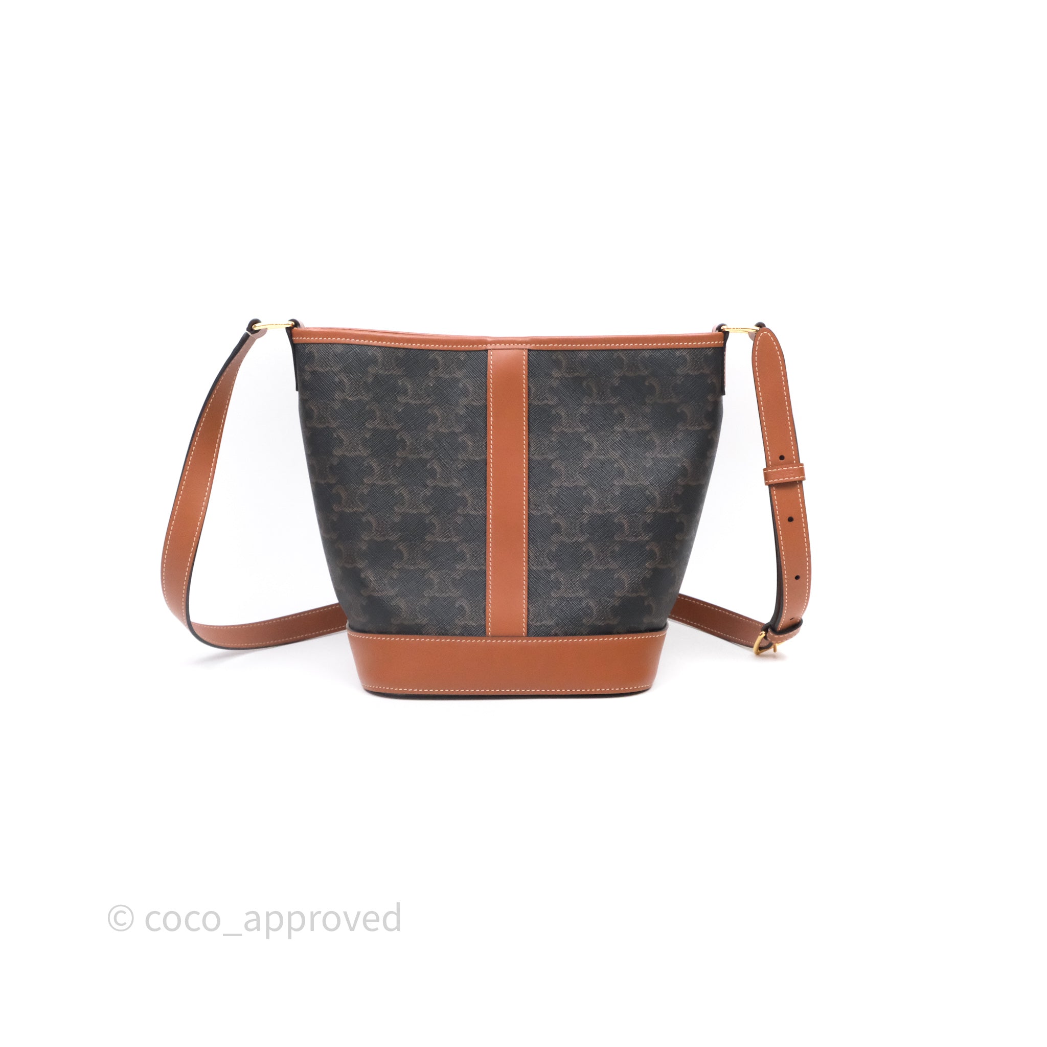 Celine Small Bucket Triomphe Canvas Tan Calfskin is now sold. Please subscribe for any updates if similar item becomes available.