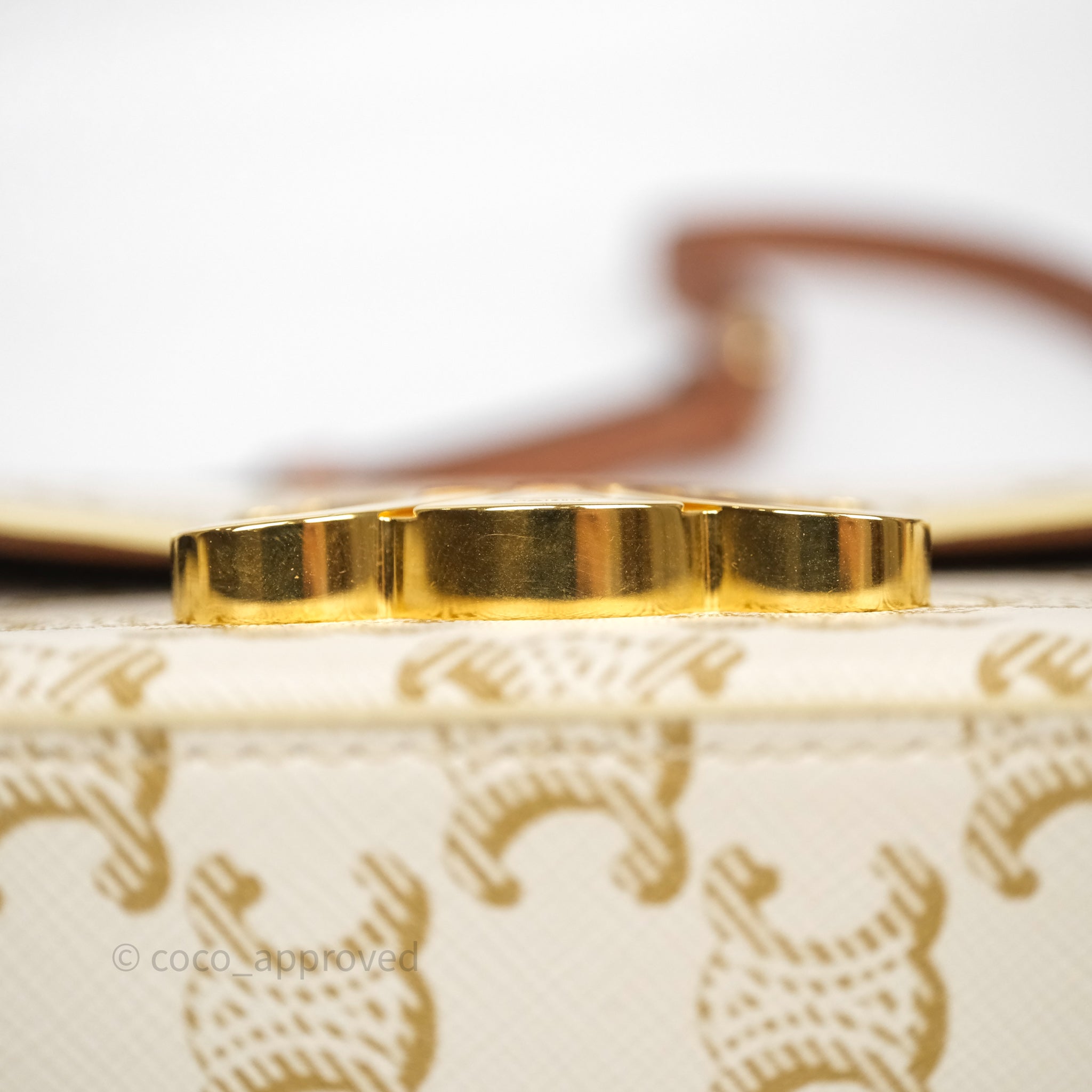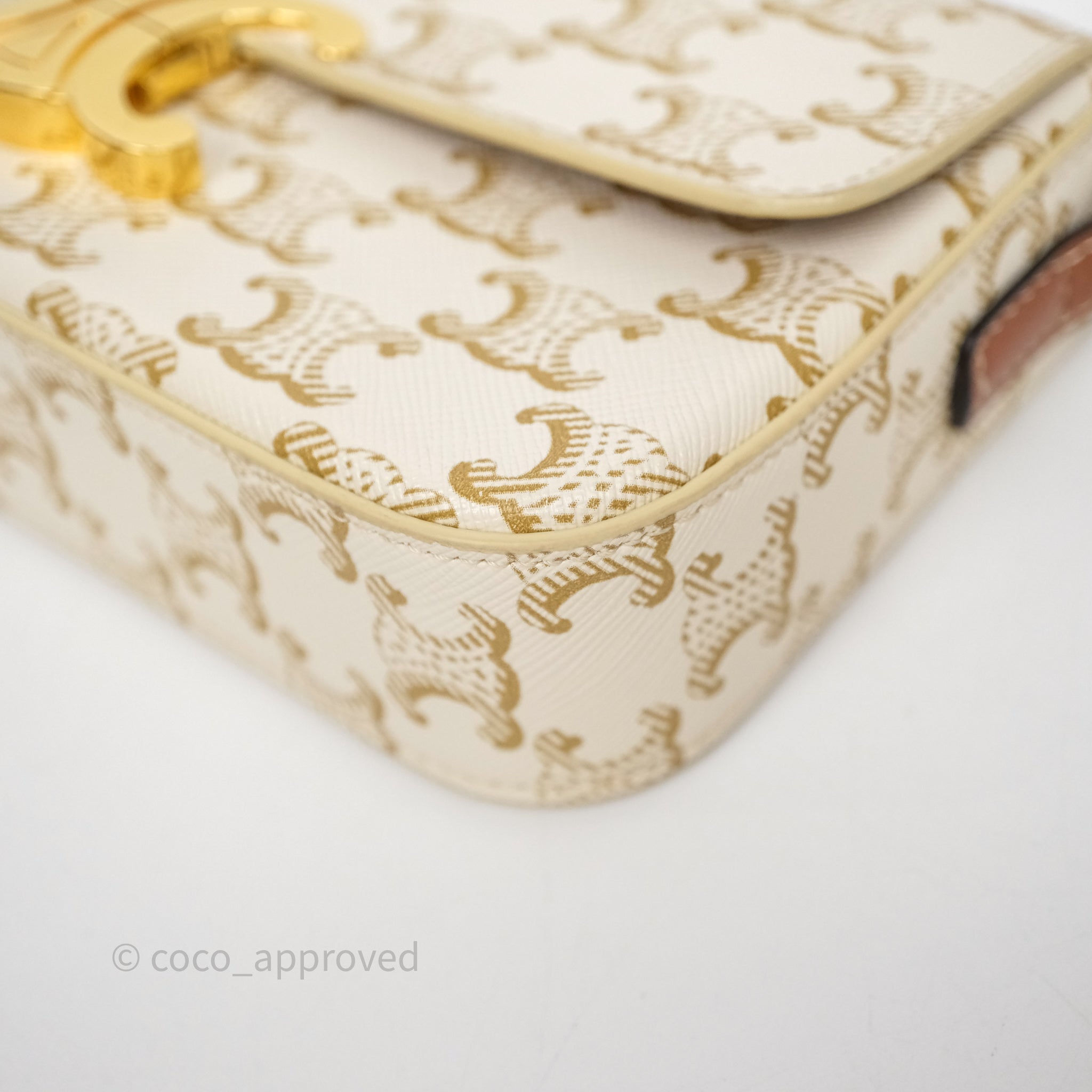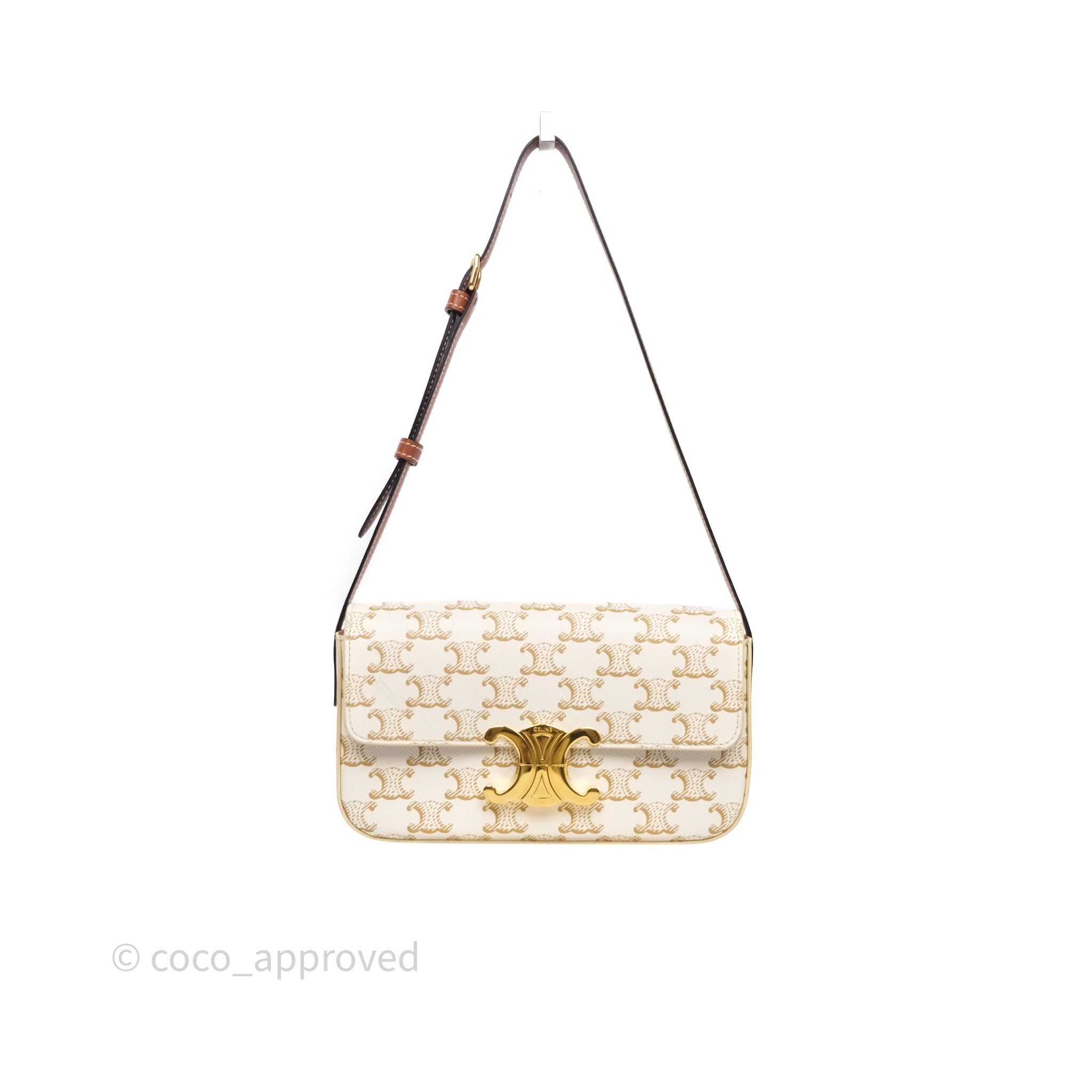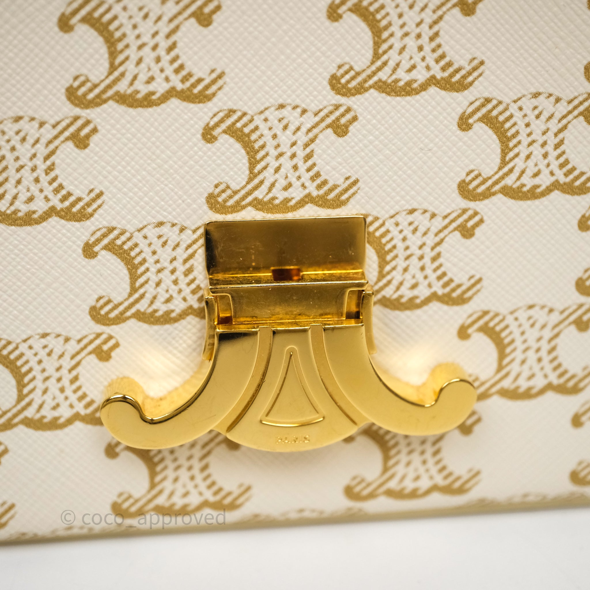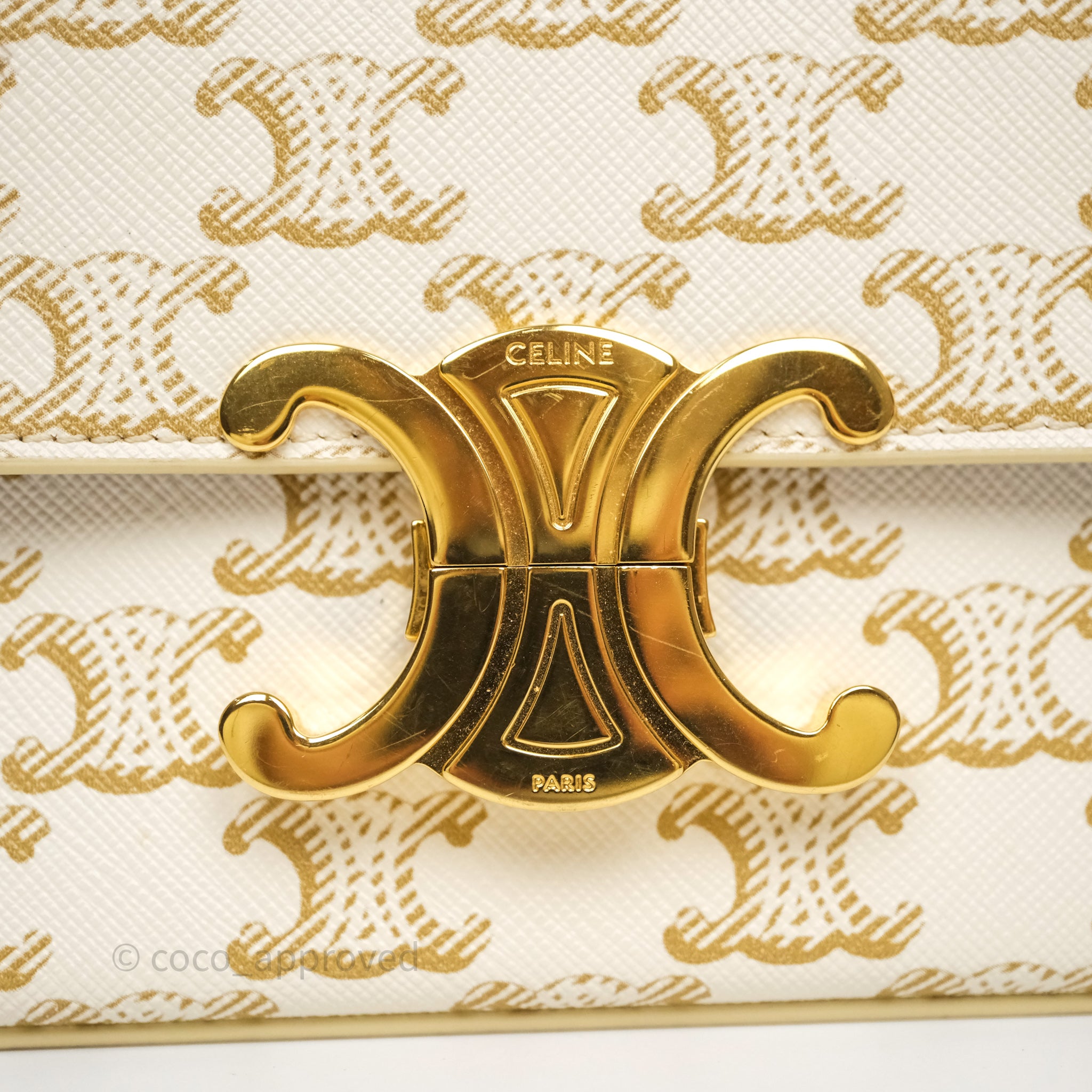 Celine Triomphe Shoulder Bag White Calfskin Triomphe Canvas