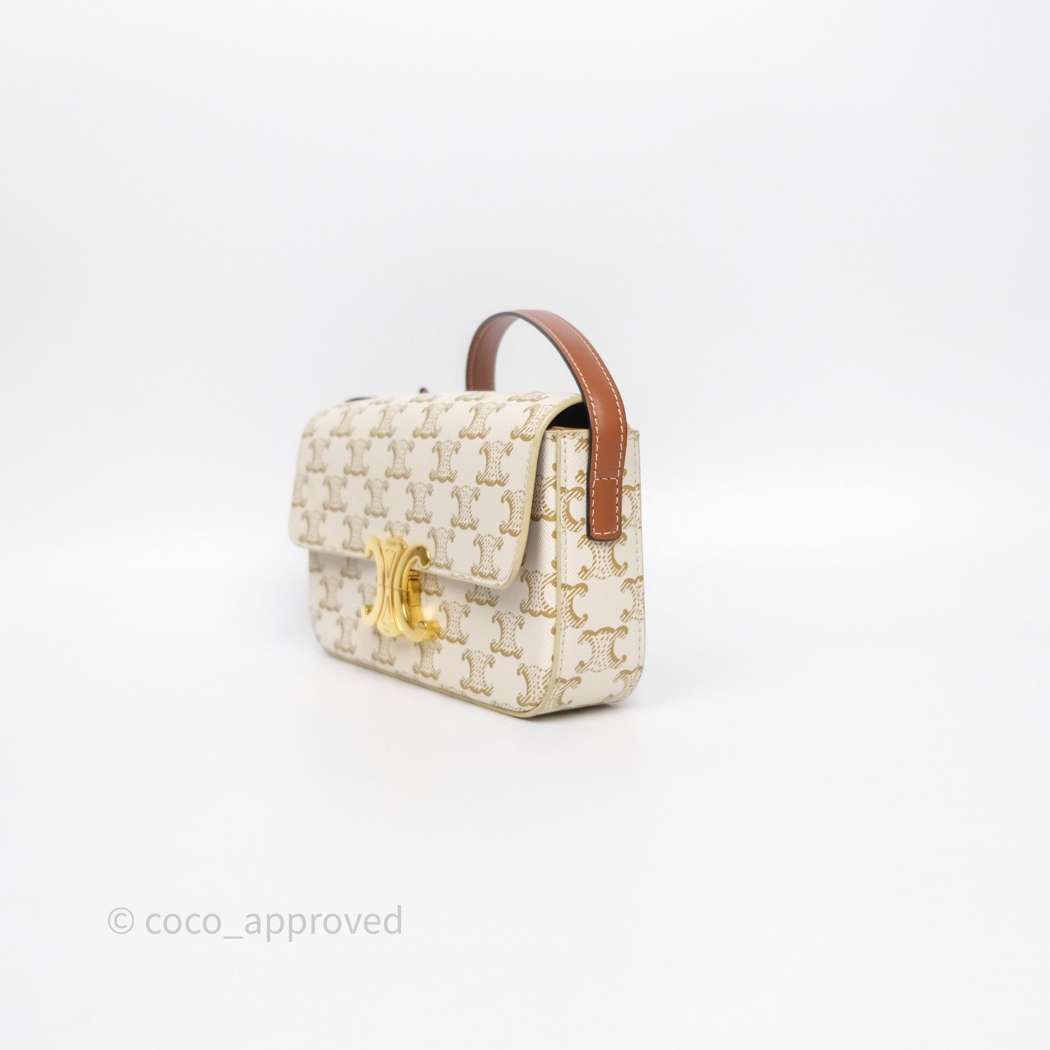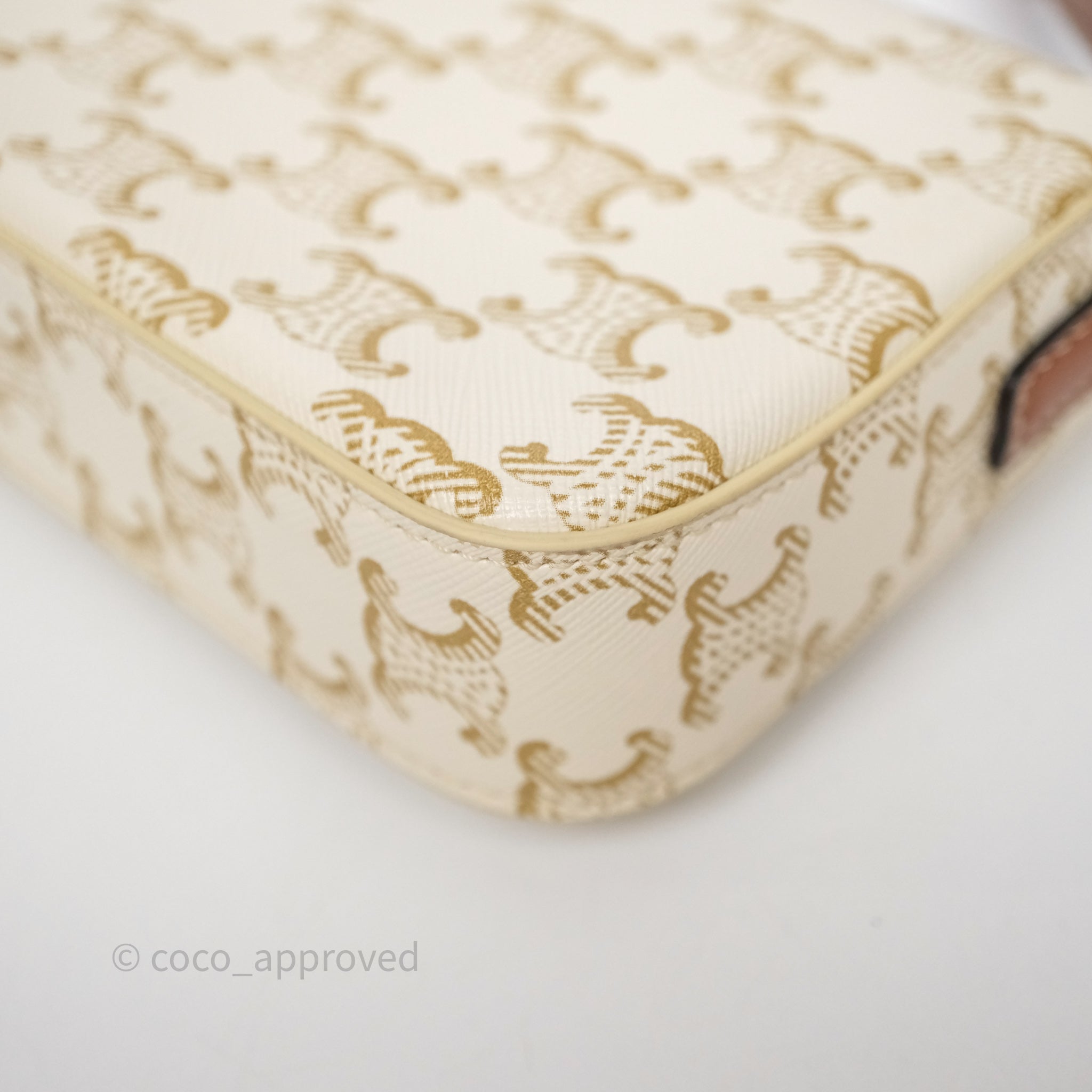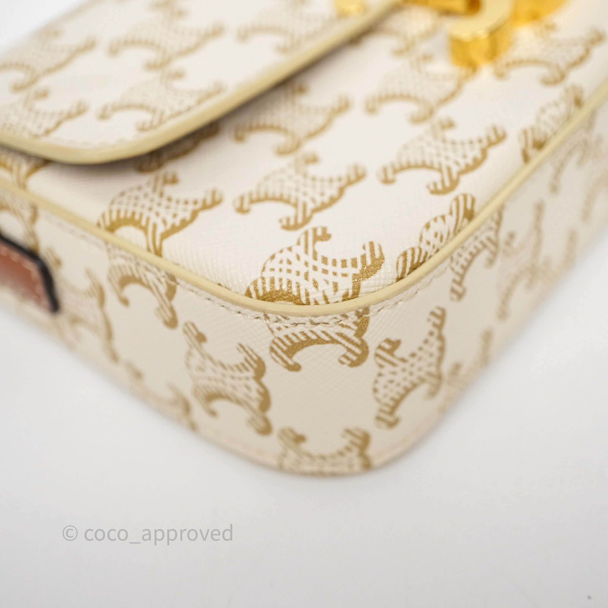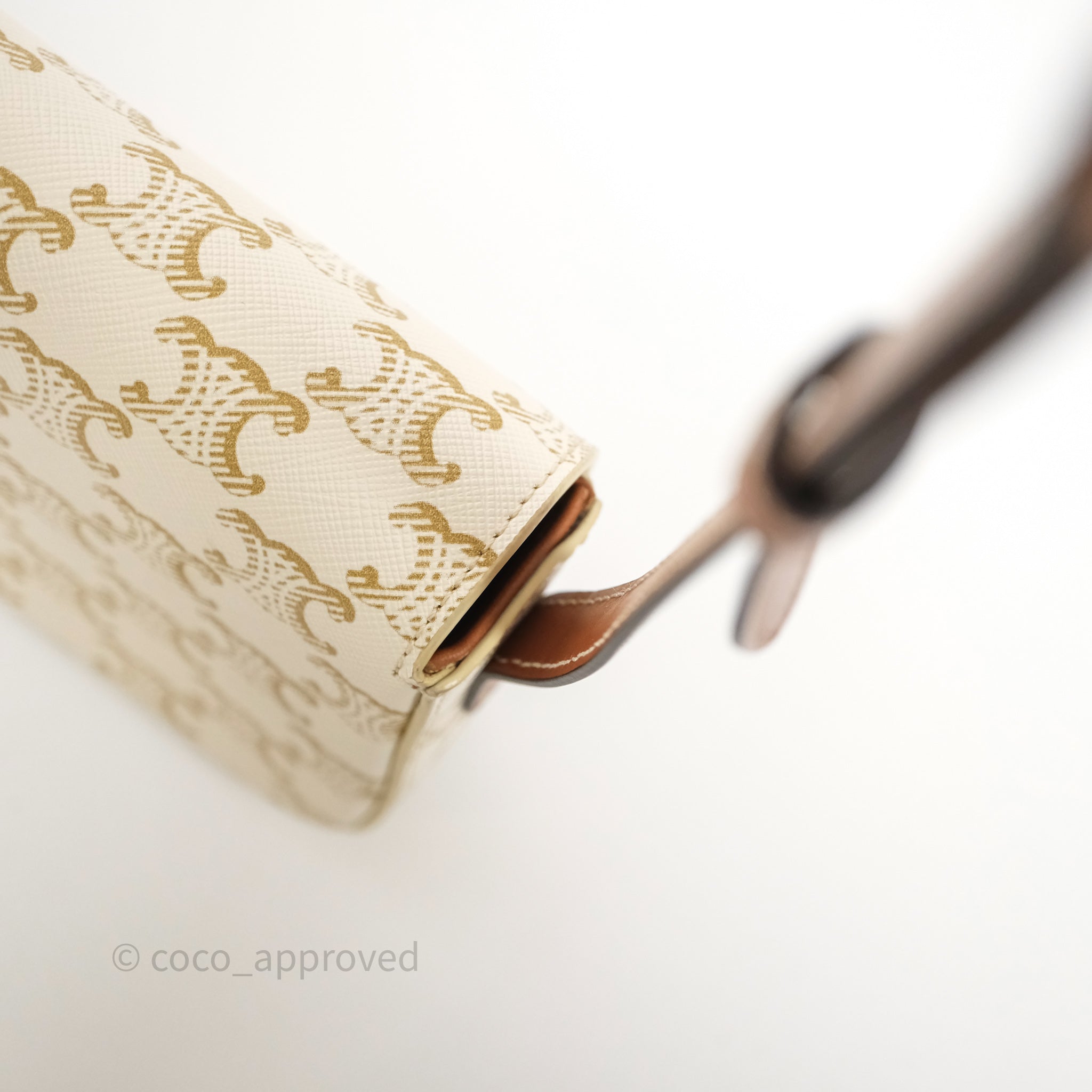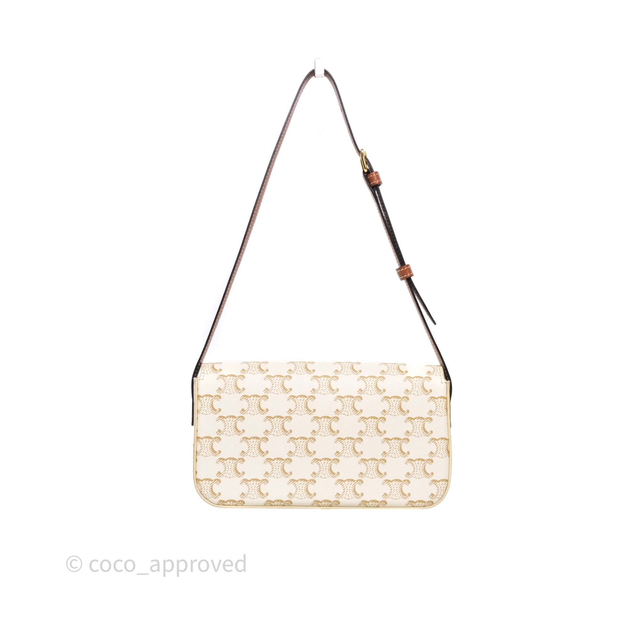 Celine Triomphe Shoulder Bag White Calfskin Triomphe Canvas