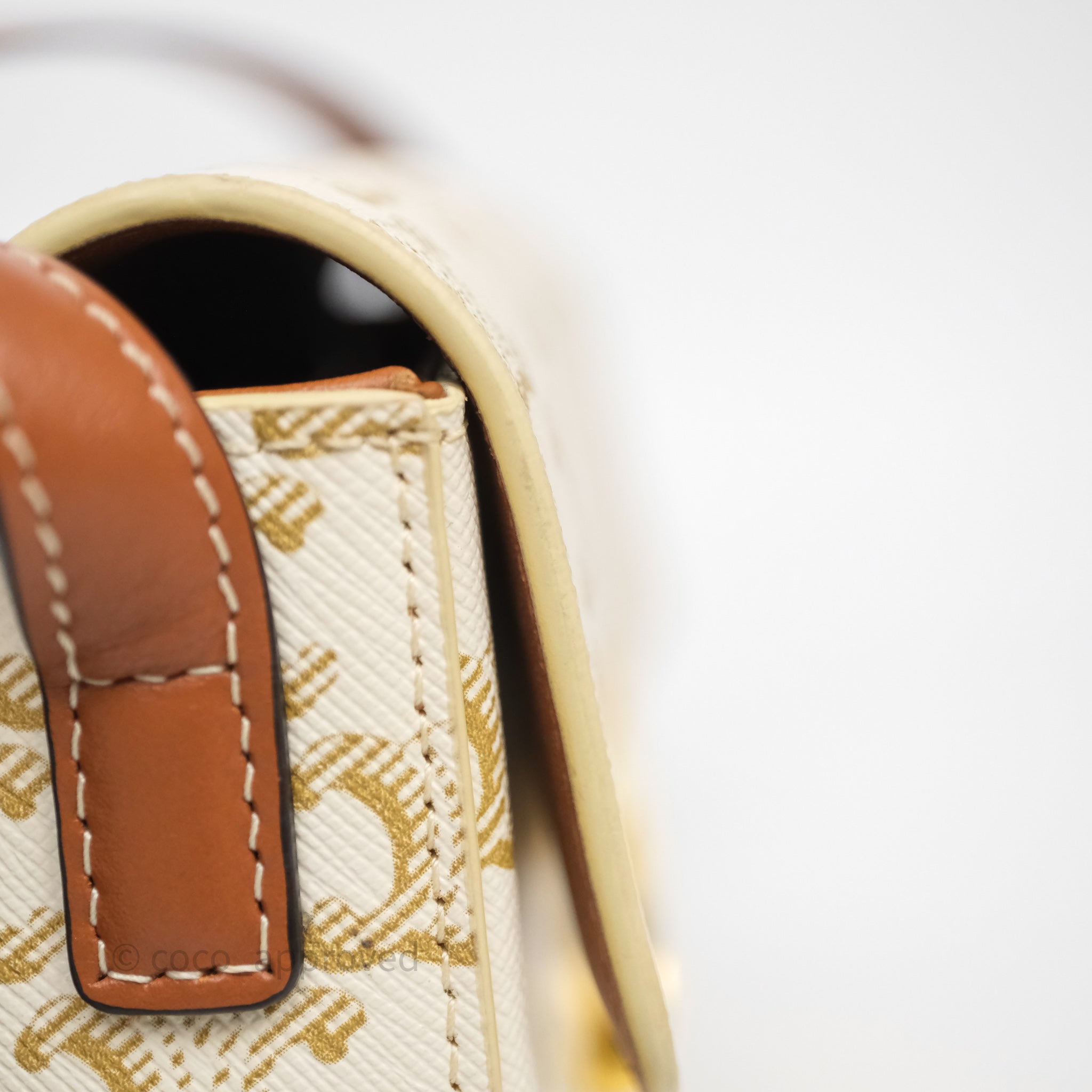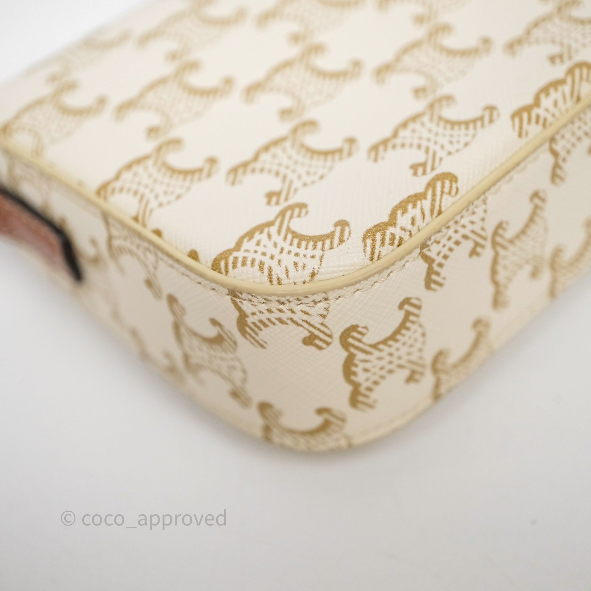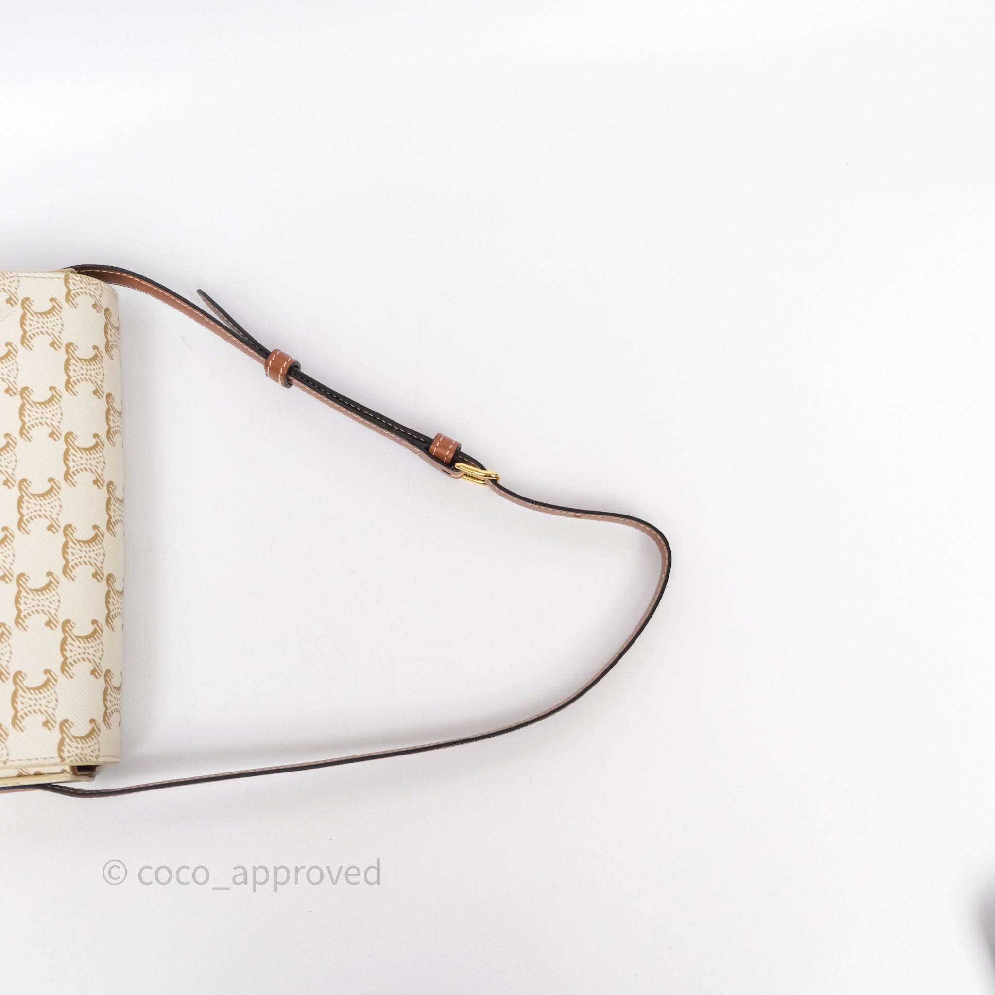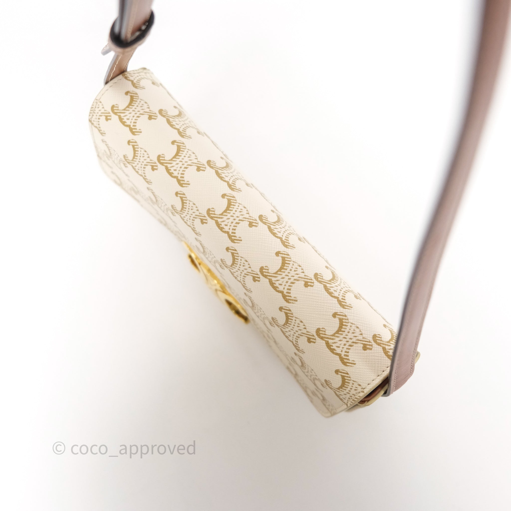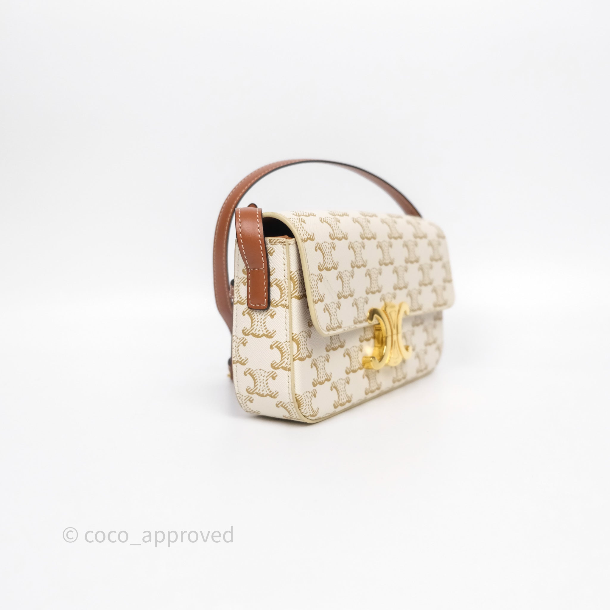 Celine Triomphe Shoulder Bag White Calfskin Triomphe Canvas