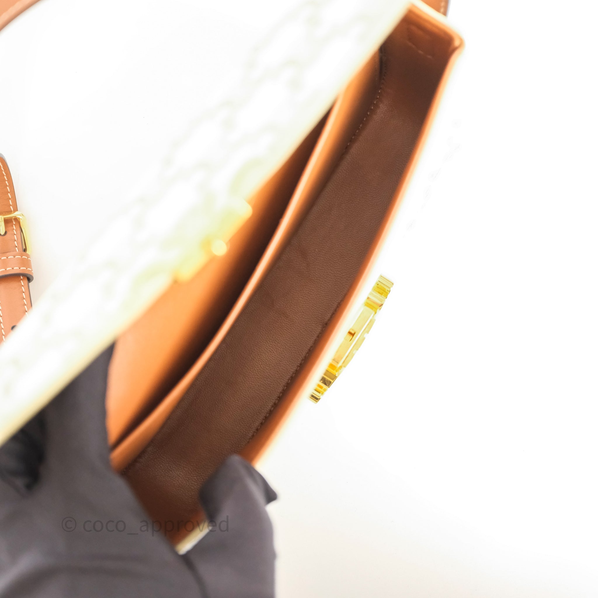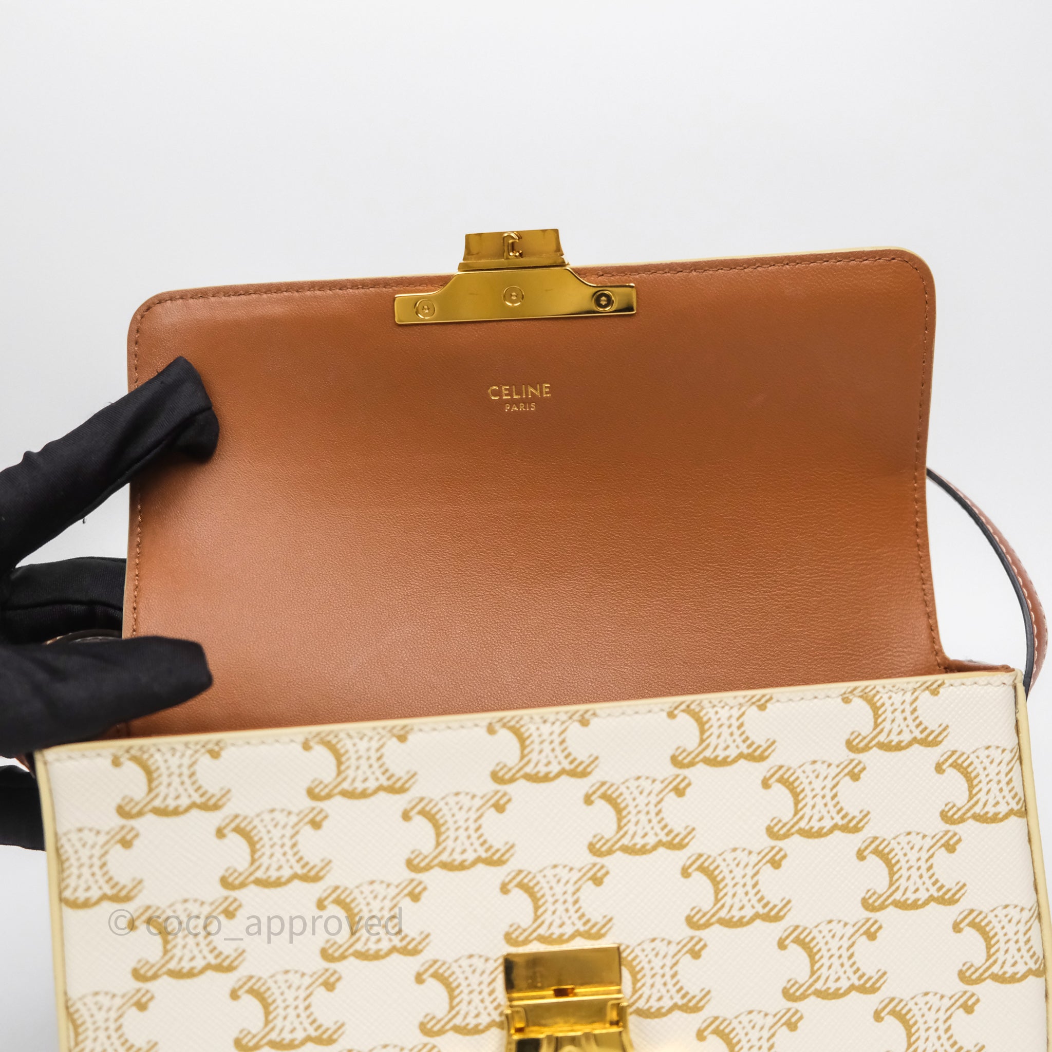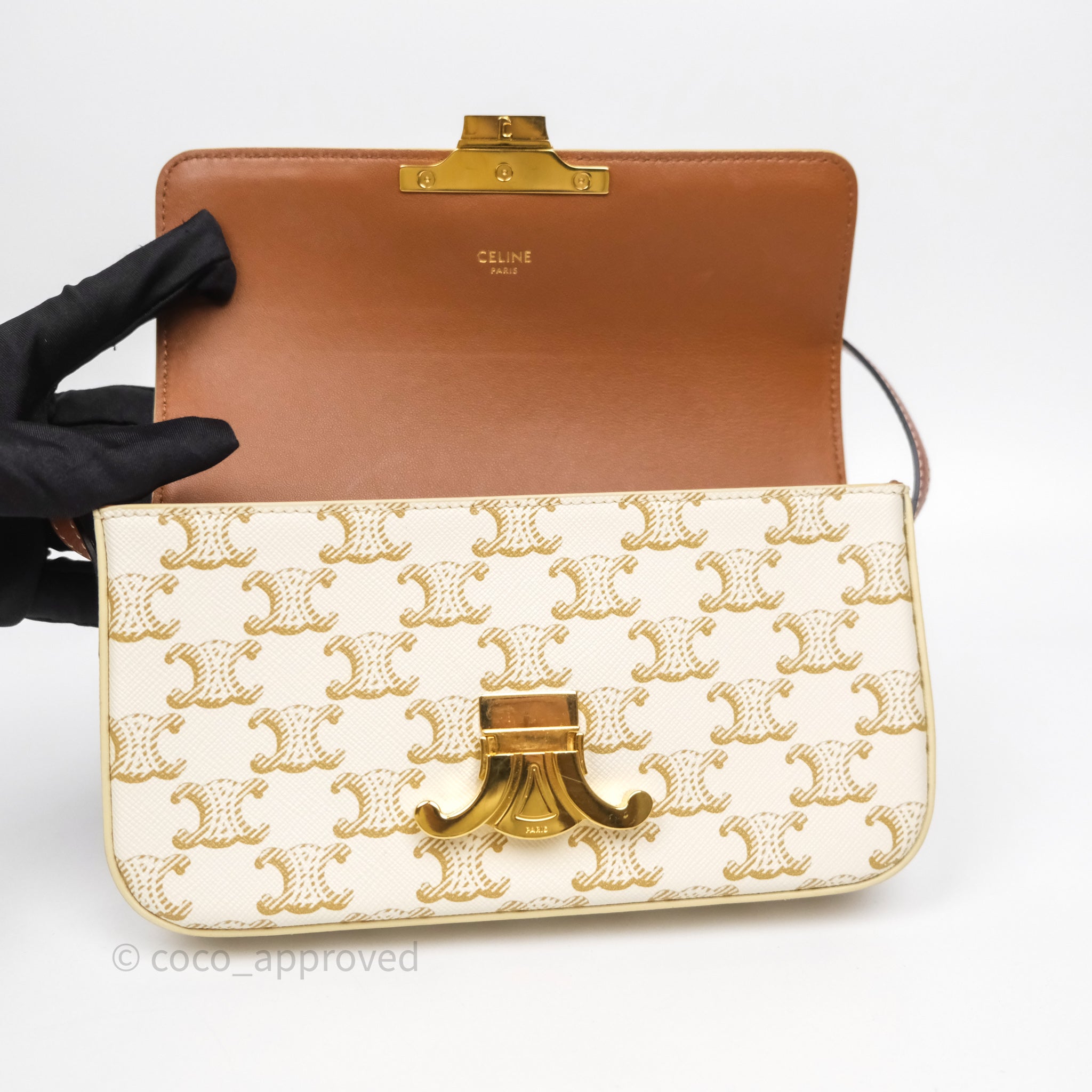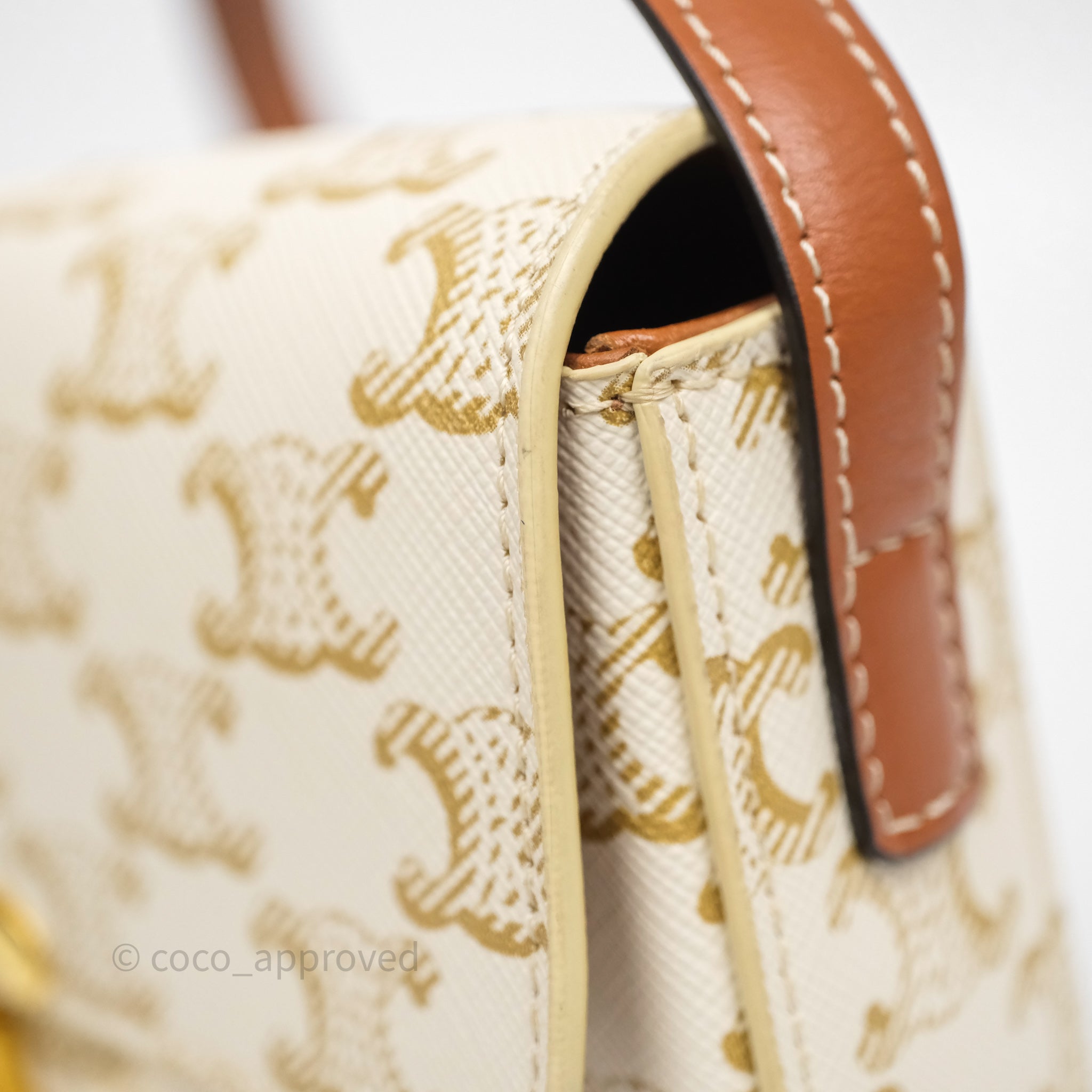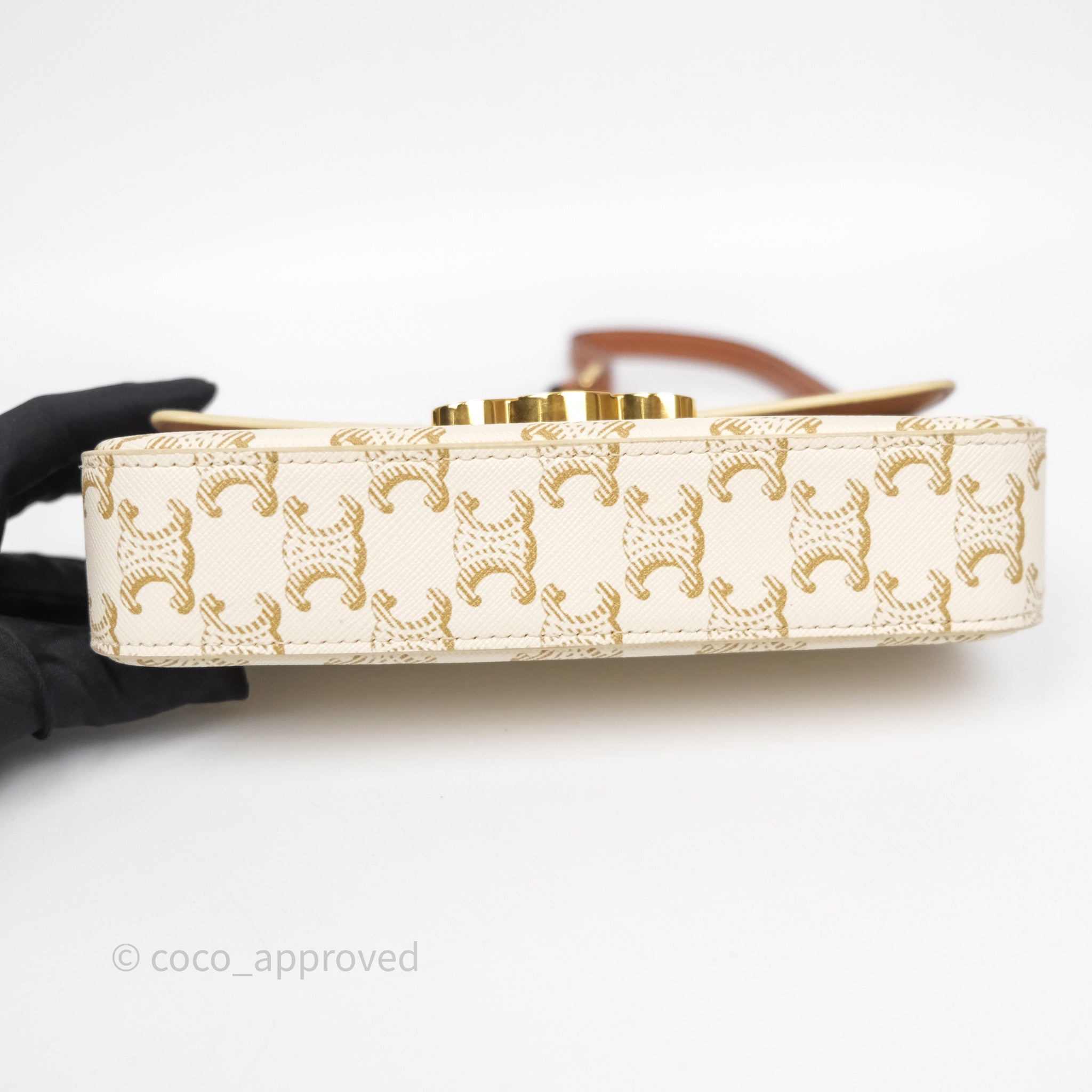 Celine Triomphe Shoulder Bag White Calfskin Triomphe Canvas