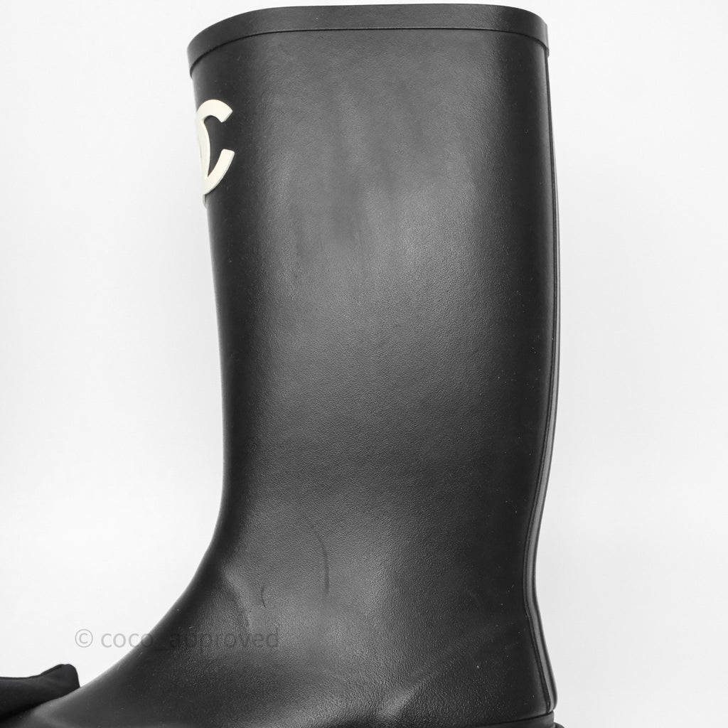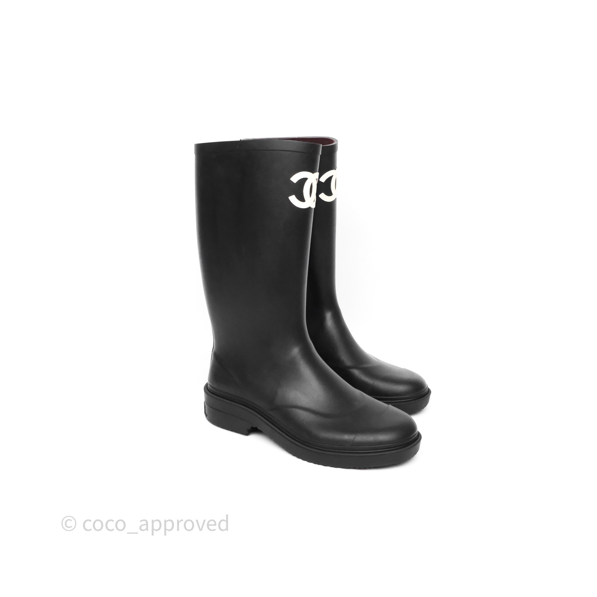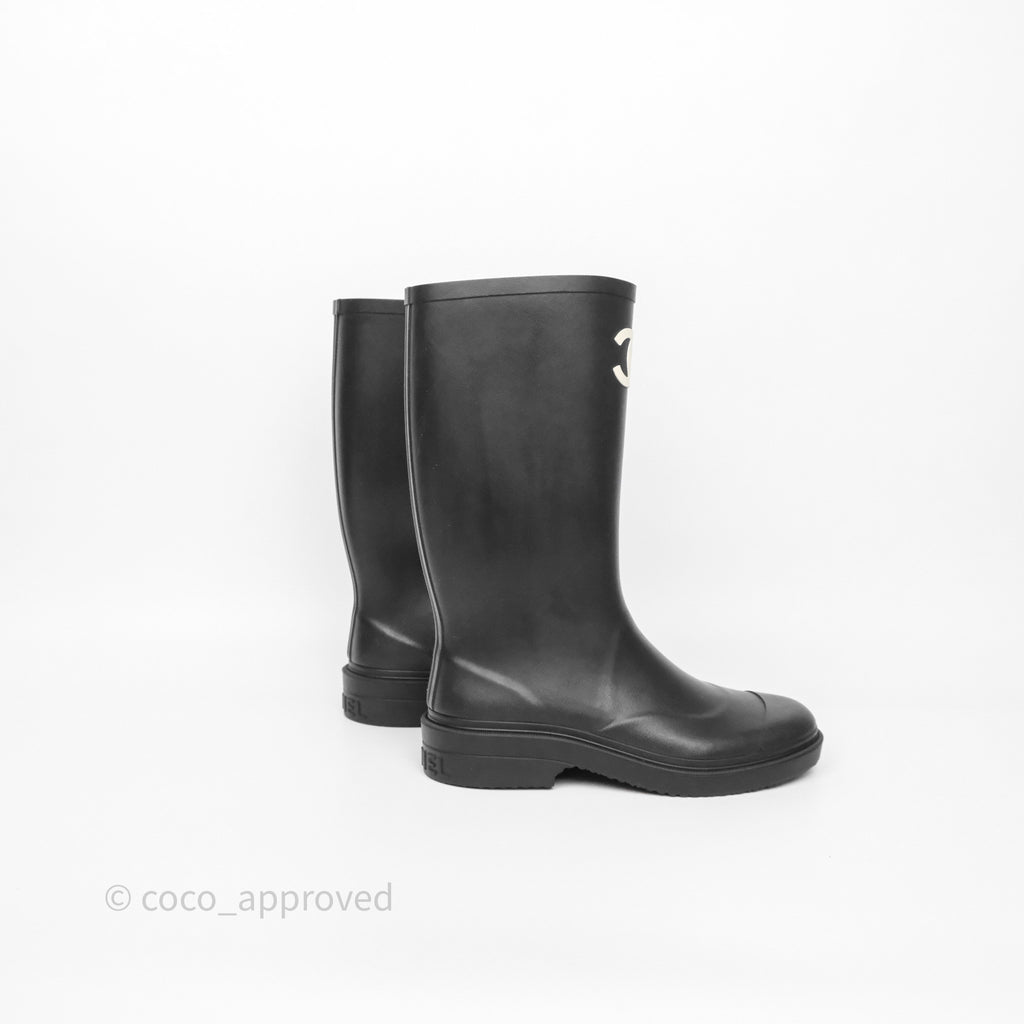 Chanel CC Rain Boots Black Caoutchouc Size 38