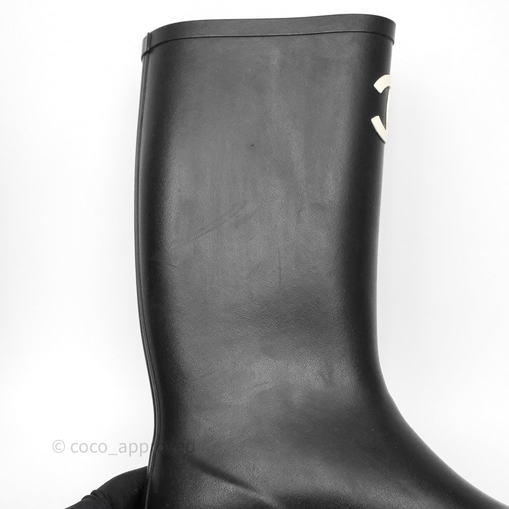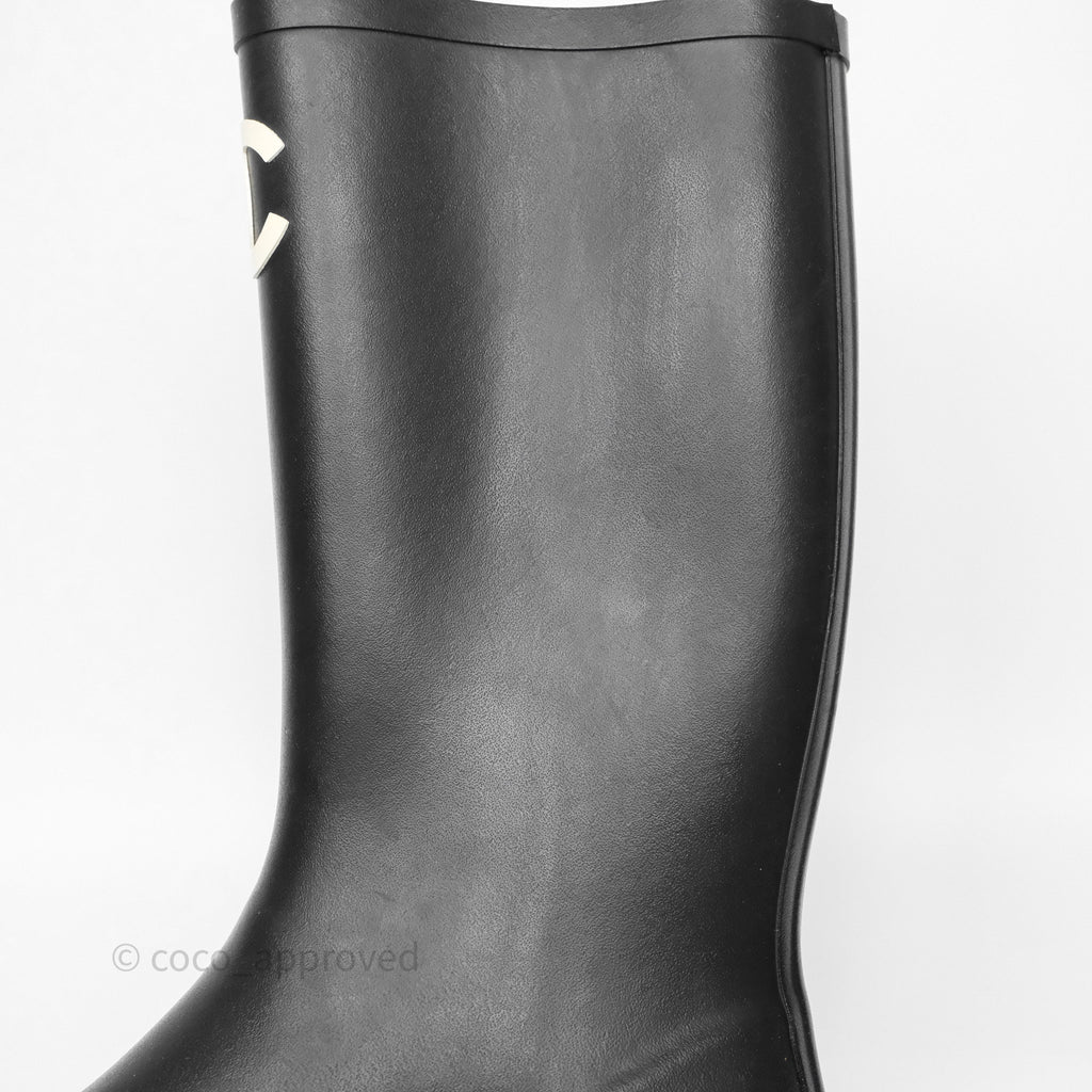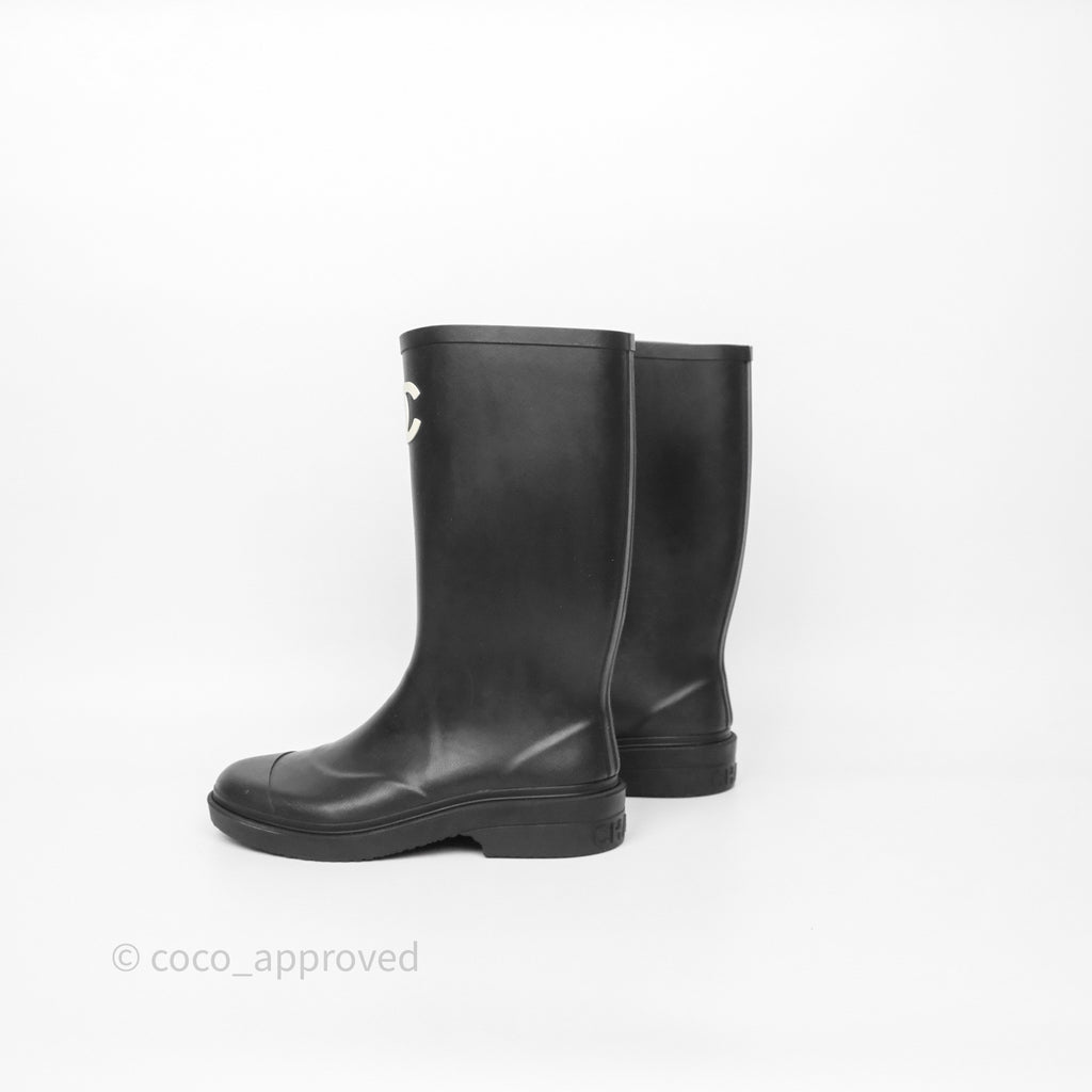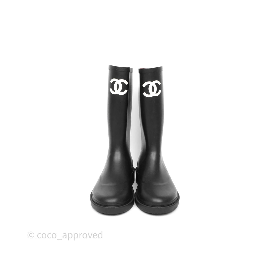 Chanel CC Rain Boots Black Caoutchouc Size 38