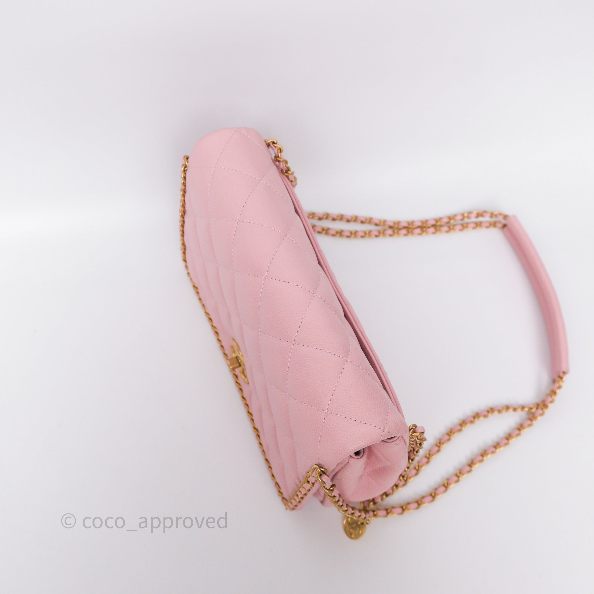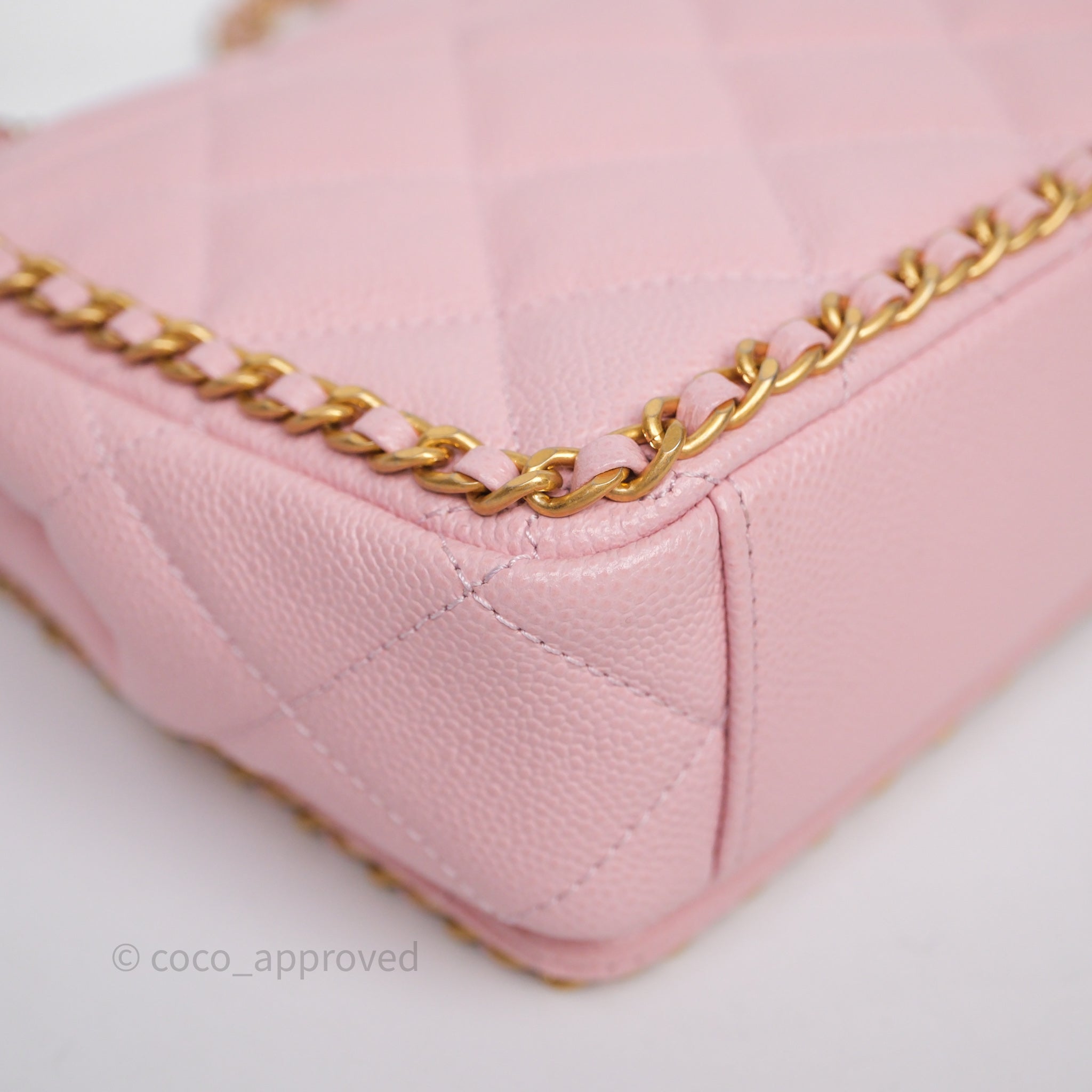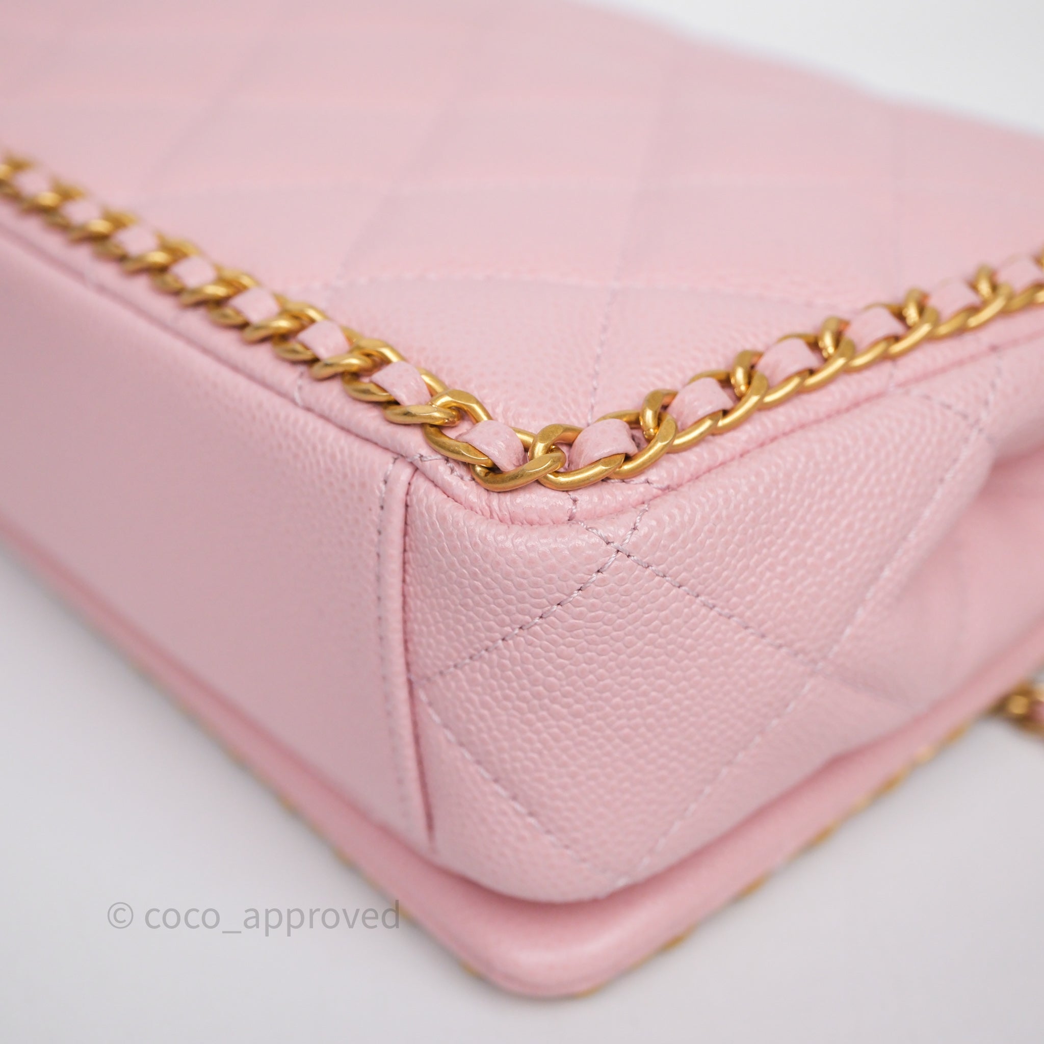 Chanel Chain Around Flap Bag Pink Caviar Aged Gold Hardware 22B