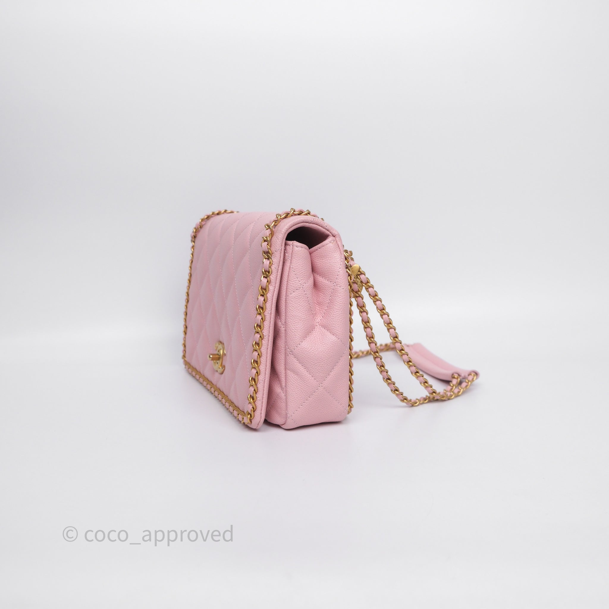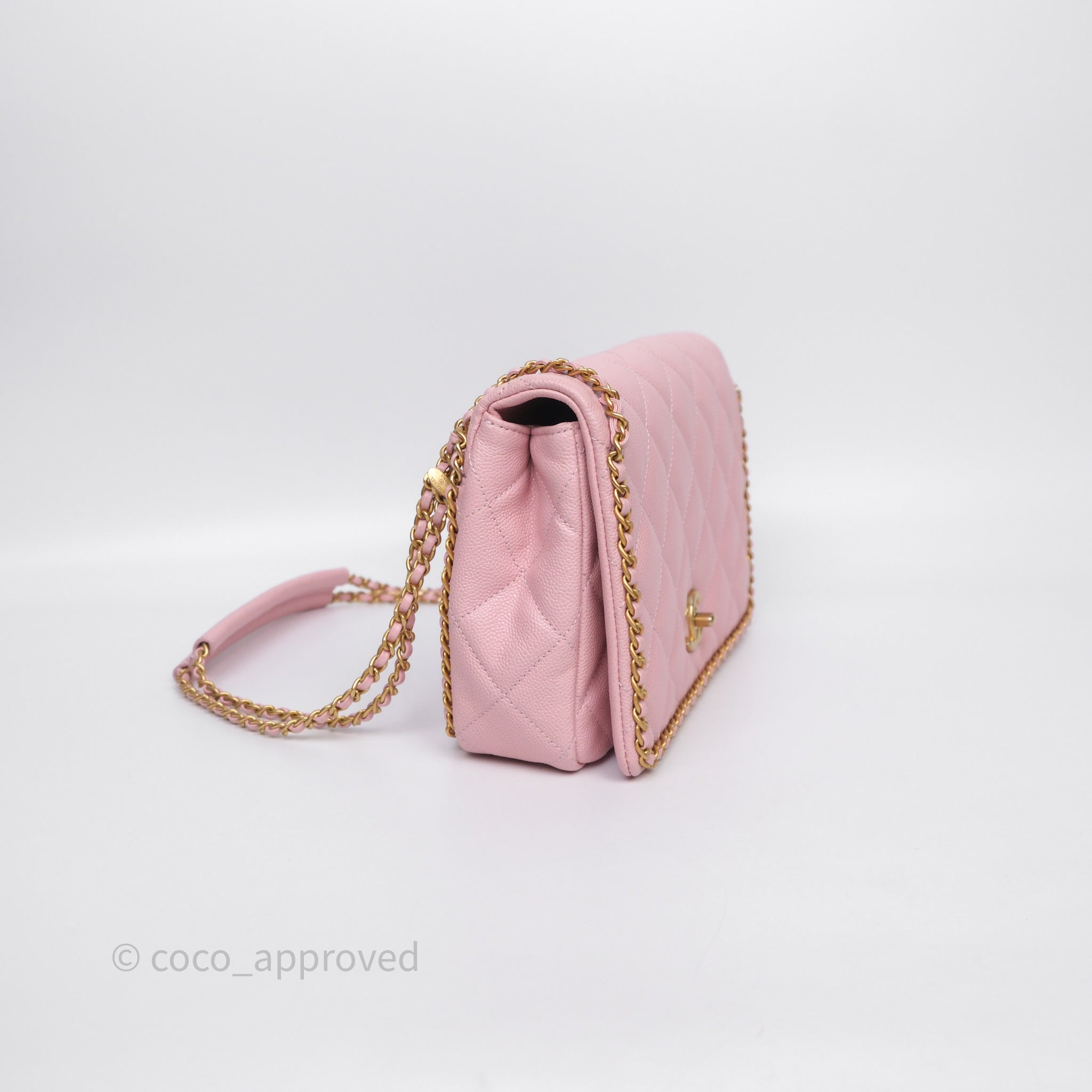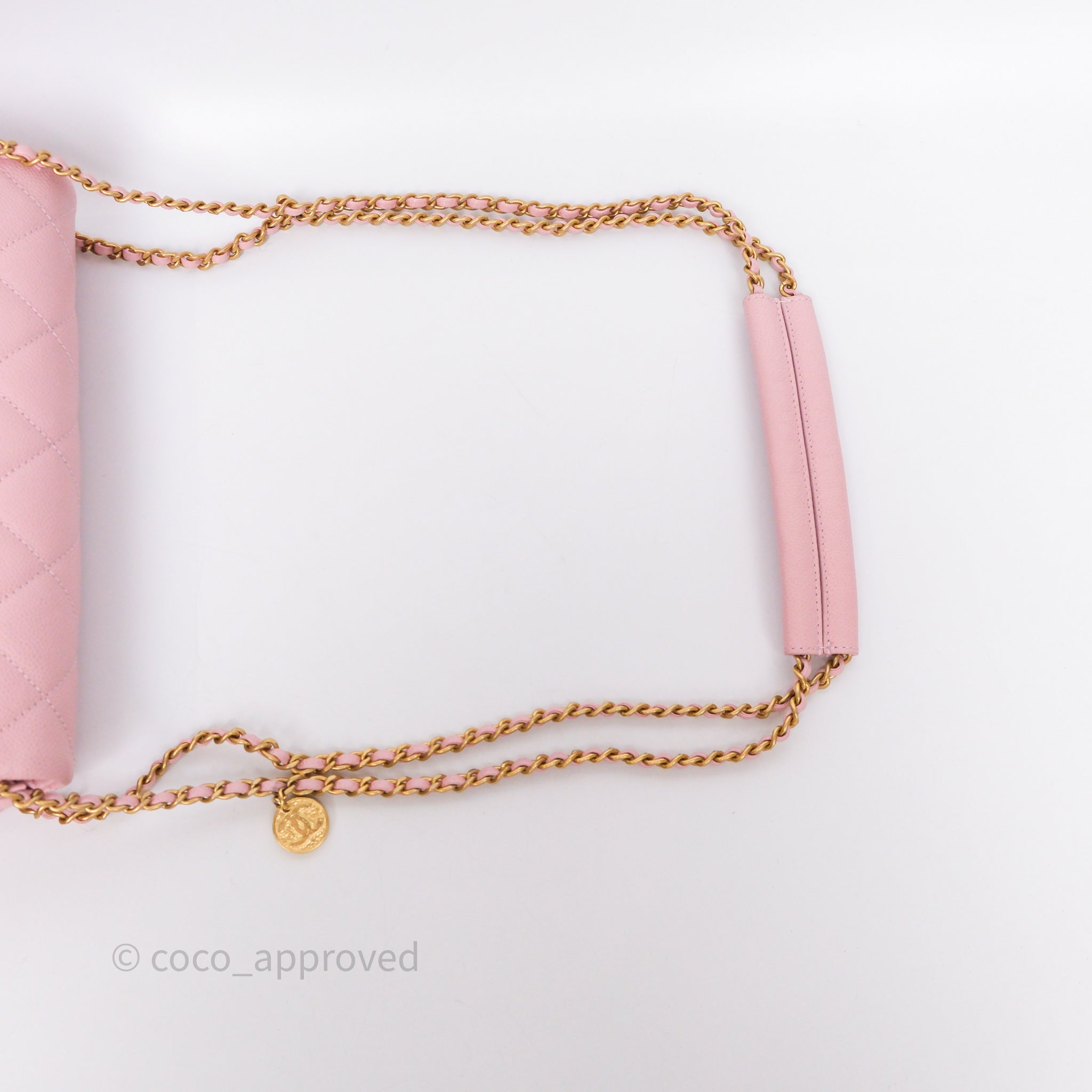 Chanel Chain Around Flap Bag Pink Caviar Aged Gold Hardware 22B
