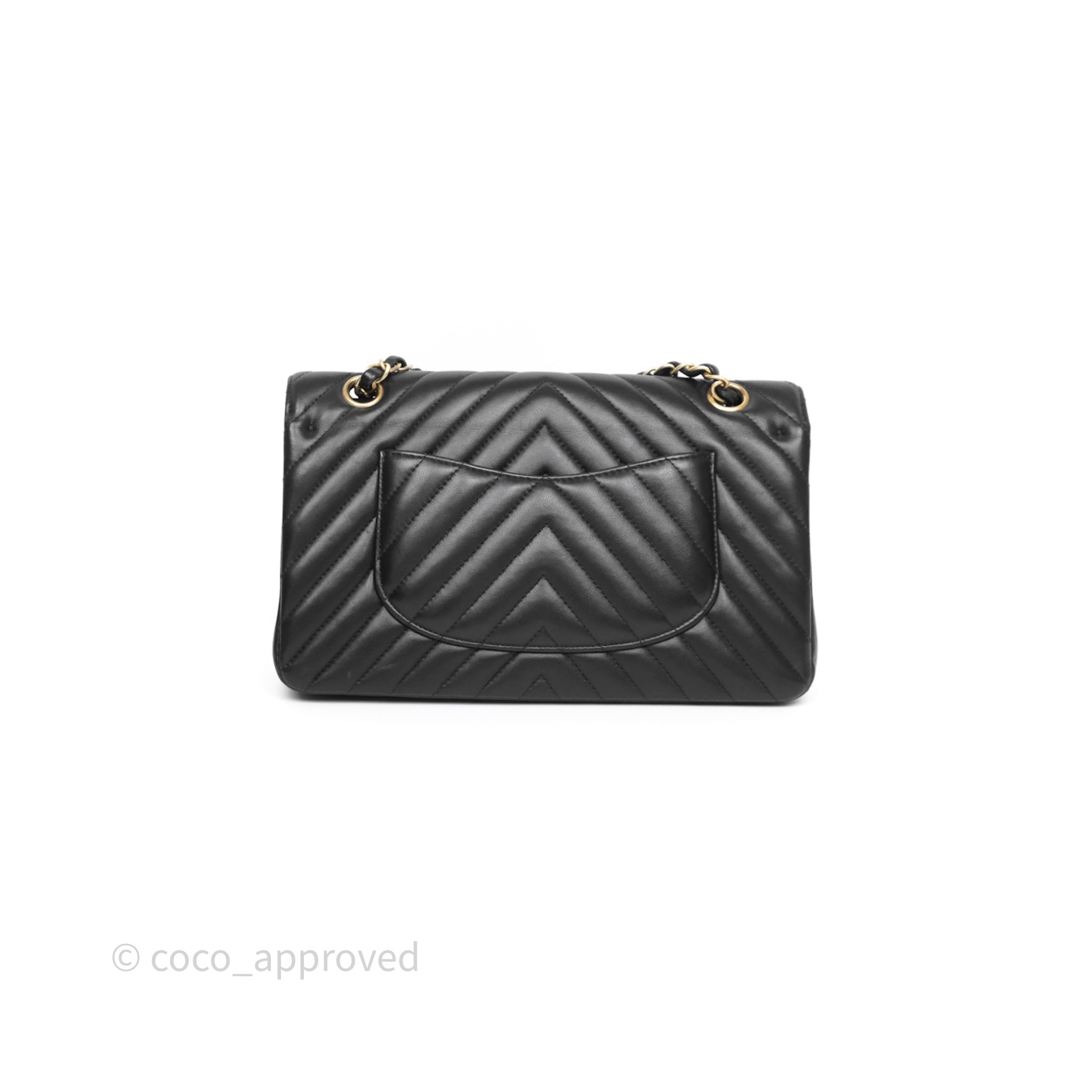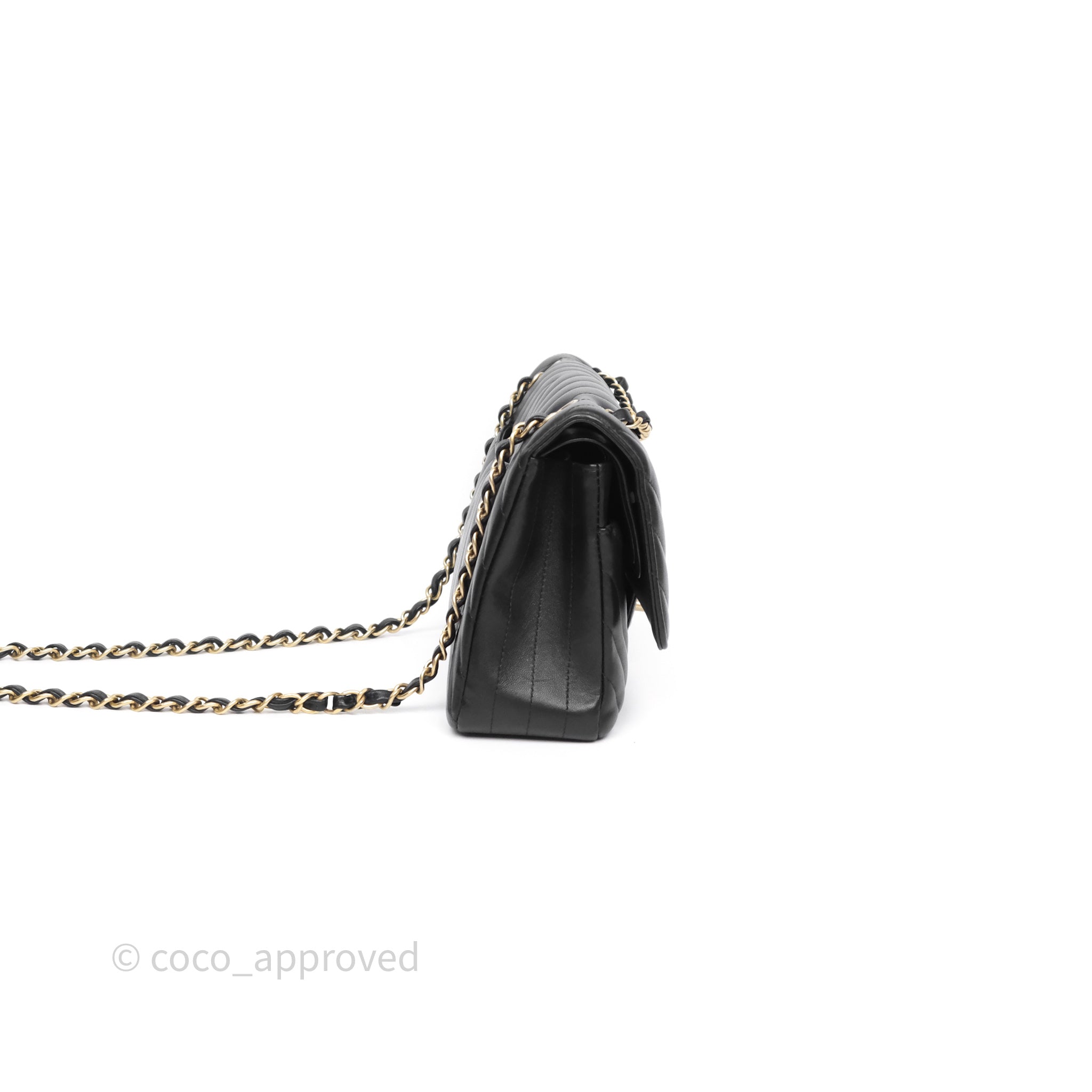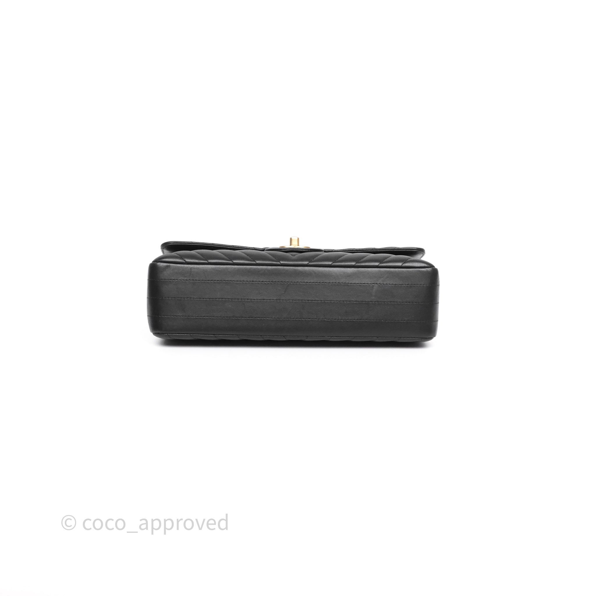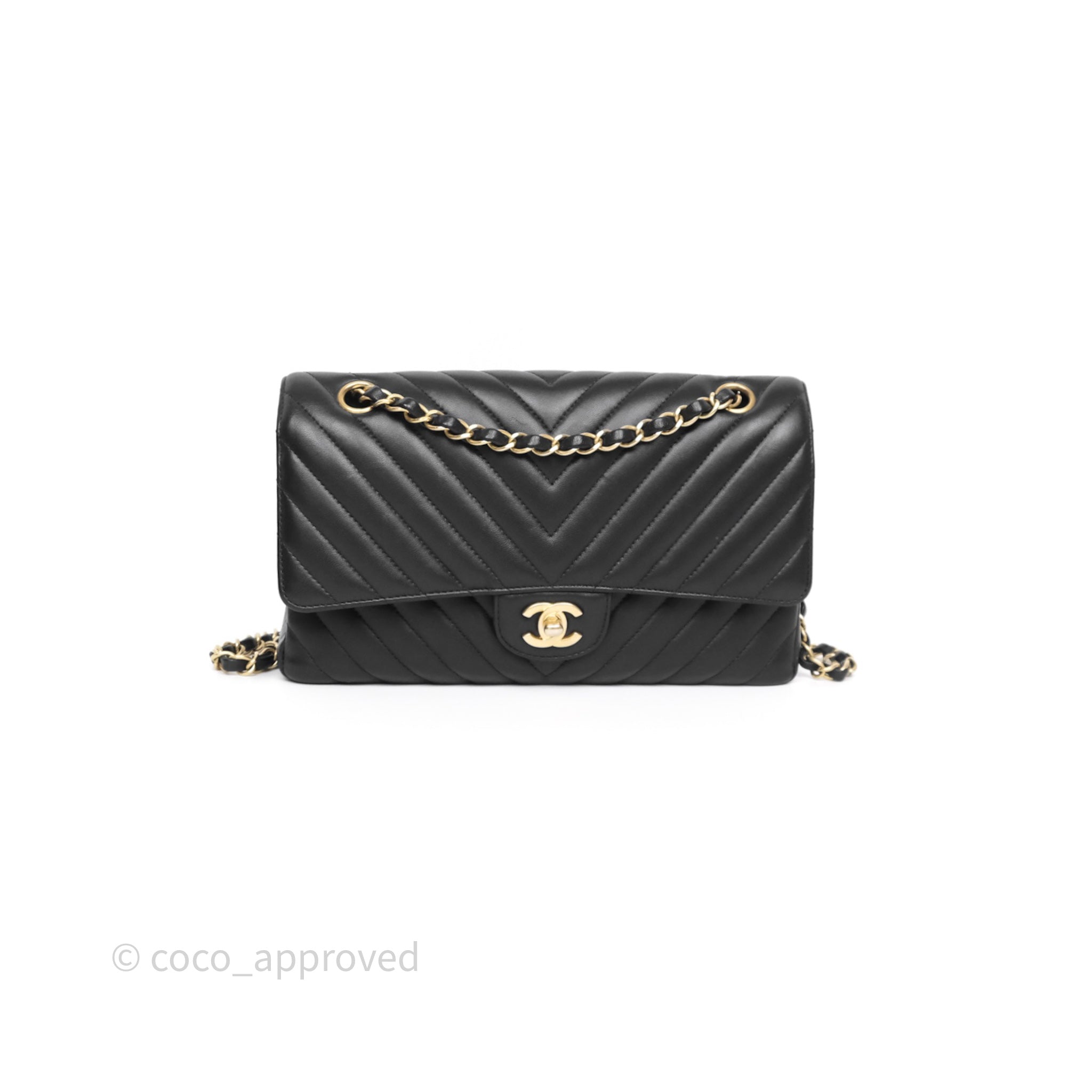 Chanel Classic Medium Flap Chevron Black Lambskin Aged Gold Hardware