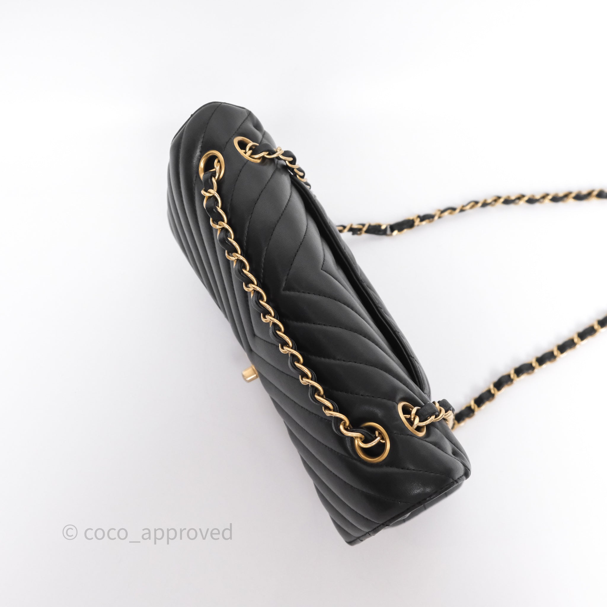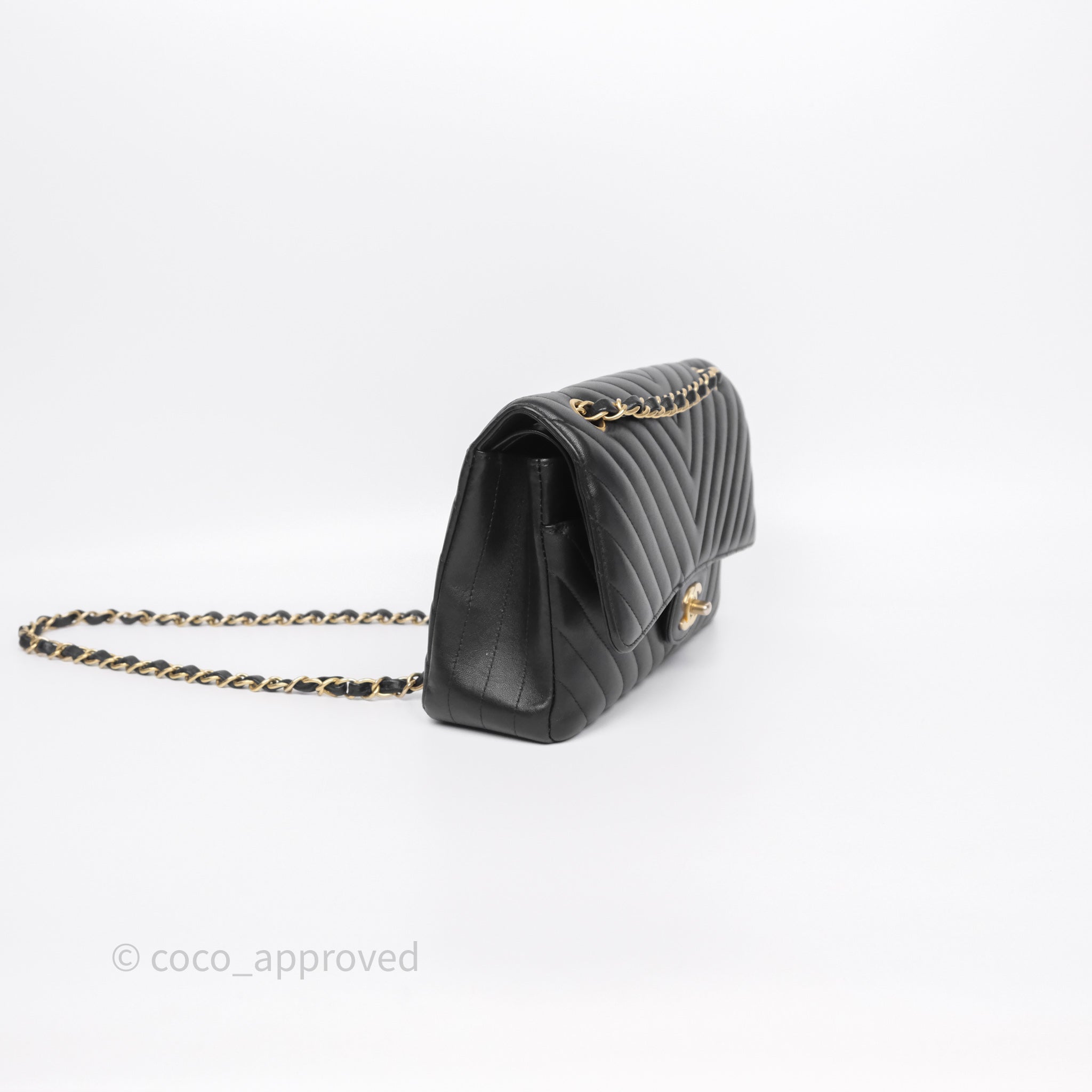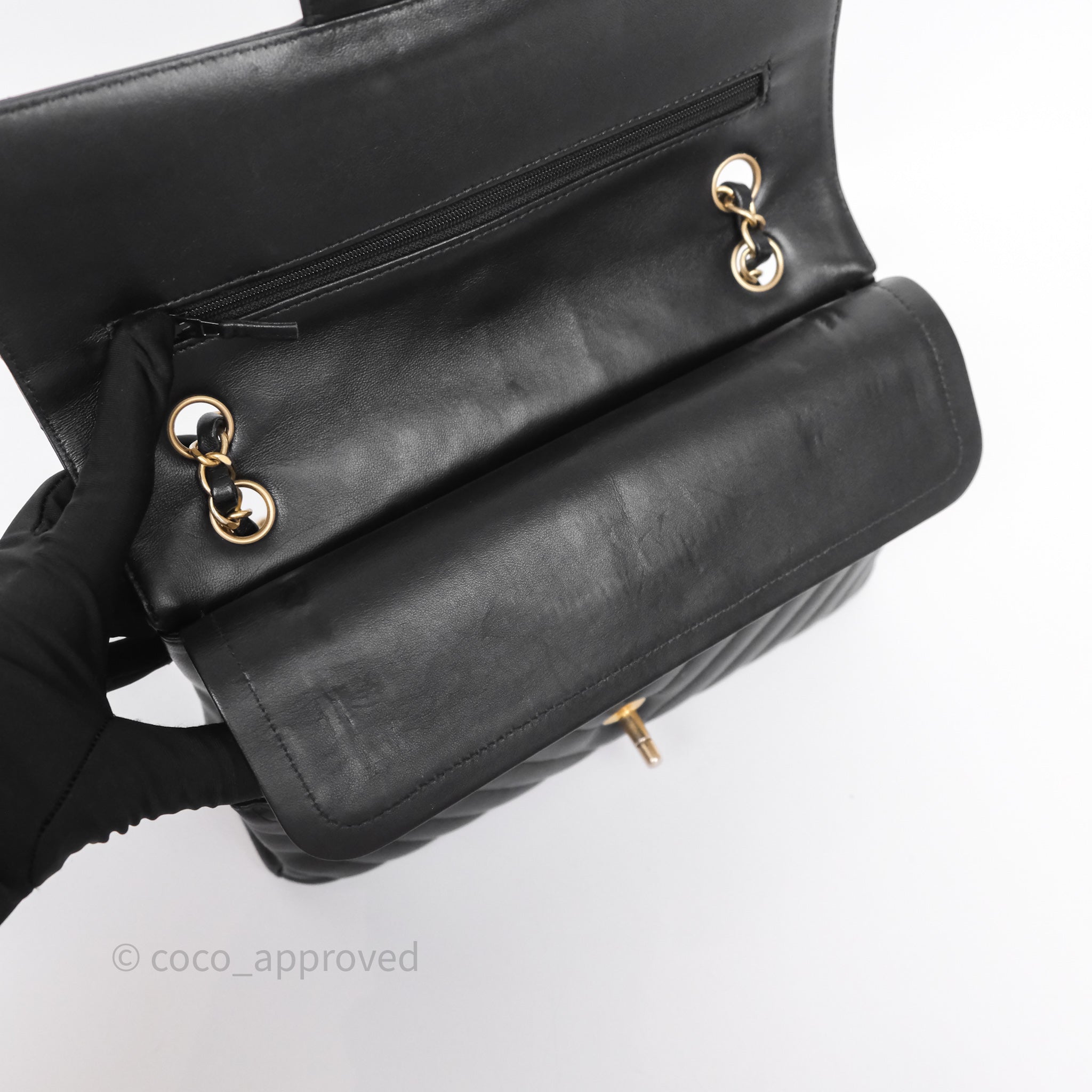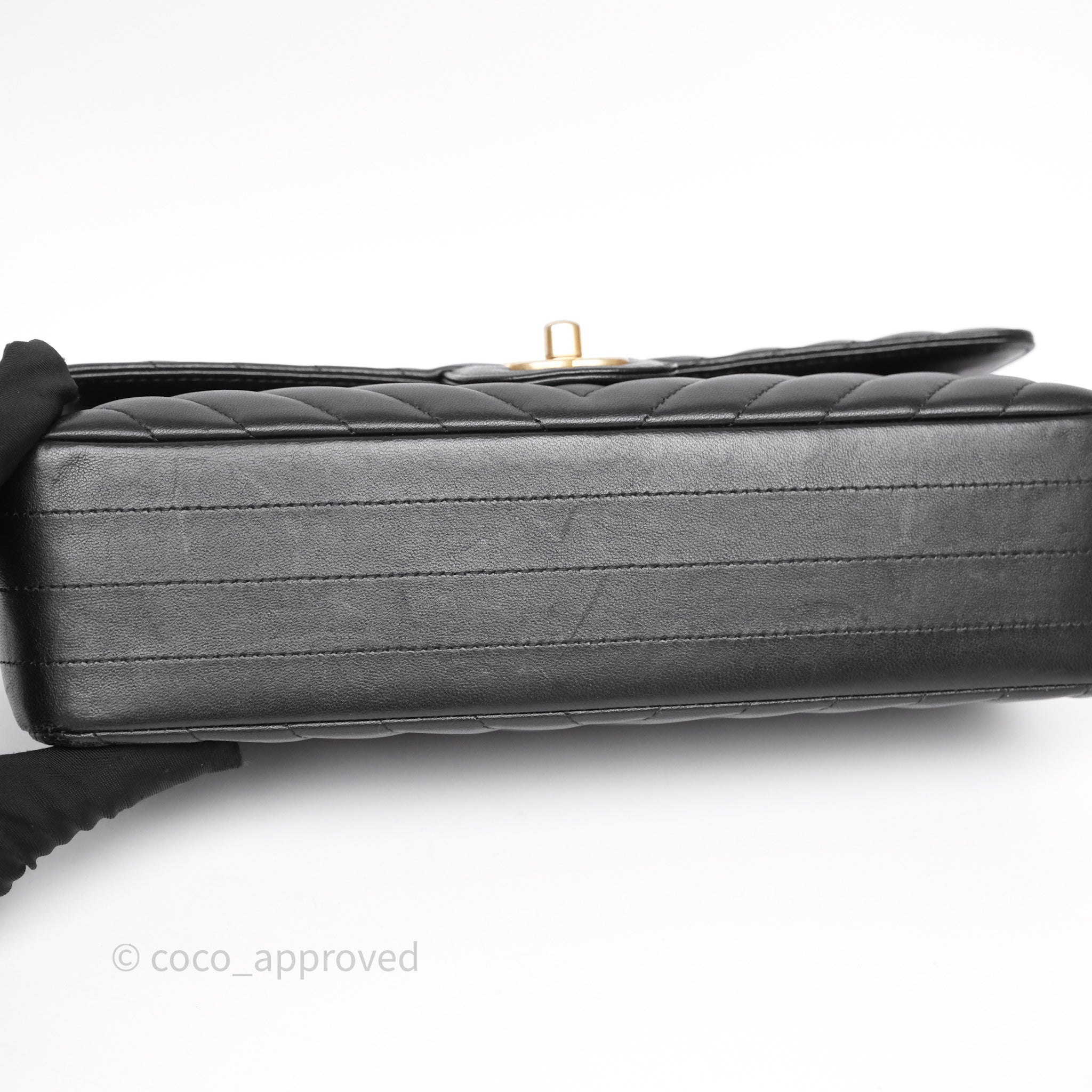 Chanel Classic Medium Flap Chevron Black Lambskin Aged Gold Hardware