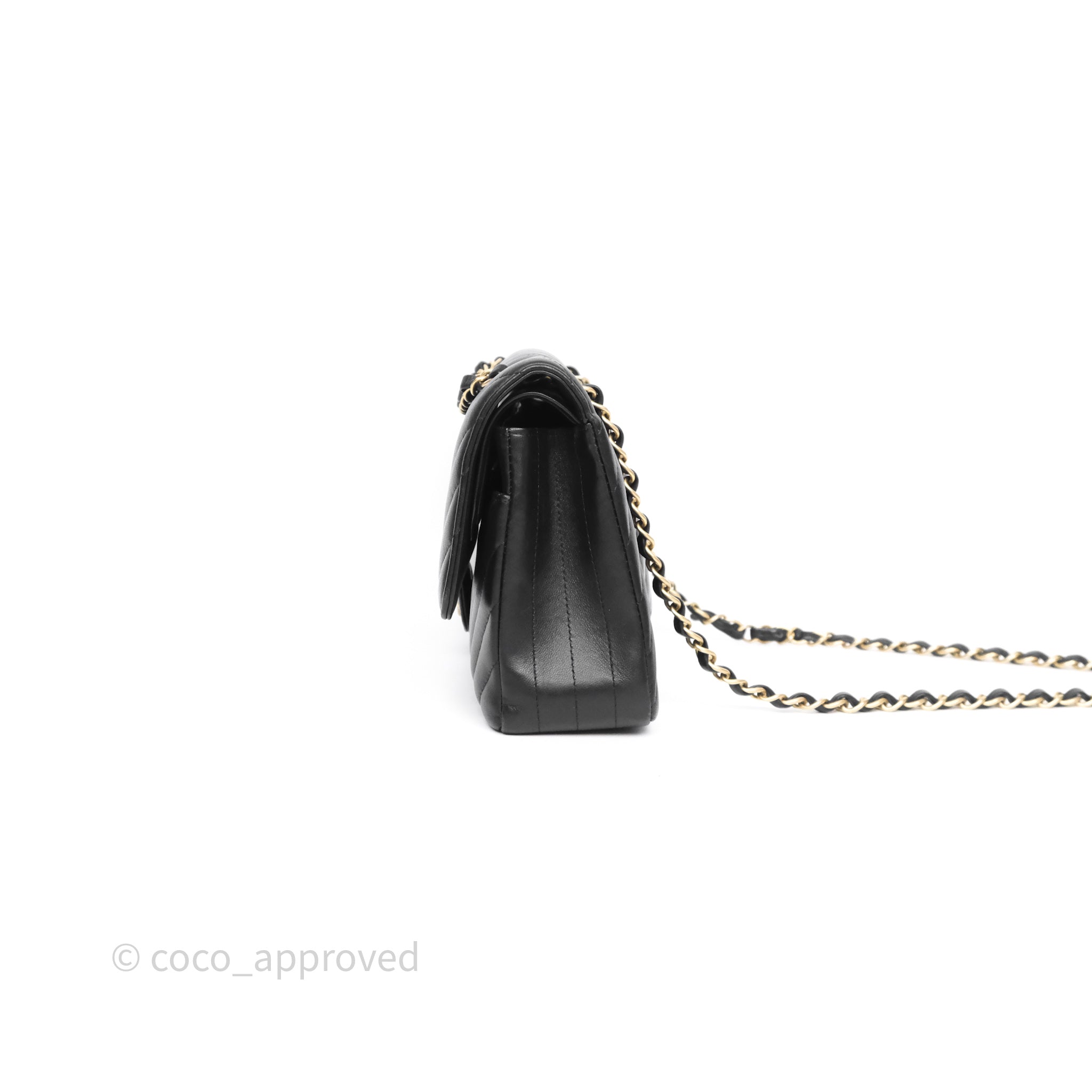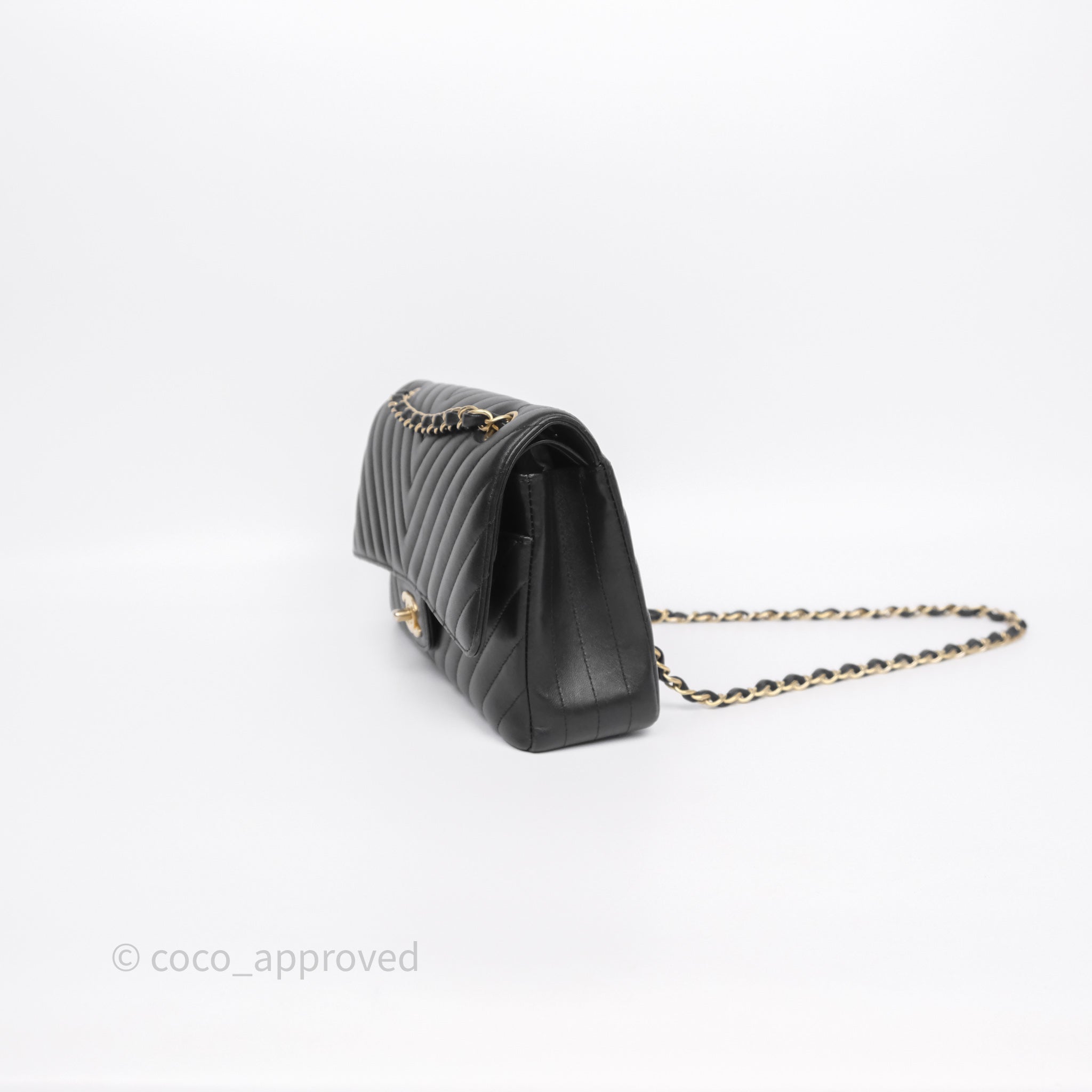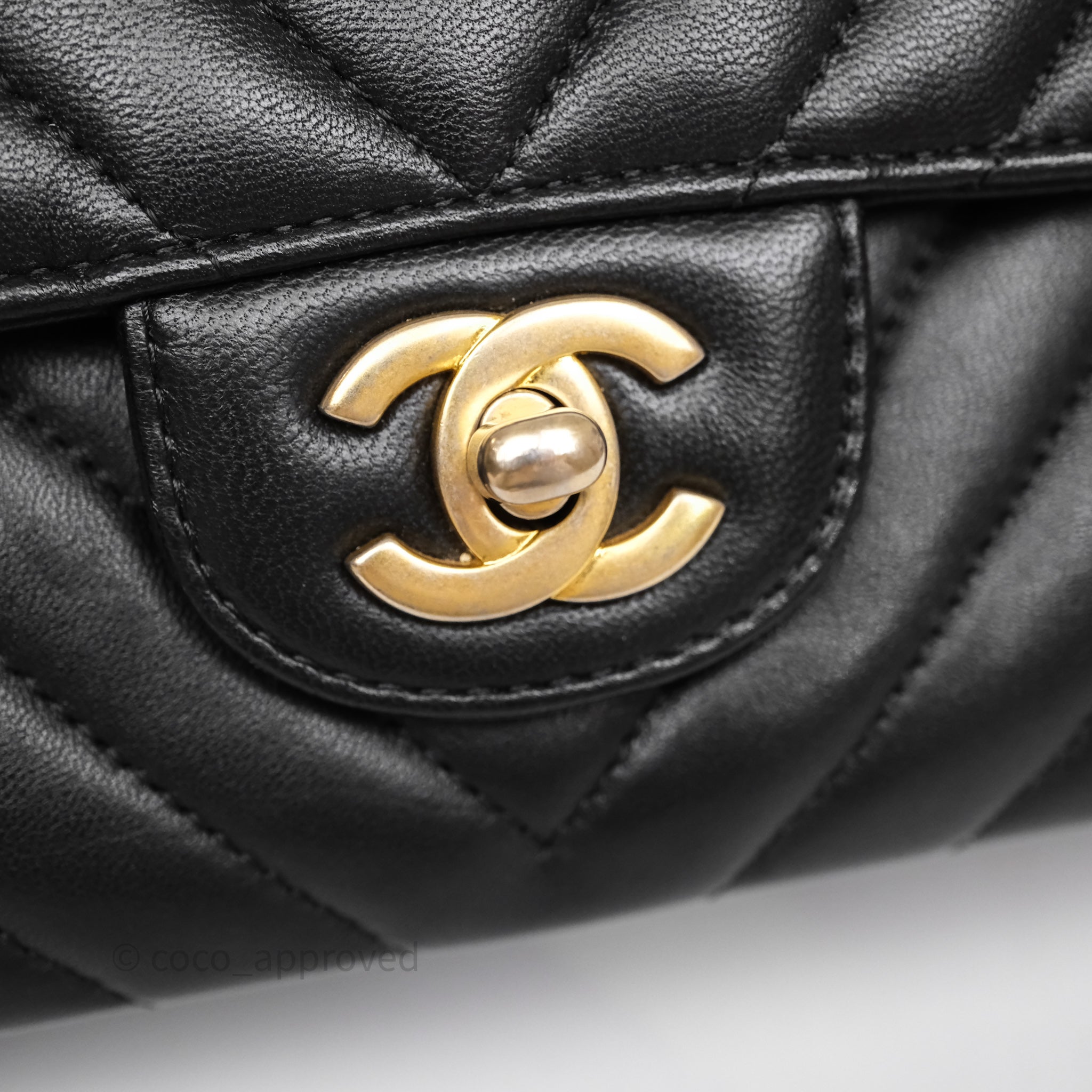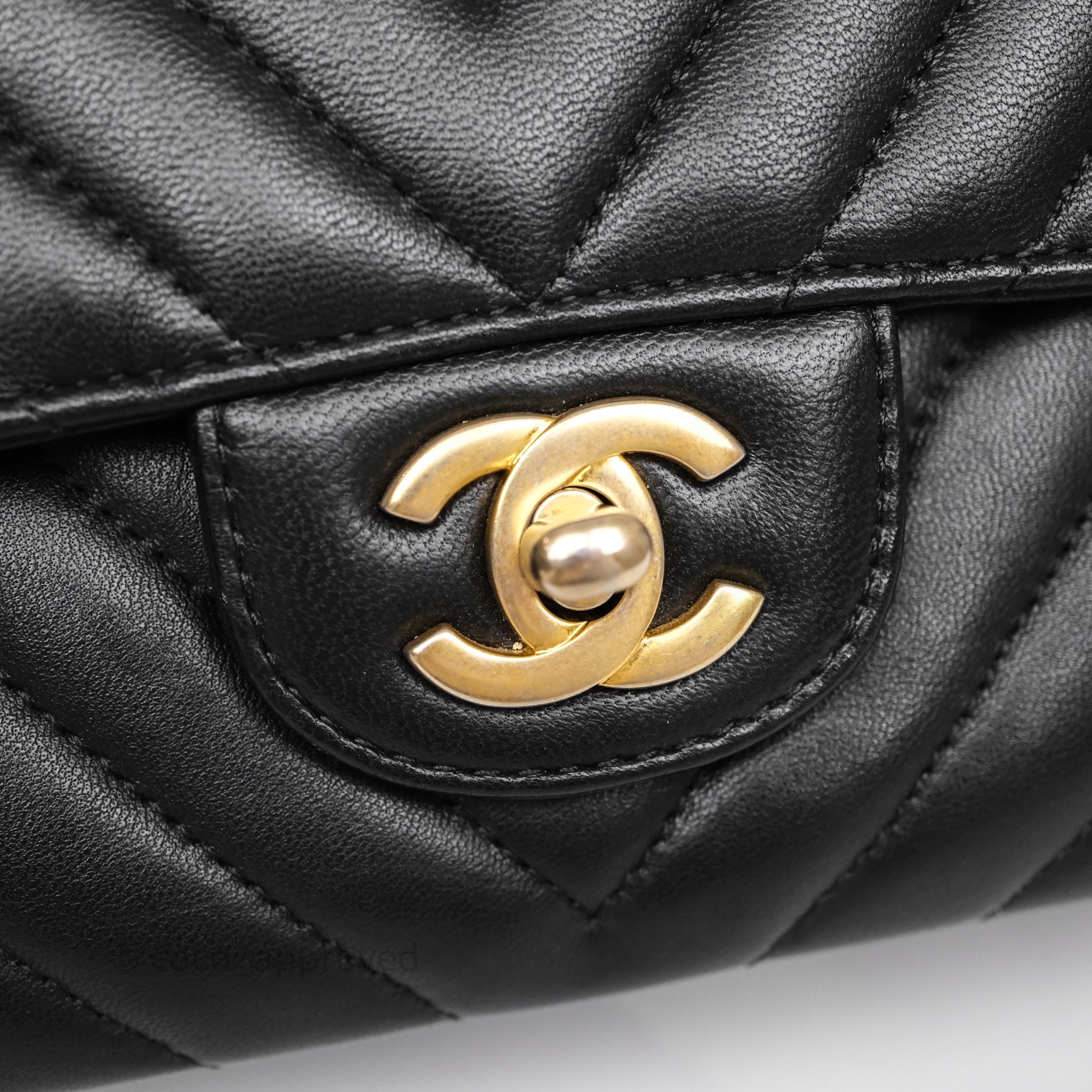 Chanel Classic Medium Flap Chevron Black Lambskin Aged Gold Hardware