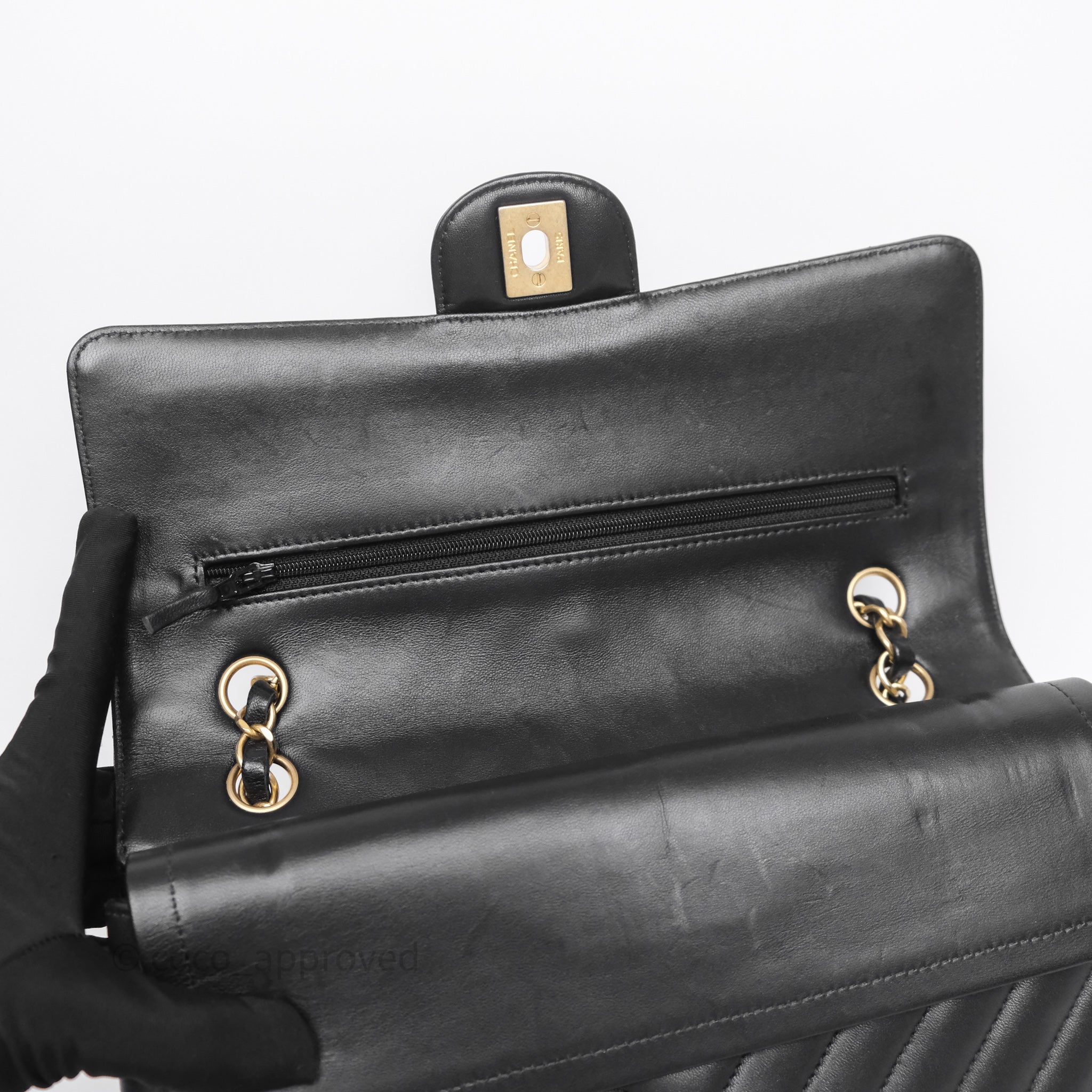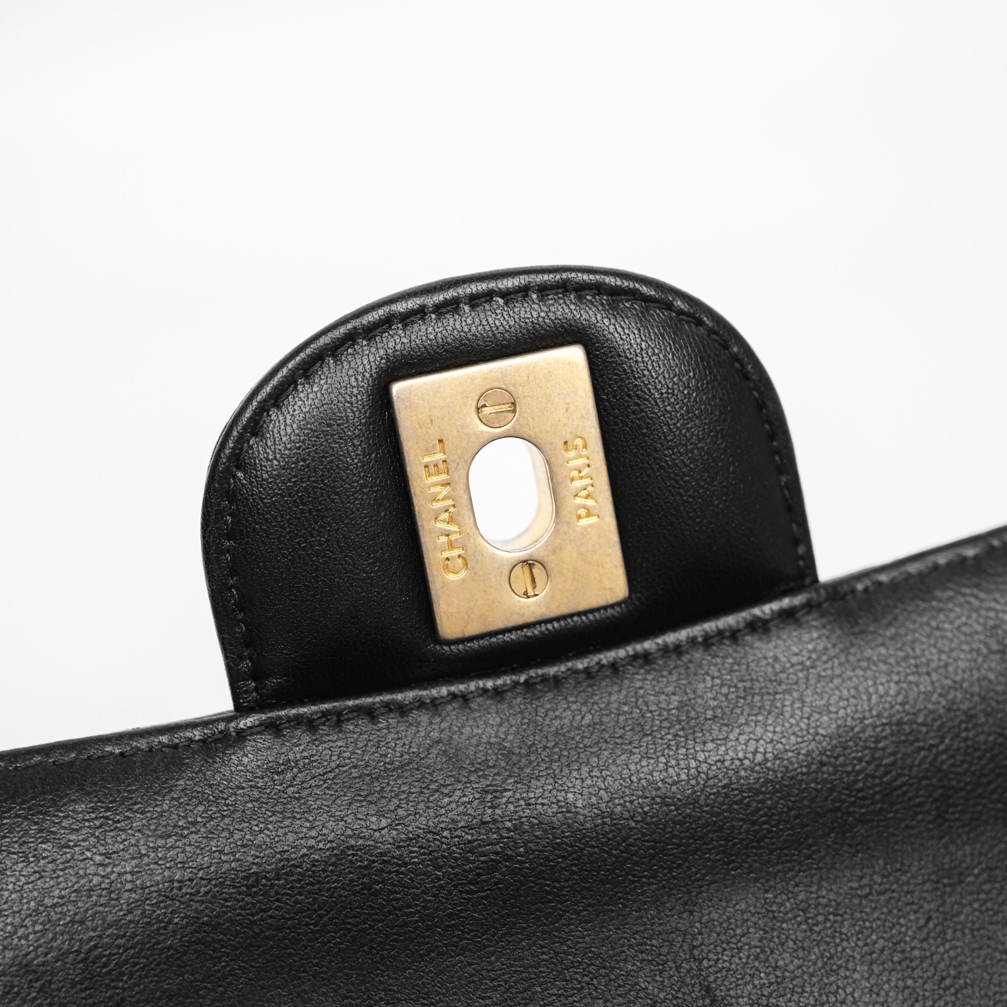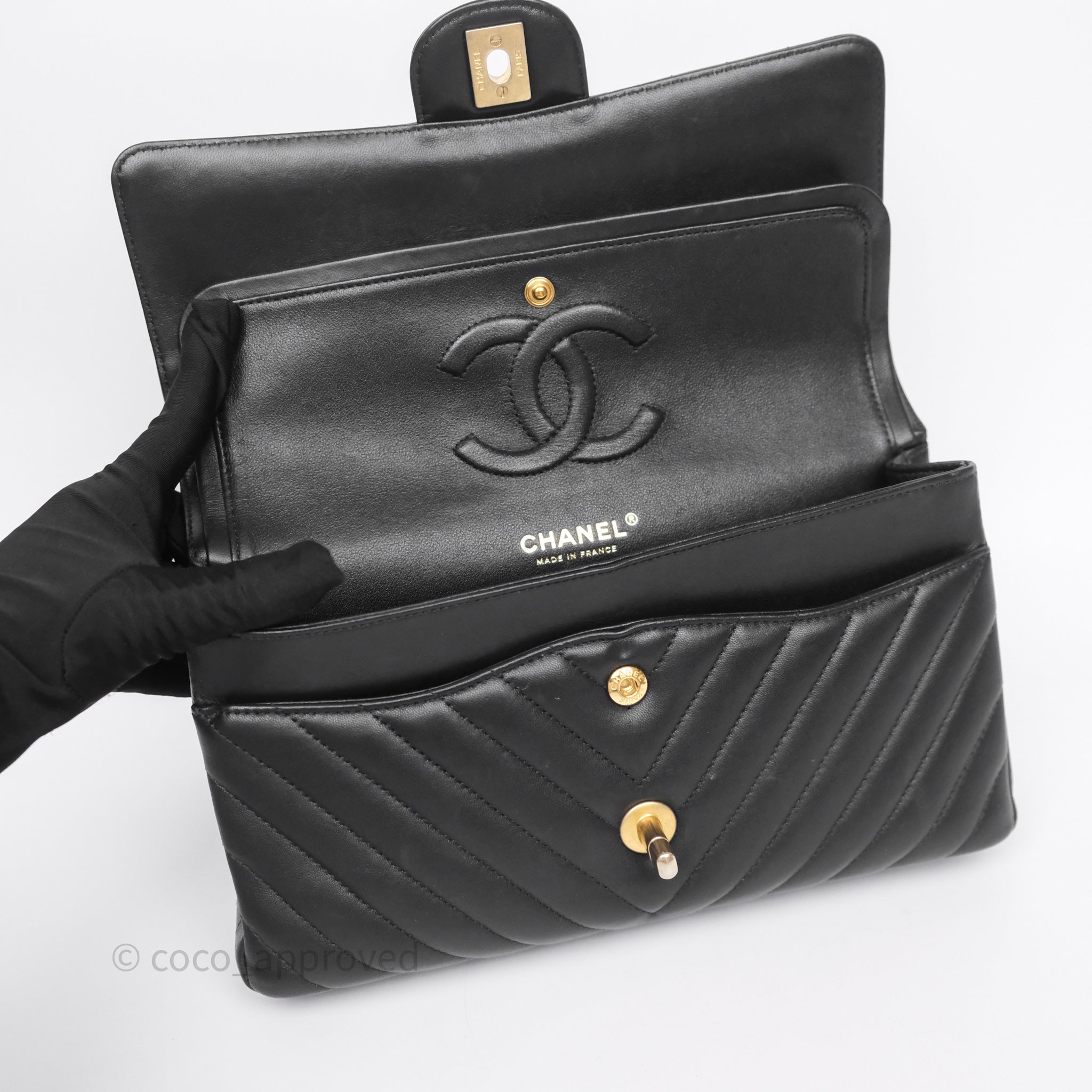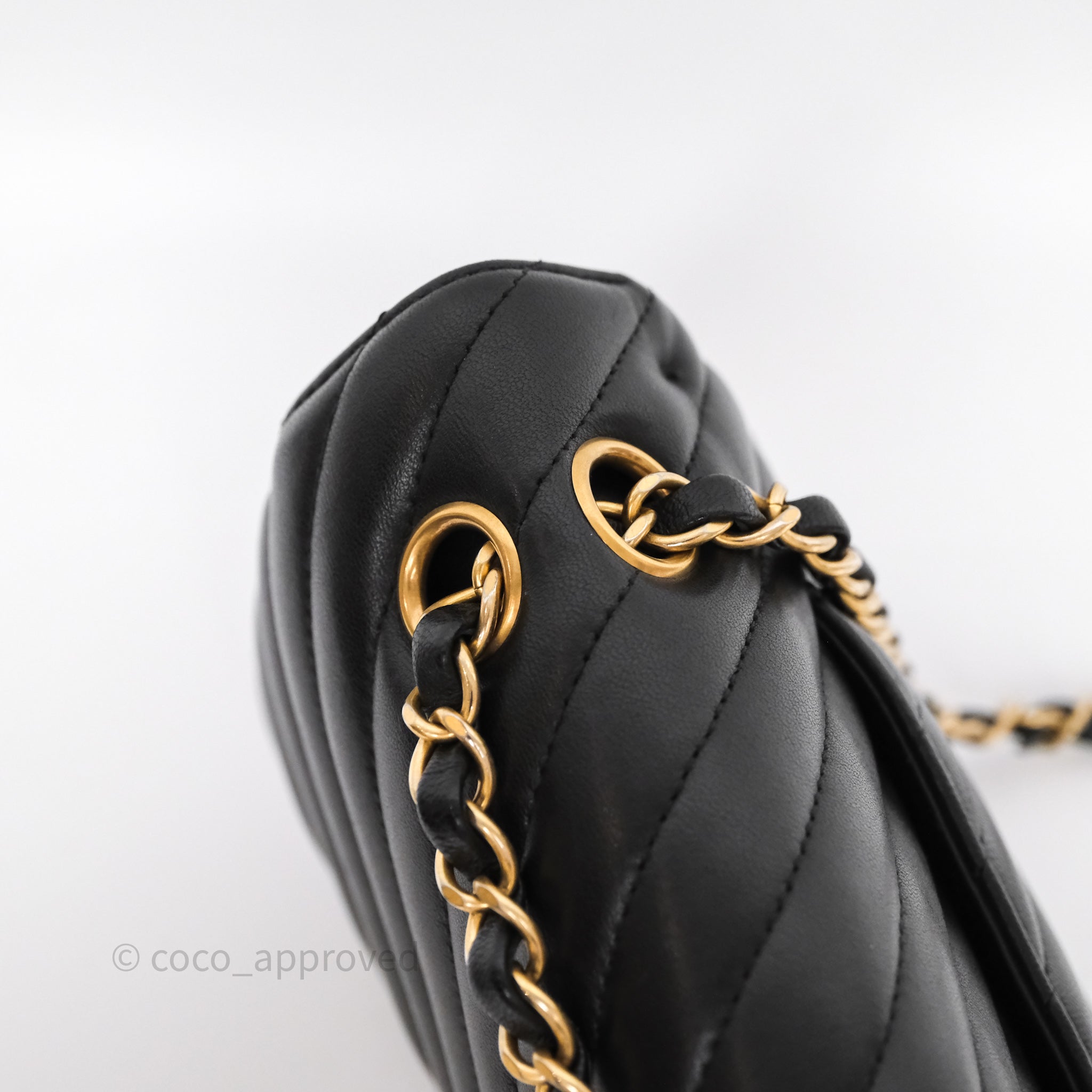 Chanel Classic Medium Flap Chevron Black Lambskin Aged Gold Hardware