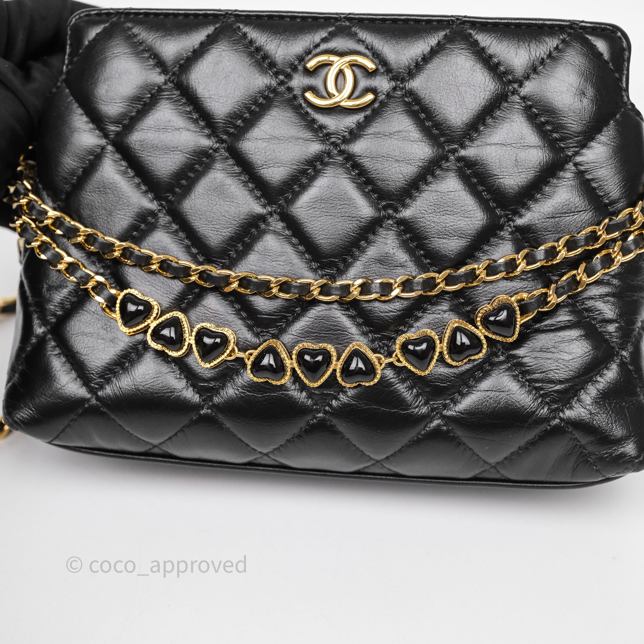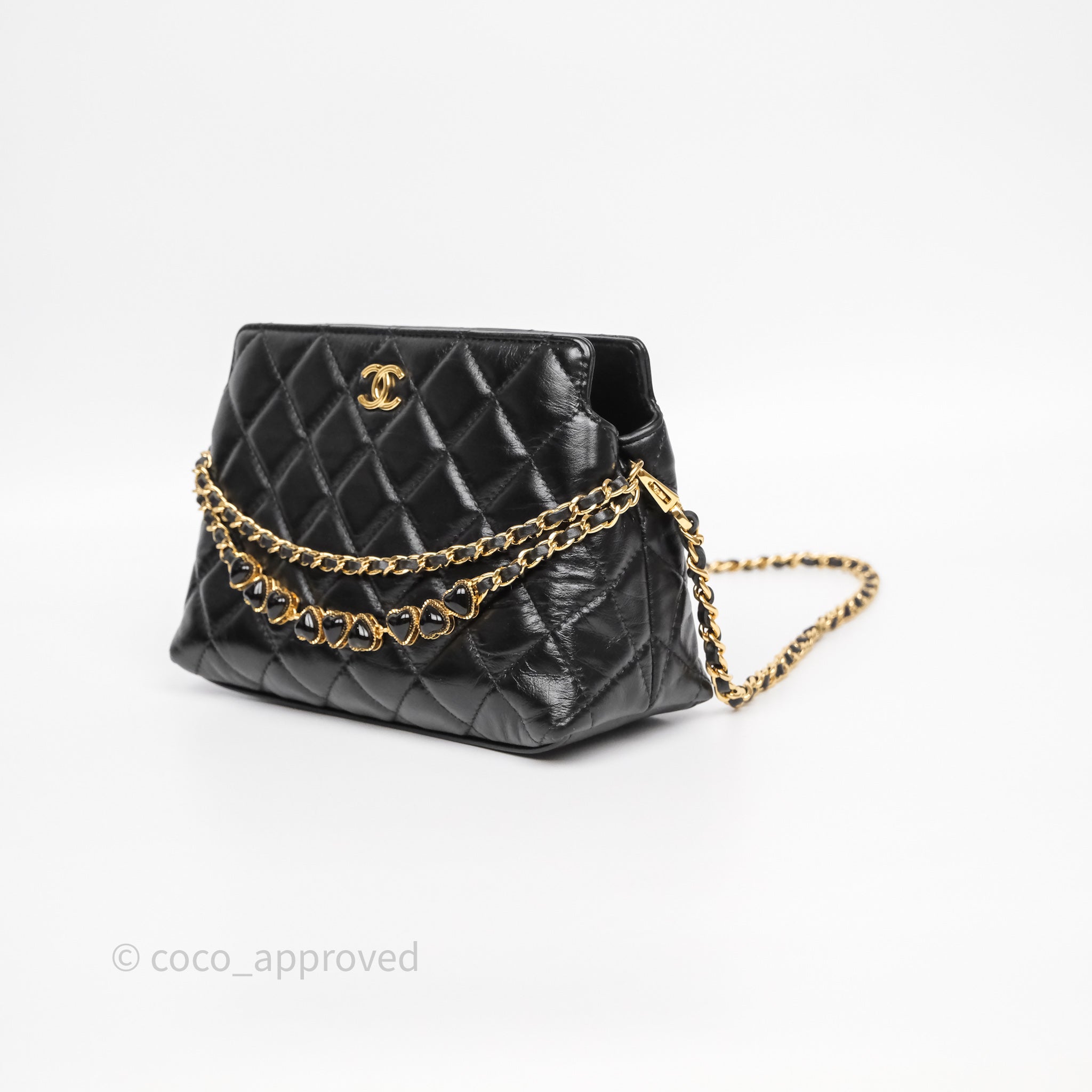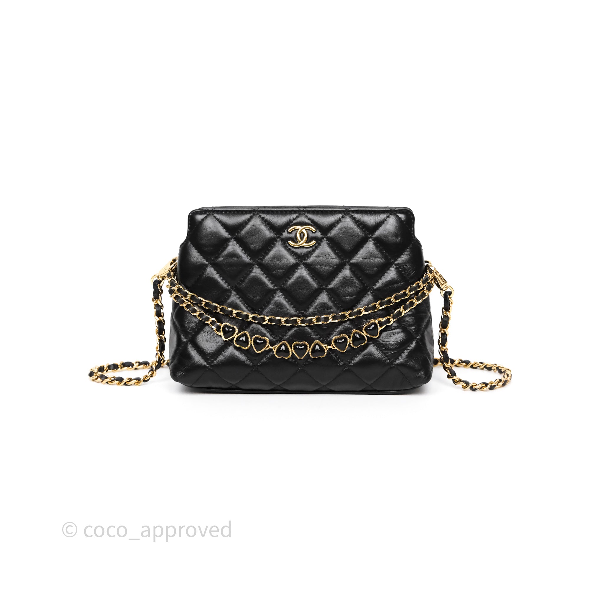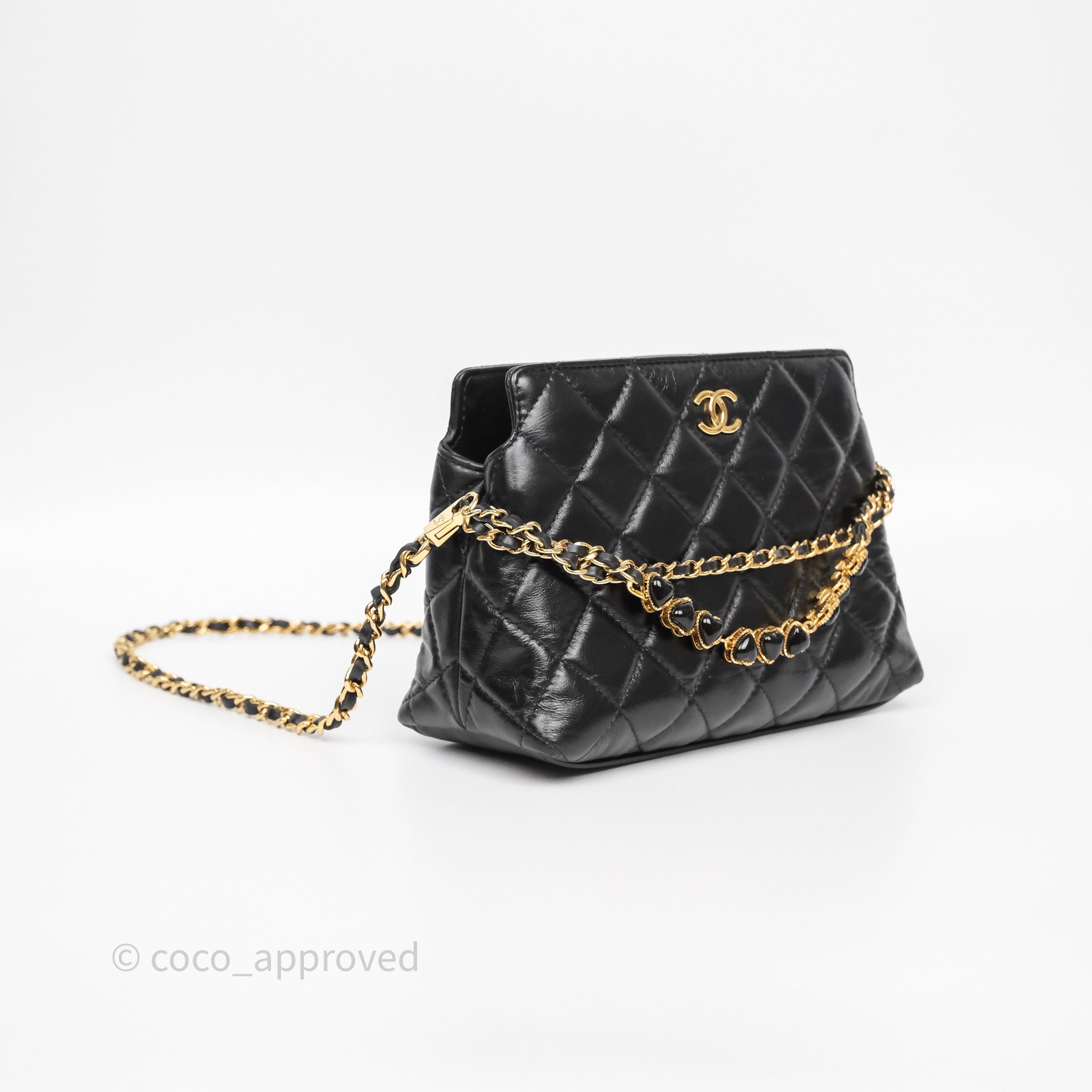 Chanel Clutch With Heart Chain Black Lambskin Gold Hardware