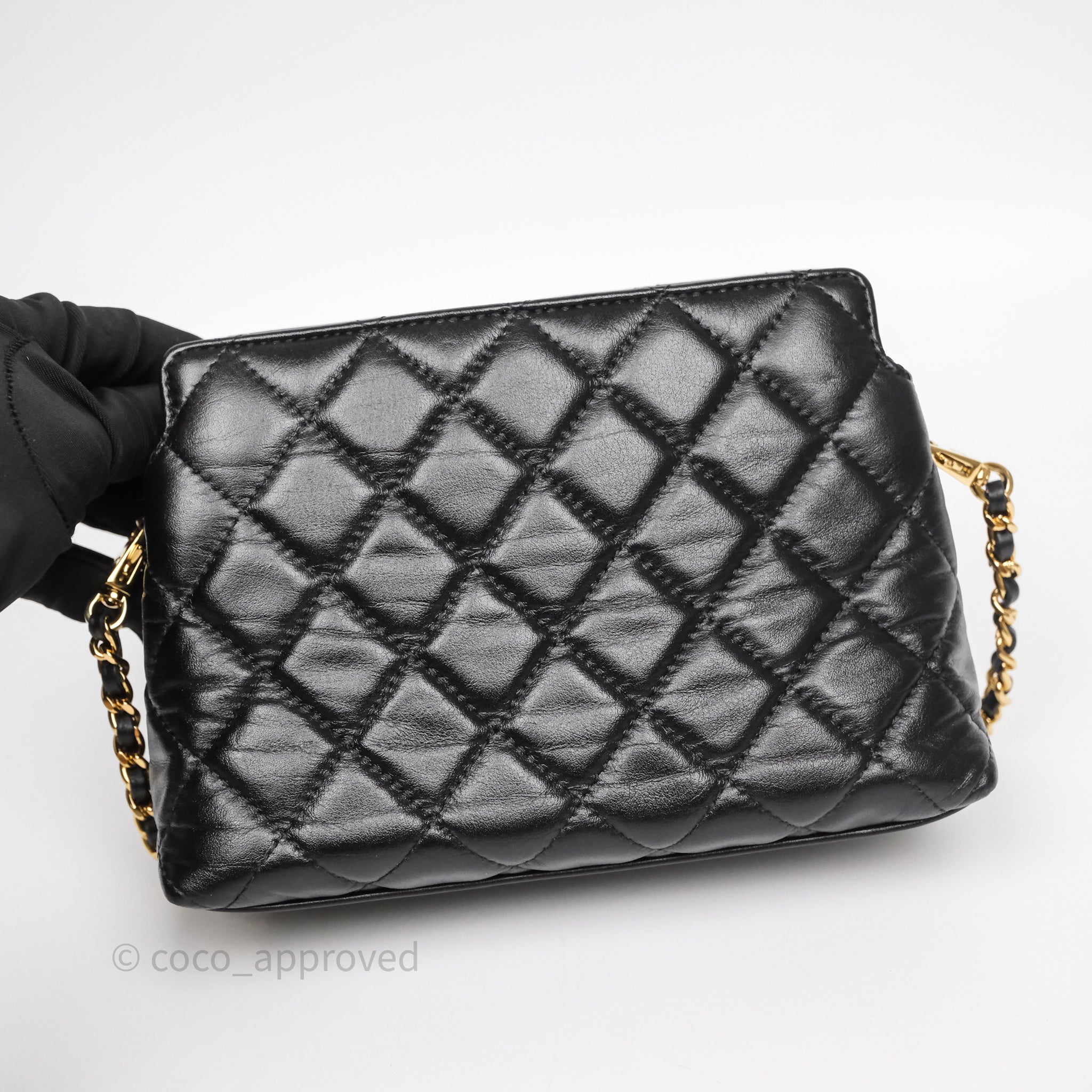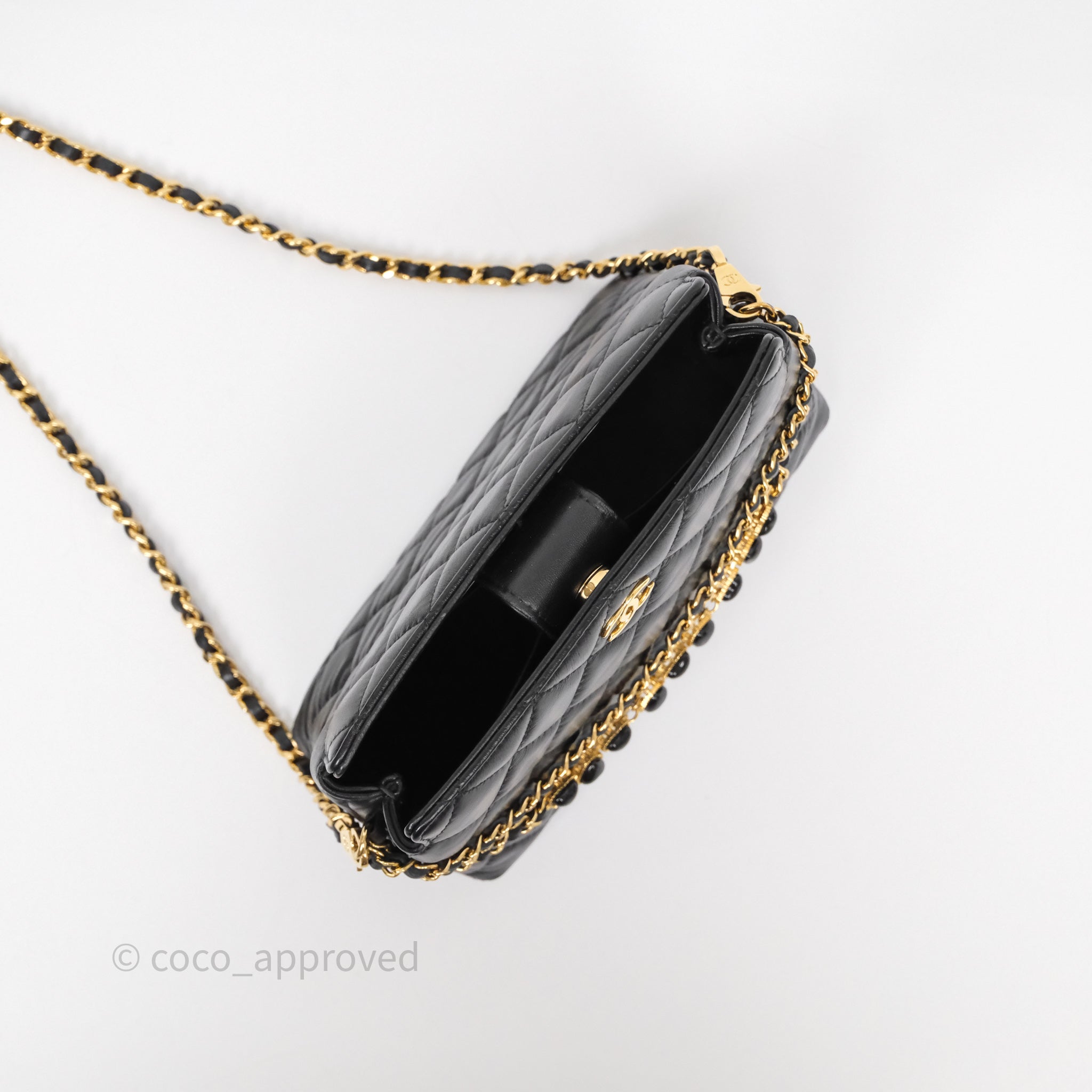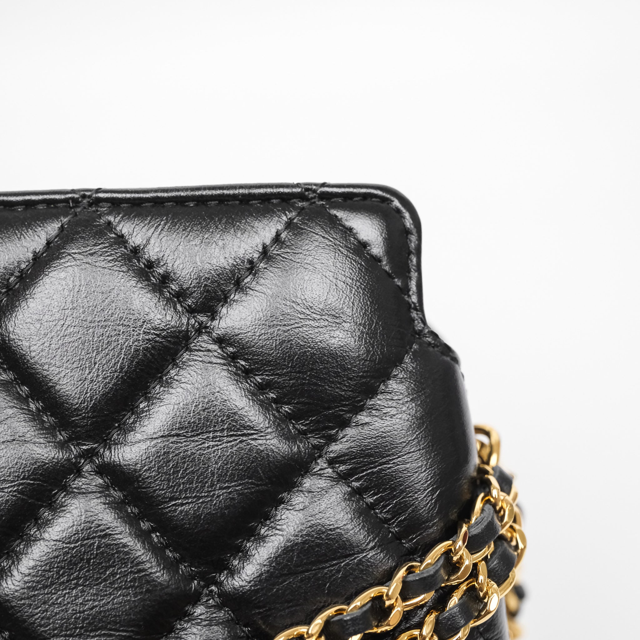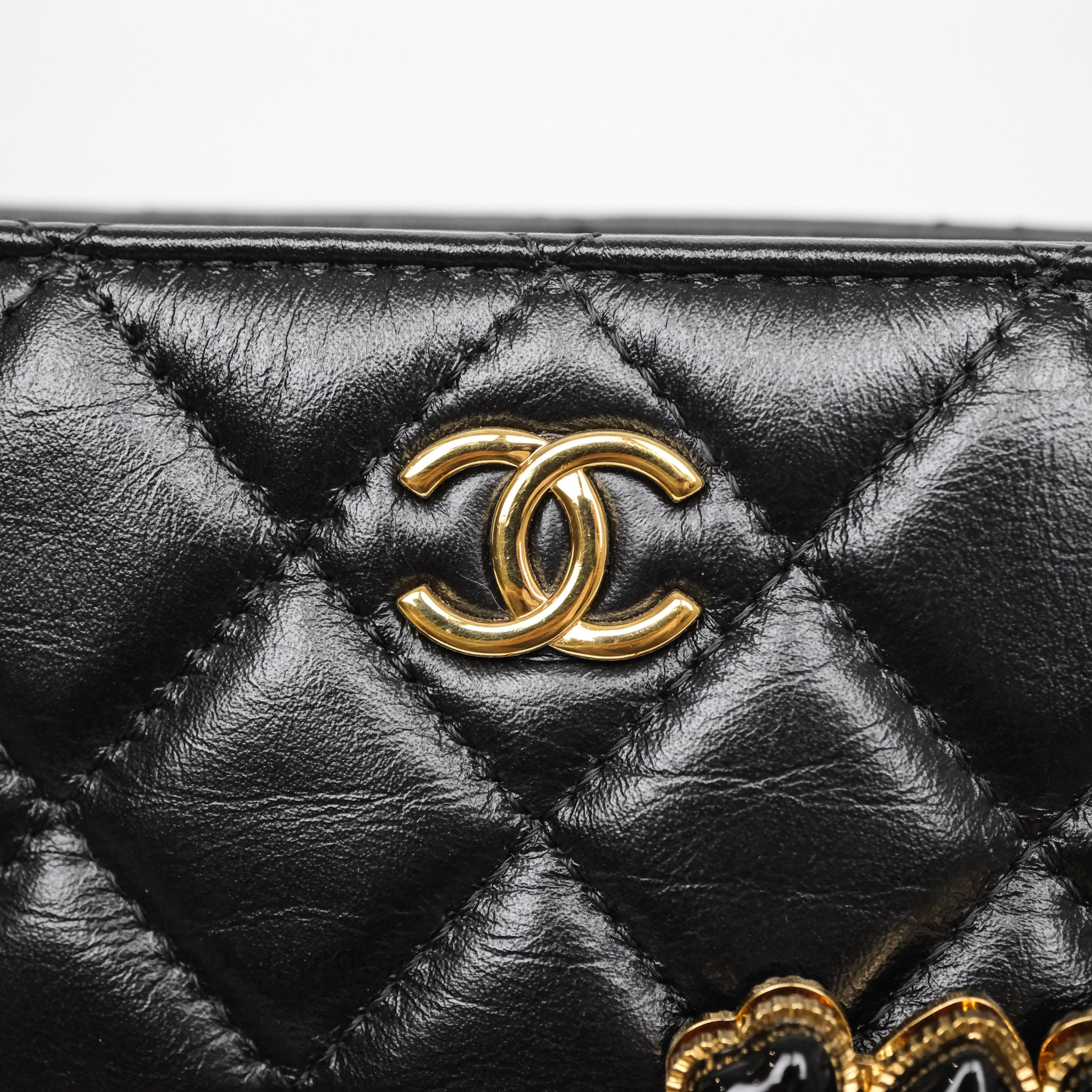 Chanel Clutch With Heart Chain Black Lambskin Gold Hardware