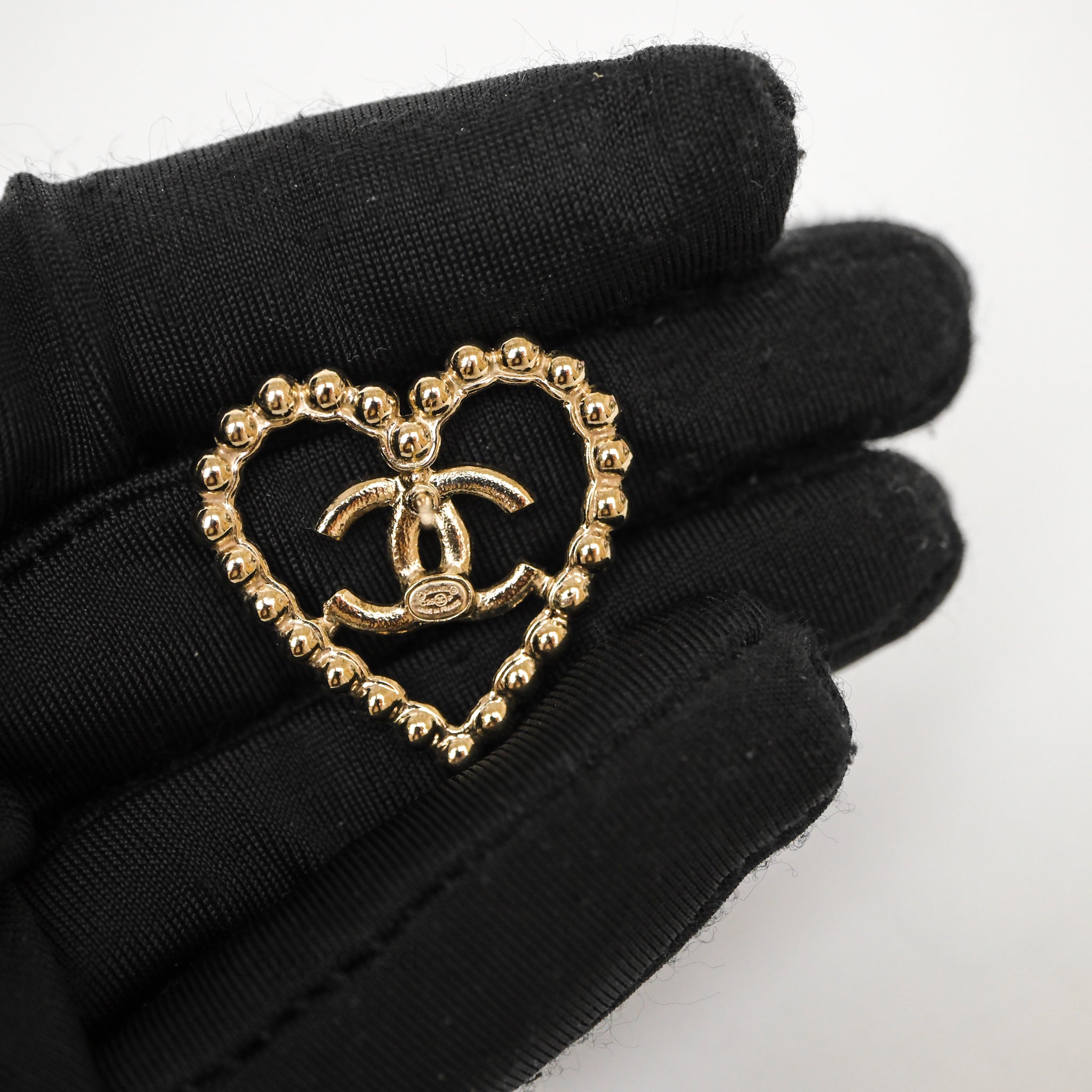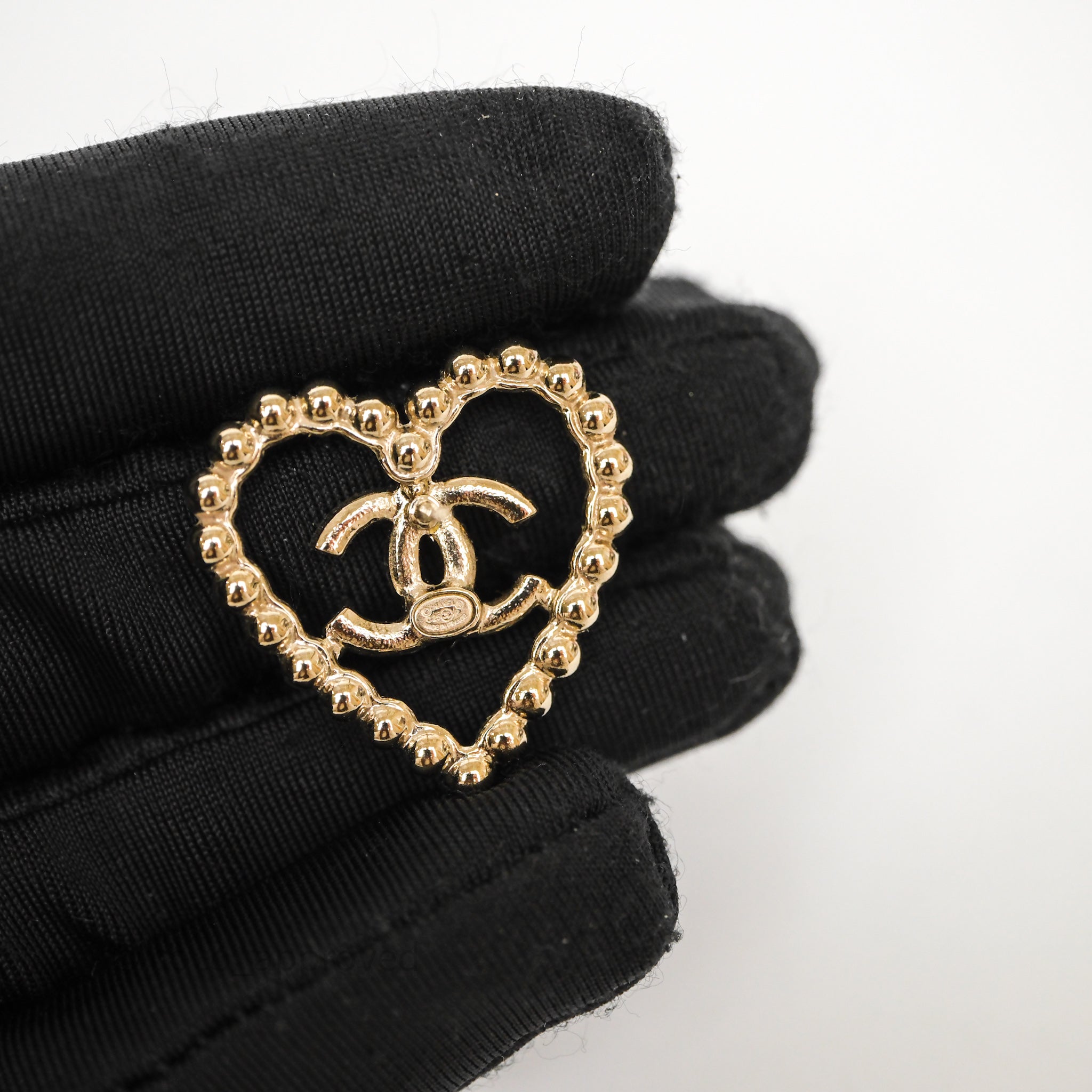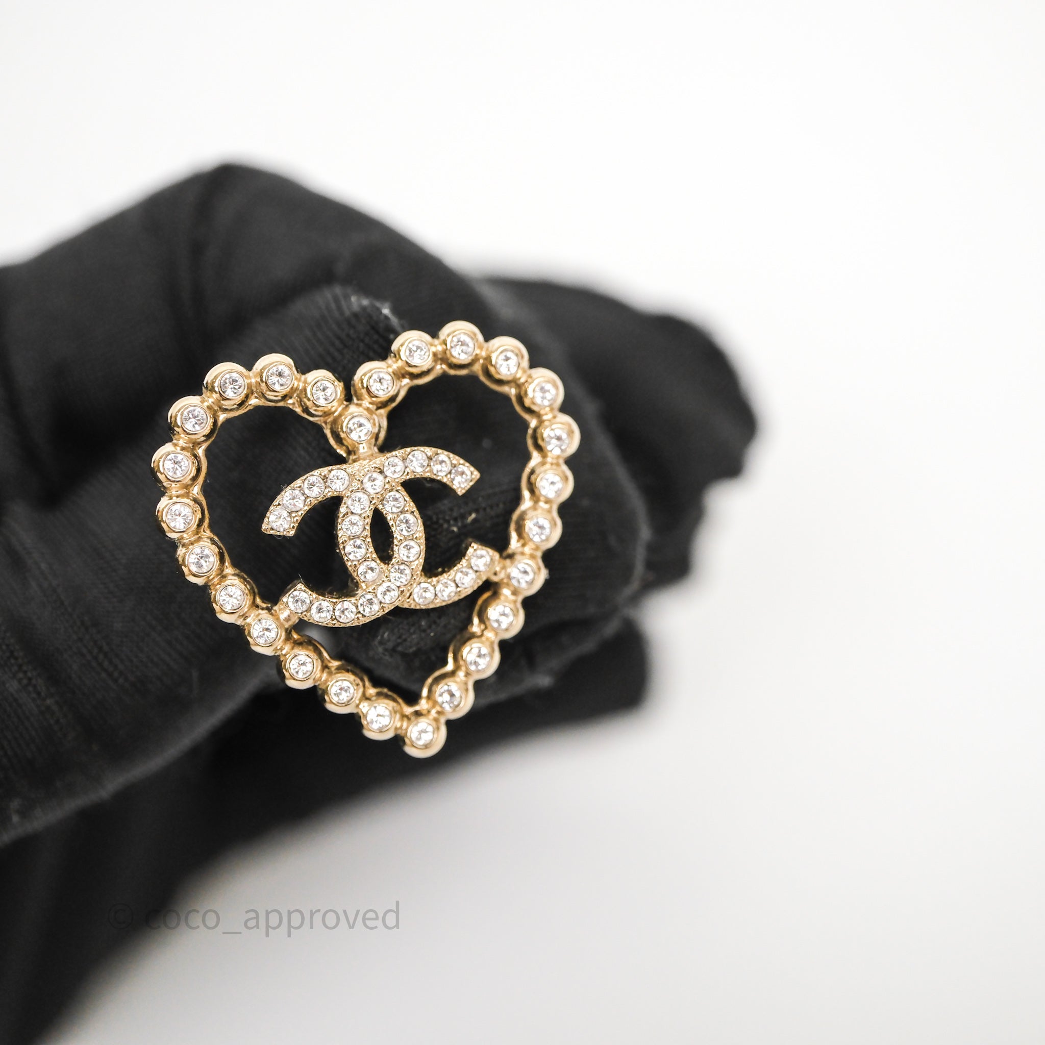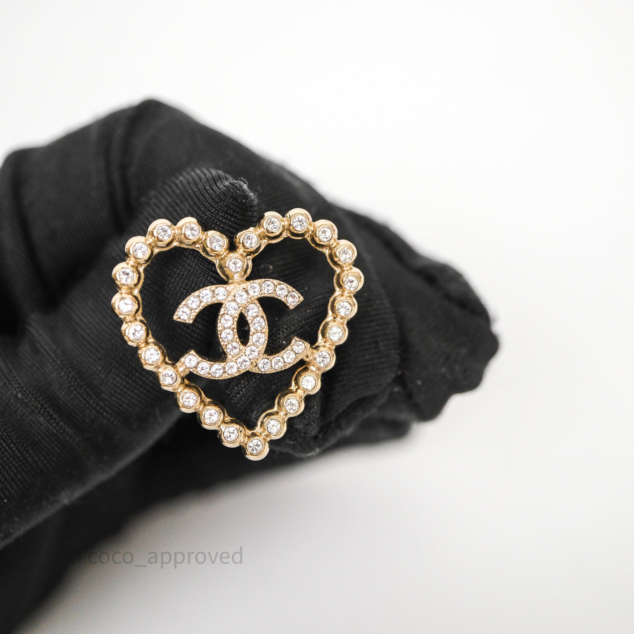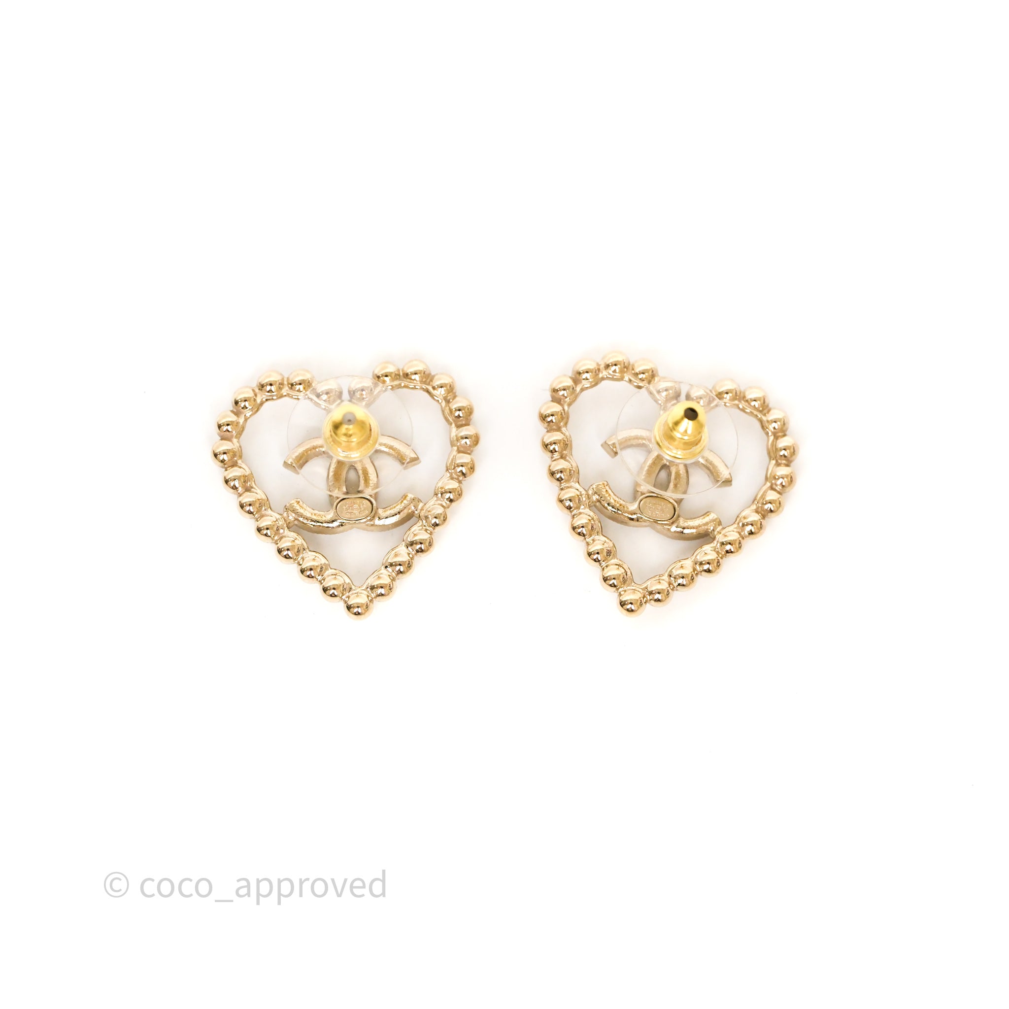 Chanel Crystal and Gold Metal CC Heart Earrings 25P