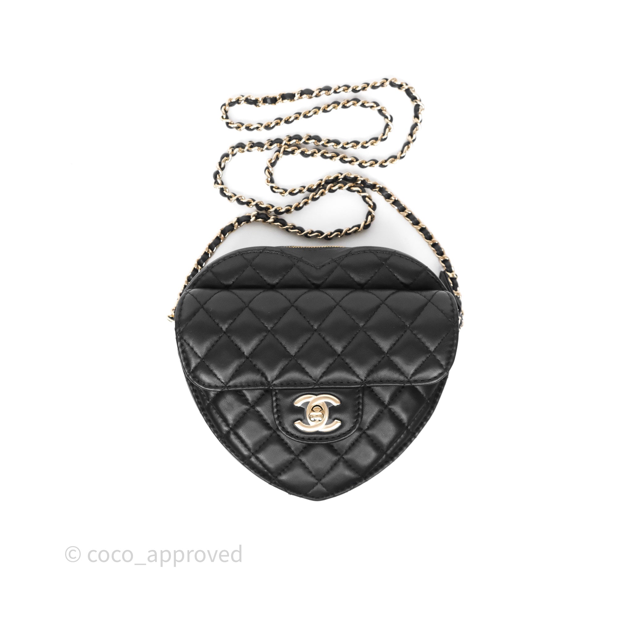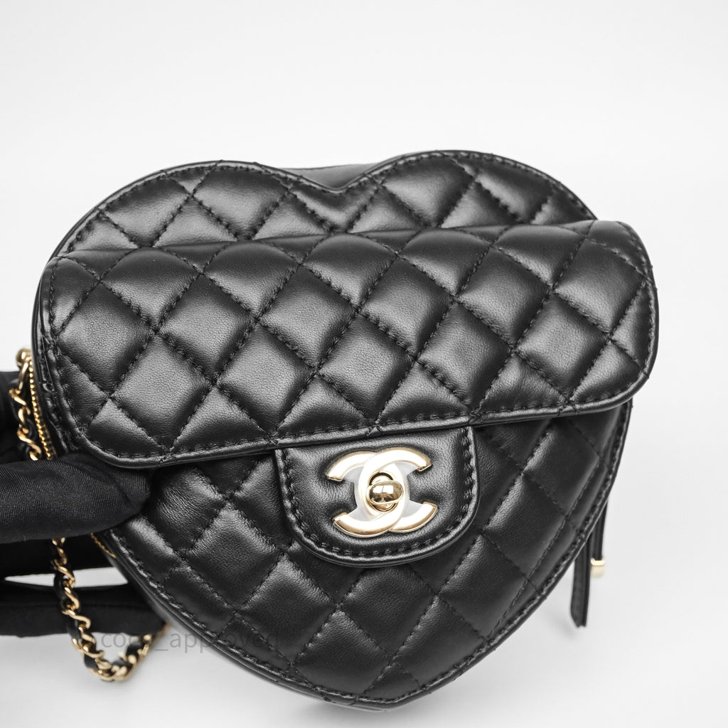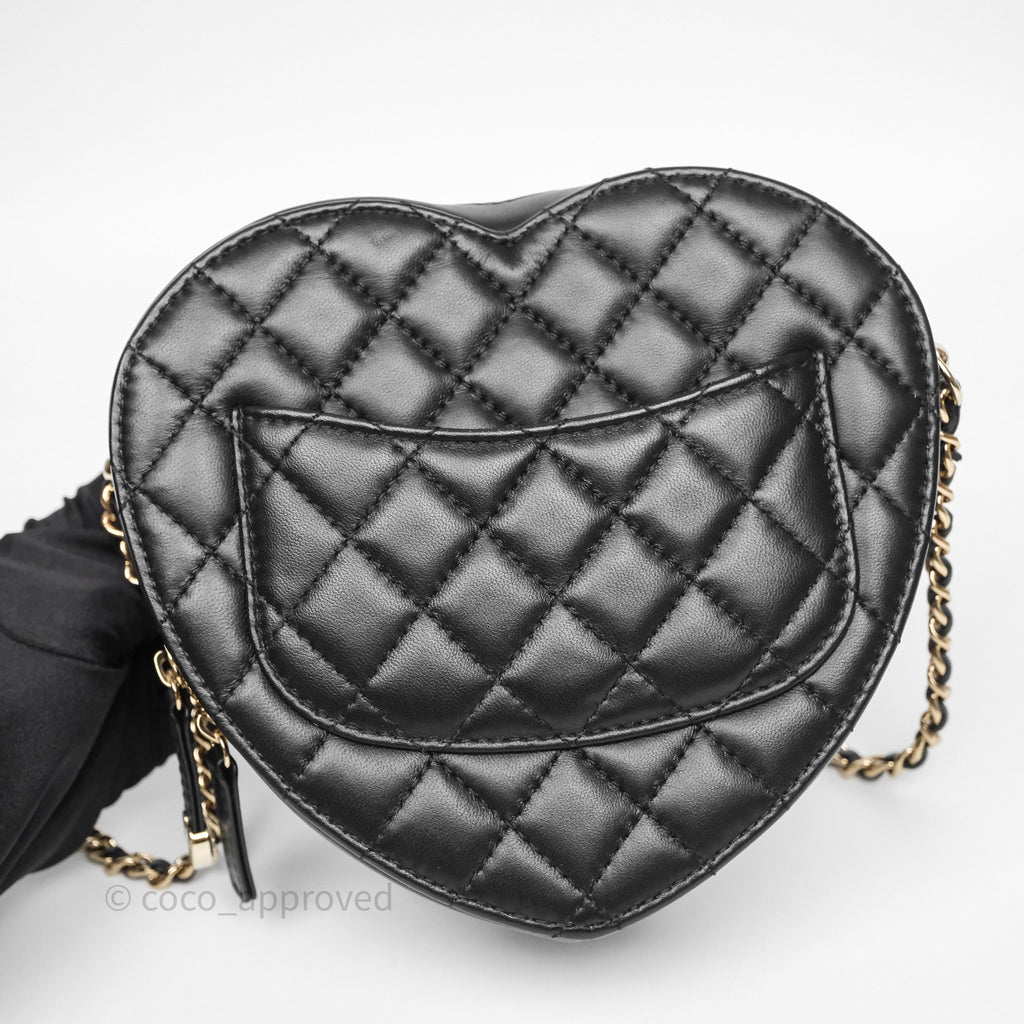 Chanel Large Heart Bag Black Lambskin Gold Hardware 22S