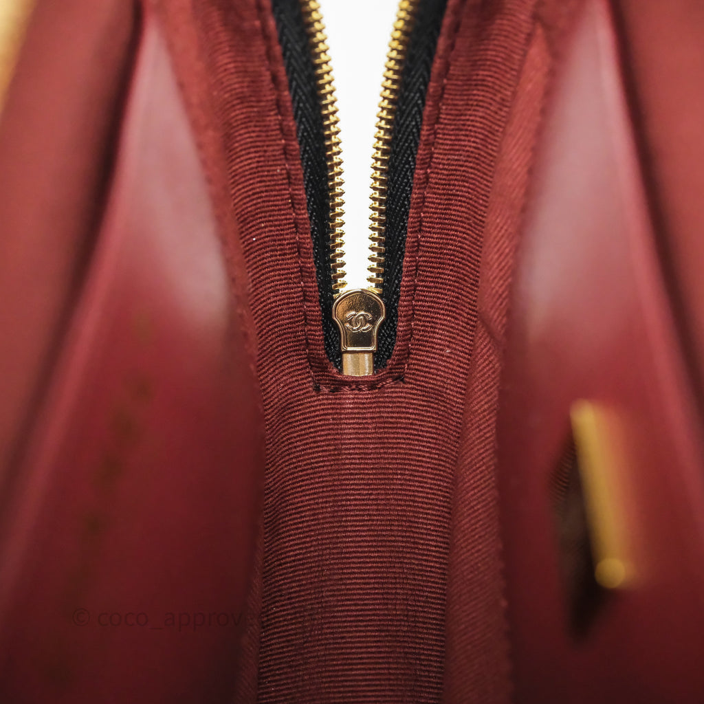 9.5/10 mint condition. Hairlines on sides, turn lock tip and under flap. Tiny rubbing on back pocket rim. Minor marks on interior.